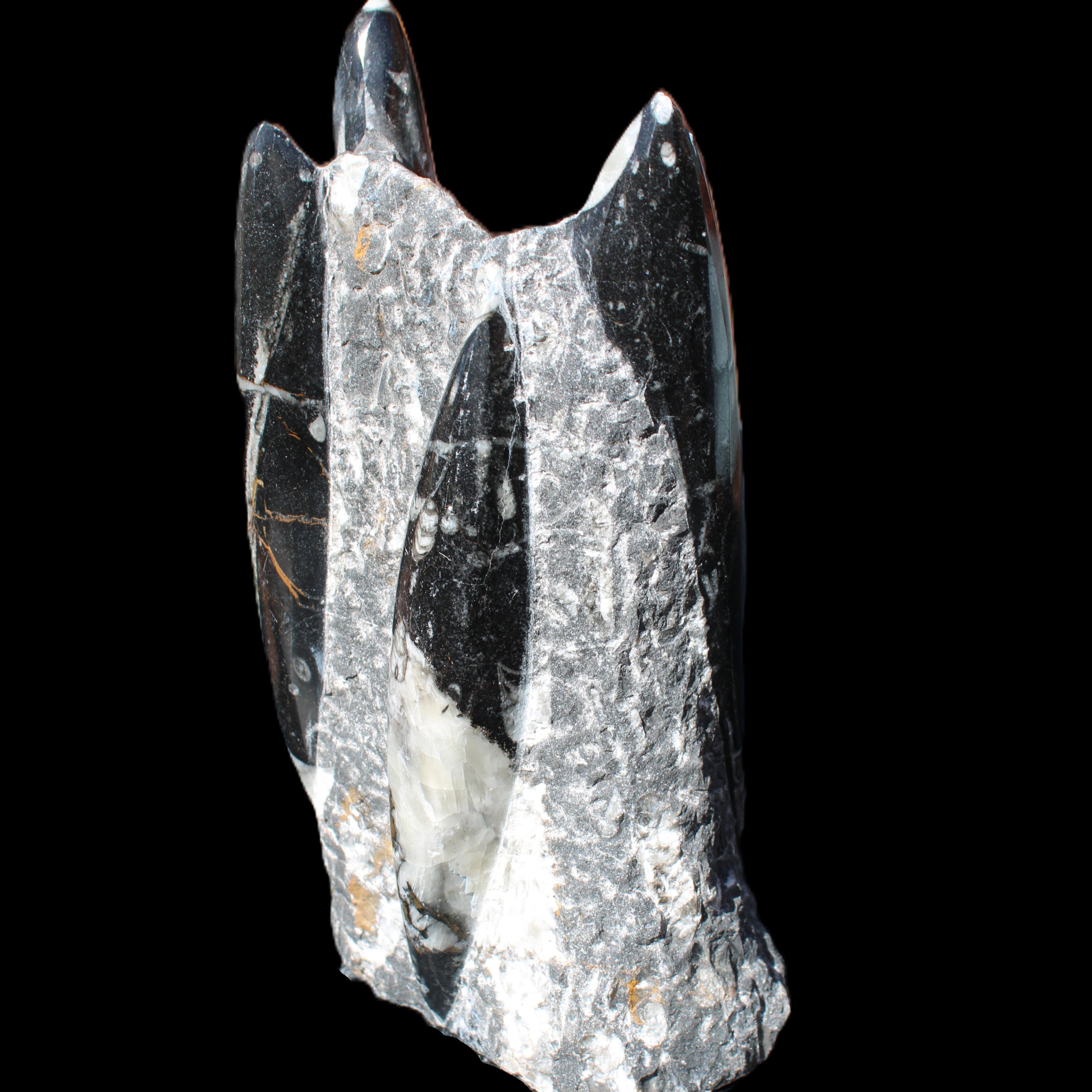Orthoceras sculpture tower from Morocco 198*95mm 1582g in sunlight - Rocks and Things Store