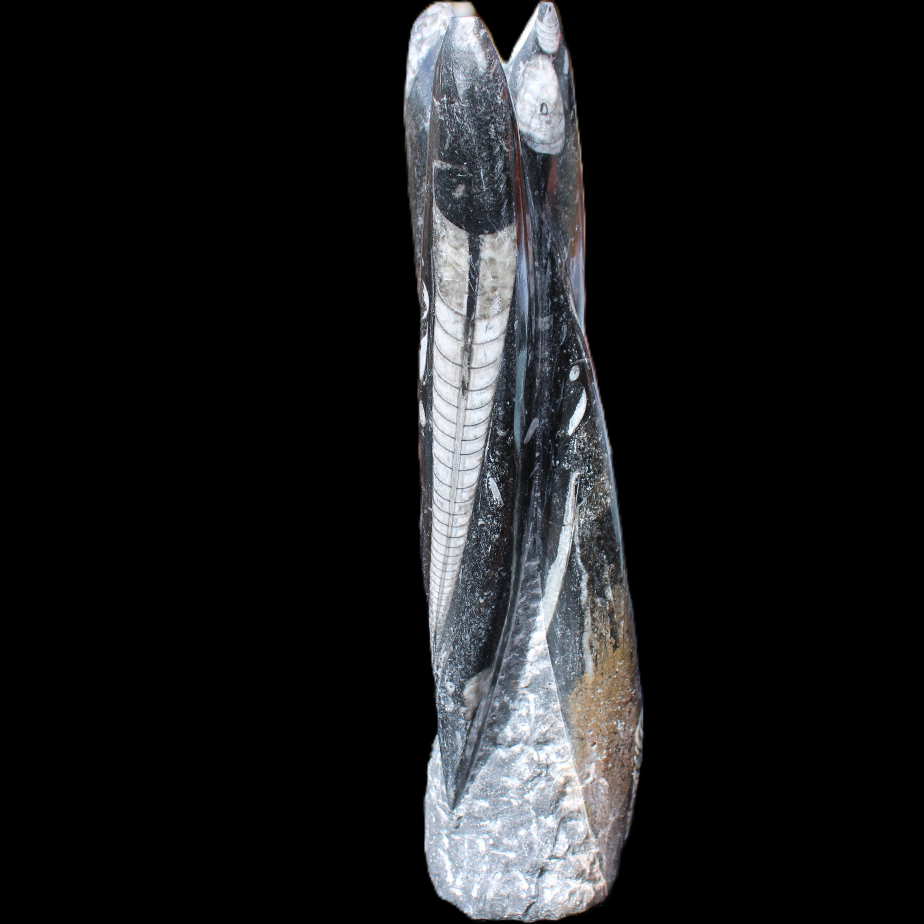 This magnificent Orthoceras sculpture tower from Morocco 230*65mm weighs 1030g. These creatures lived in the Devonian period about 380 million years ago.