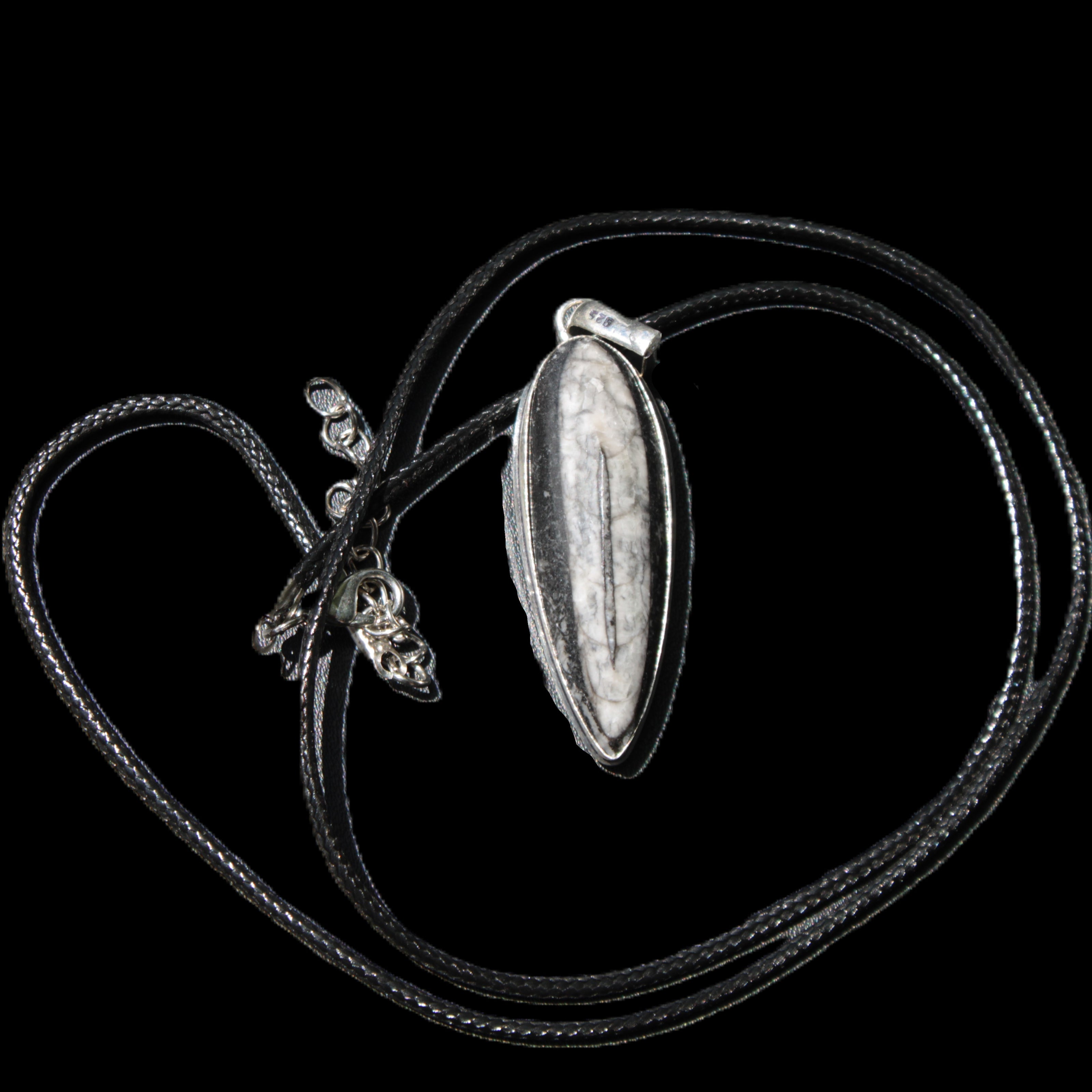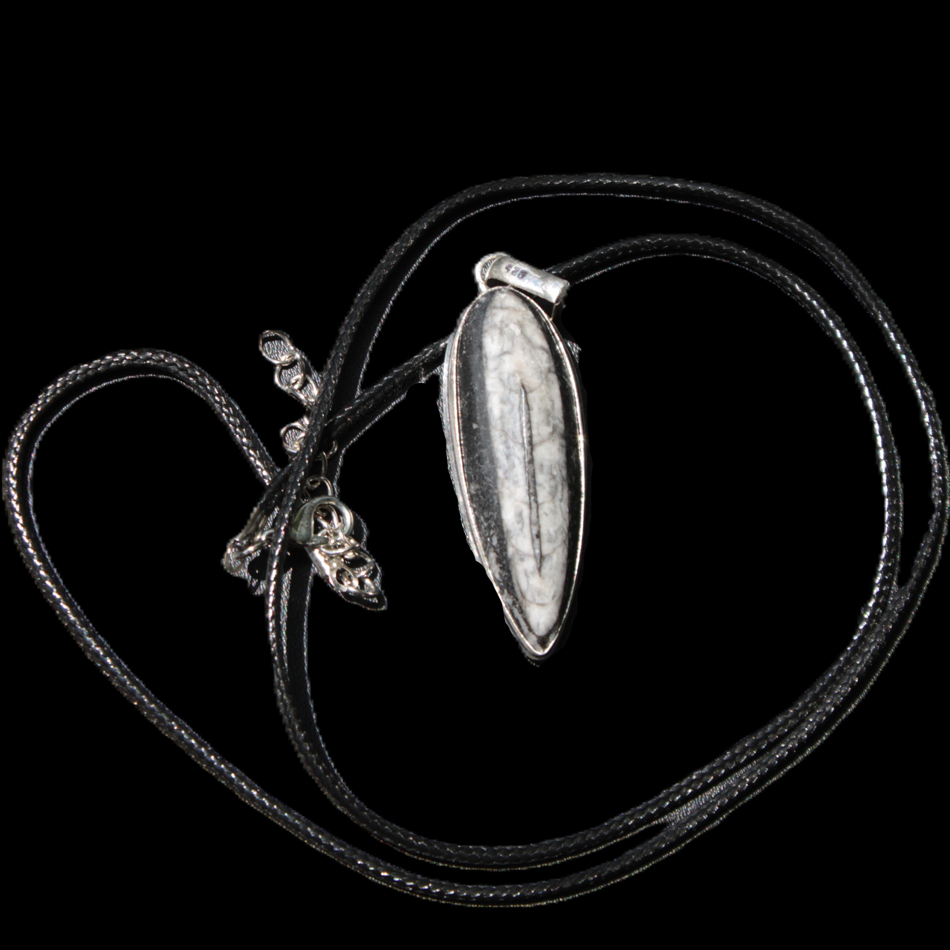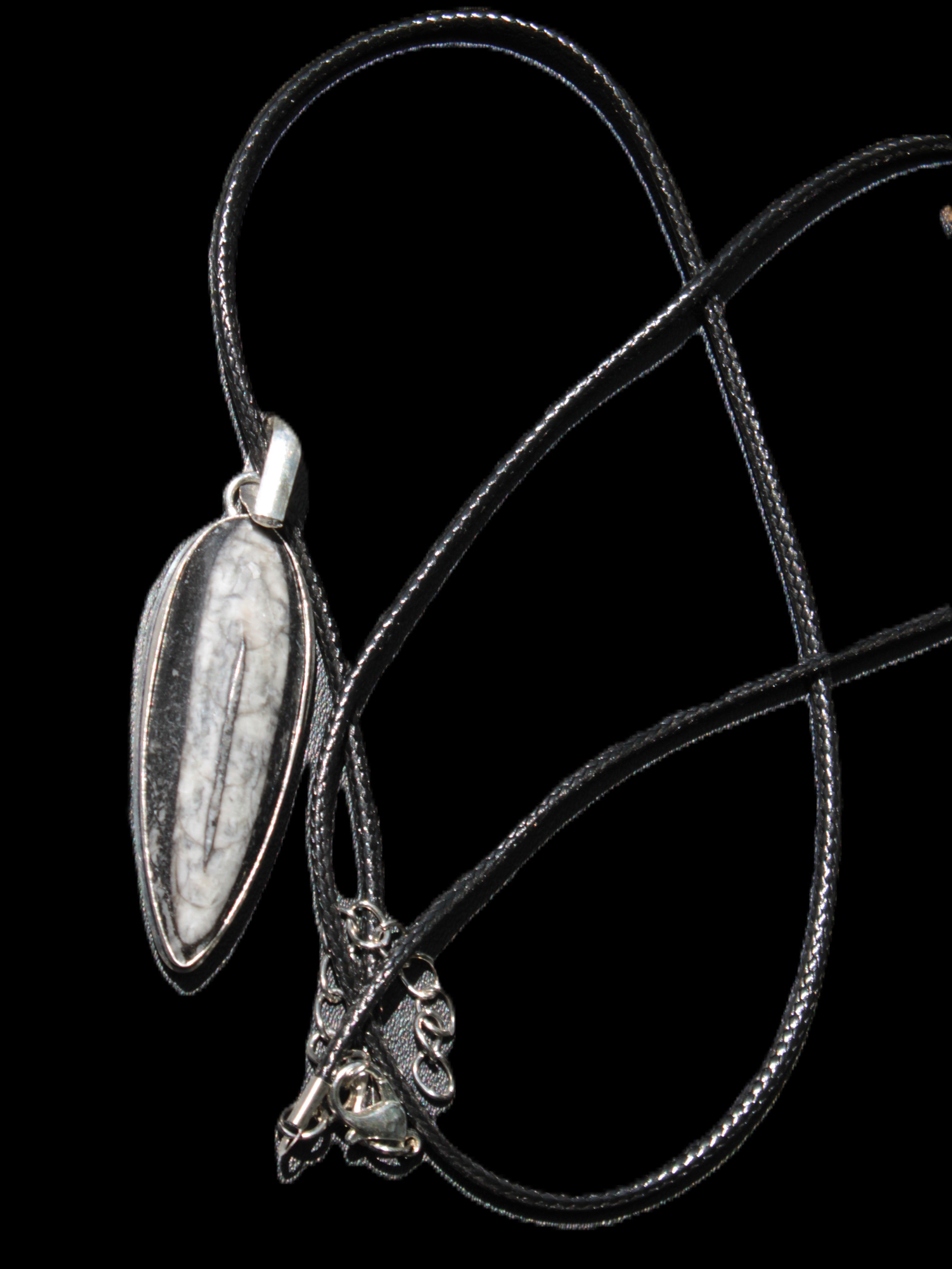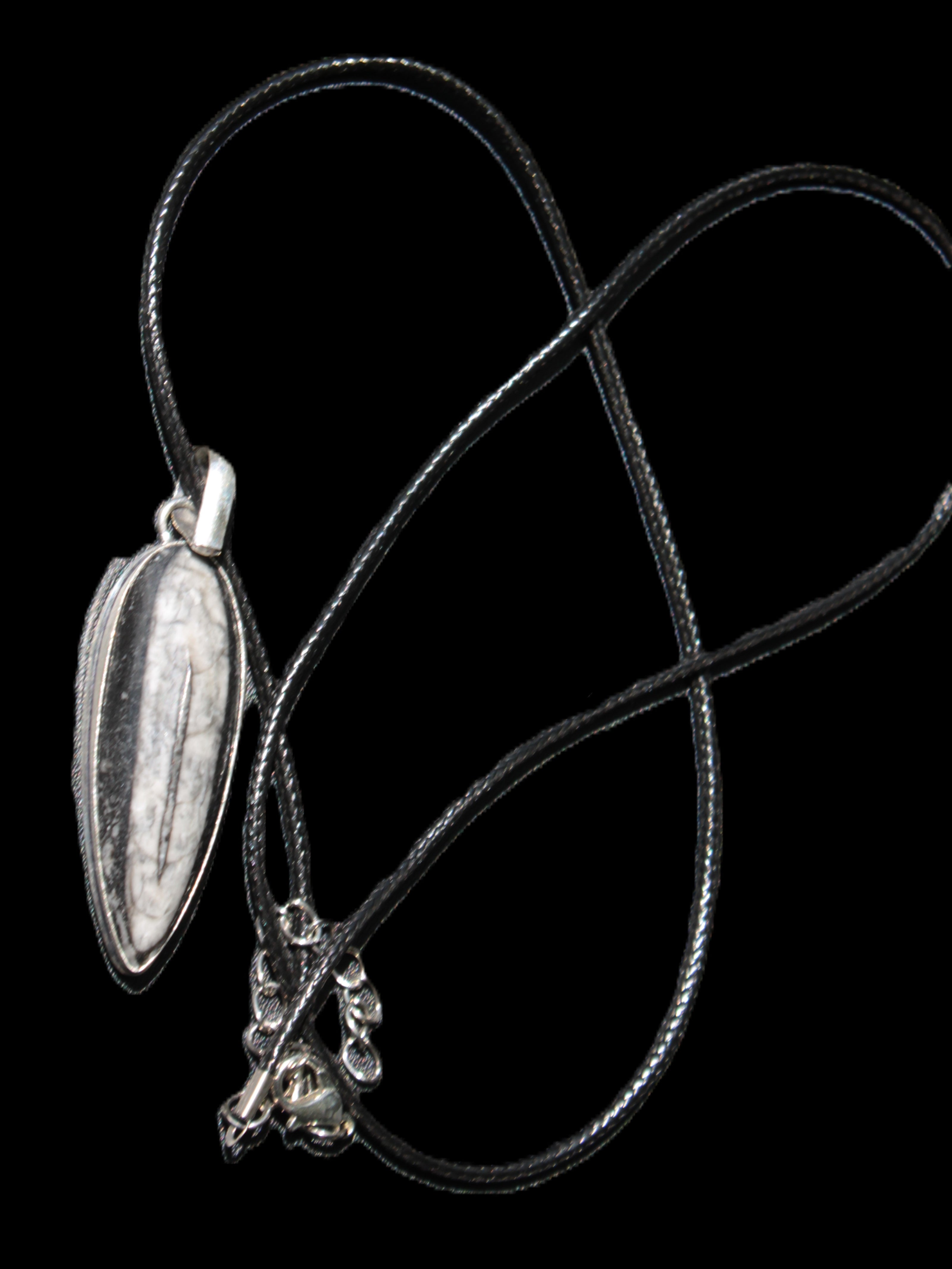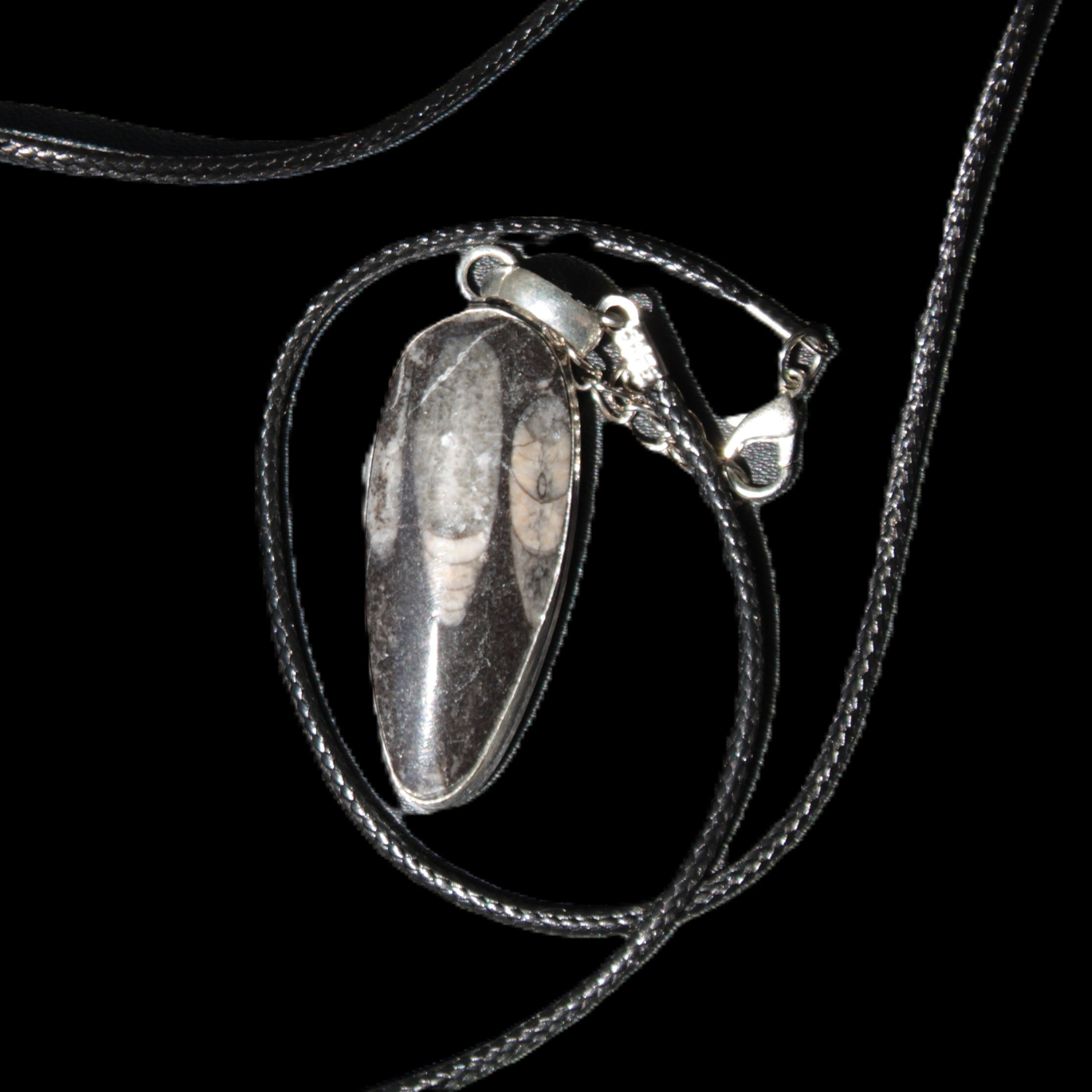 This Orthoceras silver-plated pendant with faux leather necklace selection is formed from the fossilised remains of Orthoceras. This fossil connects with transformative energies. Orthoceras activates the Root Chakra by grounding you with the ancient energy of Earth. It can push you on a path of transformation, helping you shift from who you were to becoming who you want to be.