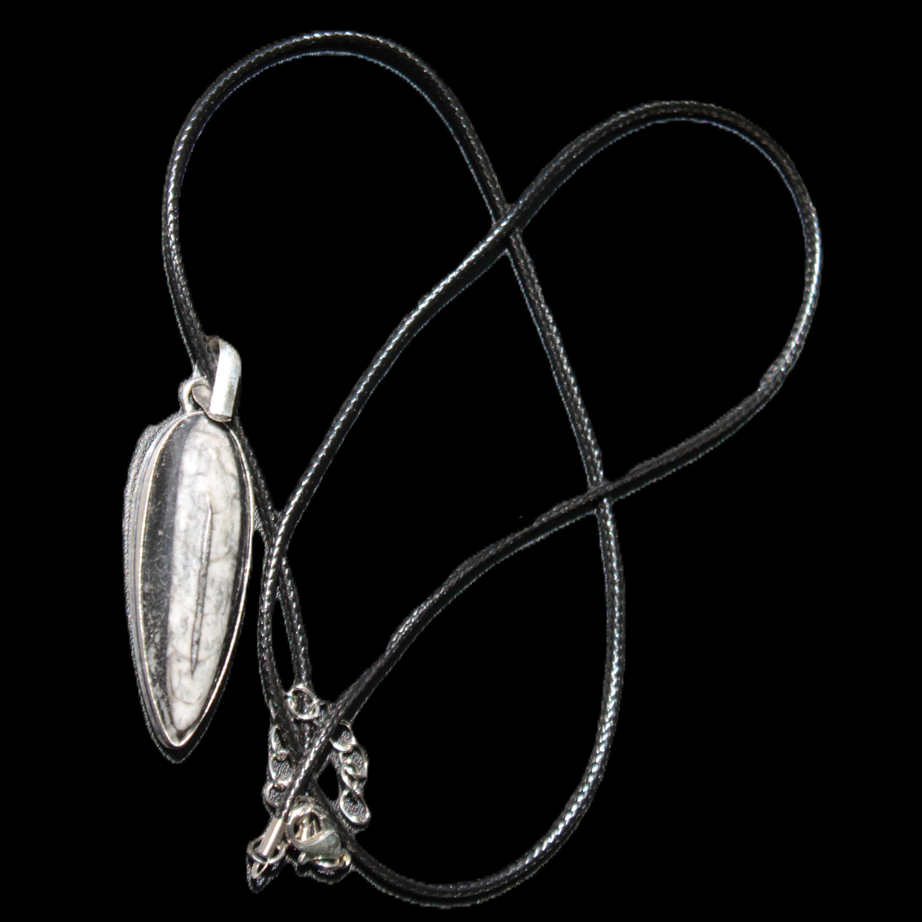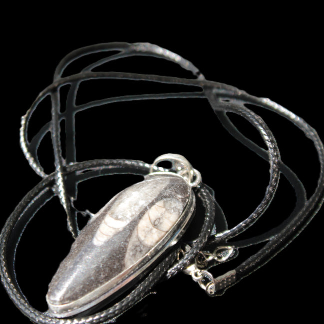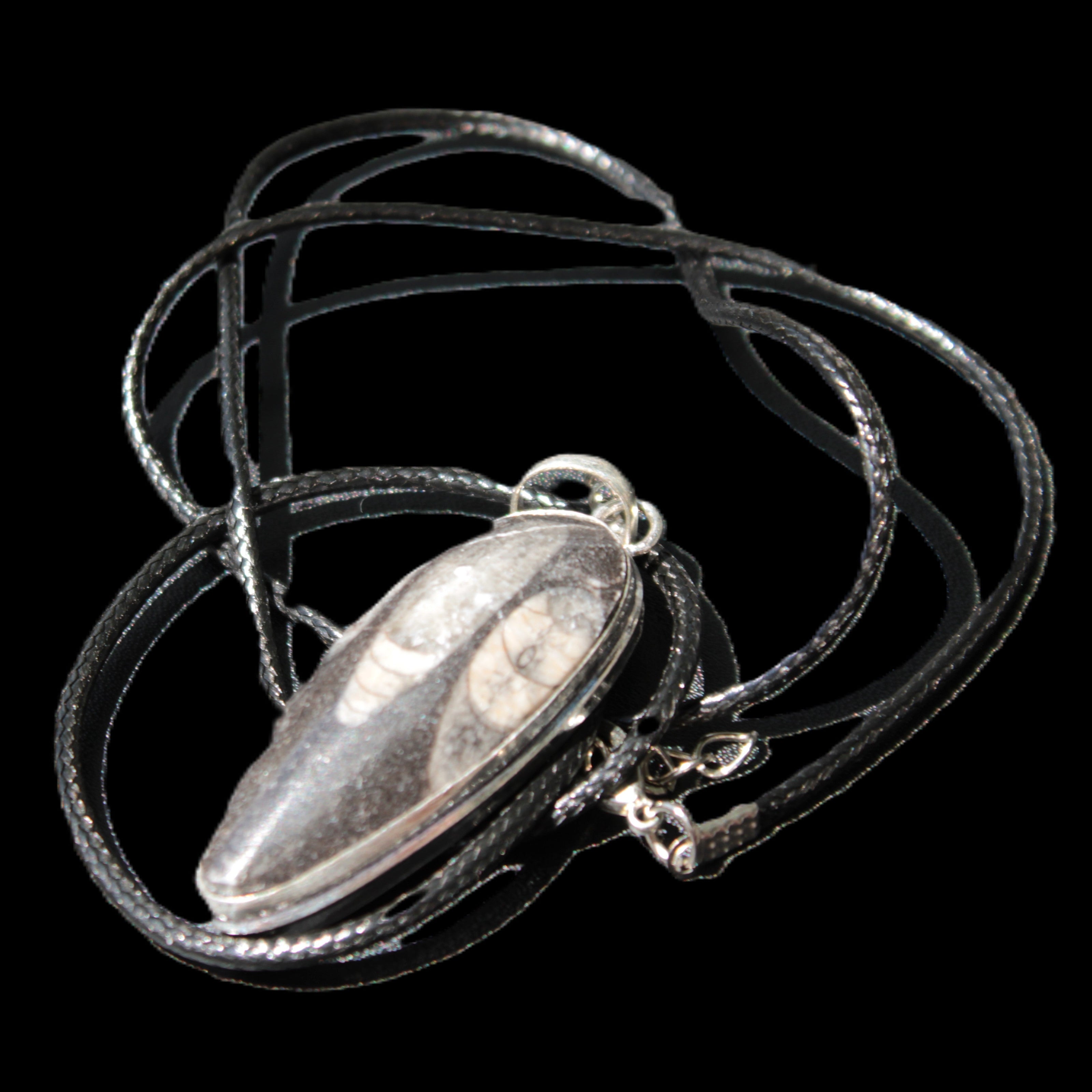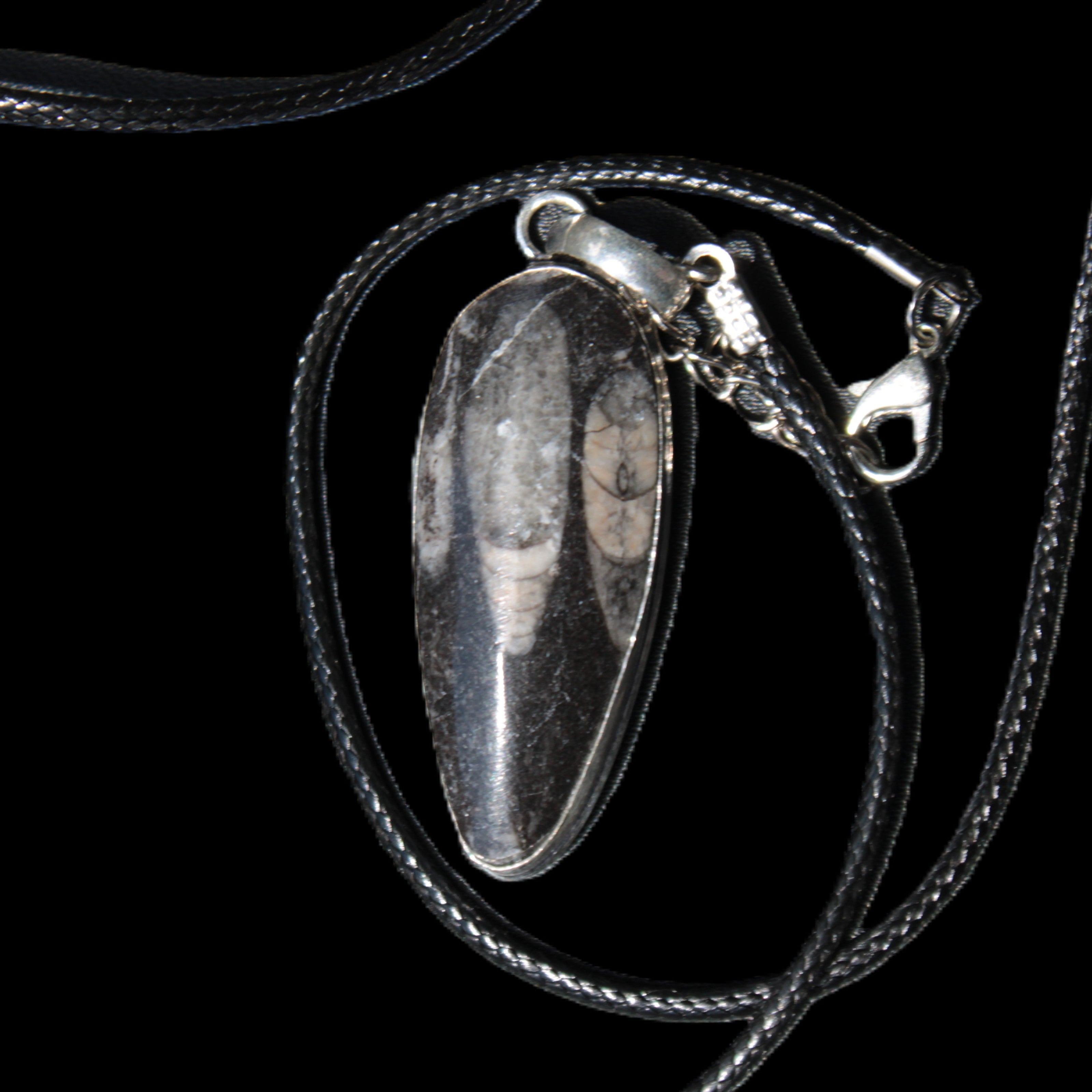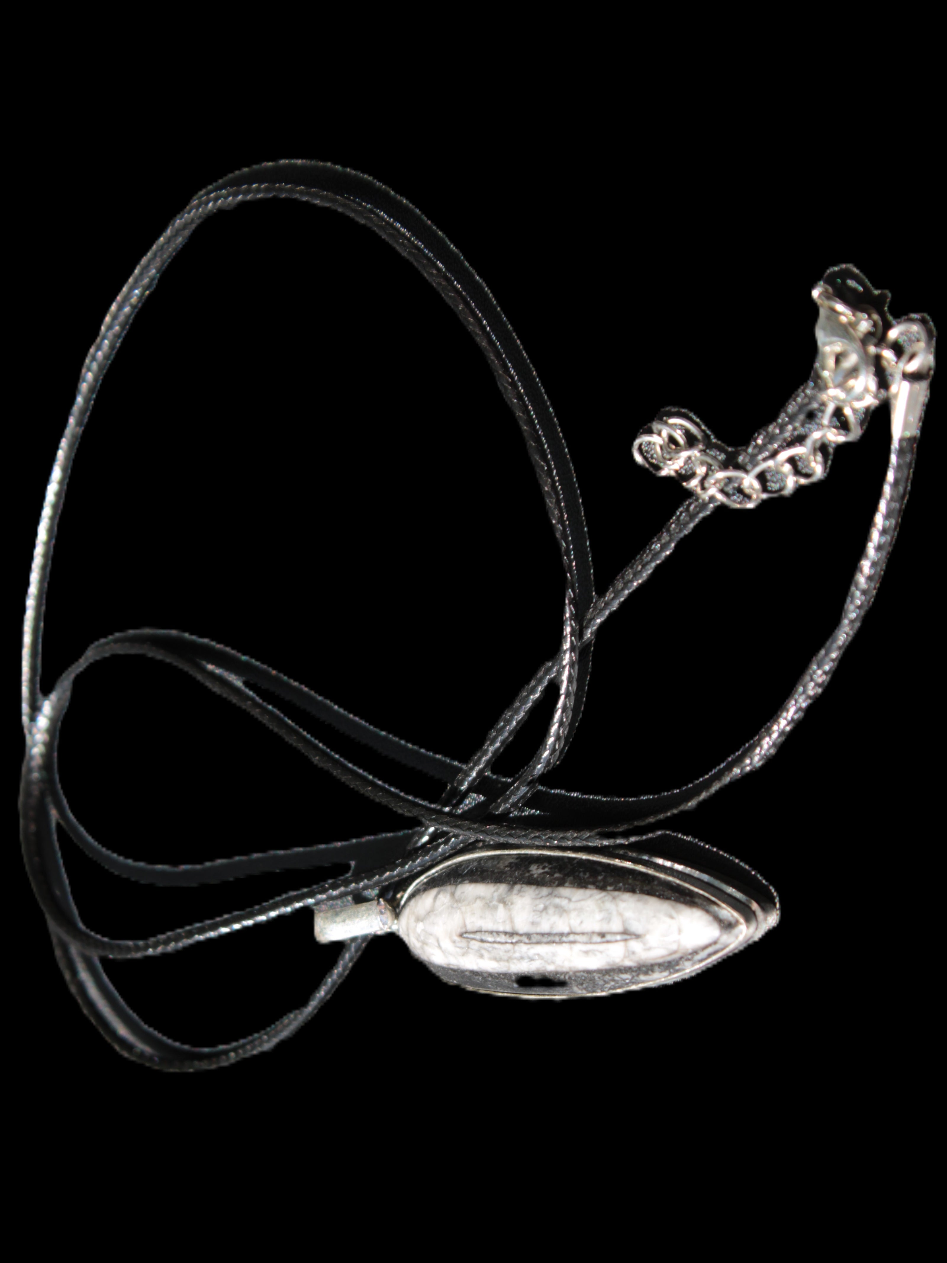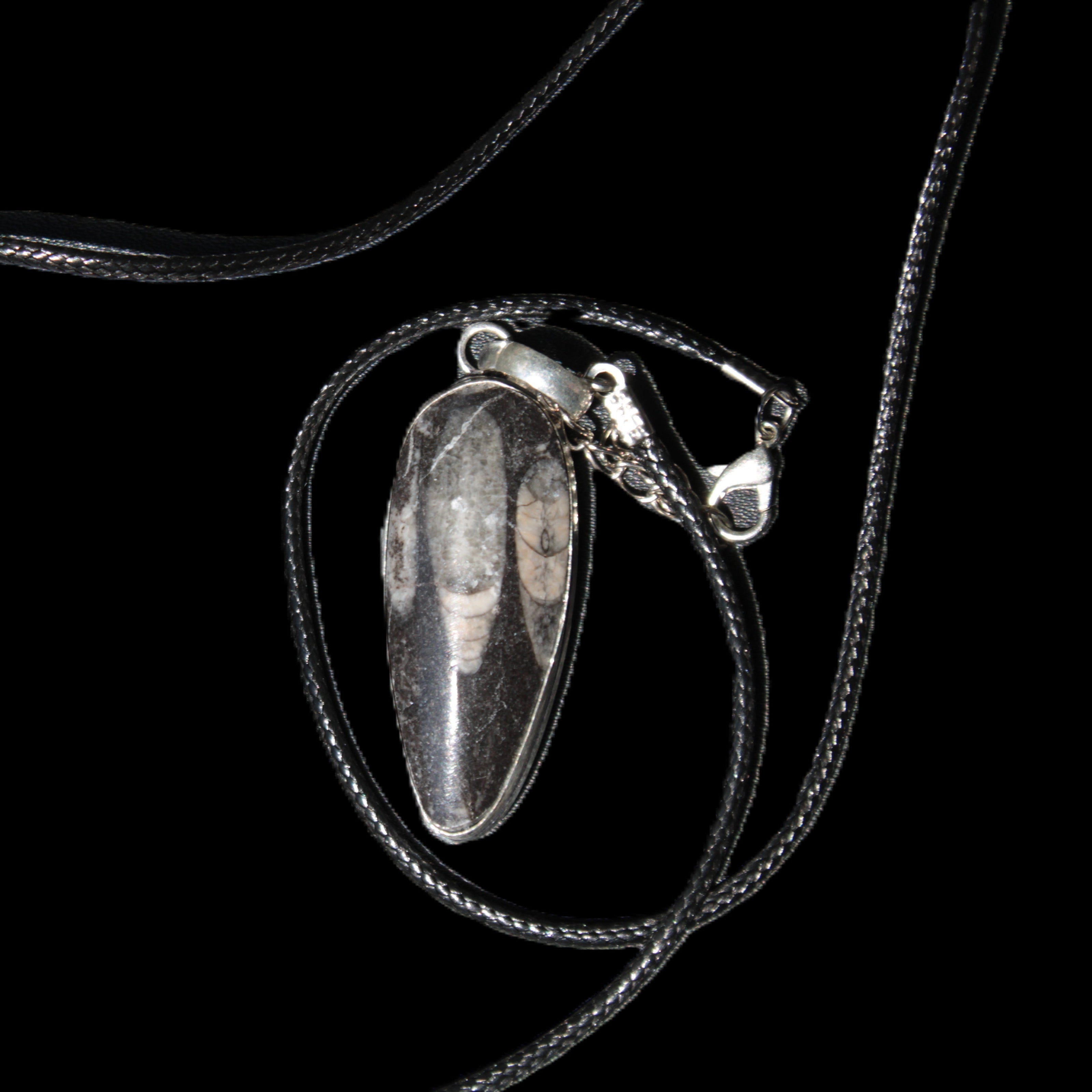 This Orthoceras silver-plated pendant with faux leather necklace selection is formed from the fossilised remains of Orthoceras. This fossil connects with transformative energies. Orthoceras activates the Root Chakra by grounding you with the ancient energy of Earth. It can push you on a path of transformation, helping you shift from who you were to becoming who you want to be.