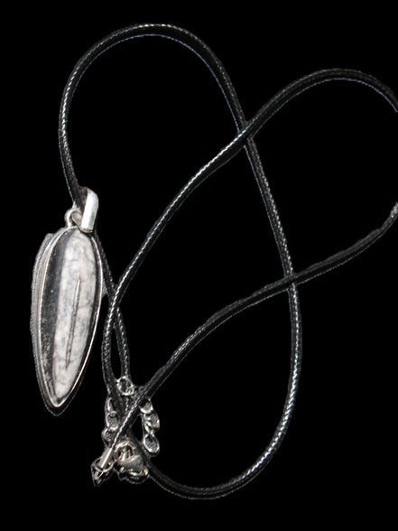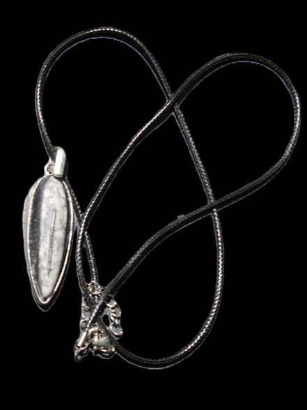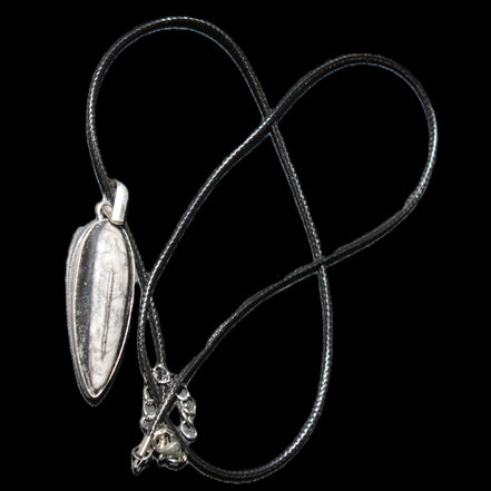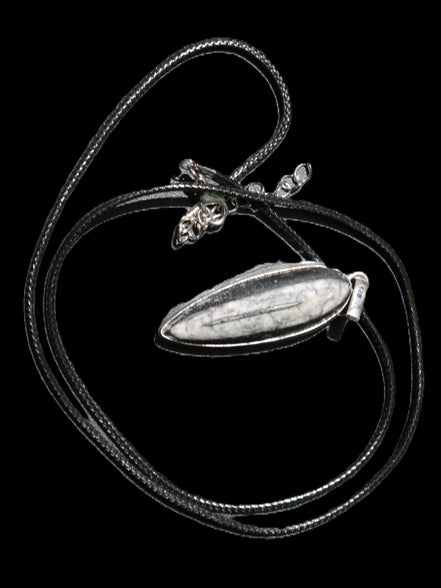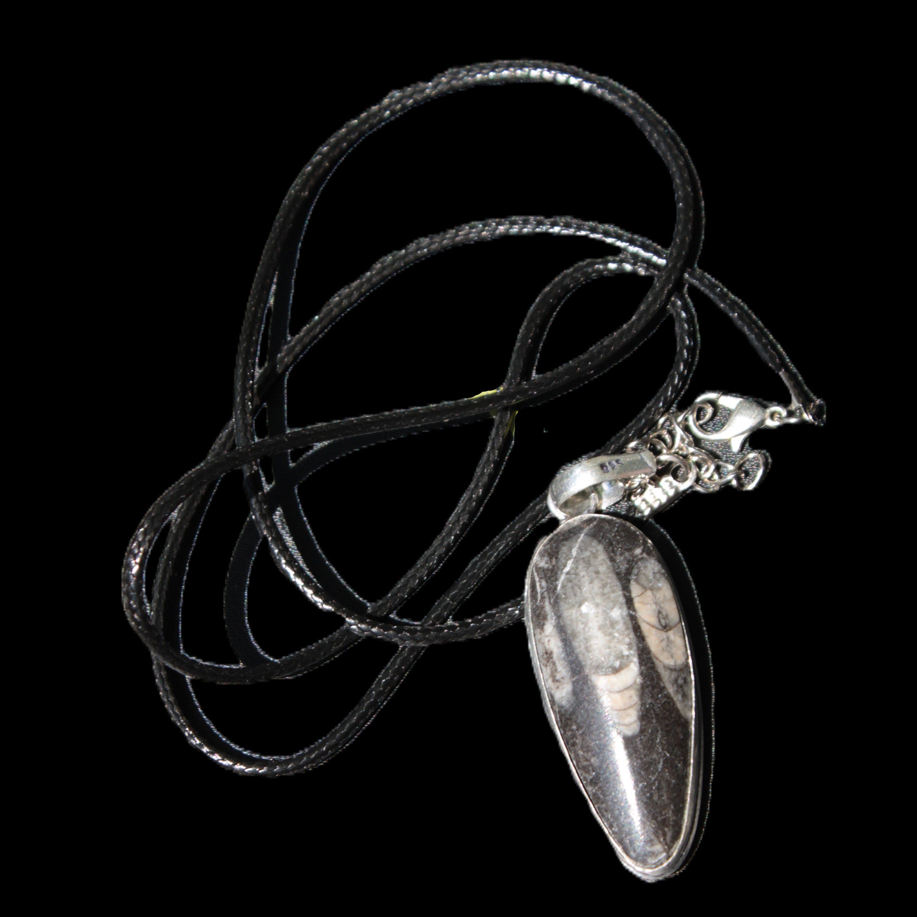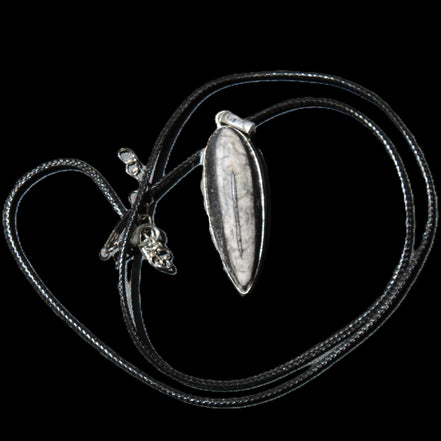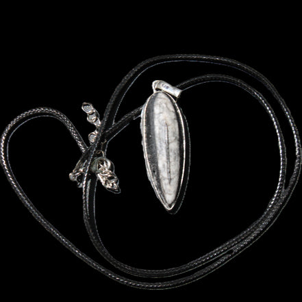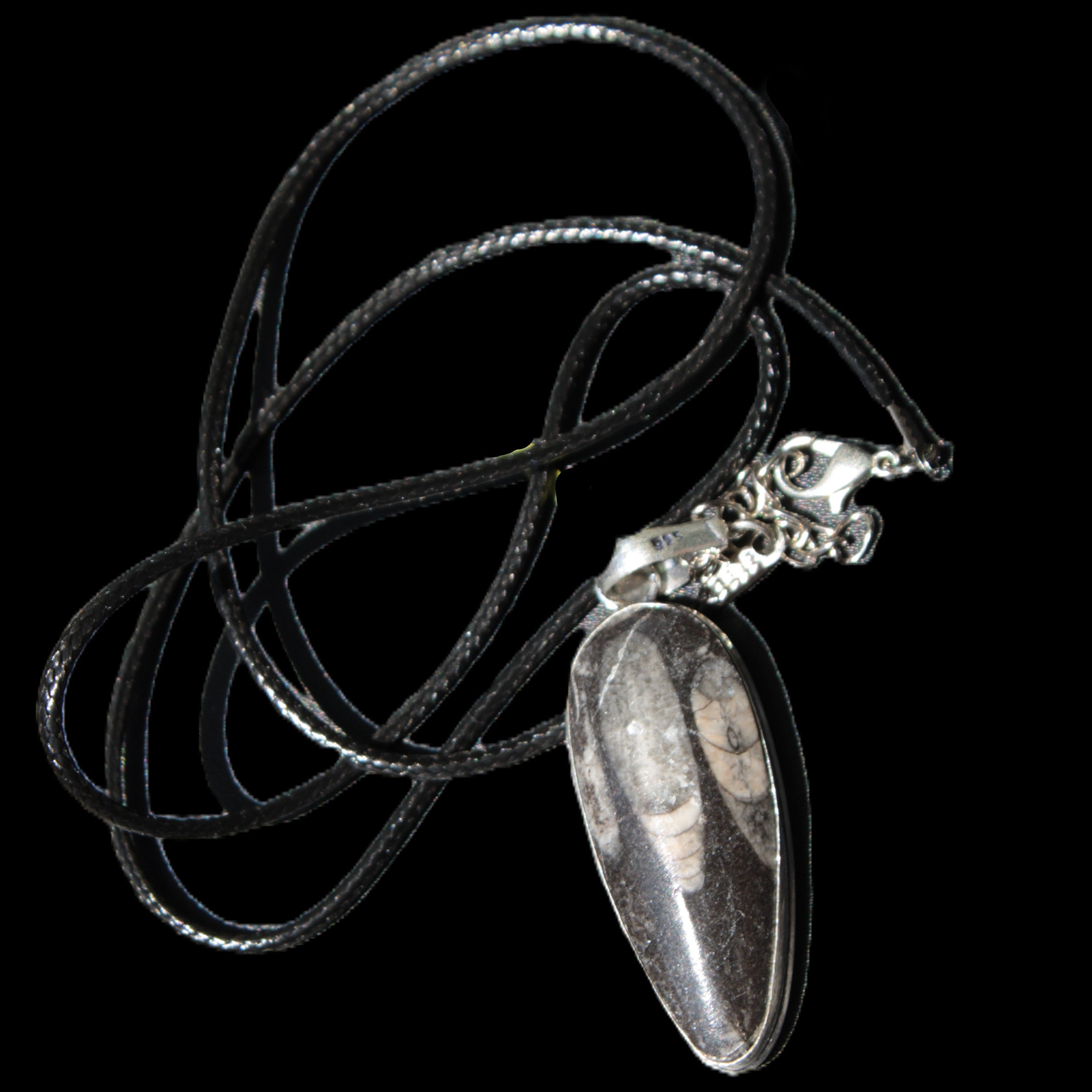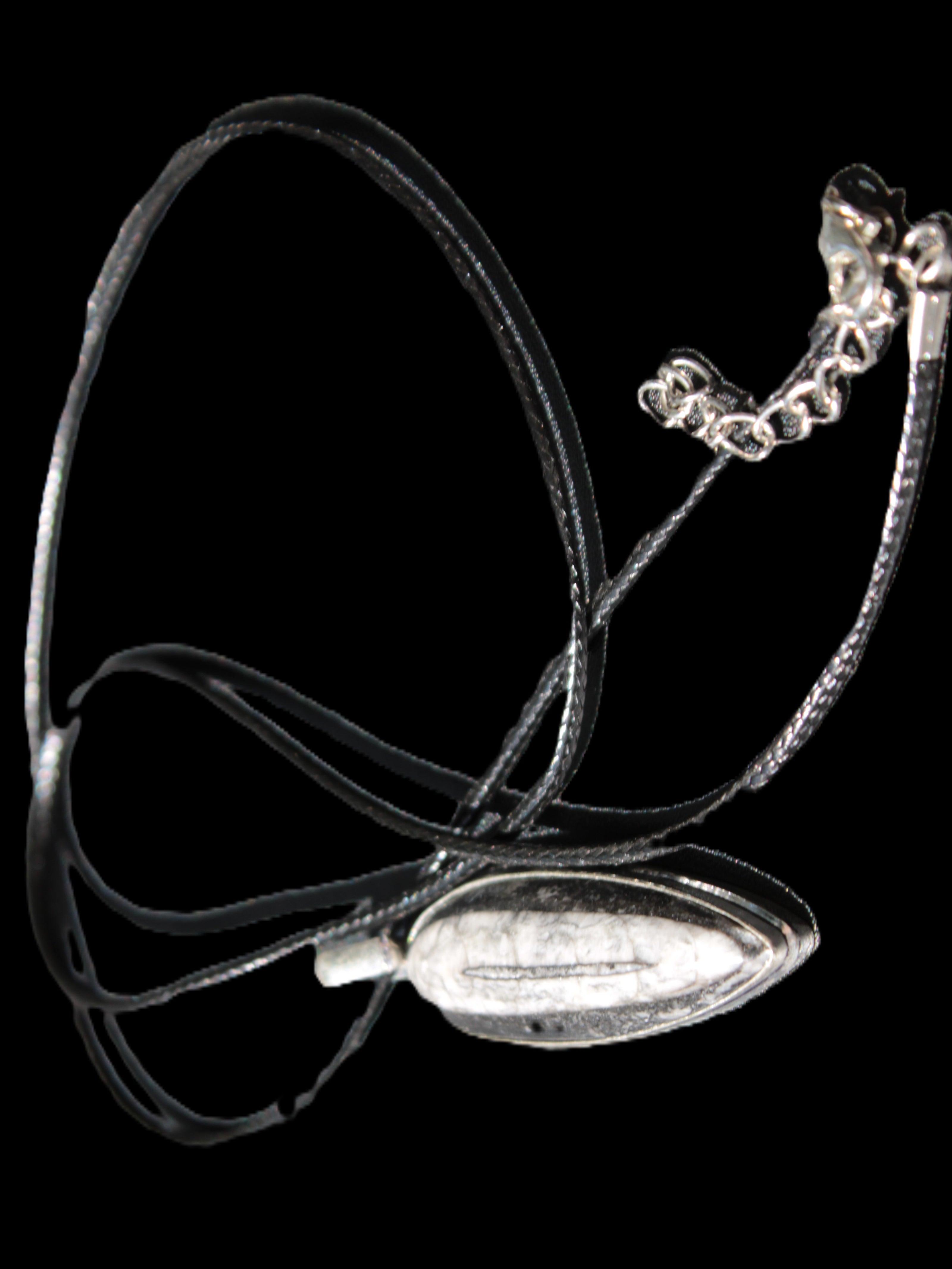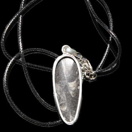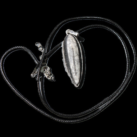 This Orthoceras silver-plated pendant with faux leather necklace selection is formed from the fossilised remains of Orthoceras. This fossil connects with transformative energies. Orthoceras activates the Root Chakra by grounding you with the ancient energy of Earth. It can push you on a path of transformation, helping you shift from who you were to becoming who you want to be.