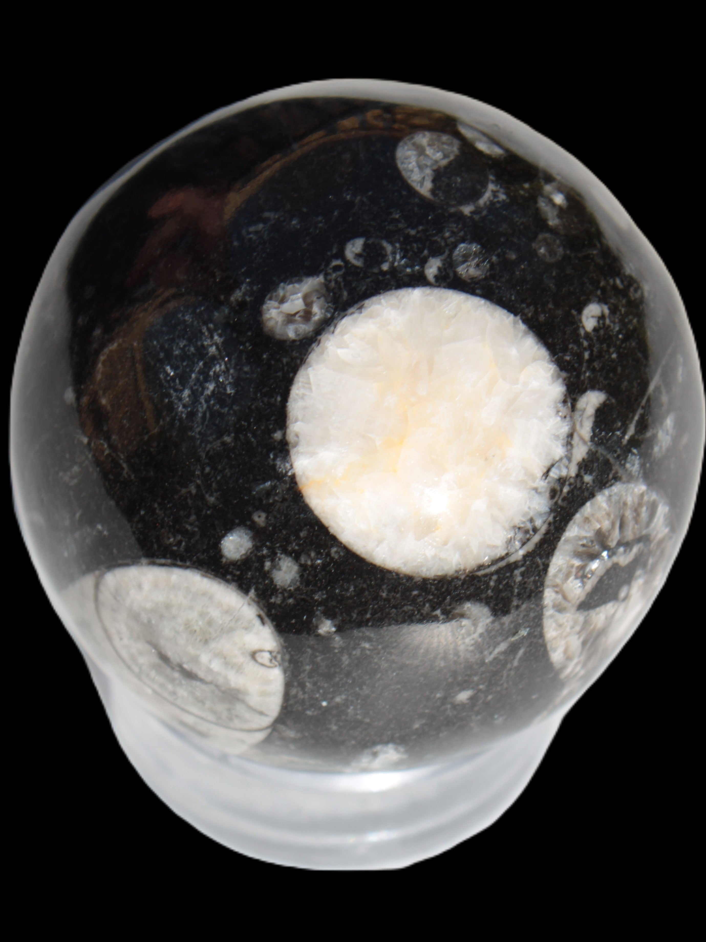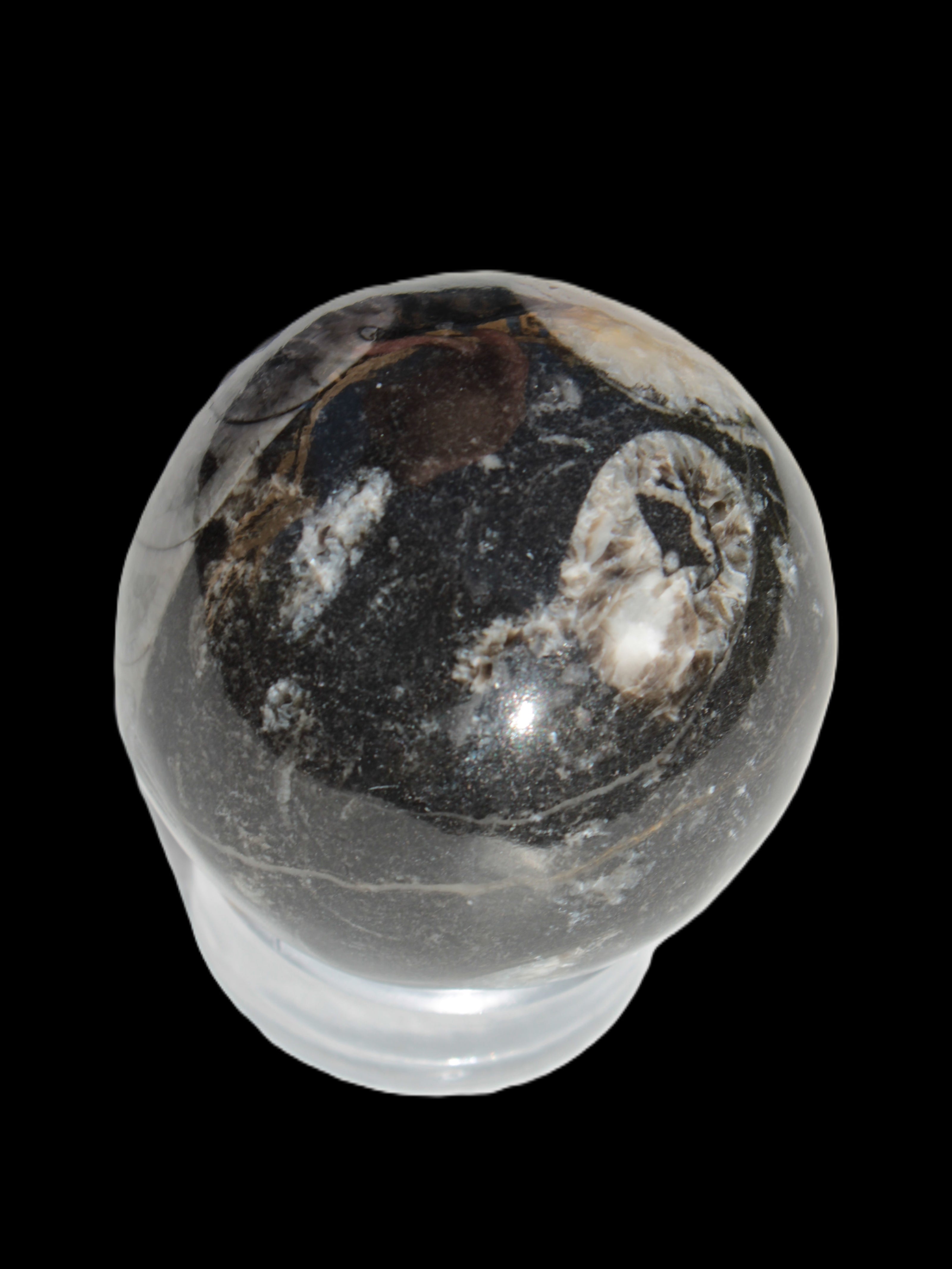 This medium-sized Orthoceras sphere 62mm could help shift you from who you were to become the person you want to be. Orthoceras is a stone of transformation. Orthoceras activates the Root Chakra by grounding you with the ancient energy of Earth.