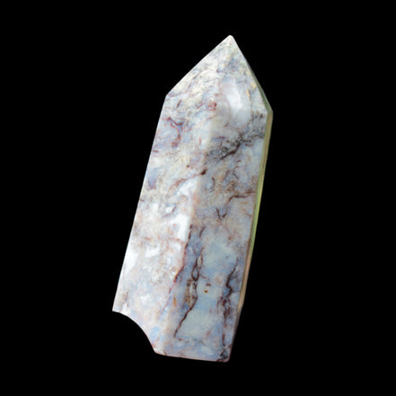 This Pietersite wand weighs 55g. Pietersite is an extremely rare form of Chalcedony only found in Namibia. It has formed through the replacement of Asbestos in the crevices of beds of Jasper. It features embedded and altered amphibole-mineral fibres. These altered fibres can have blue-gray, brown and yellow colours. The fibres cause a chatoyancy similar to that of Tiger's Eye (which is not a chalcedony).