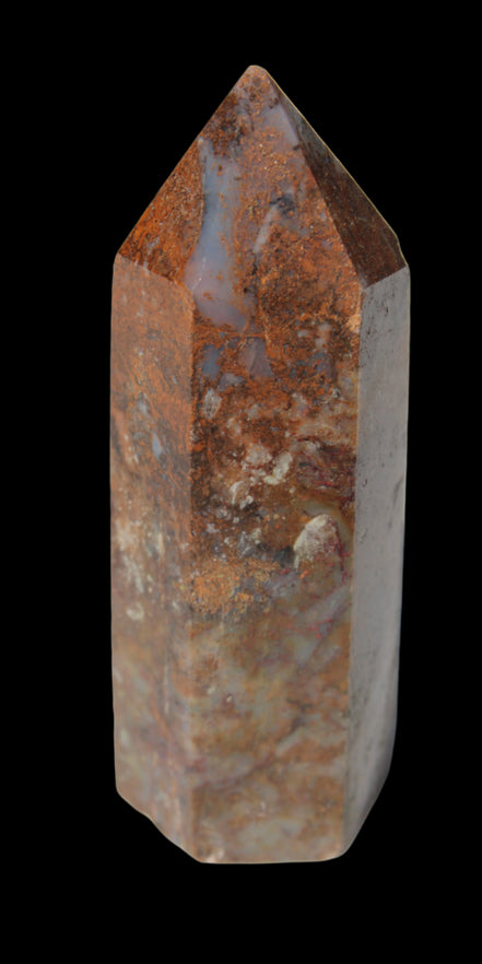 This Pietersite wand weighs 78g. Pietersite is an extremely rare form of Chalcedony only found in Namibia. It has formed through the replacement of Asbestos in the crevices of beds of Jasper. It features embedded and altered amphibole-mineral fibres. These altered fibres can have blue-gray, brown and yellow colours. The fibres cause a chatoyancy similar to that of Tiger's Eye (which is not a chalcedony).