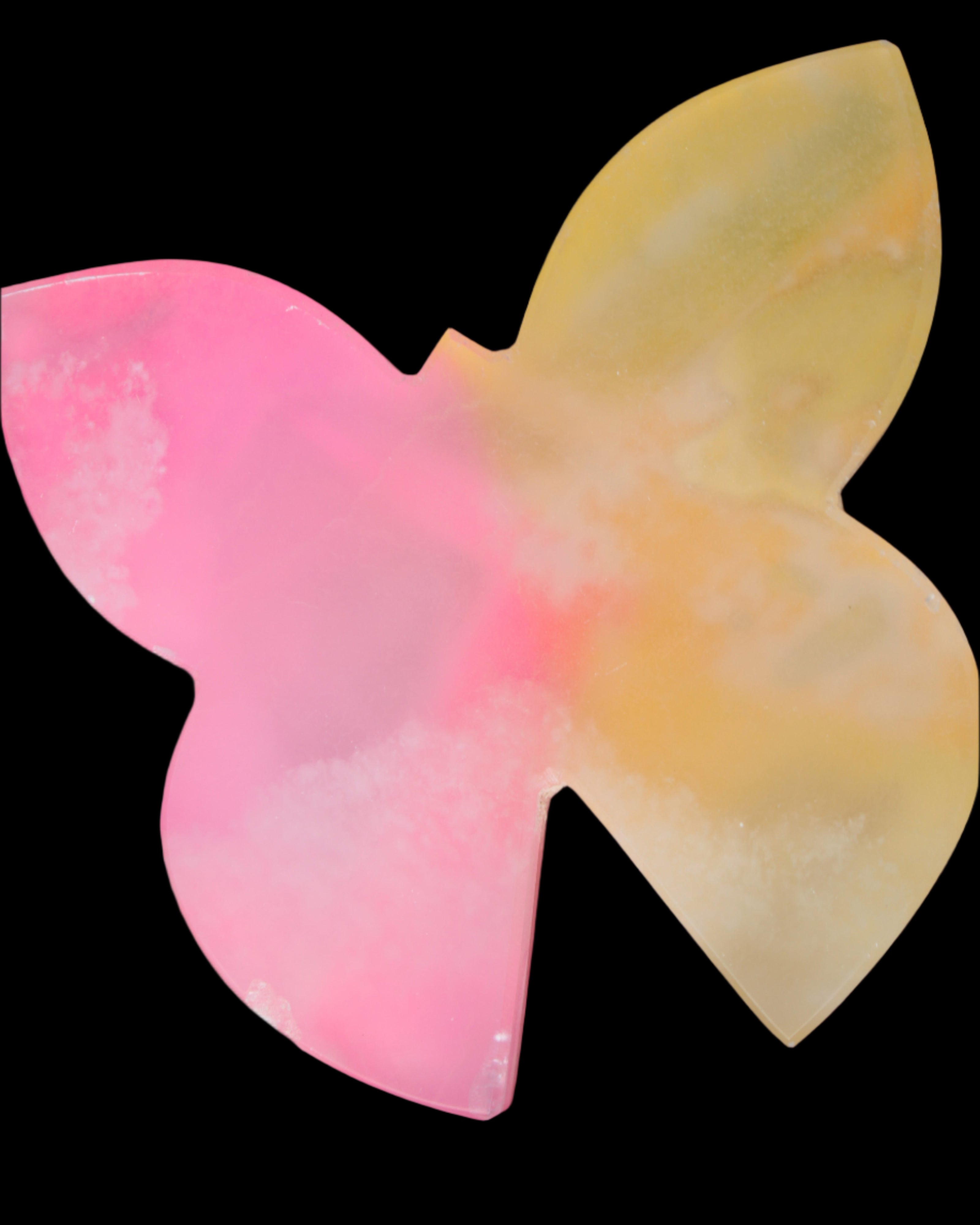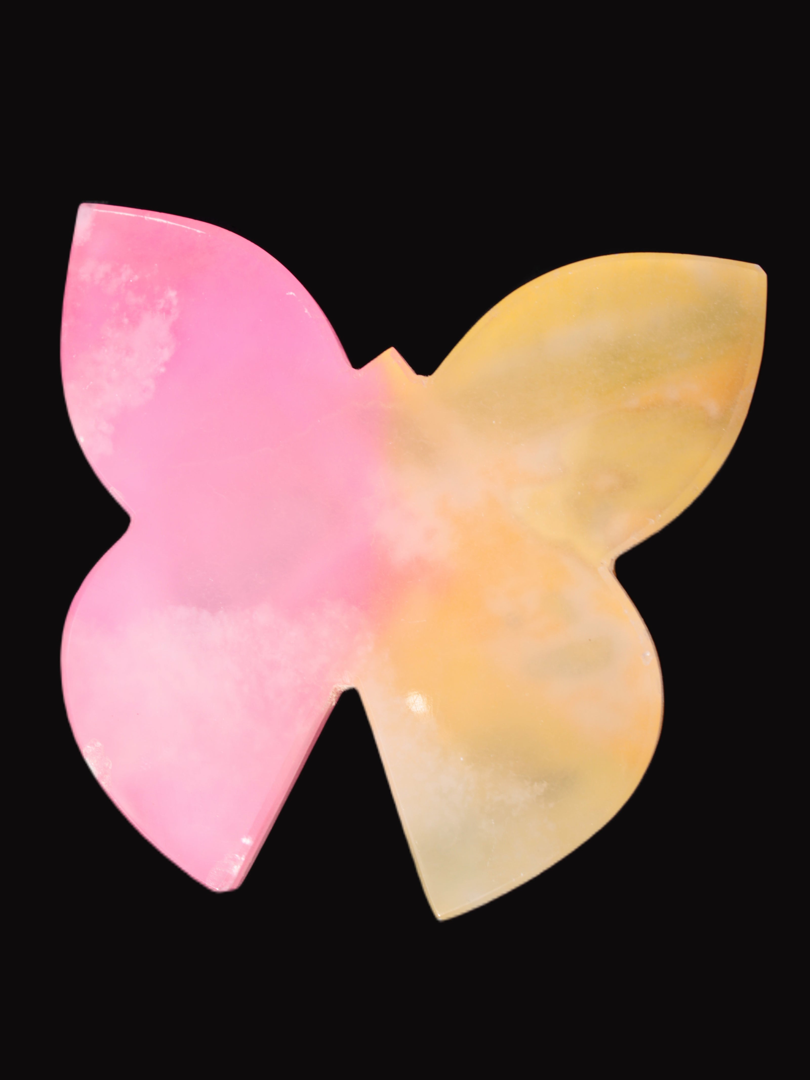 Pink and yellow Butterfly hand-carved in dyed Calcite from Pakistan 106*15*106mm 276g