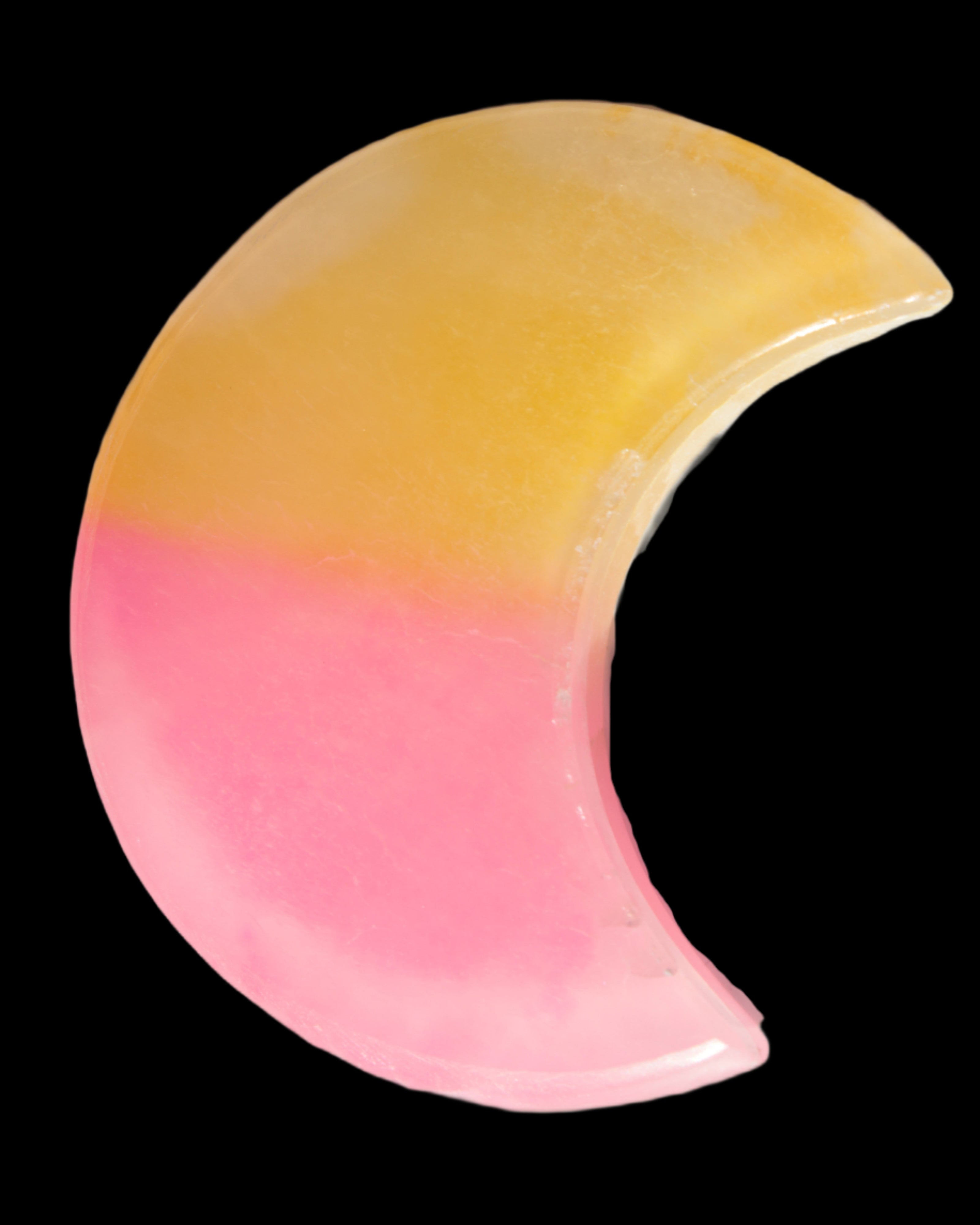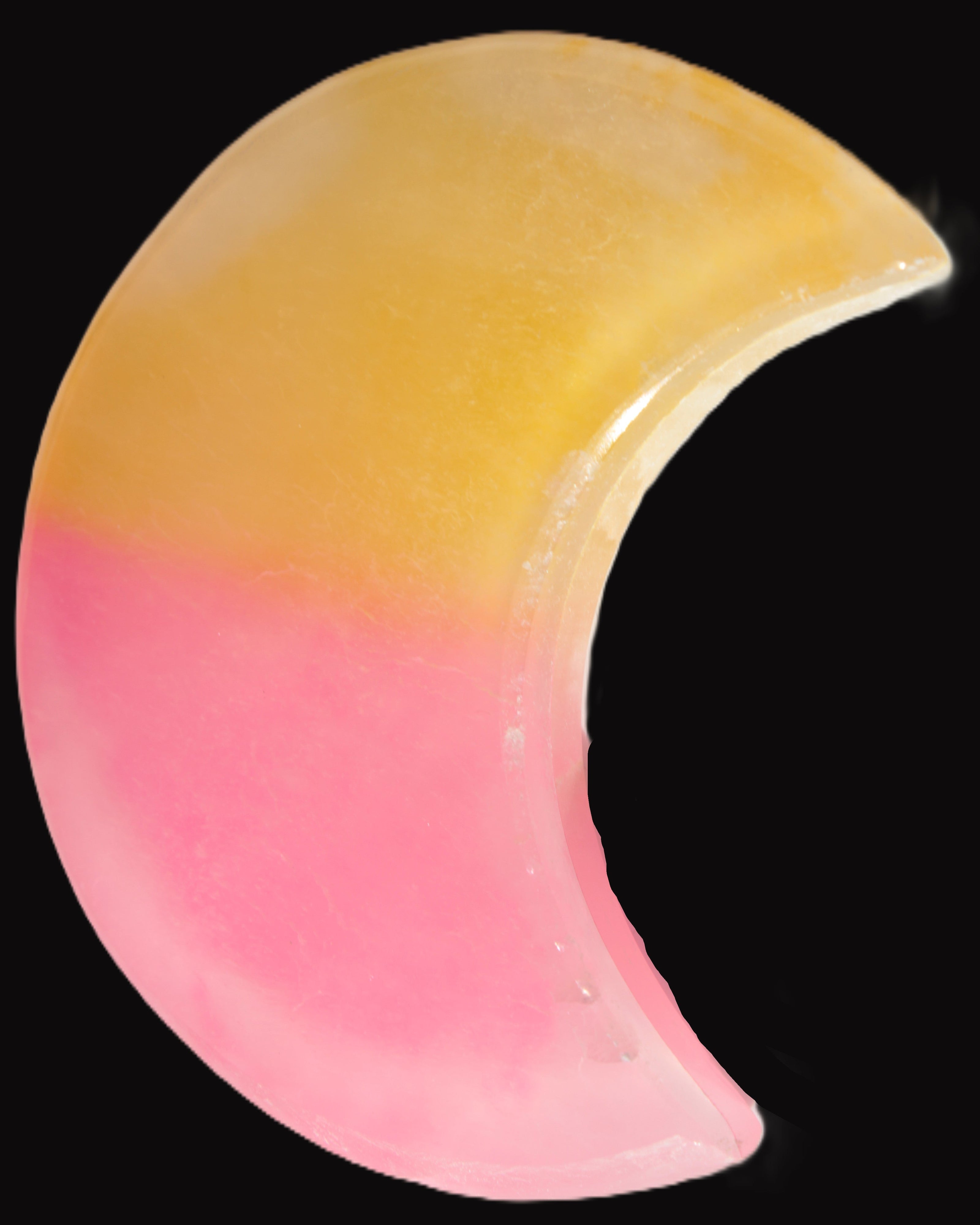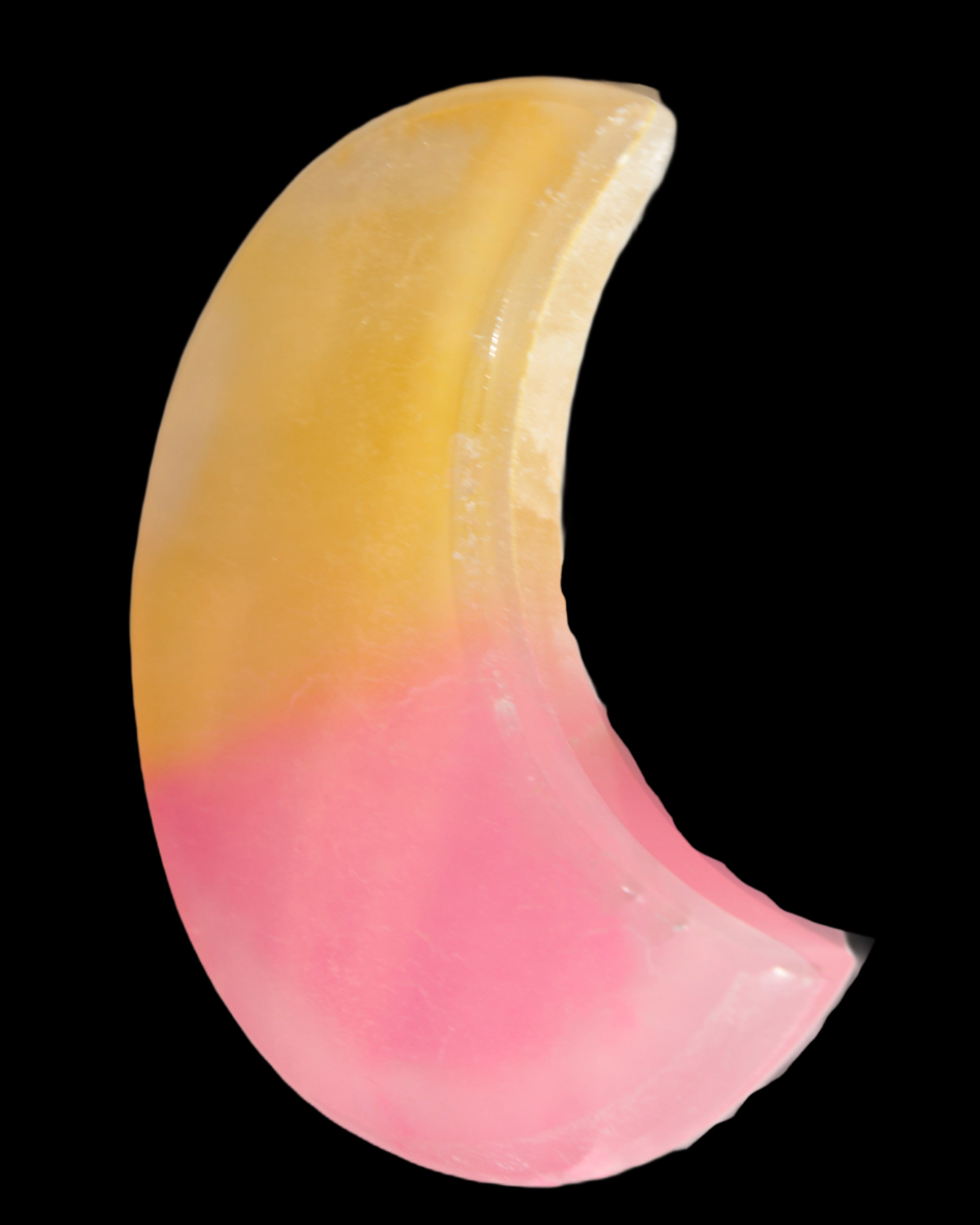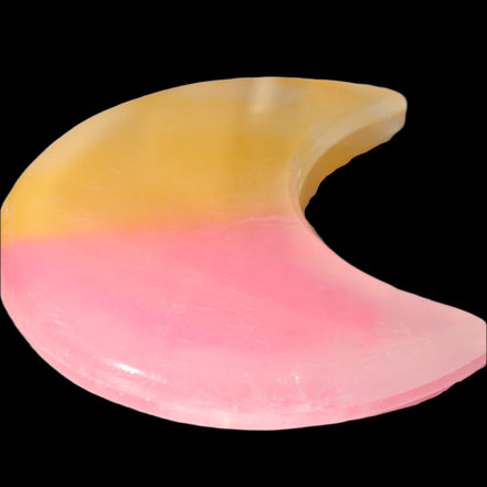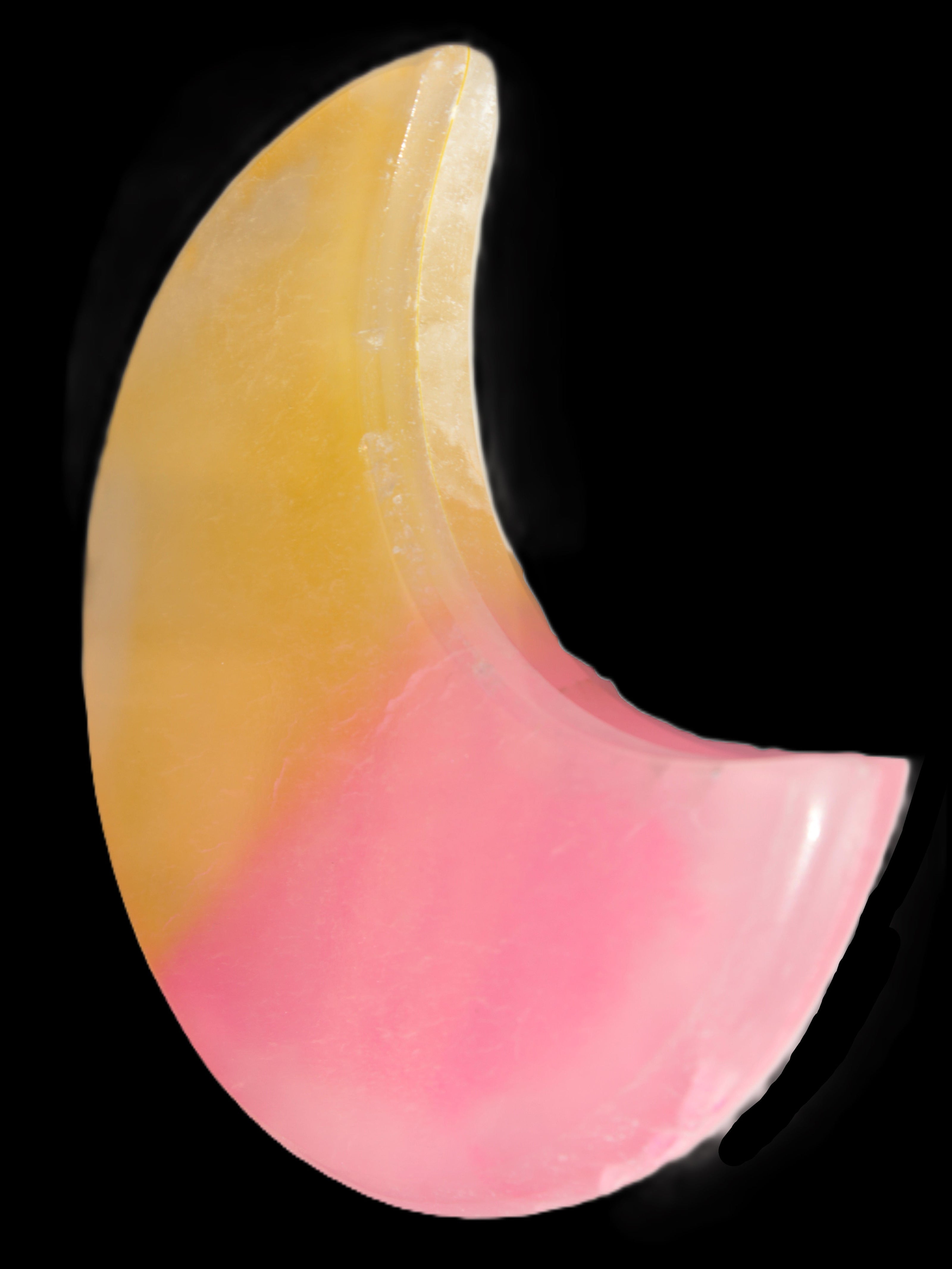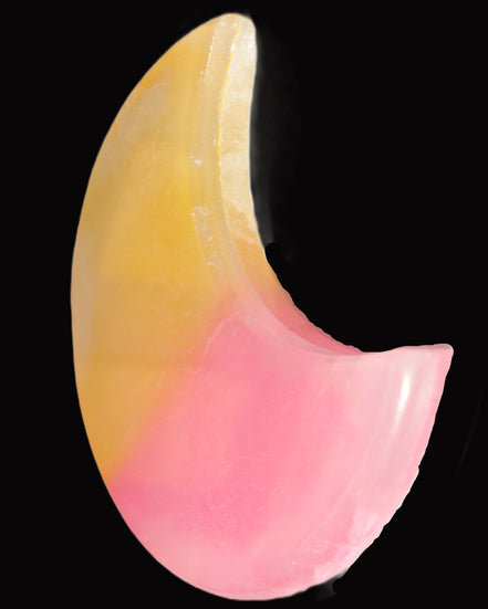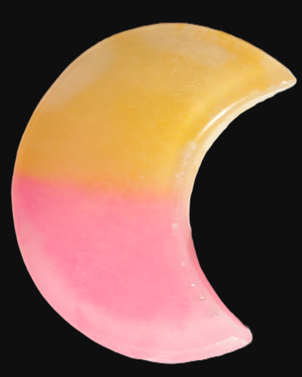 Calcite Pink and Yellow dyed crescent moon 90*100*14mm 201g