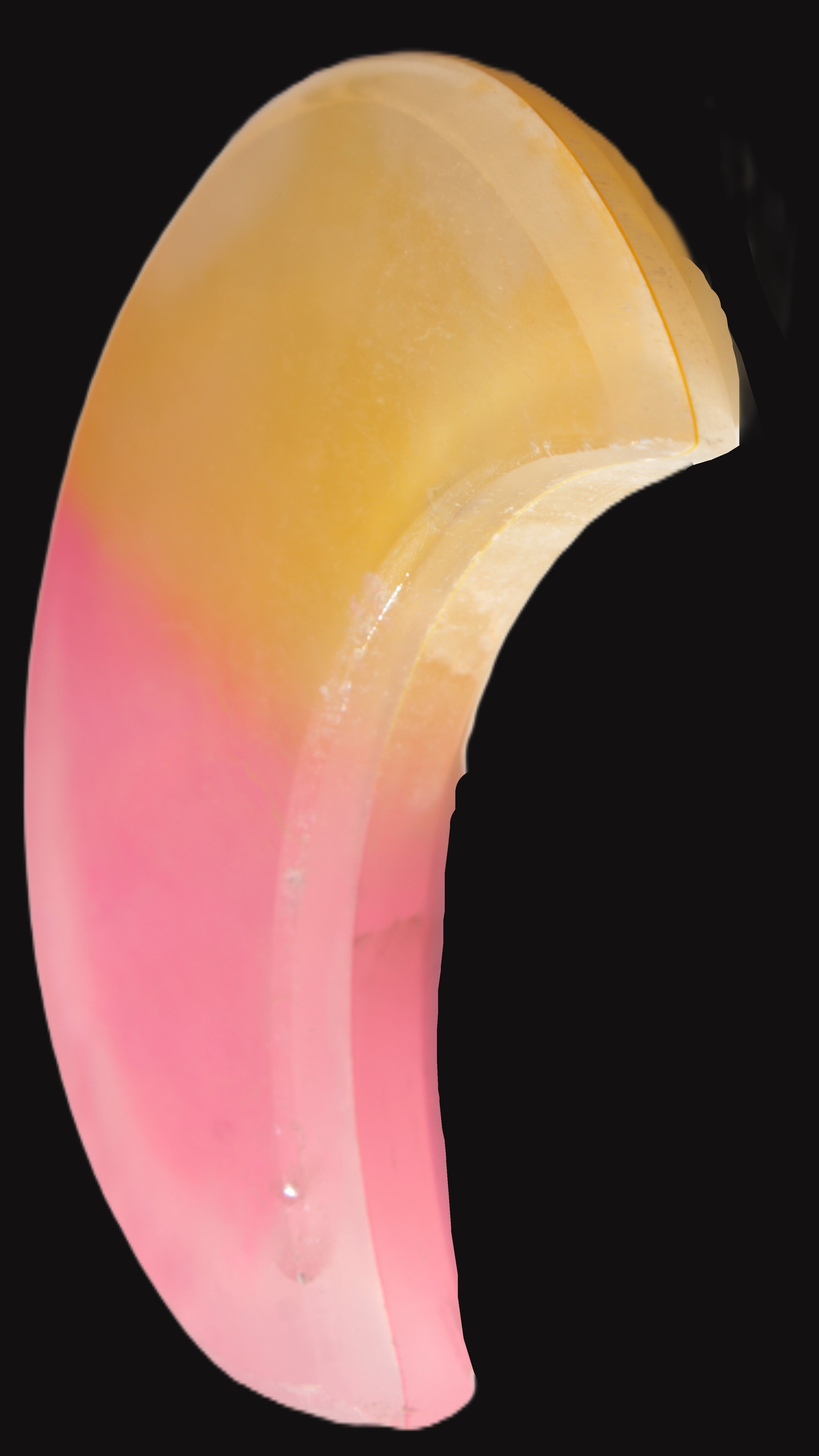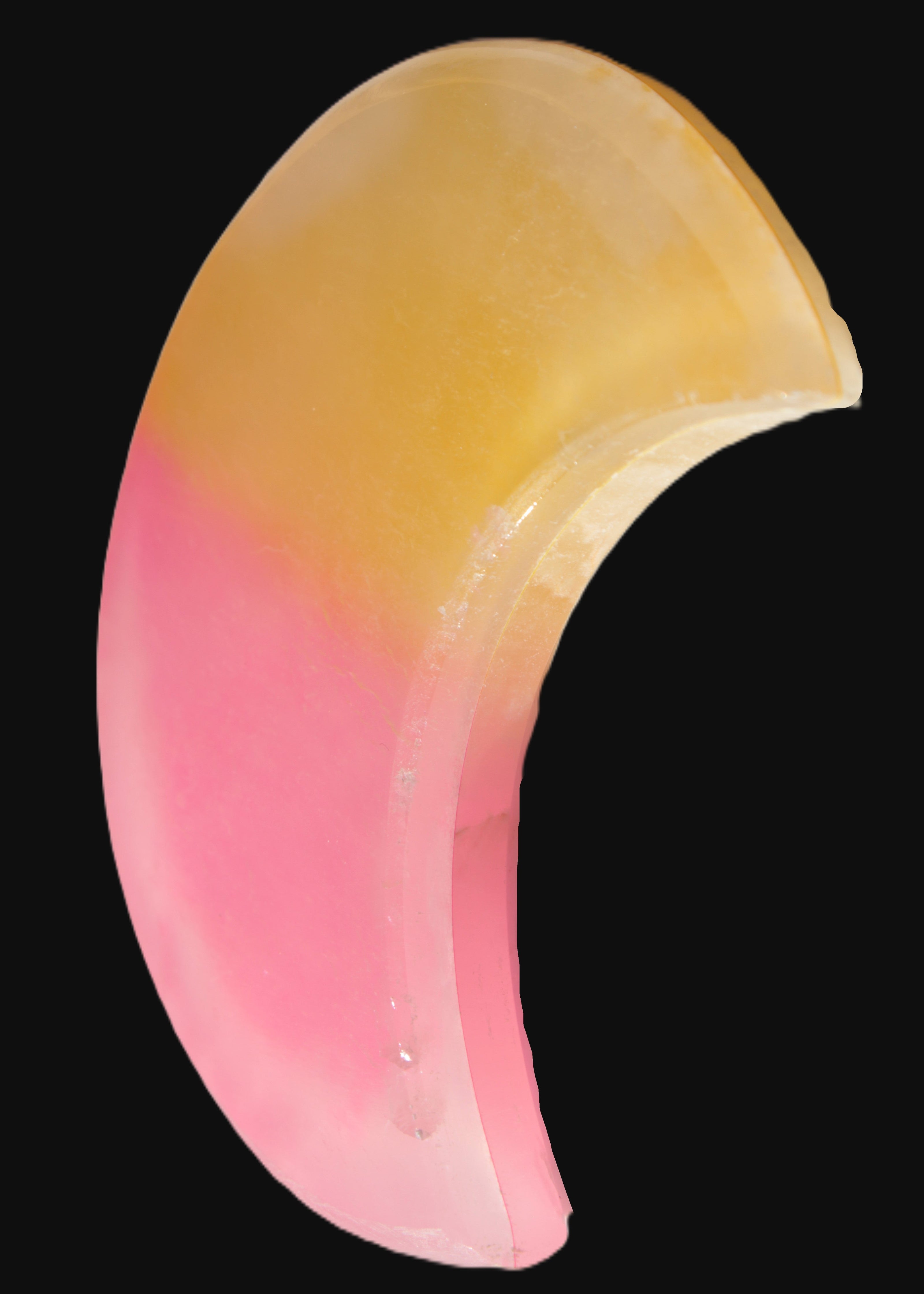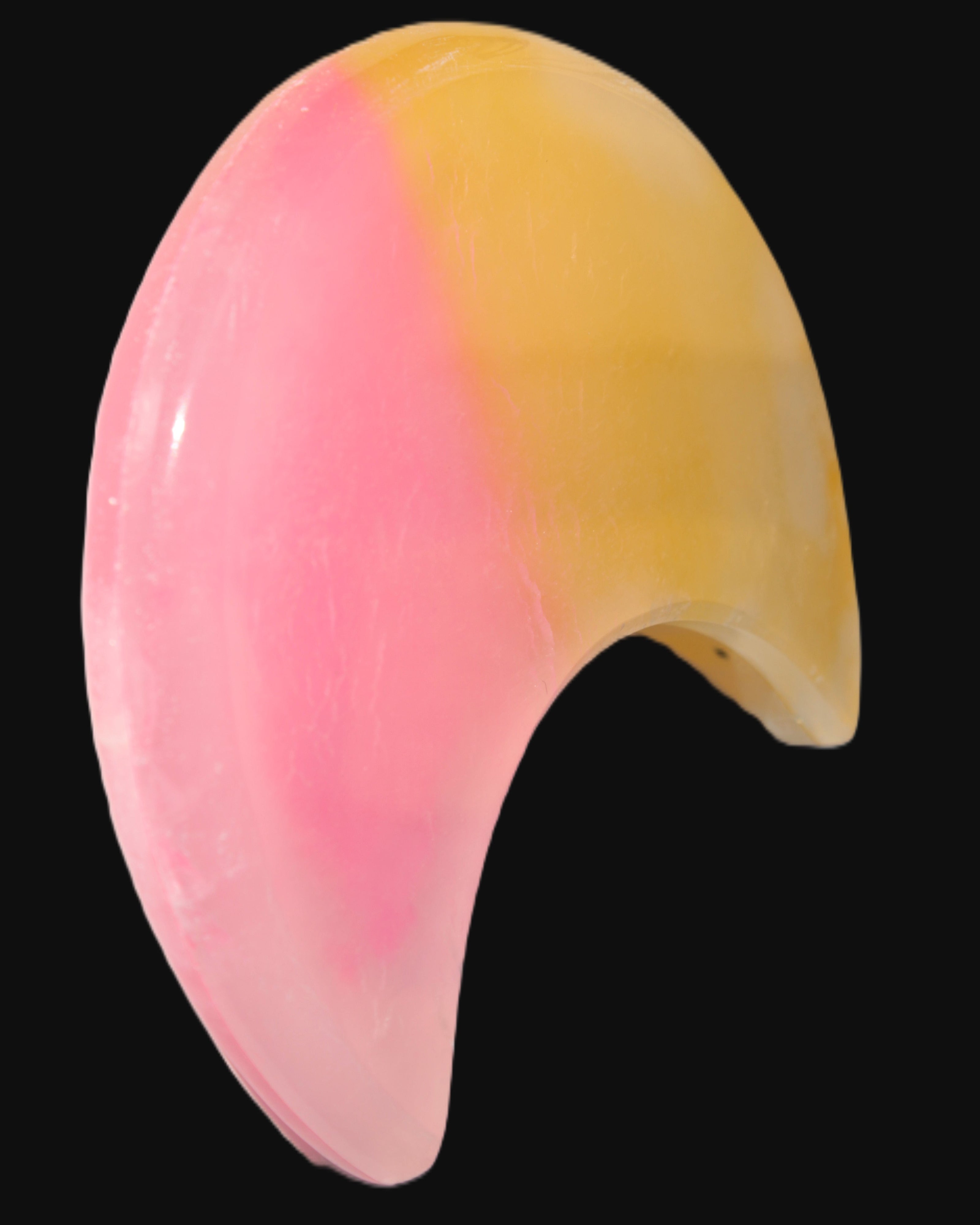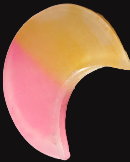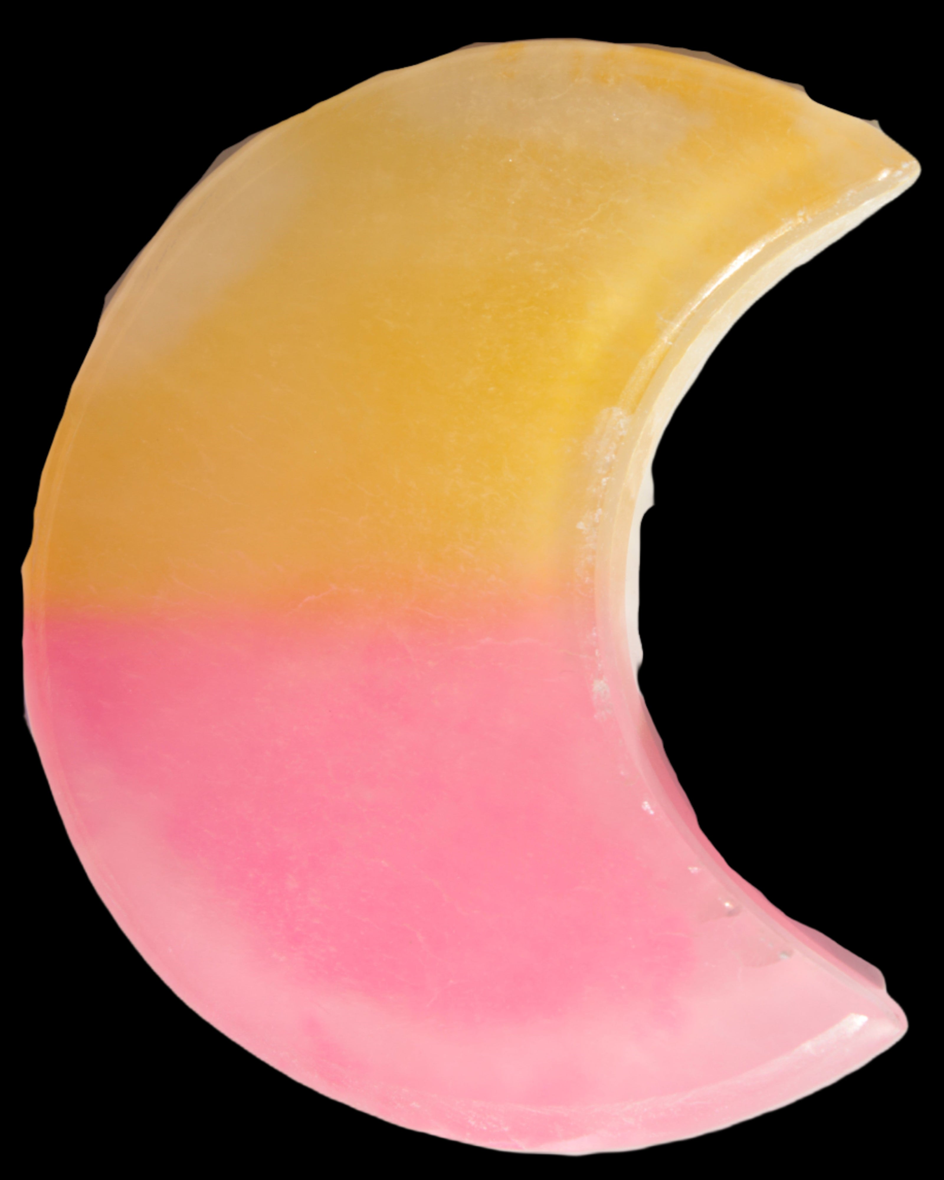 Calcite Pink and Yellow dyed crescent moon 90*100*14mm 201g