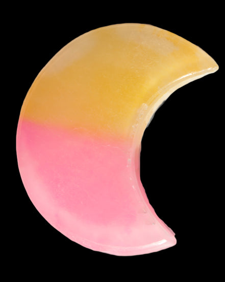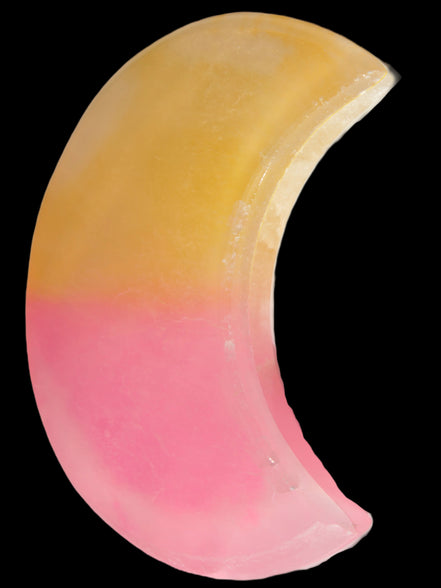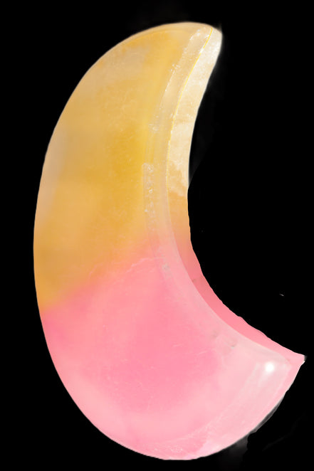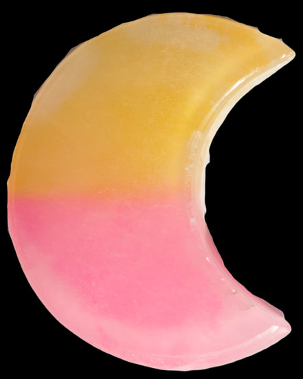 Pink and Yellow dyed Calcite crescent moon 90*100*14mm 201g in sunlight - Rocks and Things Store