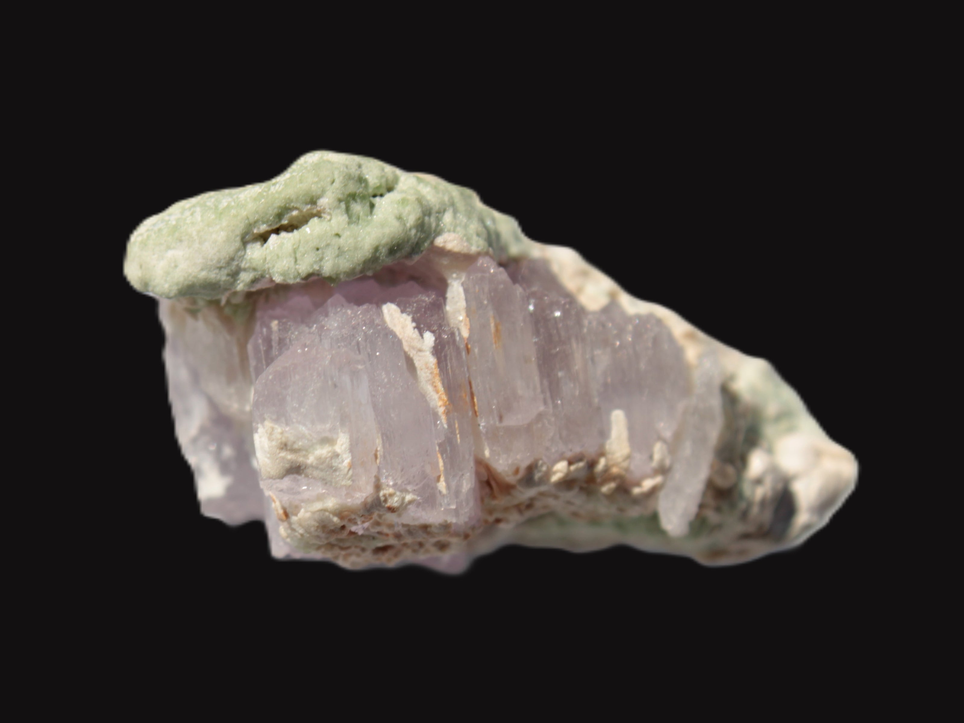 This Pink Kunzite crystal is in its natural state. The interesting matrix includes Lepidolite. All of this makes for a great specimen from Afghanistan. It was sourced there for us by our partner, Lawrence Handicrafts.