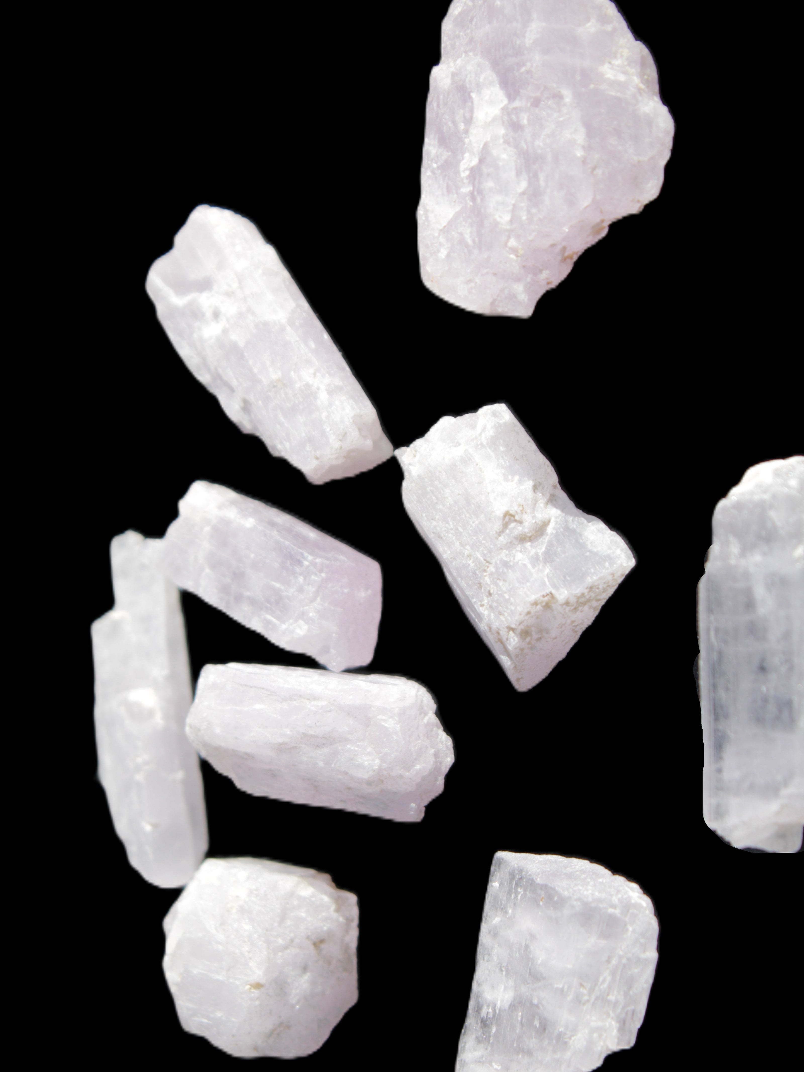 Pink/Lilac Kunzite 9 larger crystals from Afghanistan 21-35mm 90g Wholesale