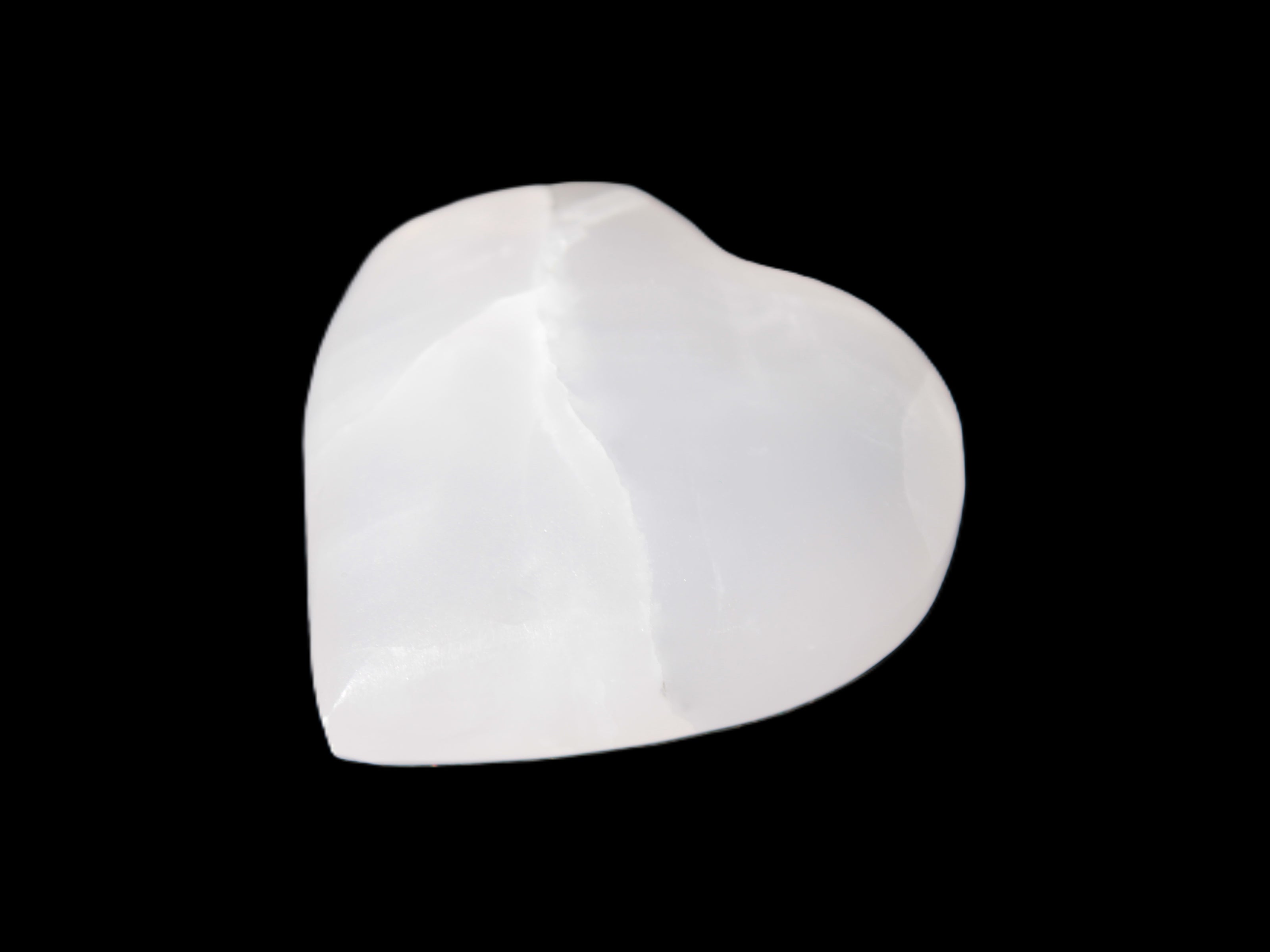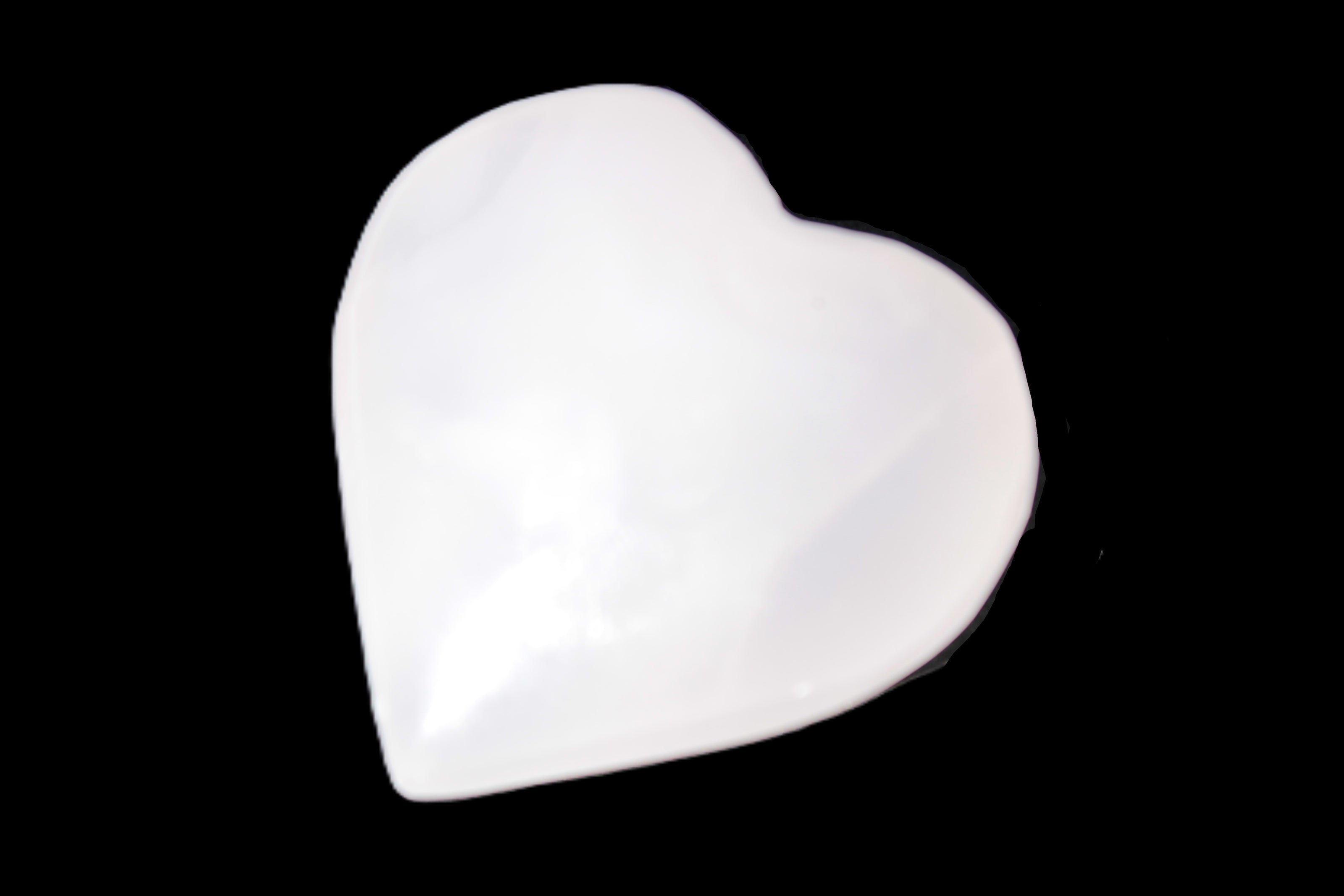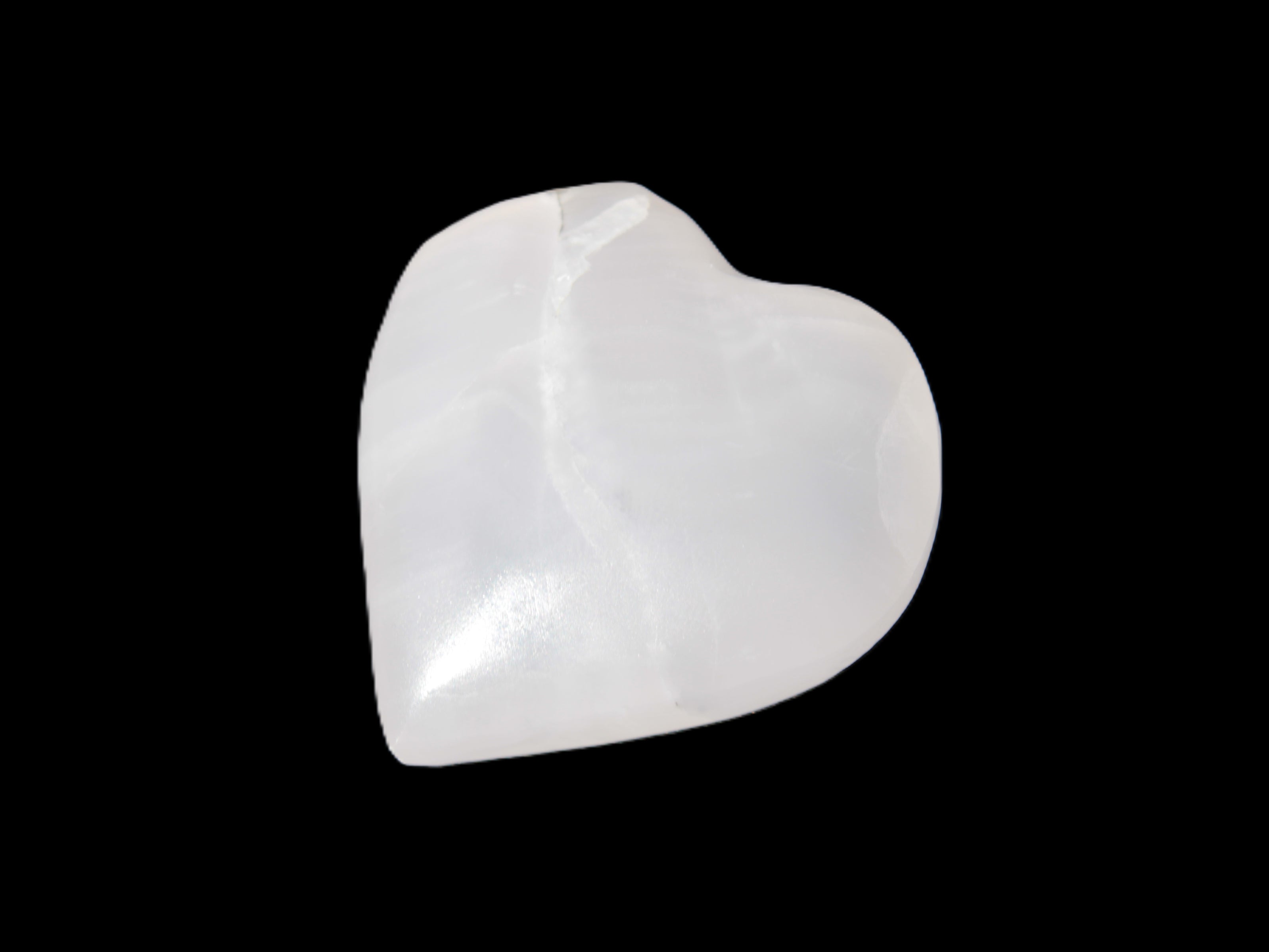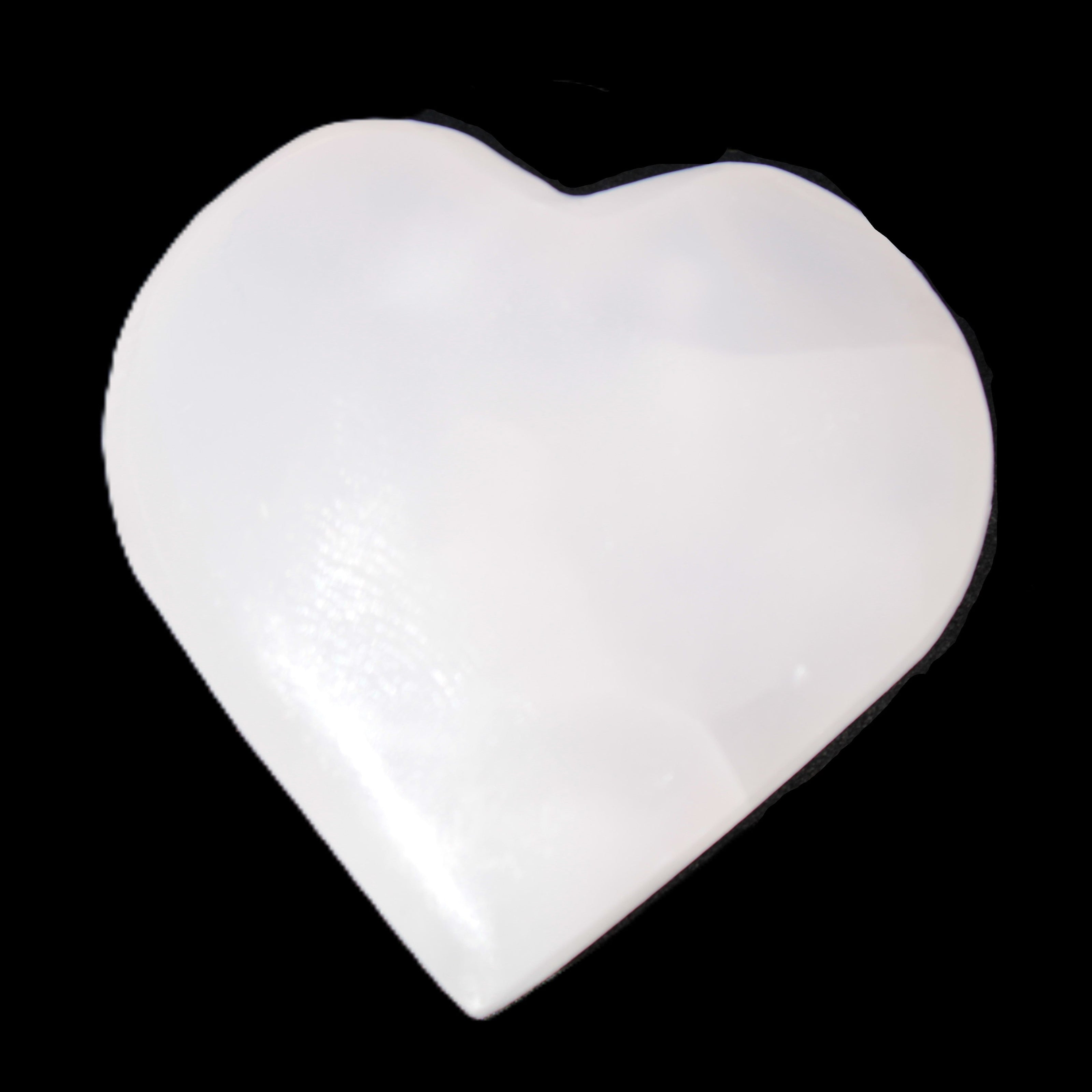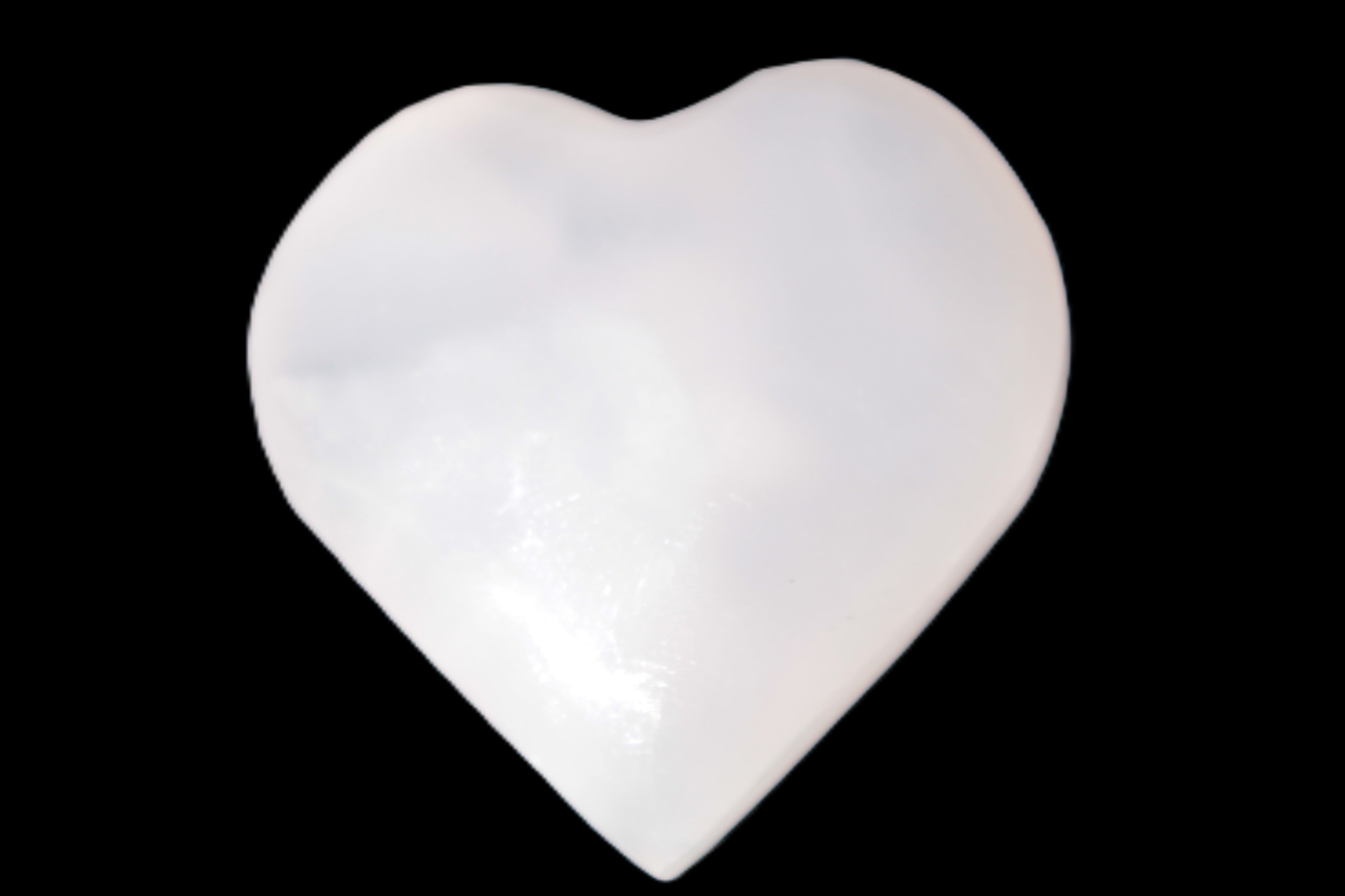 This Pink Mangano Calcite heart 41-44mm selection weighs 44-49g. They were shaped by Lawrence Handicrafts in Karachi, Pakistan. Each is a hot pink heart under ultra-violet light. They were crafted exclusively for Rocks and Things from local stone found only in Pakistan. Mangano Calcite is a calcium carbonate mineral with a minimum of 30 per cent manganese carbonate present. Mangano Calcite glows hot pink under UV light due to the presence of manganese. The calcium and manganese carbonates can be banded. Mangano helps reveal your true self. Mangano Calcite can help bring inner peace, through a process of self-discovery. Each heart is between 41-44mm wide.