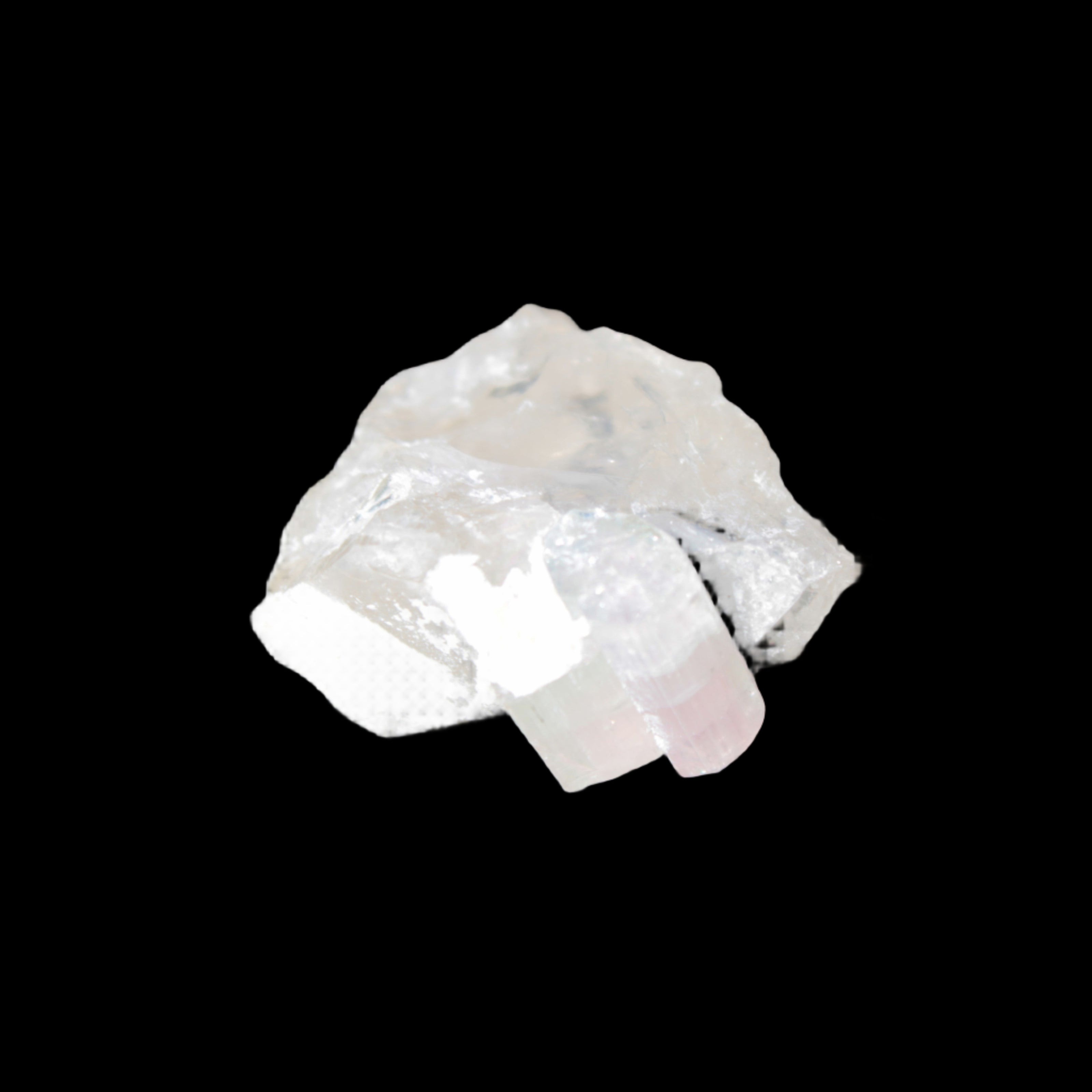 Pink with faint Green Watermelon Tourmaline 11mm on Clear Quartz 48ct 9.6g - Rocks and Things Store