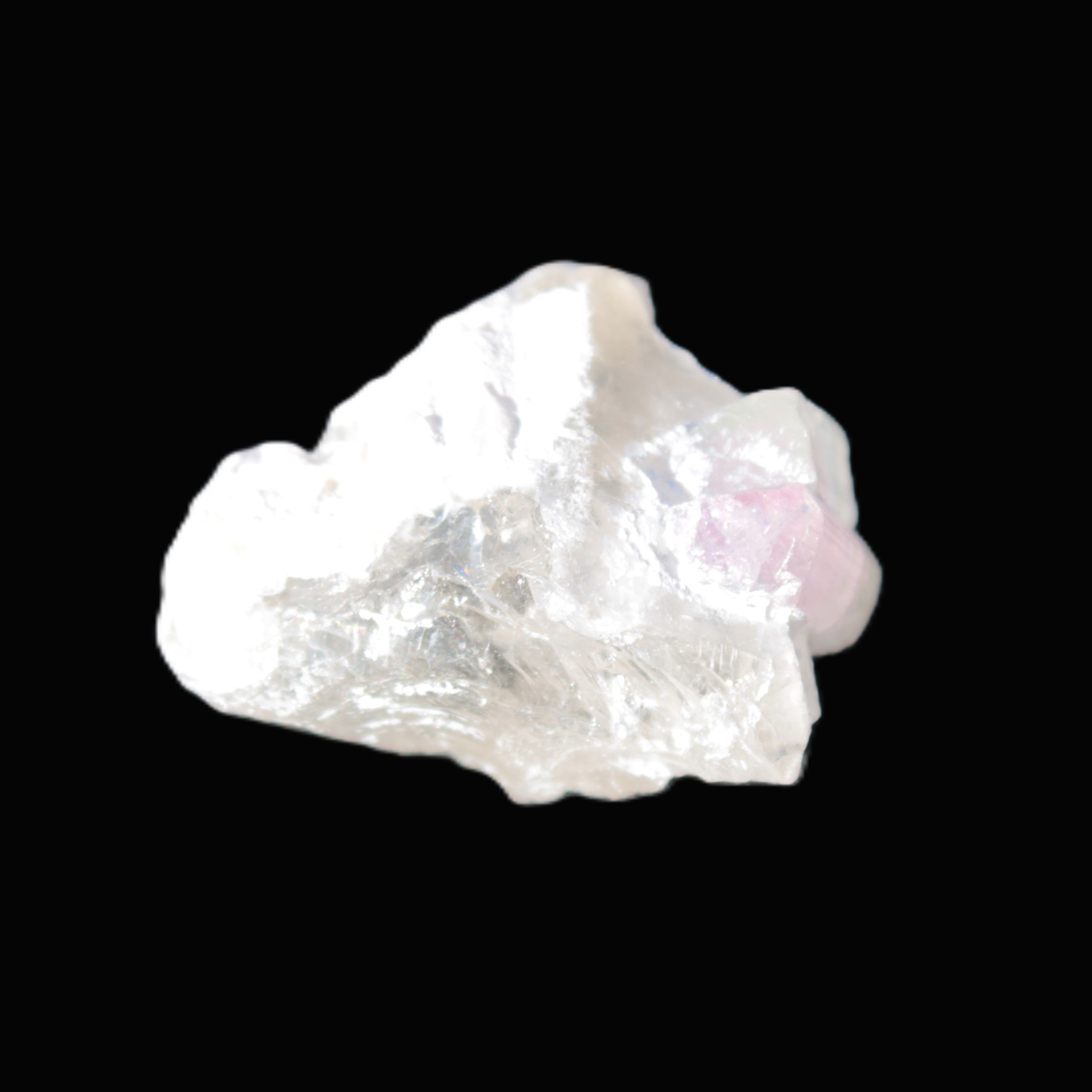 This Pink with faint Green Watermelon Tourmaline 11mm on Clear Quartz weighs 48ct or 9.6g. This great specimen features twinned Elbaite crystals on a complex Clear Quartz. The Elbaite is distinctly Pink at one end and changes to a faint green, especially on the longer 11mm crystal. The cluster was sourced in Pakistan for Rocks and Things Store by our partner, Lawrence Handicrafts.