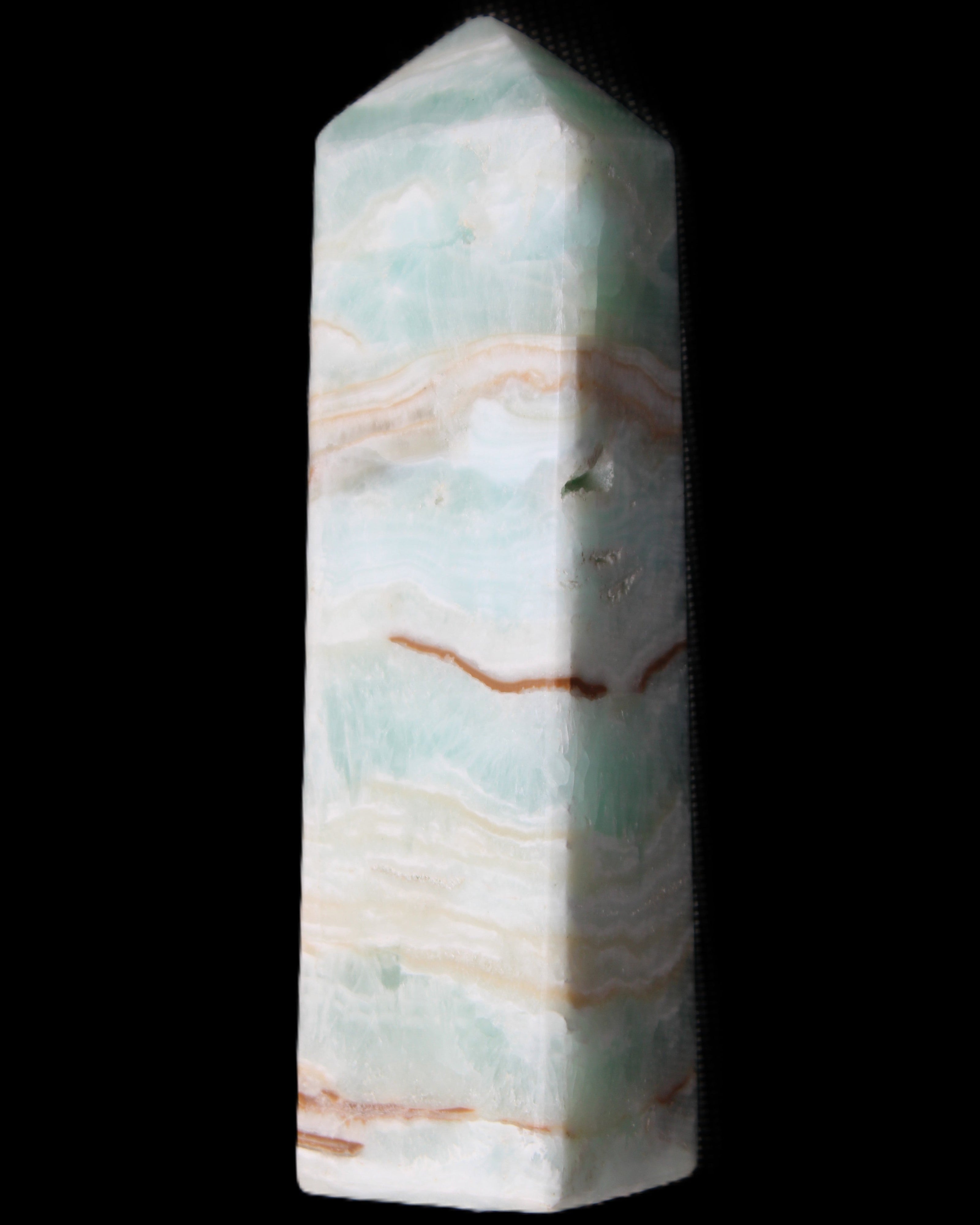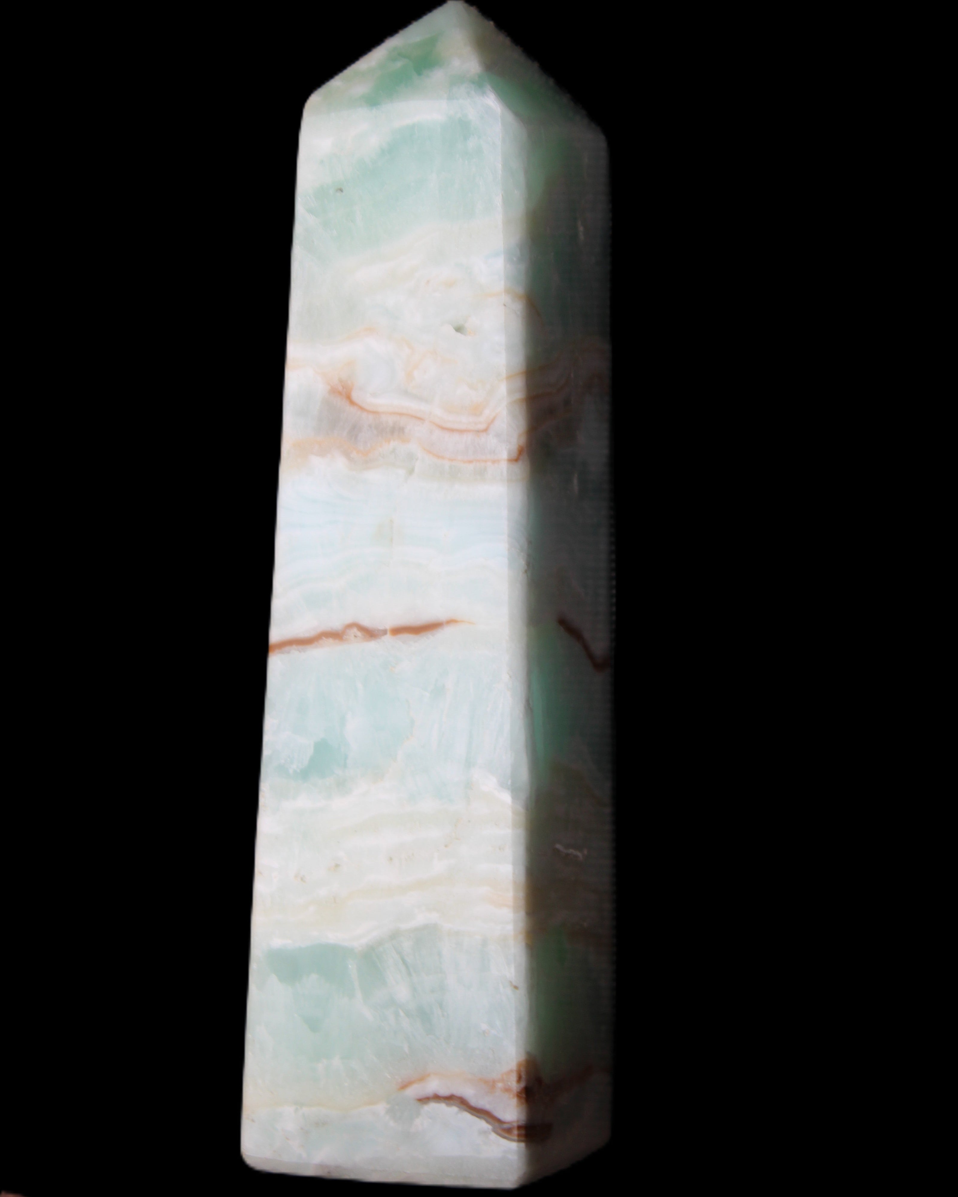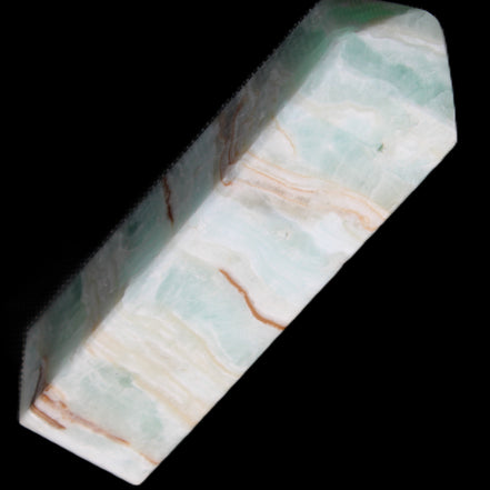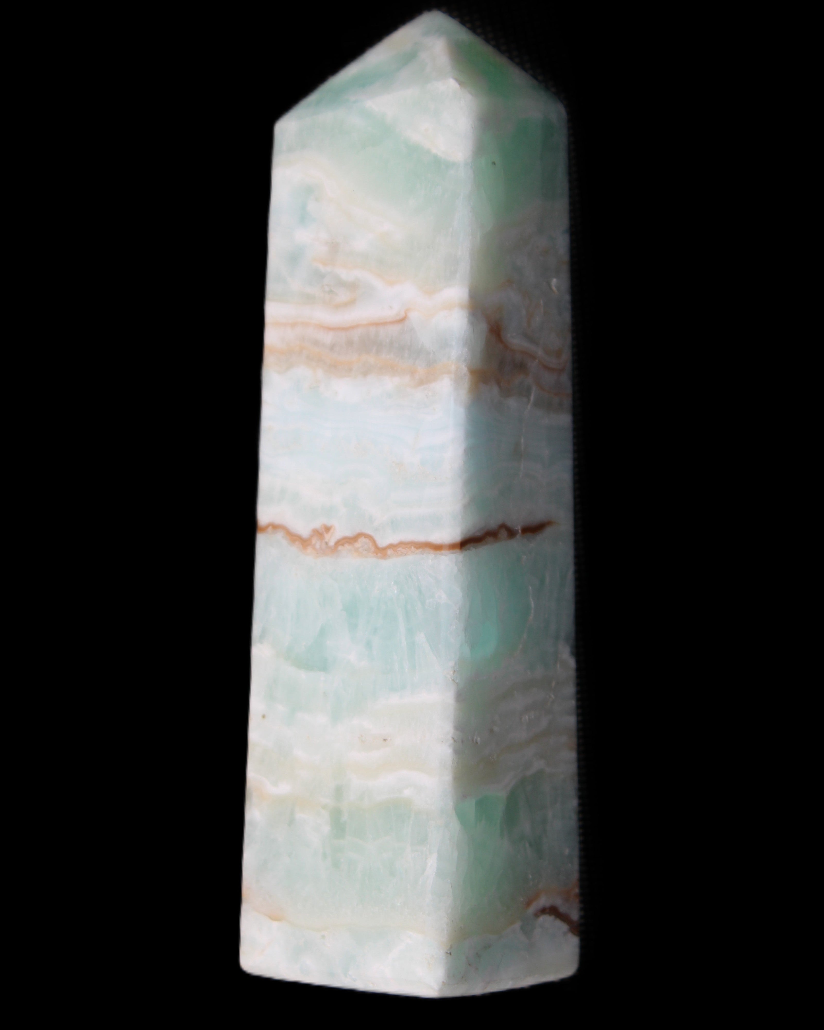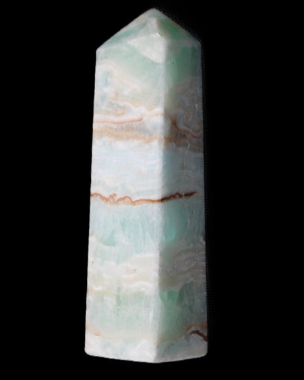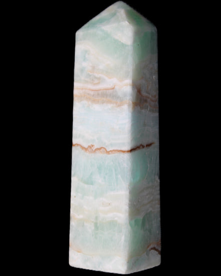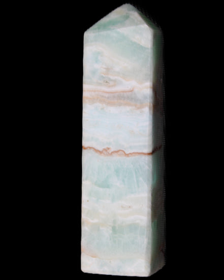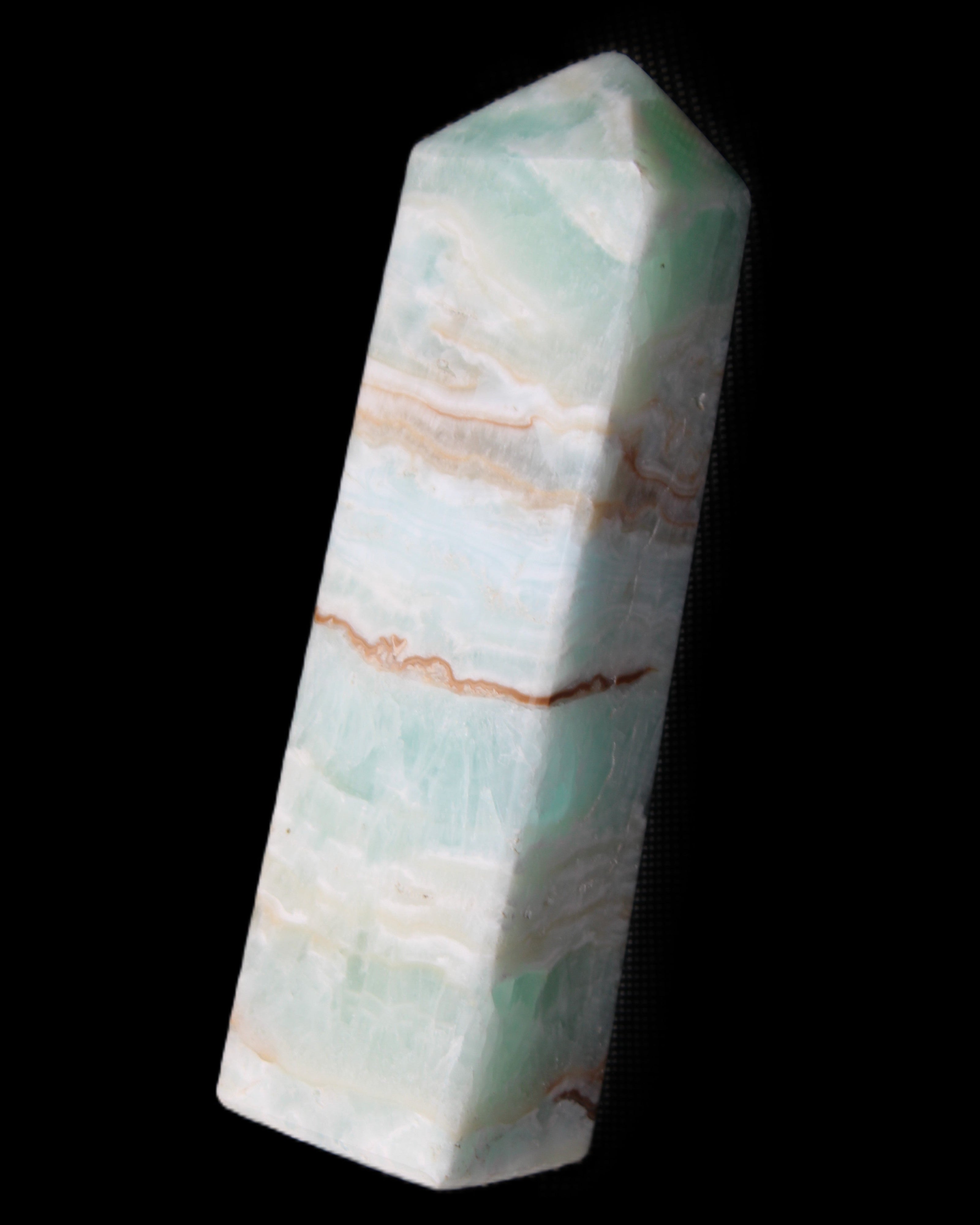 This Pistachio calcite obelisk 130mm weighs 332g. Pistachio is a rarer variety of Caribbean Calcite and is actually Aragonite. It is found in Pakistan.