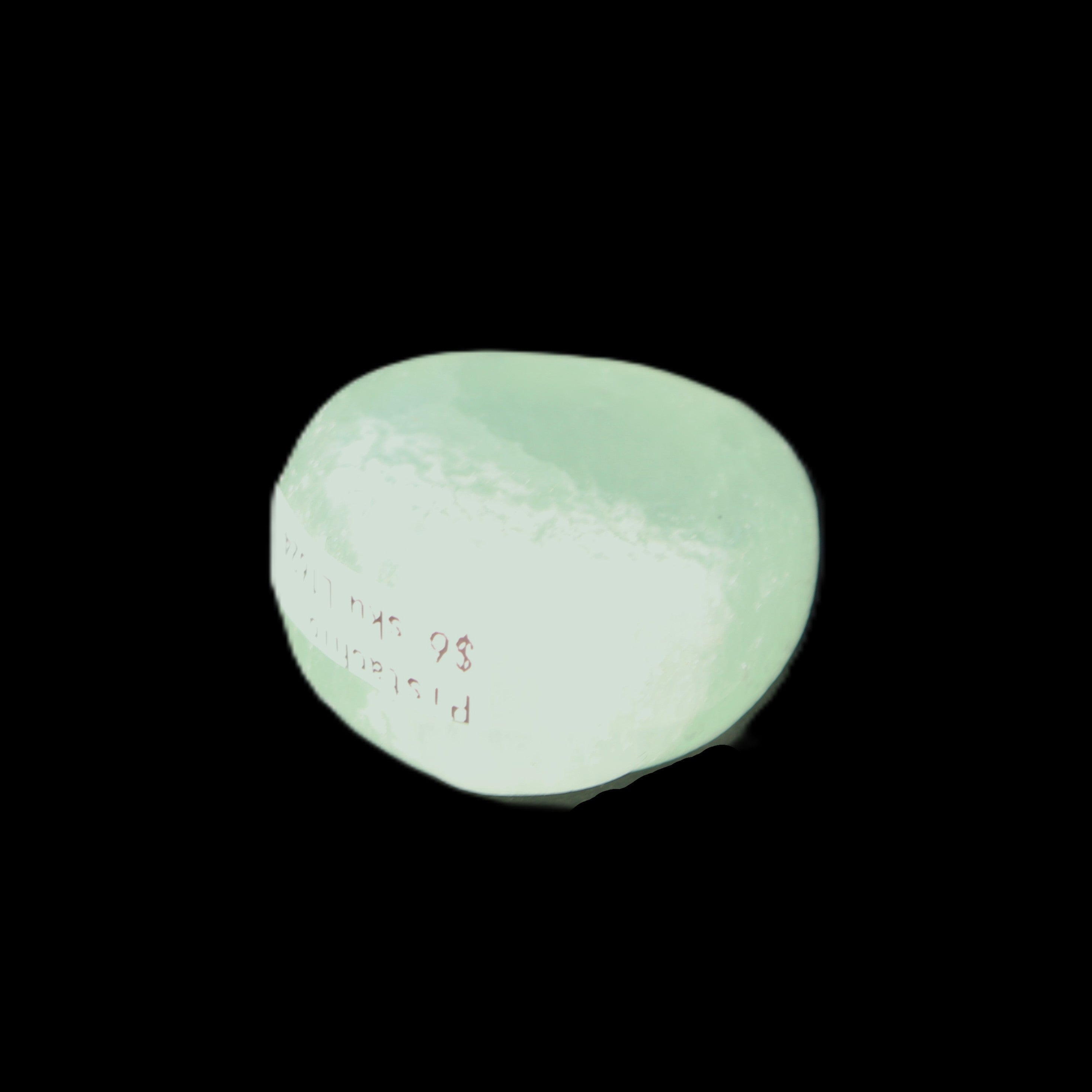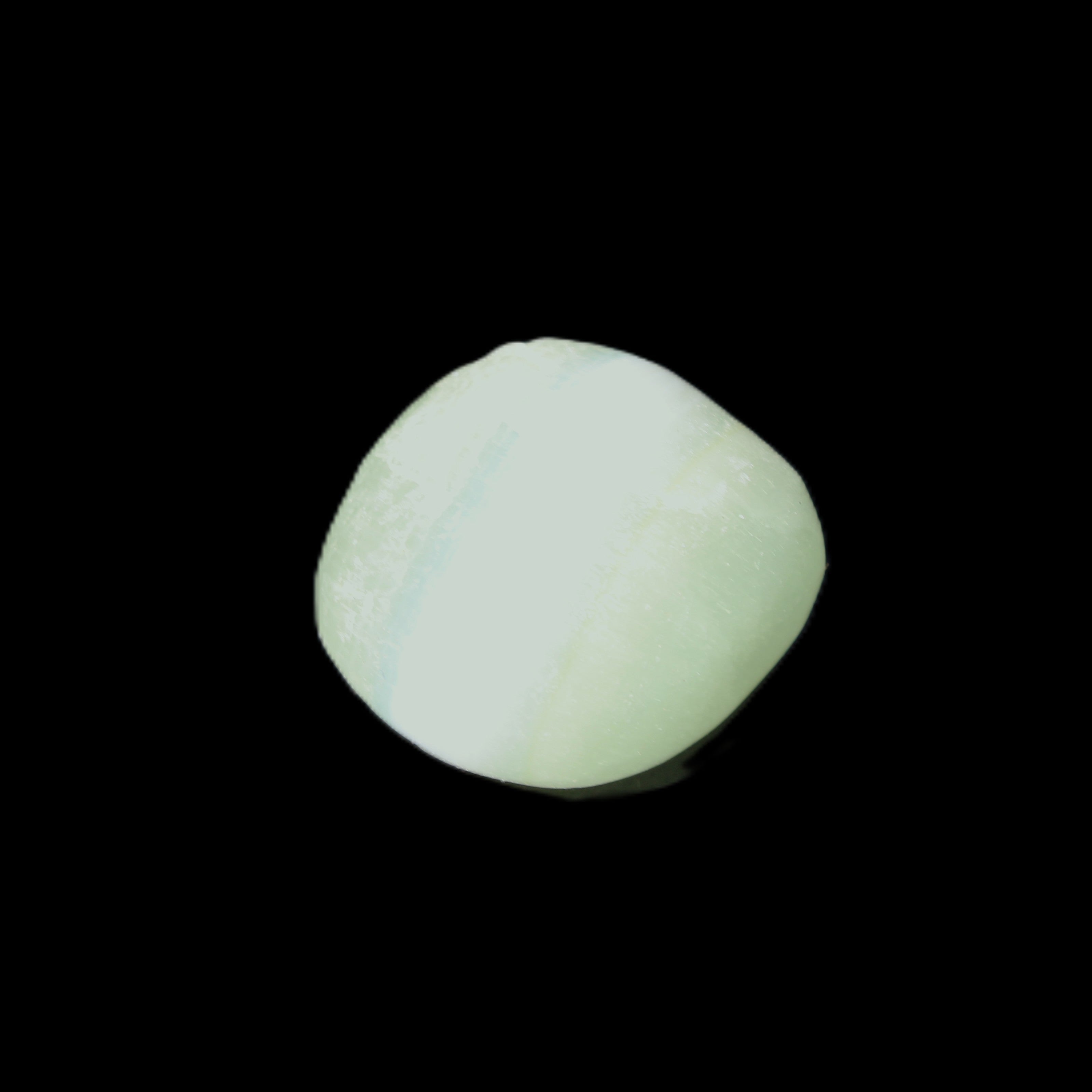 This Pistachio Calcite tumbled stone 23-33mm selection weighs 14-20g. Pistachio is a rarer variety of Caribbean Calcite and is actually Aragonite. It was sourced in Pakistan for Rocks and Things Store.