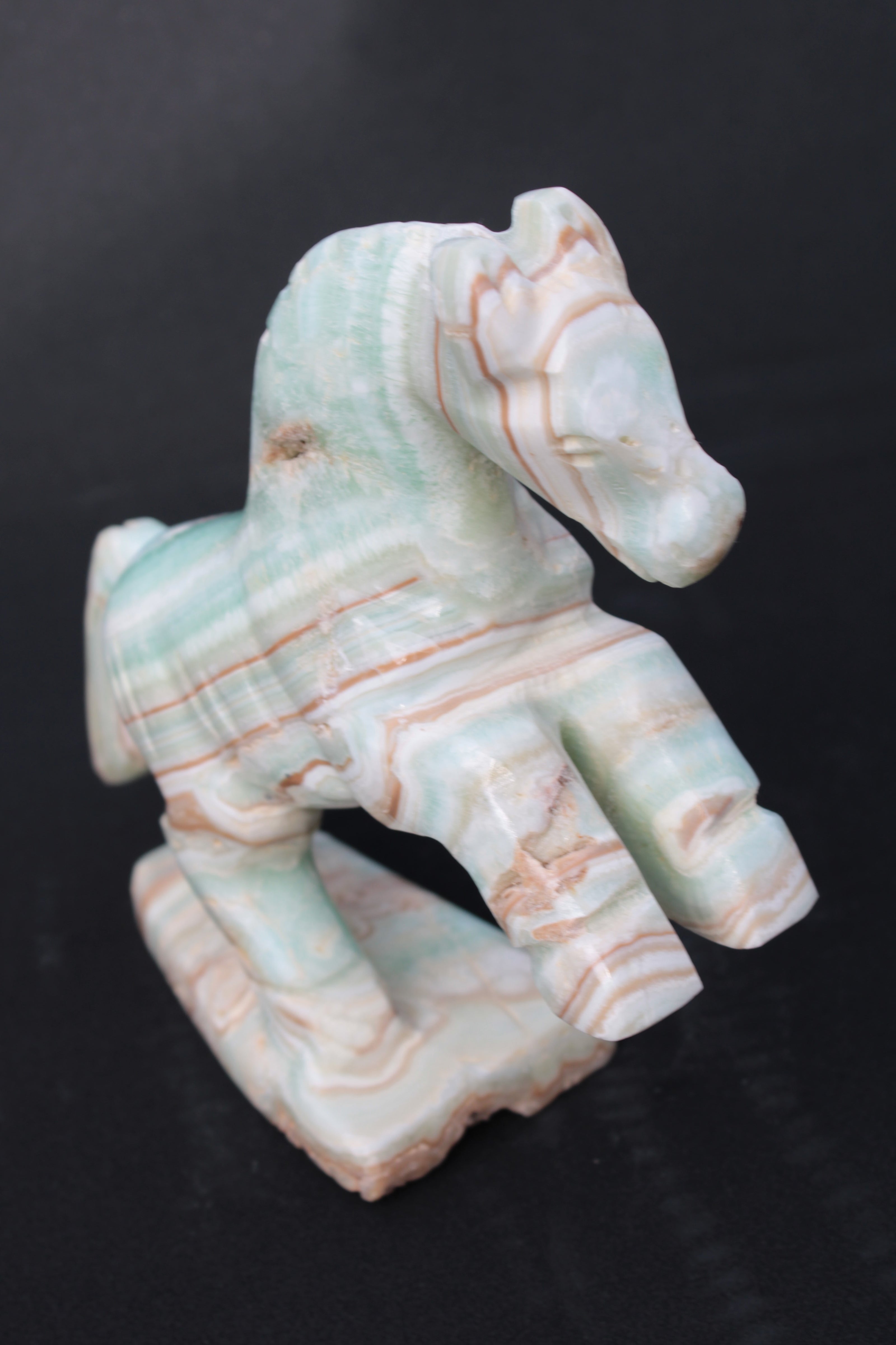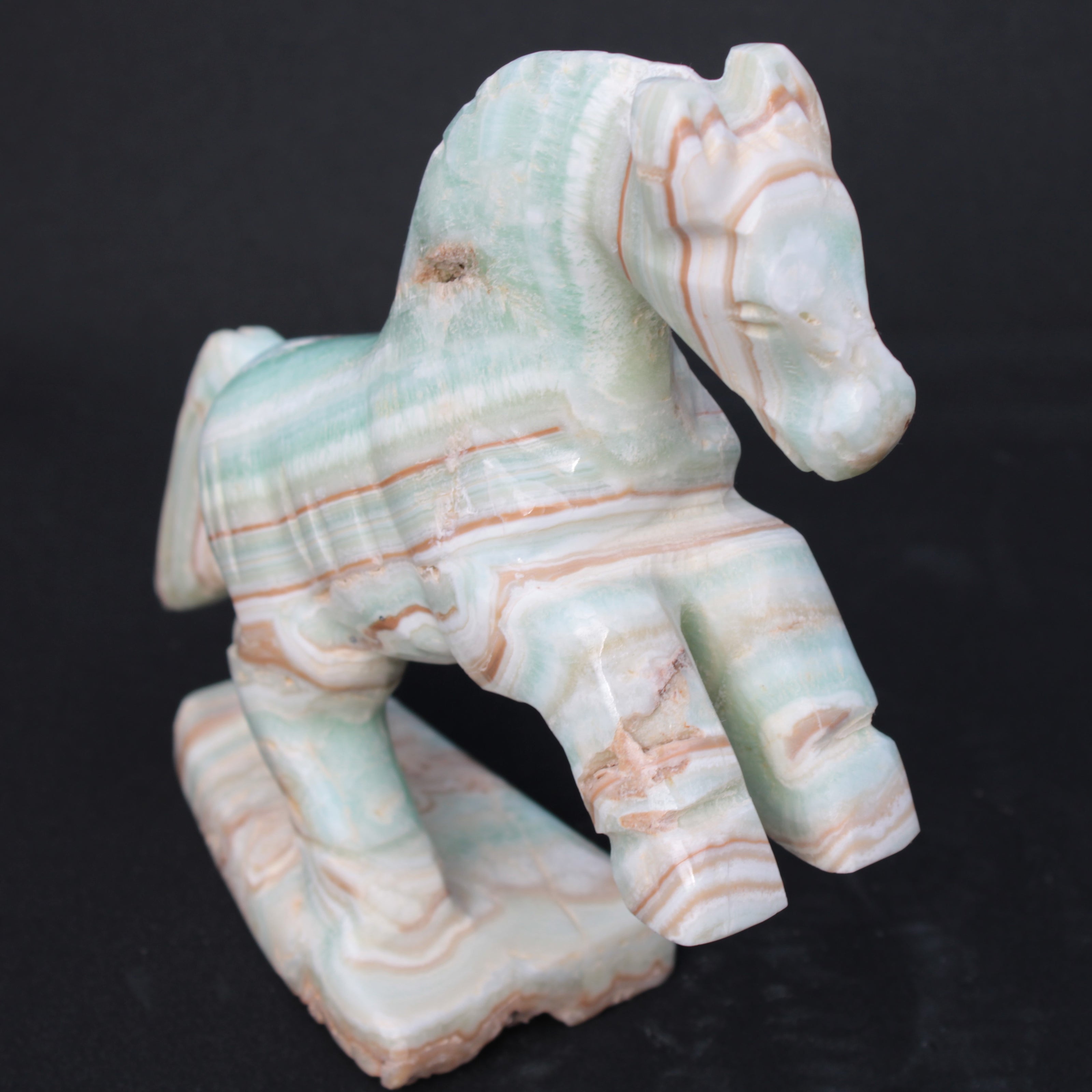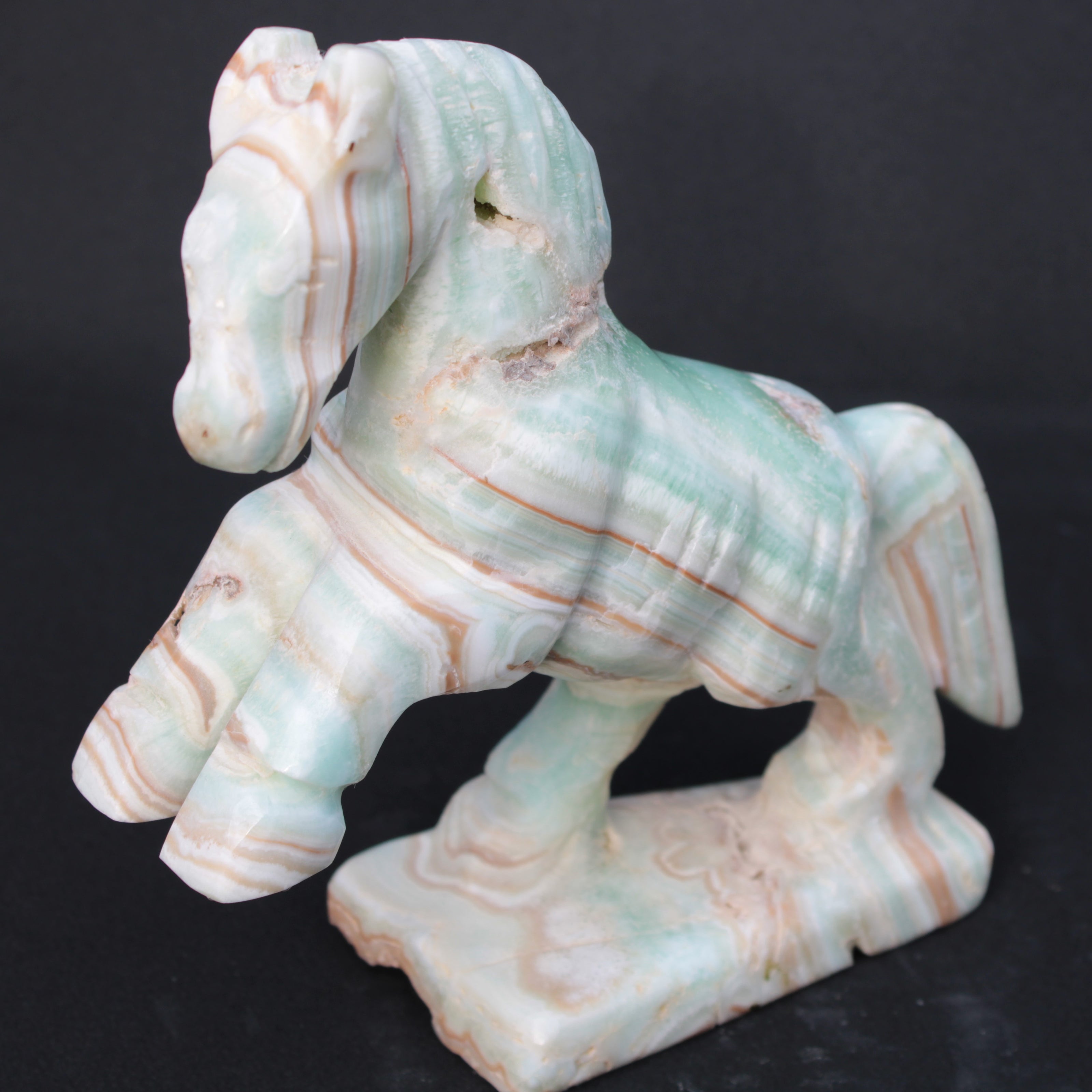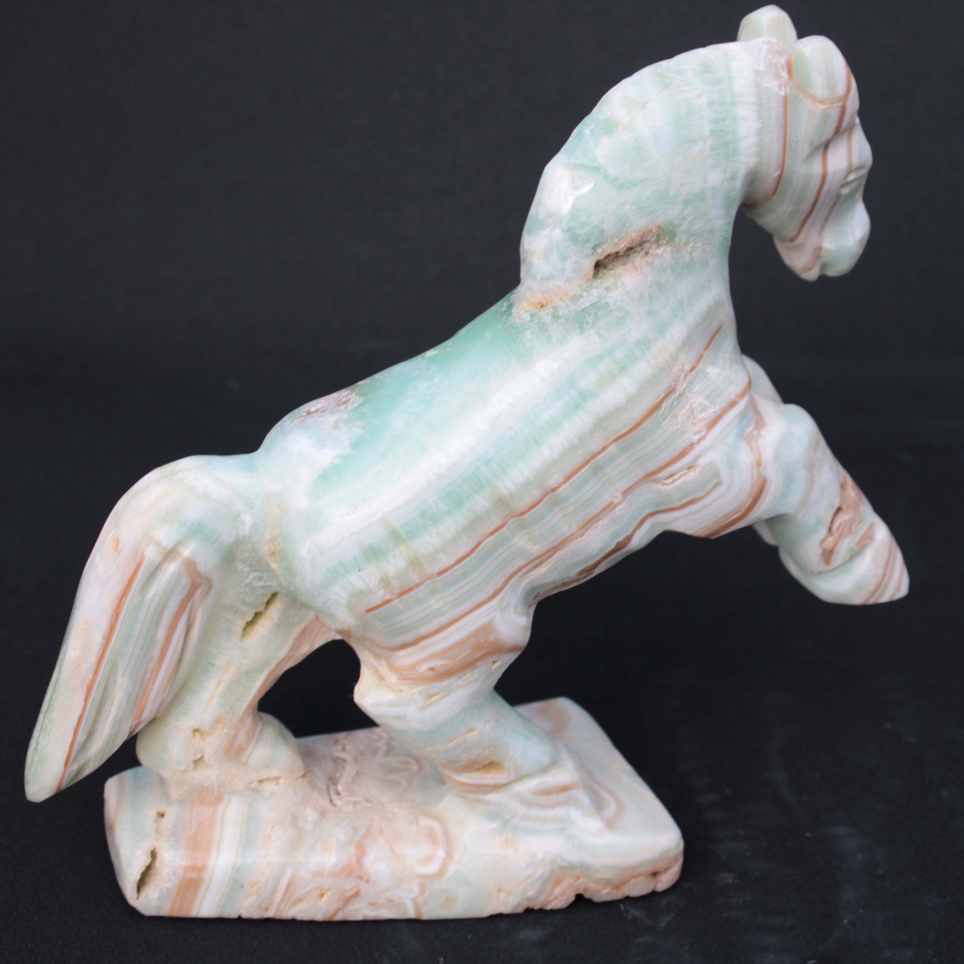 Pistachio Caribbean Calcite hand-carved prancing horse 165*55*156mm 947g Rocks and Things