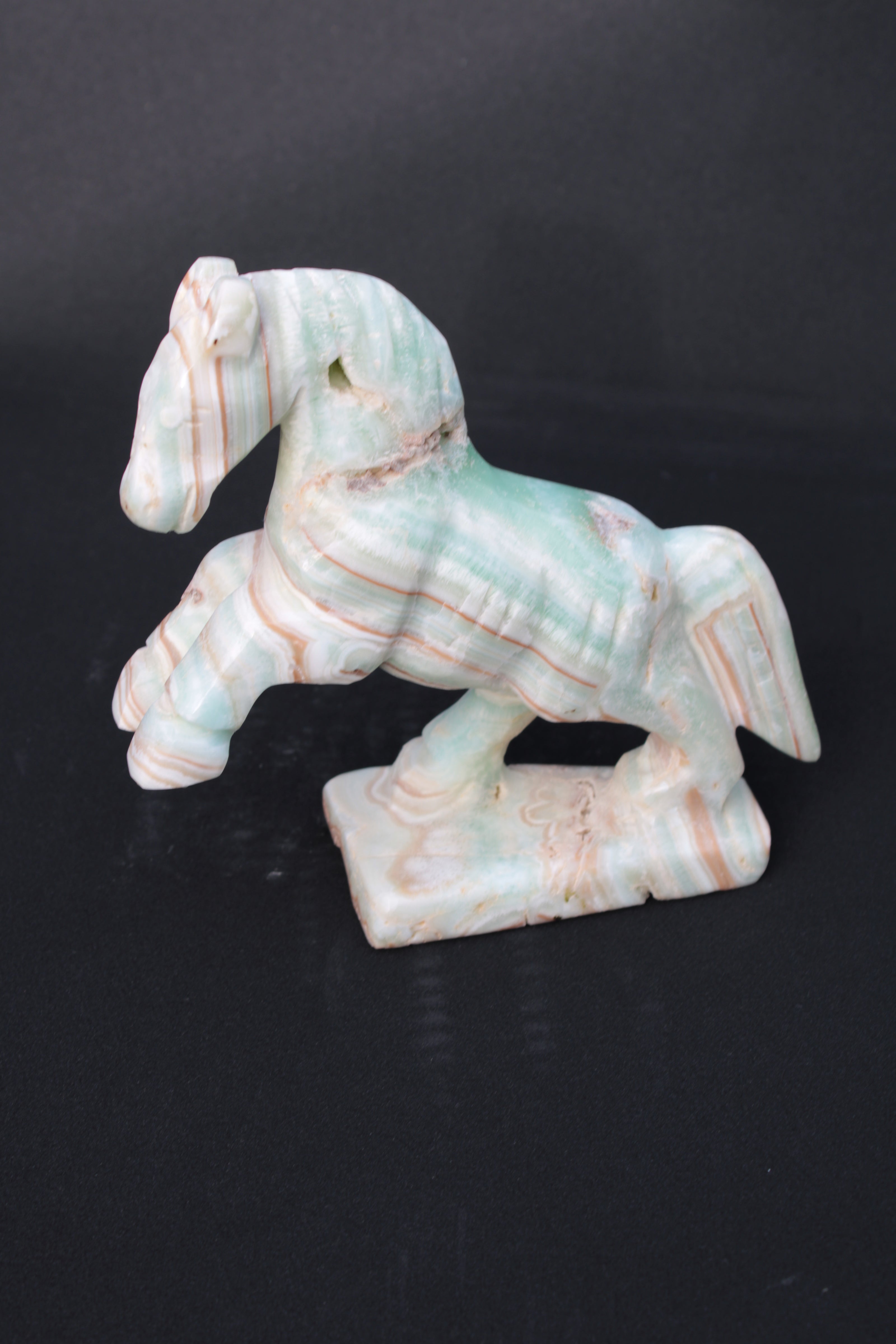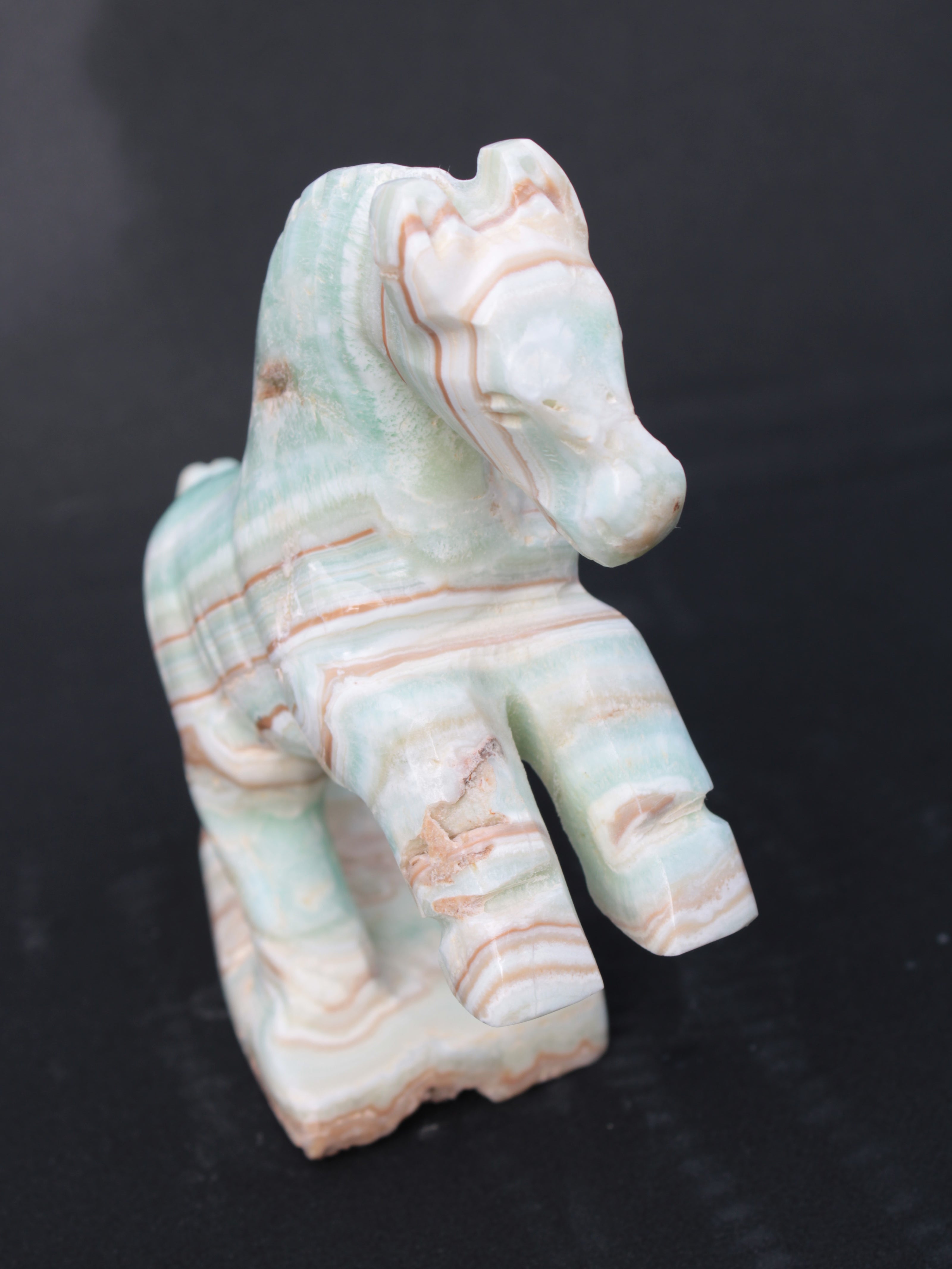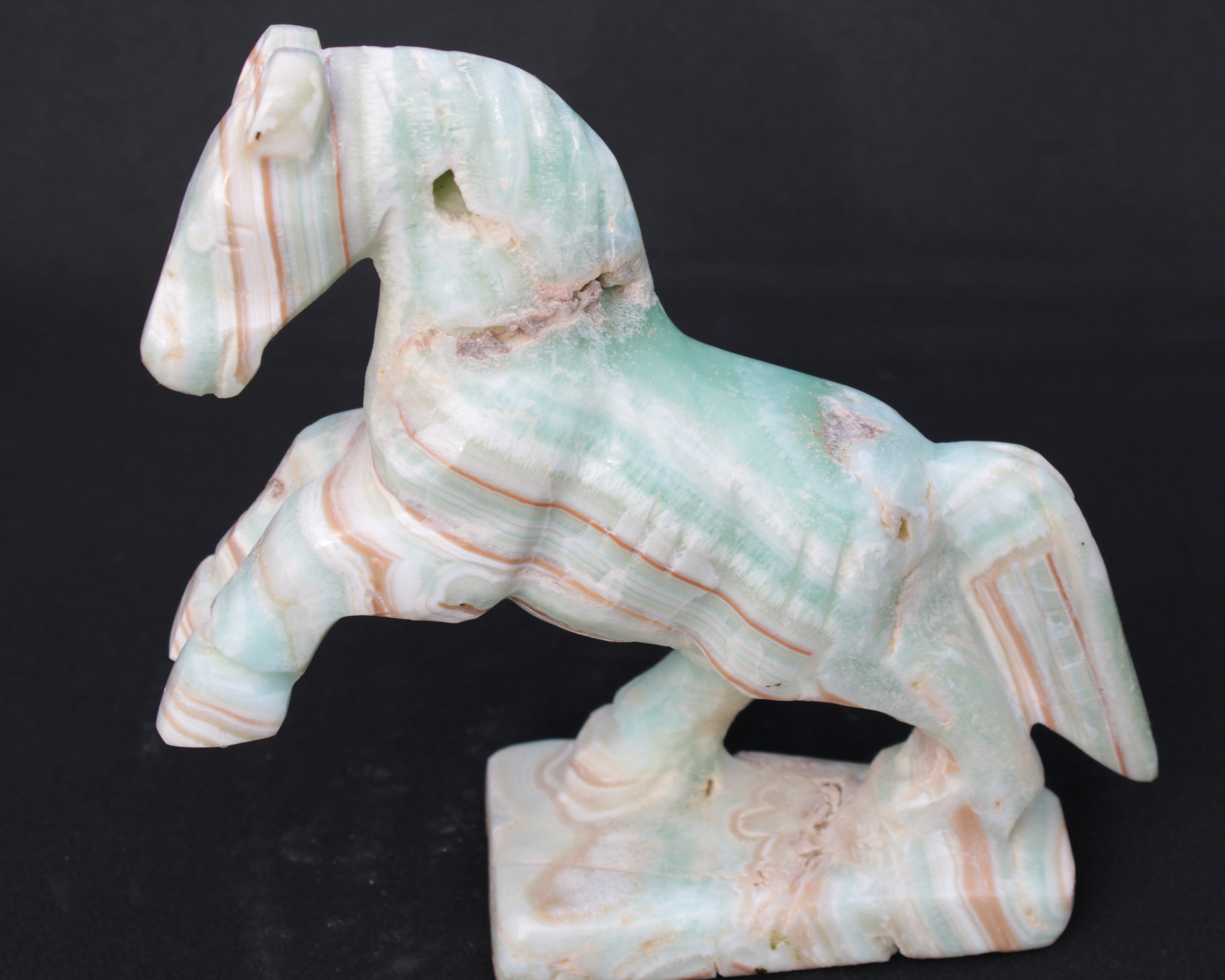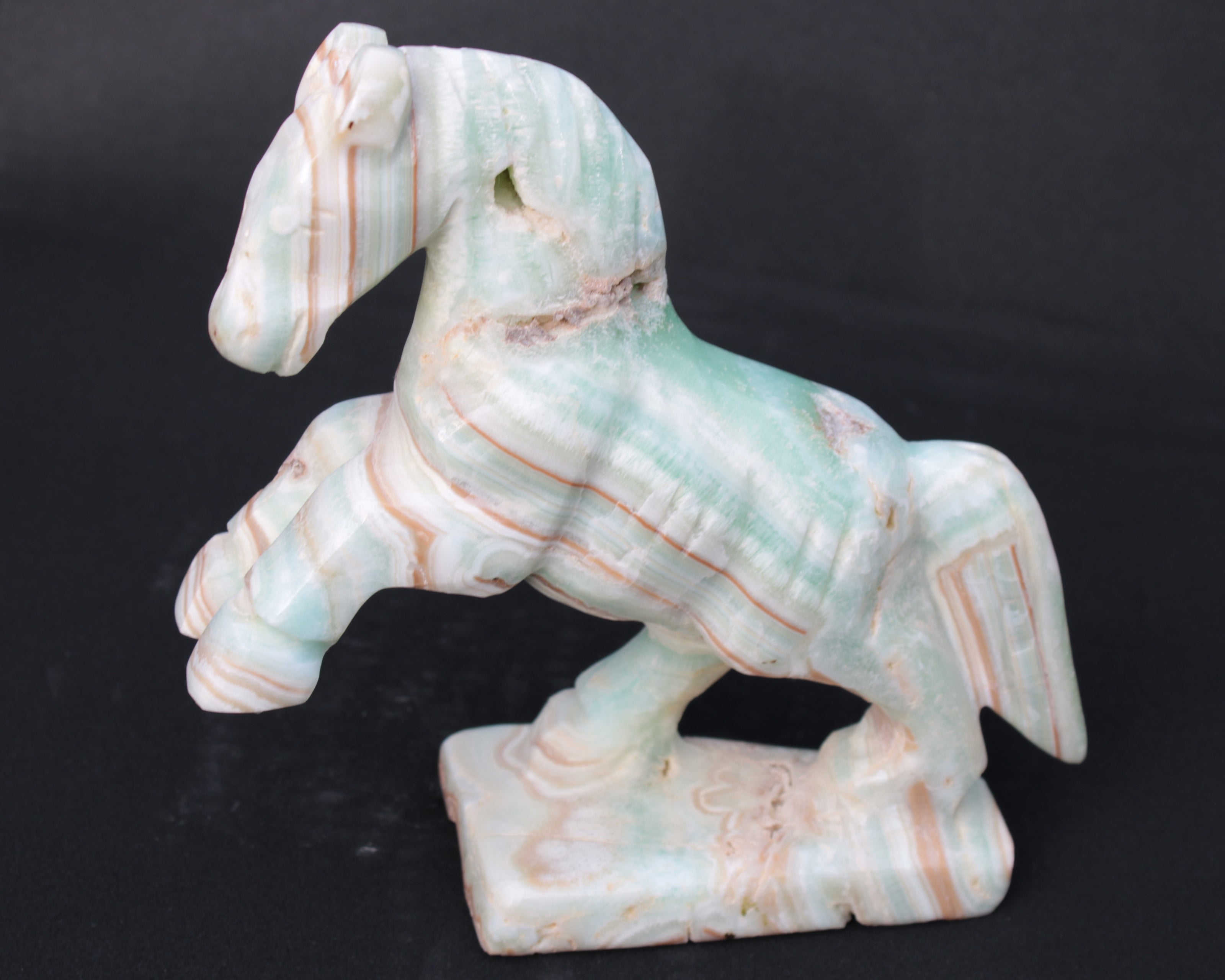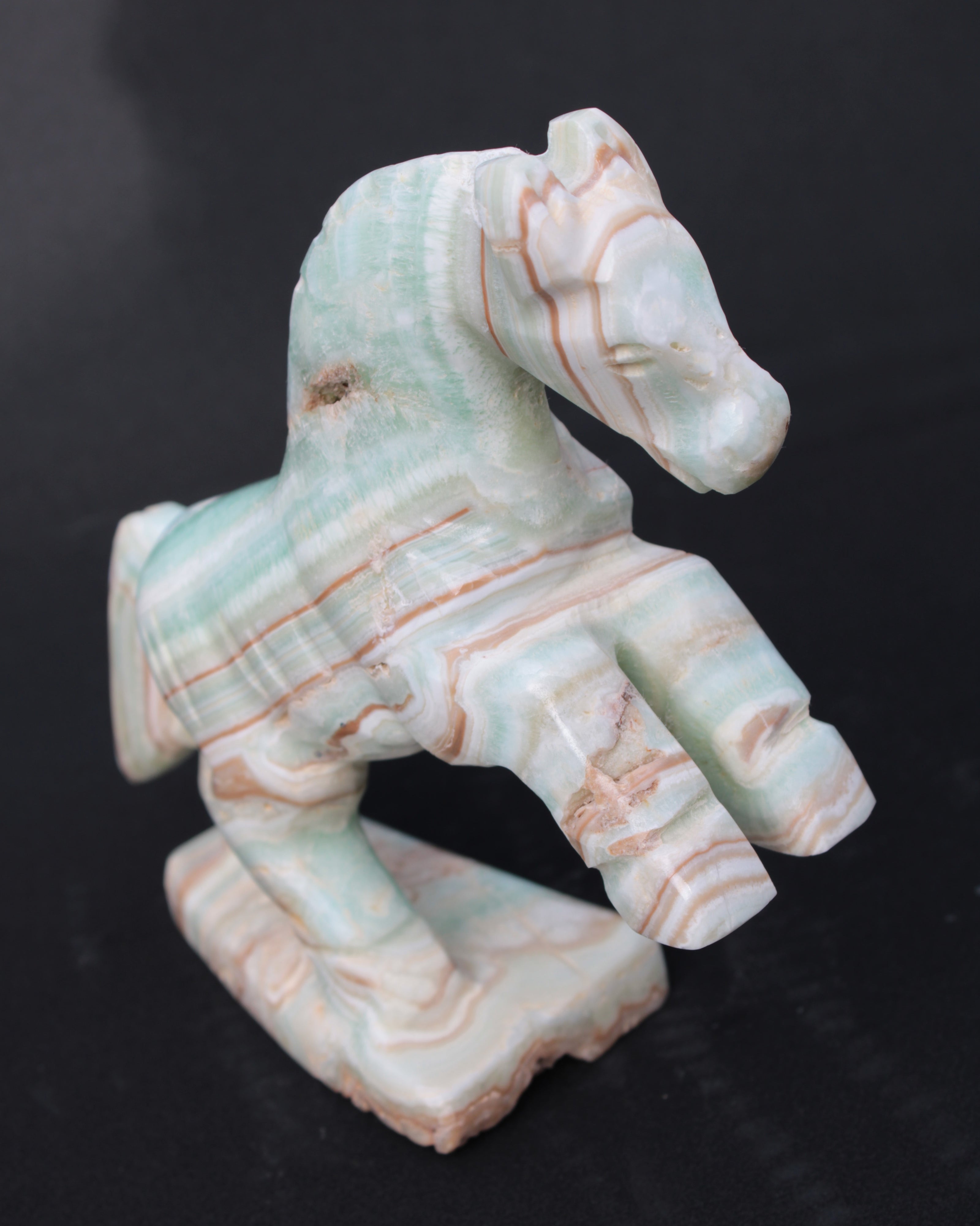 Pistachio Caribbean Calcite hand-carved prancing horse 165*55*156mm 947g Rocks and Things