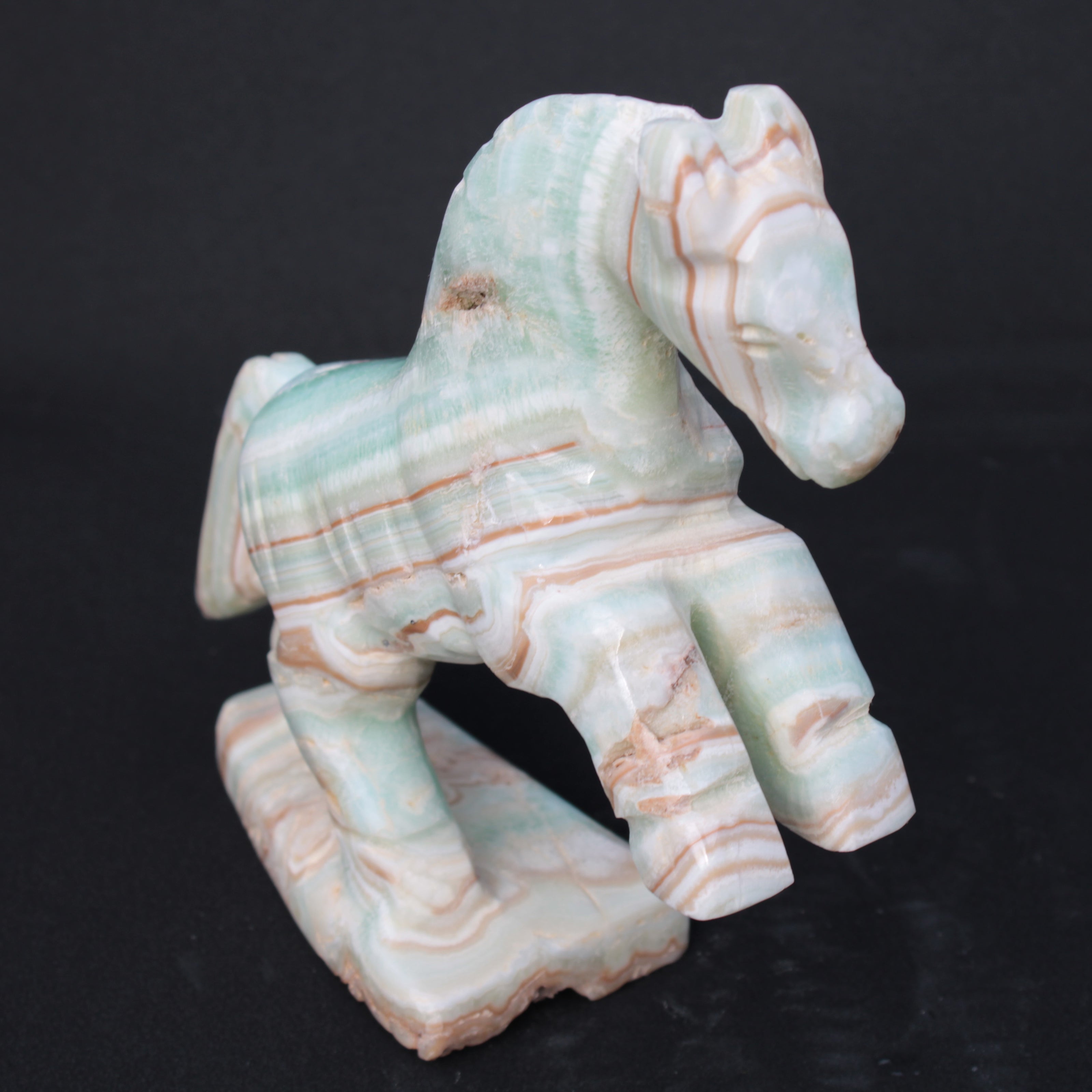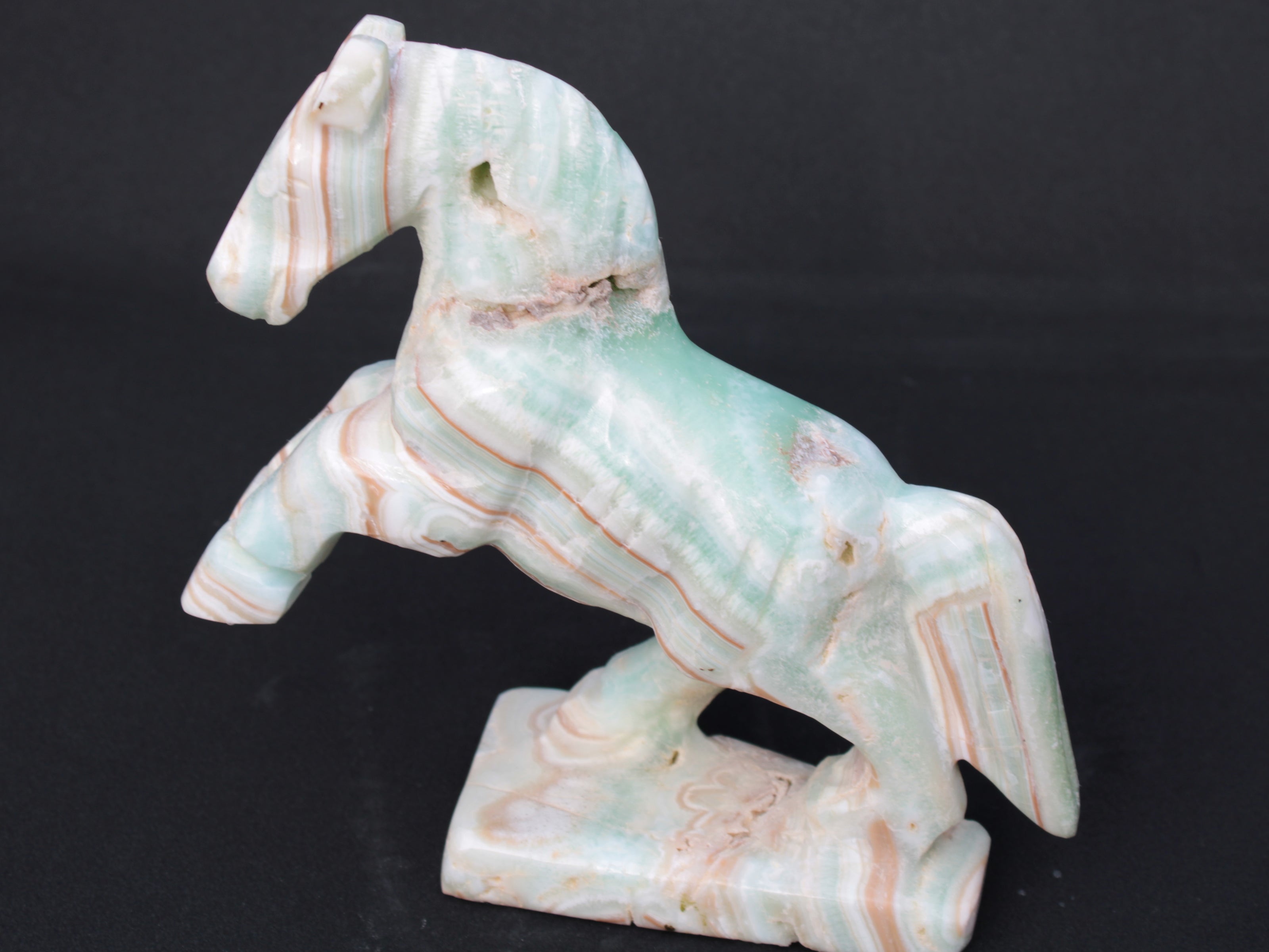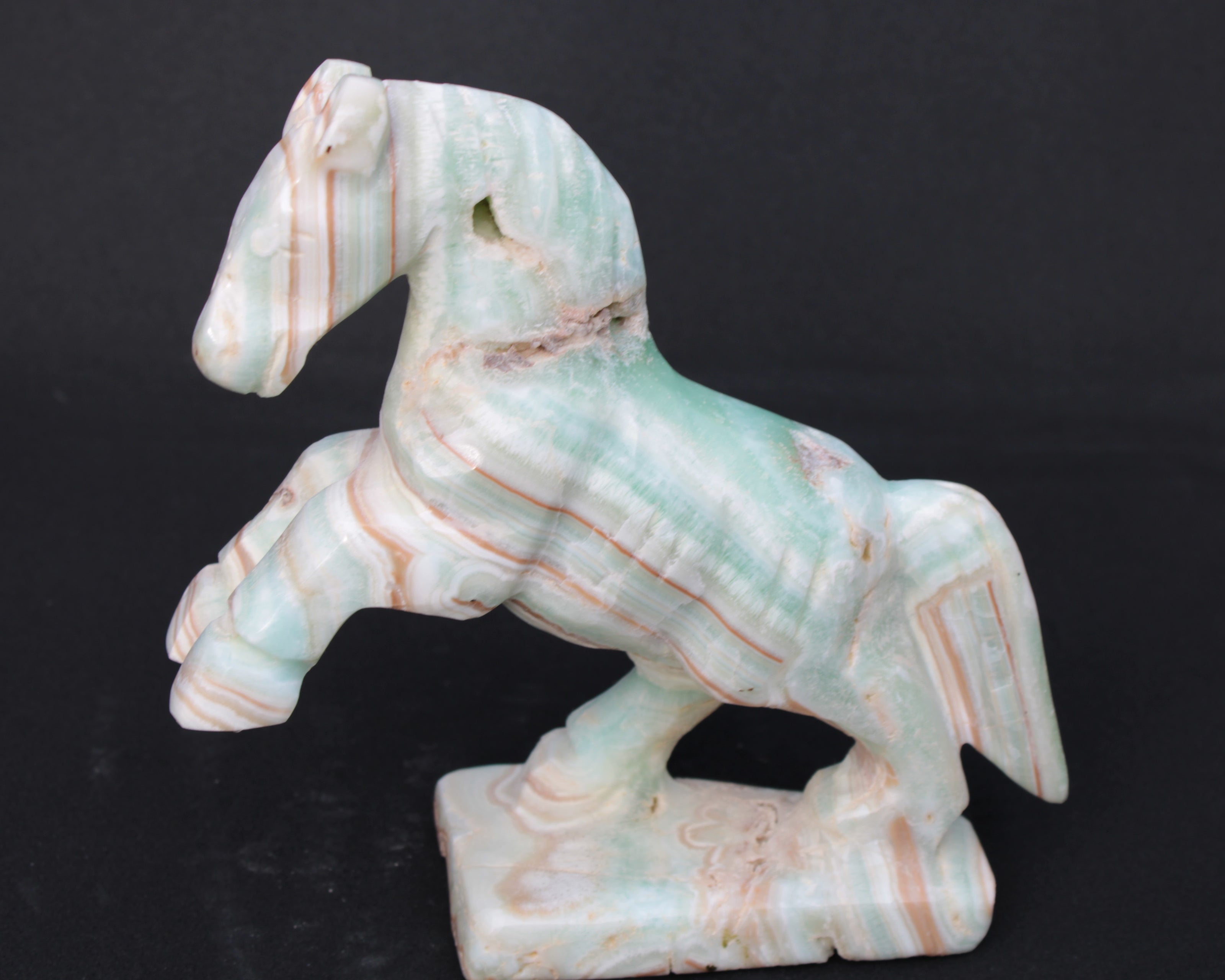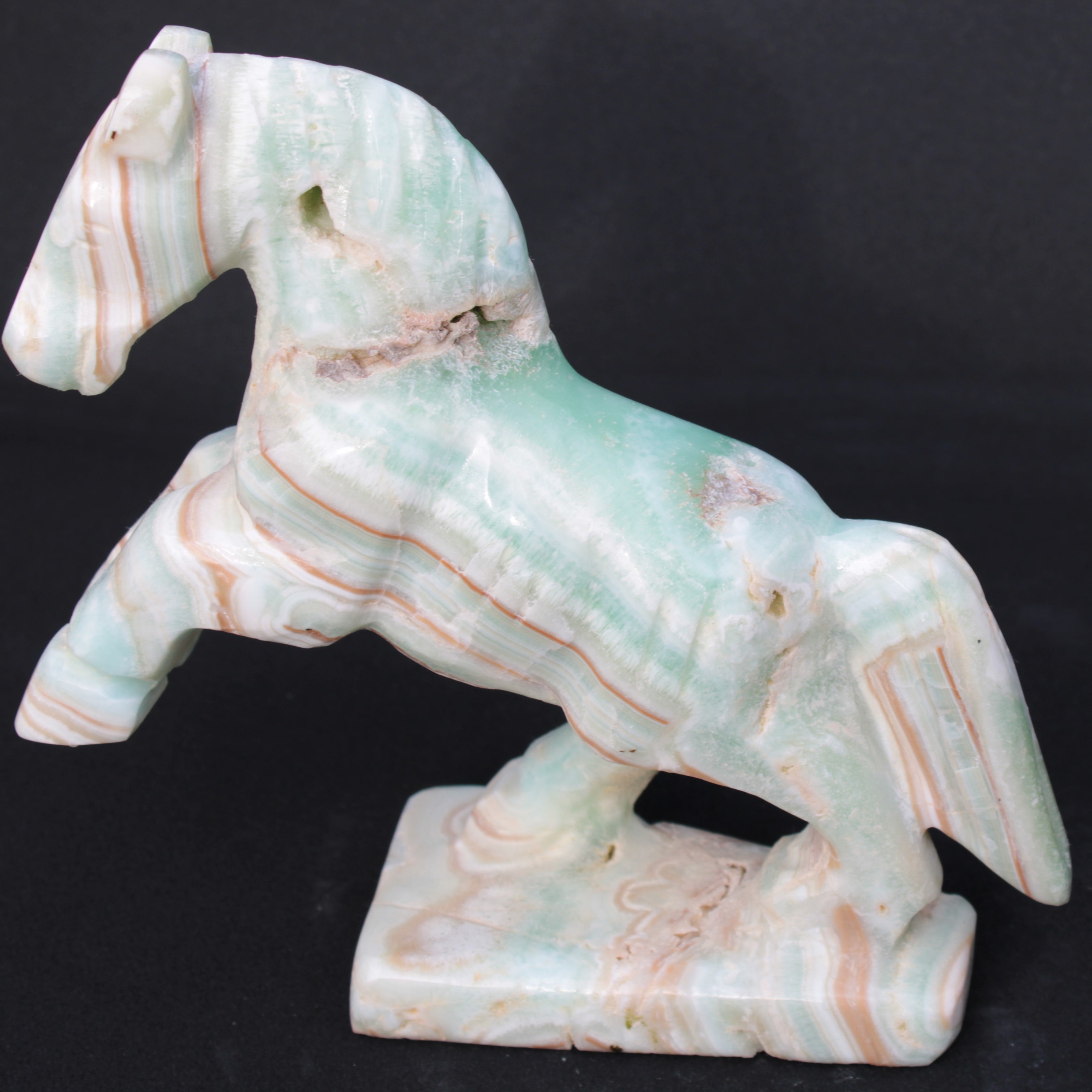 Pistachio Caribbean Calcite hand-carved prancing horse 165*55*156mm 947g Rocks and Things