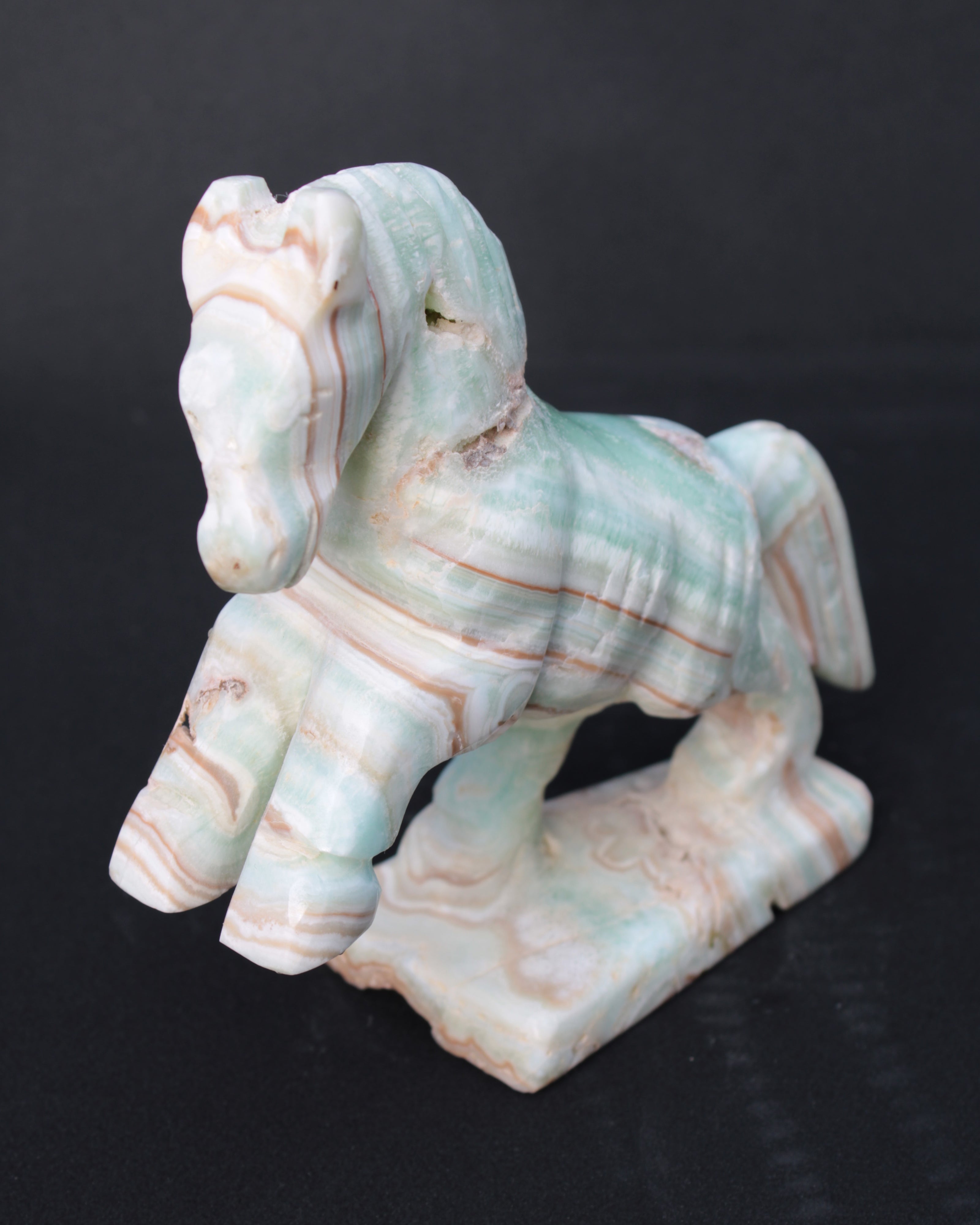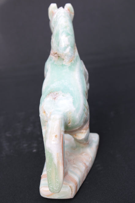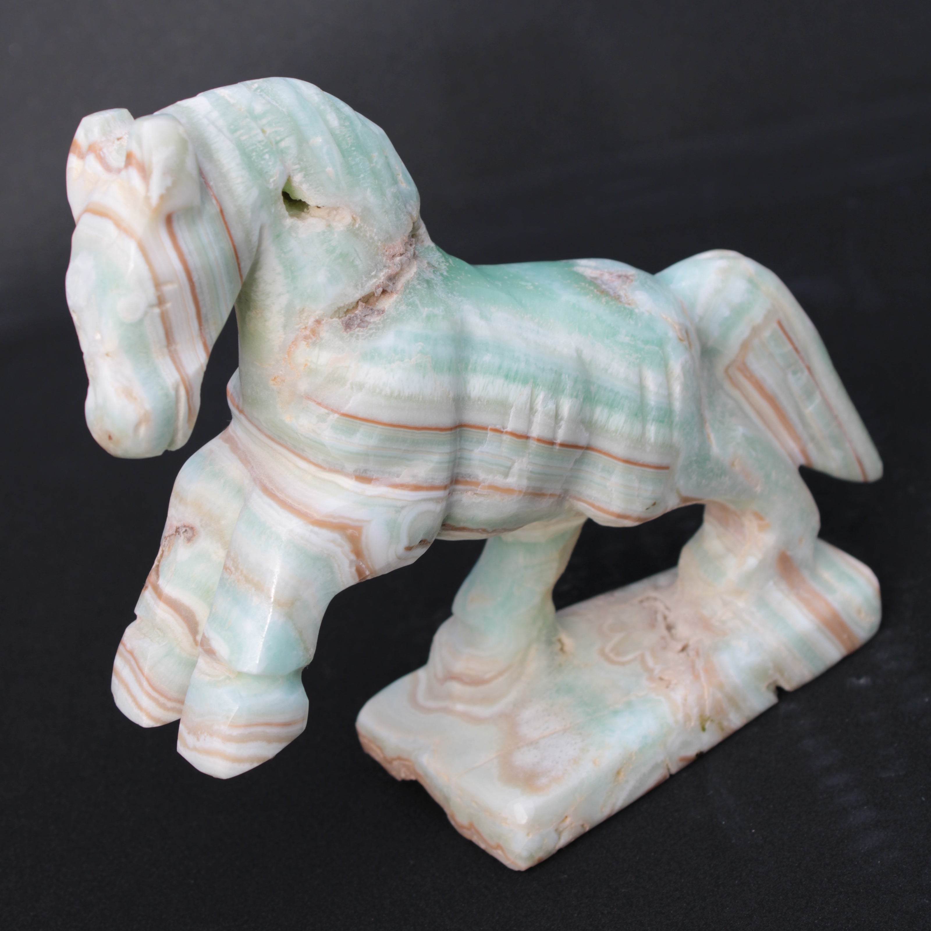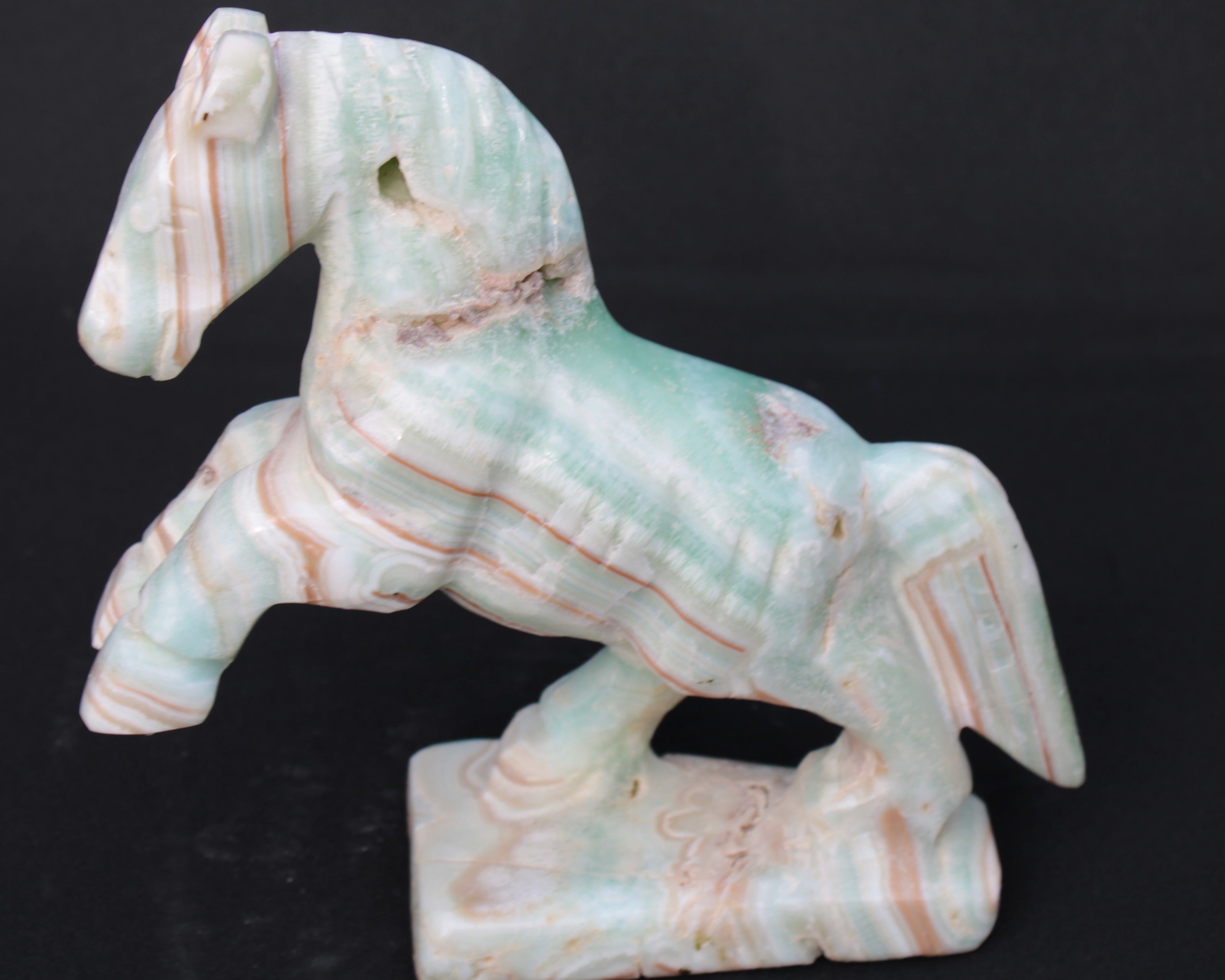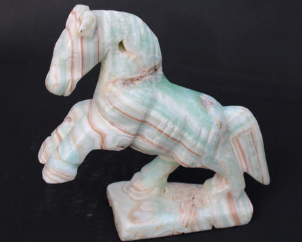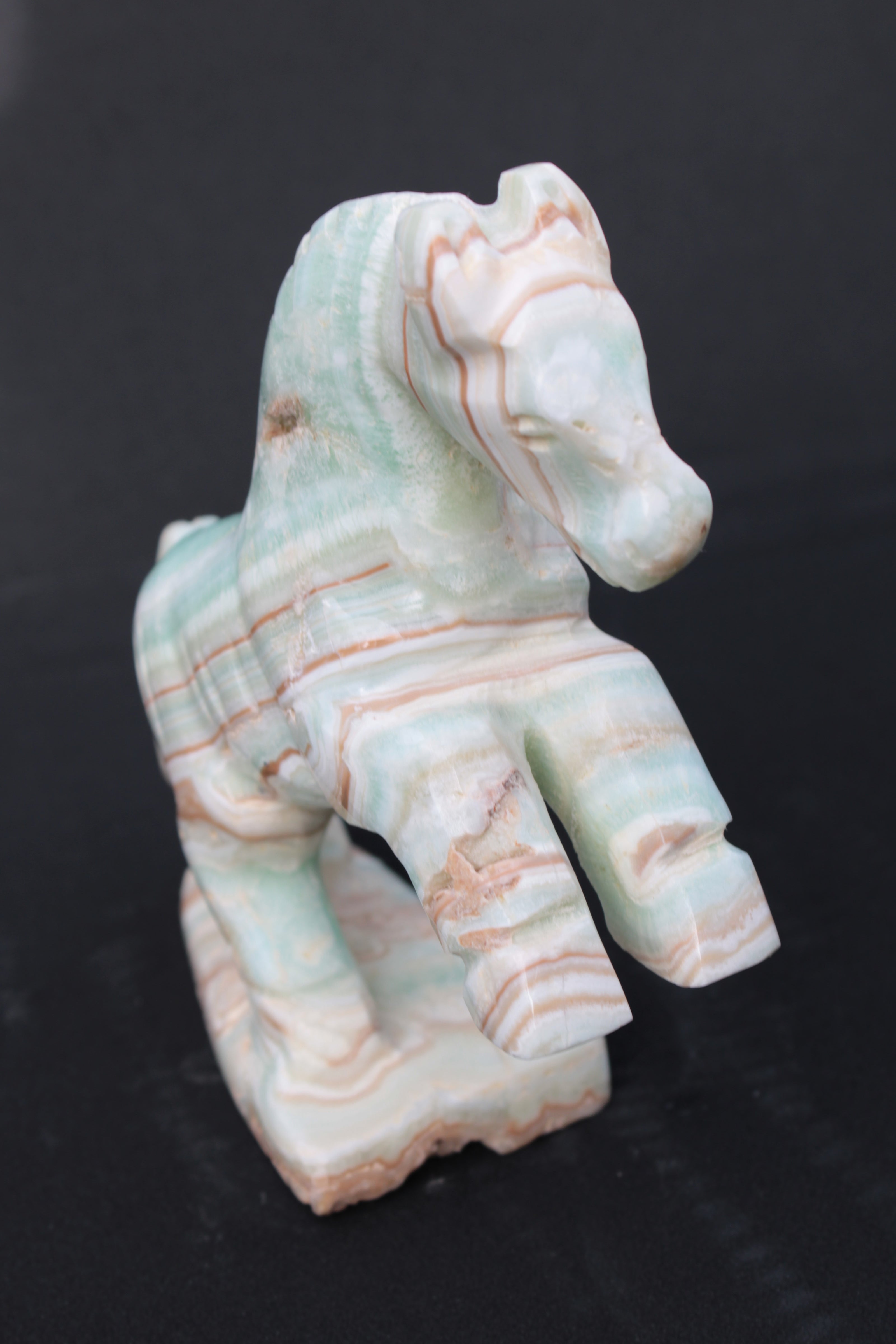 Pistachio Caribbean Calcite hand-carved prancing horse 165*55*156mm 947g Rocks and Things