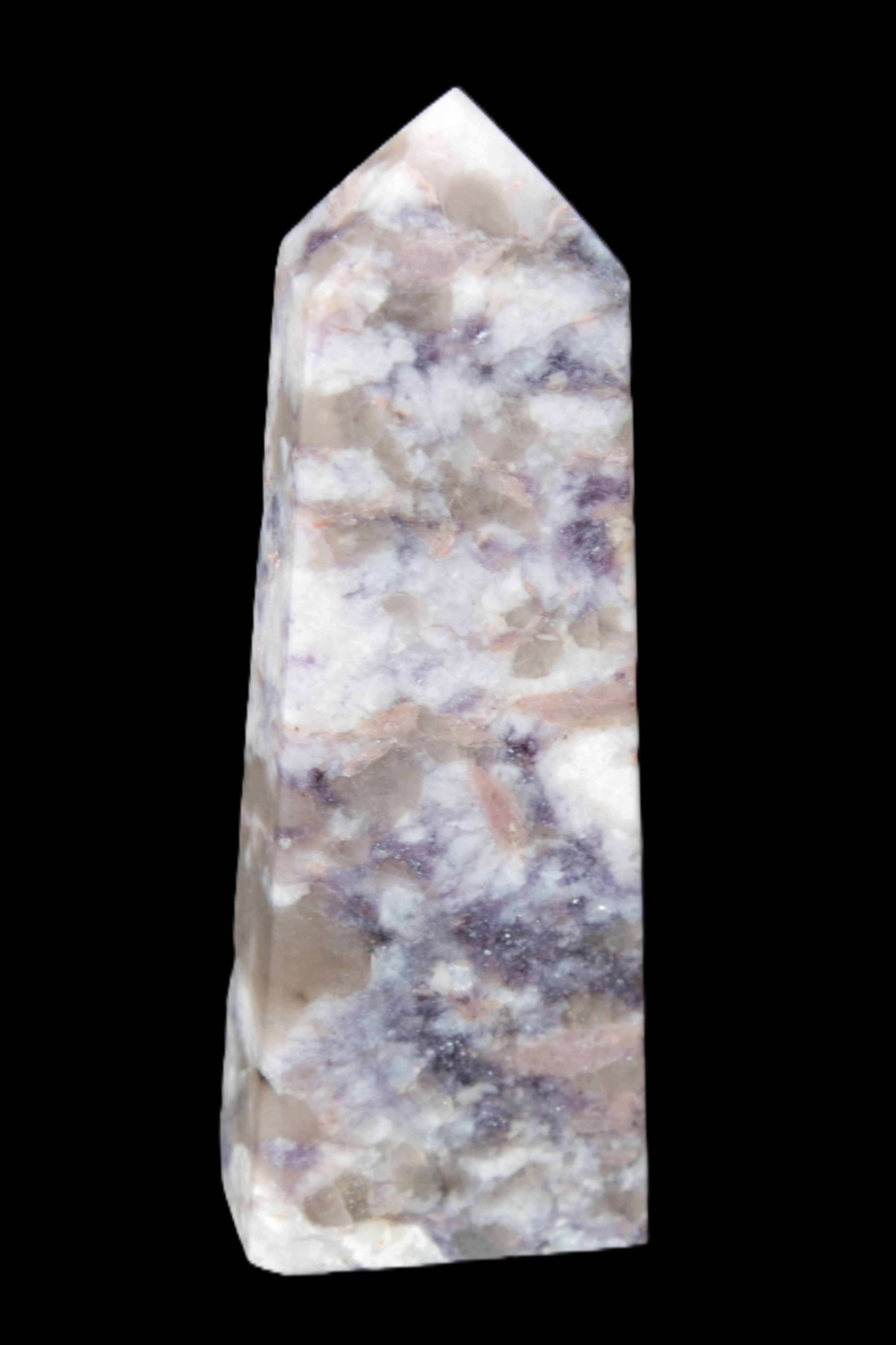 Plum Blossom Tourmaline Quartz obelisk 237g Rocks and Things