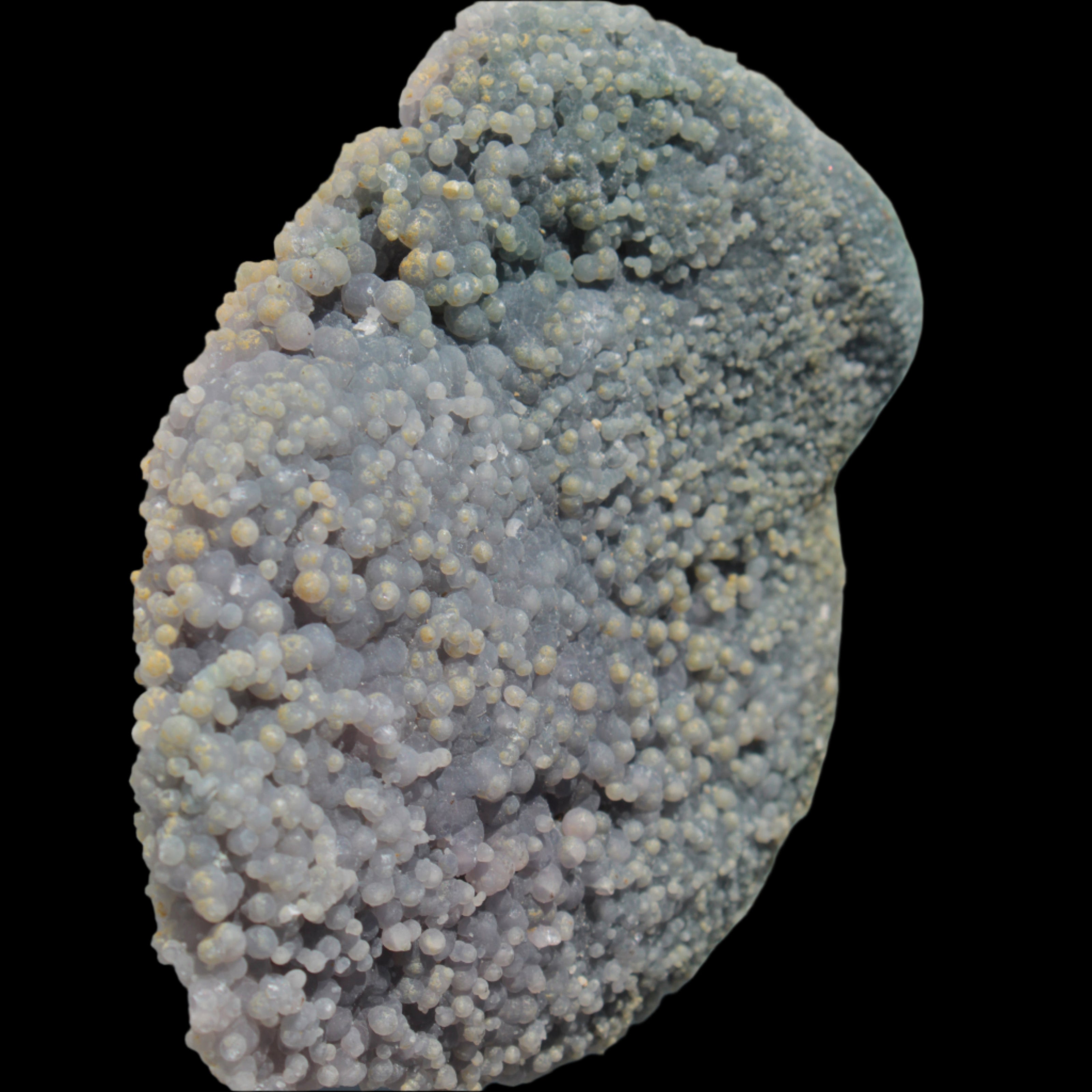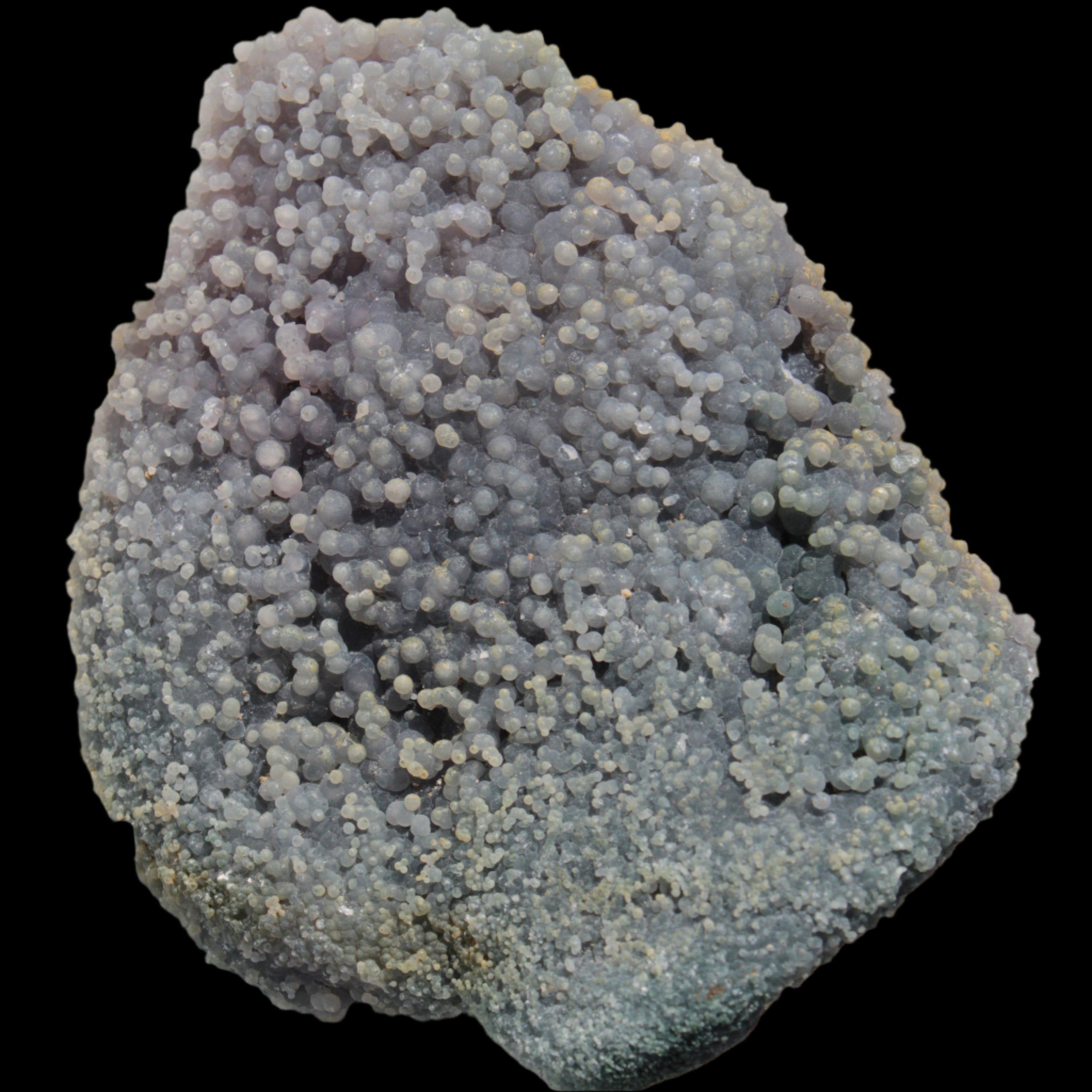 This Purple Grape Agate botryoidal from Indonesia weighs 273g. Grape Agate is a rare botryoidal form of chalcedony that resembles small purple spheres. It is found in only one locality in Indonesia. The colour of the small botryoidal orbs ranges from mid to deep purple, sometimes with a blue, grey or green tinge.