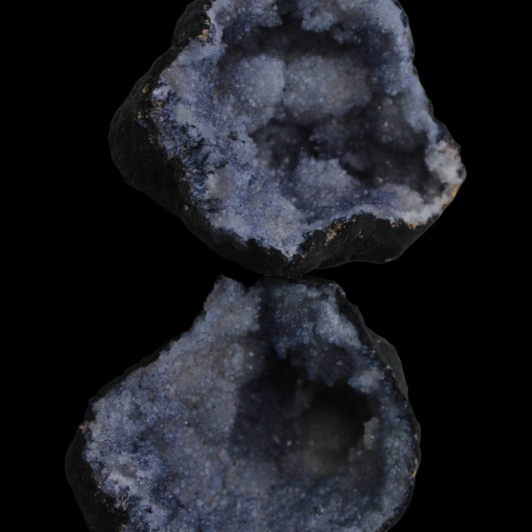This Quartz geode weighs 91.8g. Geodes grow within a hollow in a host formation, from solution. The crystals form pointing inwards from the edges of the hollow. Agate and other members of the quartz family commonly form geodes. A geode amplifies softens and diffuses the healing energy of the crystal, letting it flow out slowly. This strengthened and softened healing energy is good for protection and spiritual growth. This is also useful for addressing addictive or overindulgent behaviour.