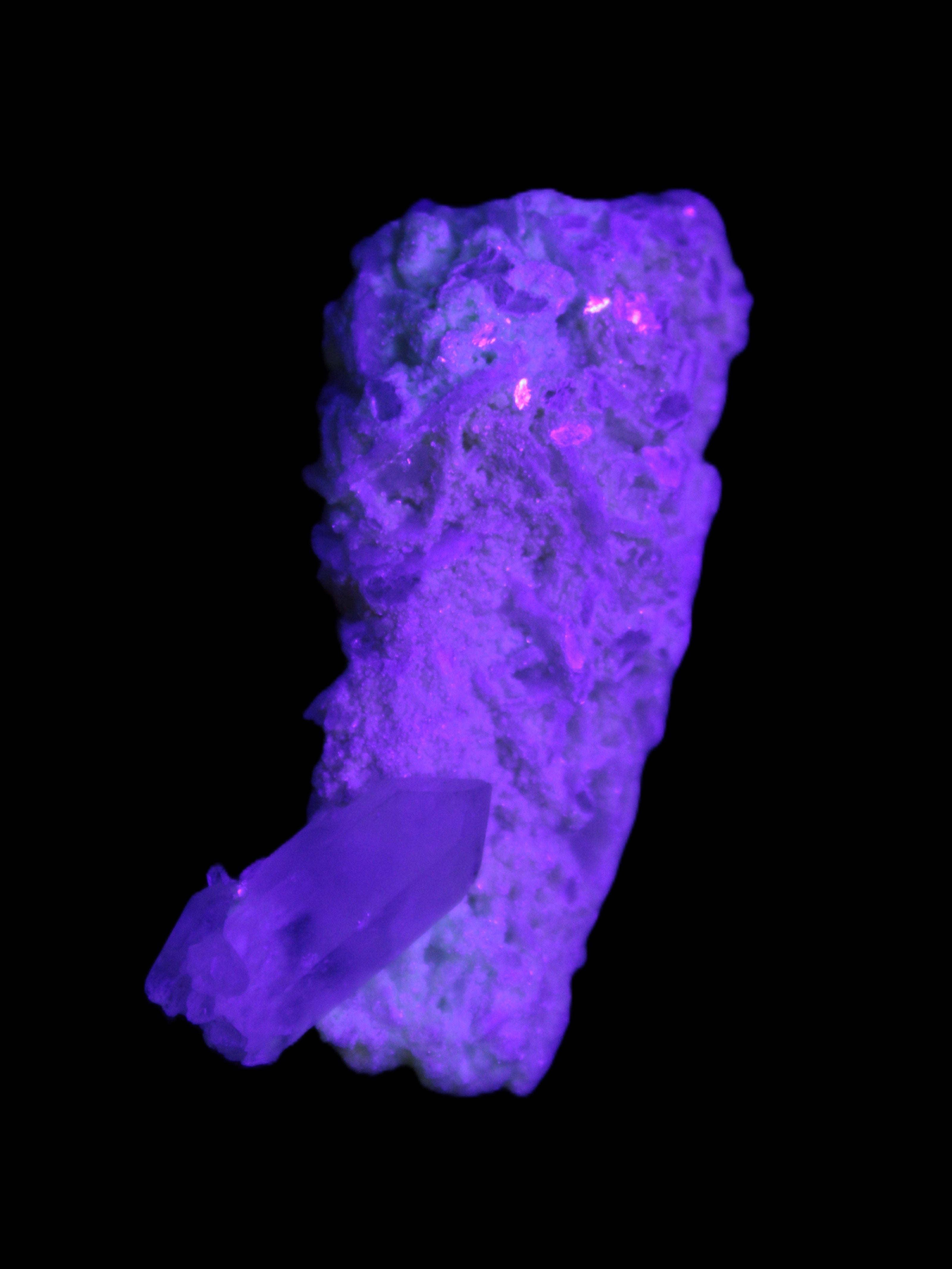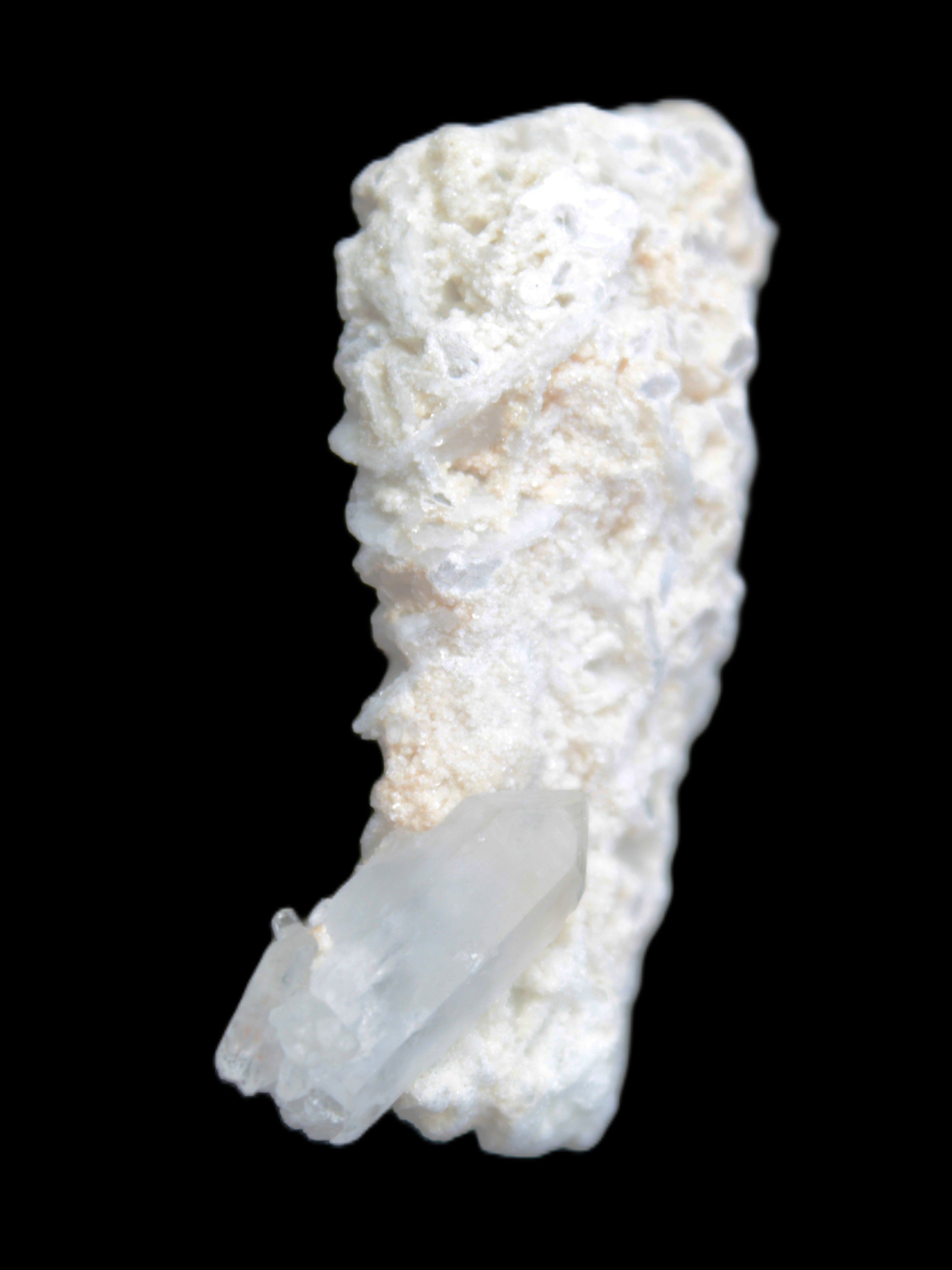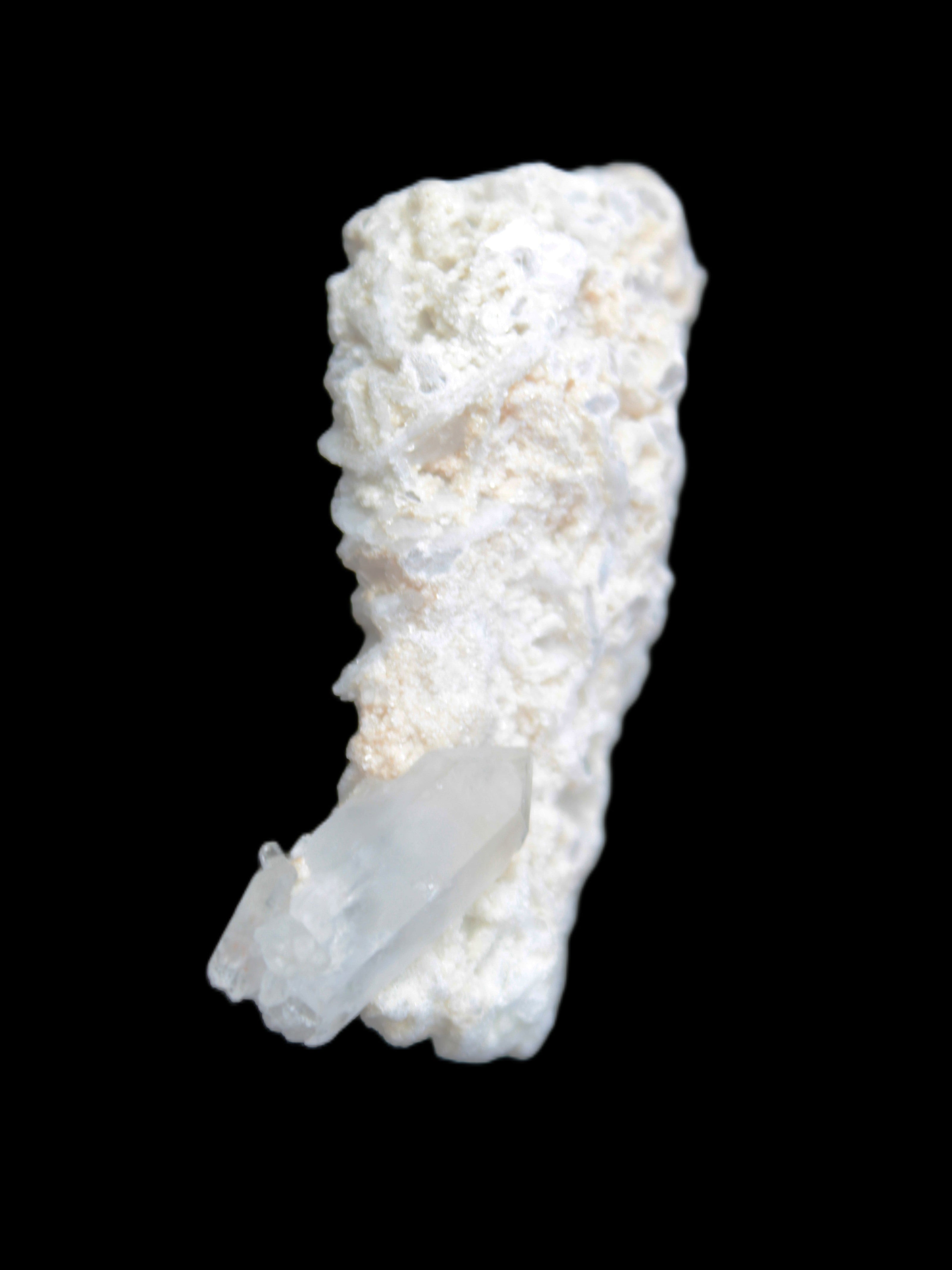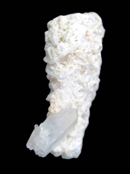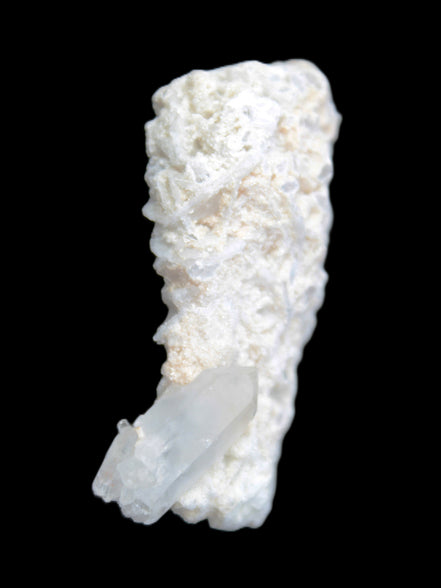This Quartz with tiny Inner Child cluster on Feldspar-Mica matrix 41*11*21mm weighs 67ct, which is 13.4g. The prominent Quartz crystal is only 12mm long and its accompanying crystals at its base are only a few millimeters or less long. One tiny crystal at right angles to the main crystal appears to be an inner child, with its growth extending internally within its host.