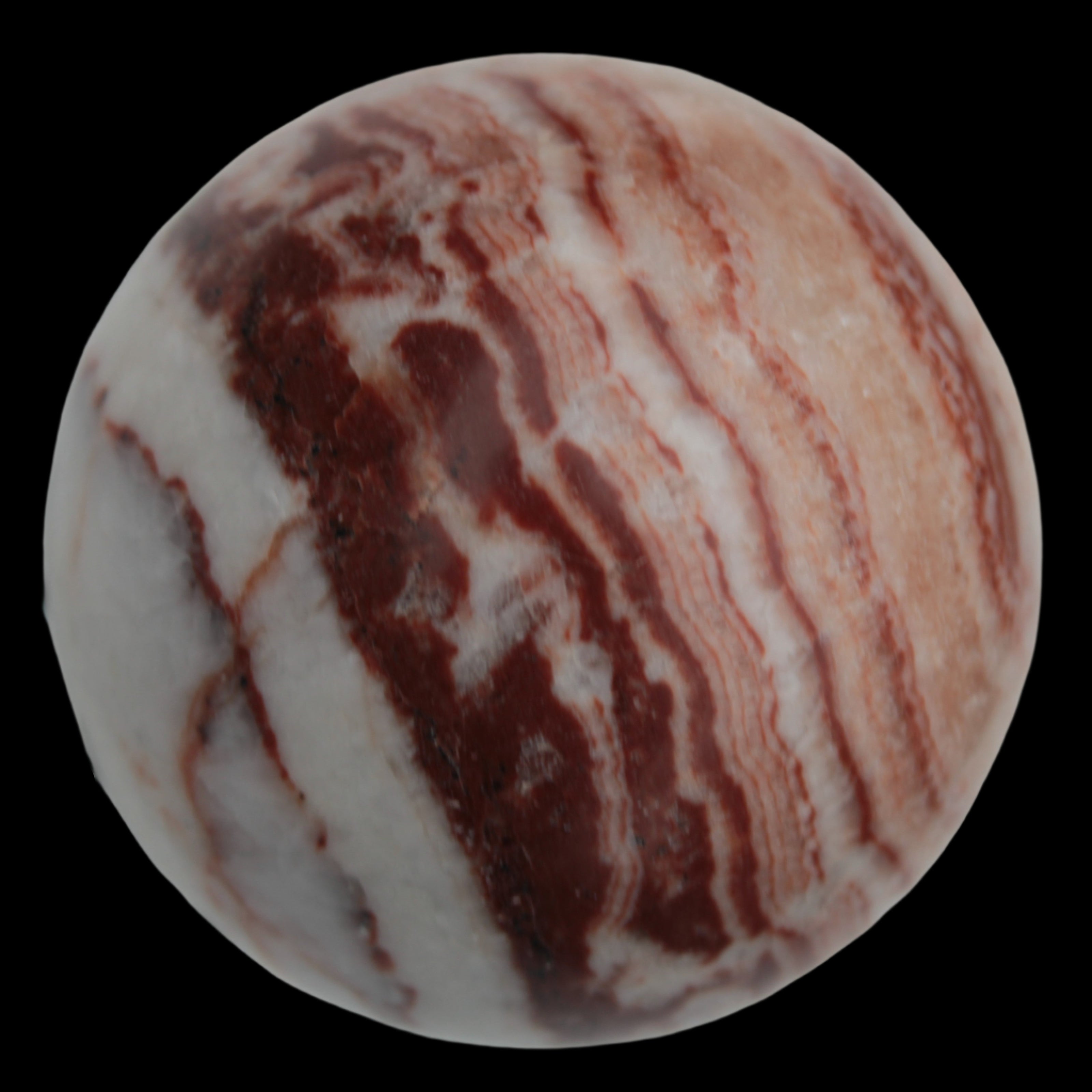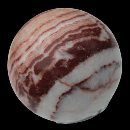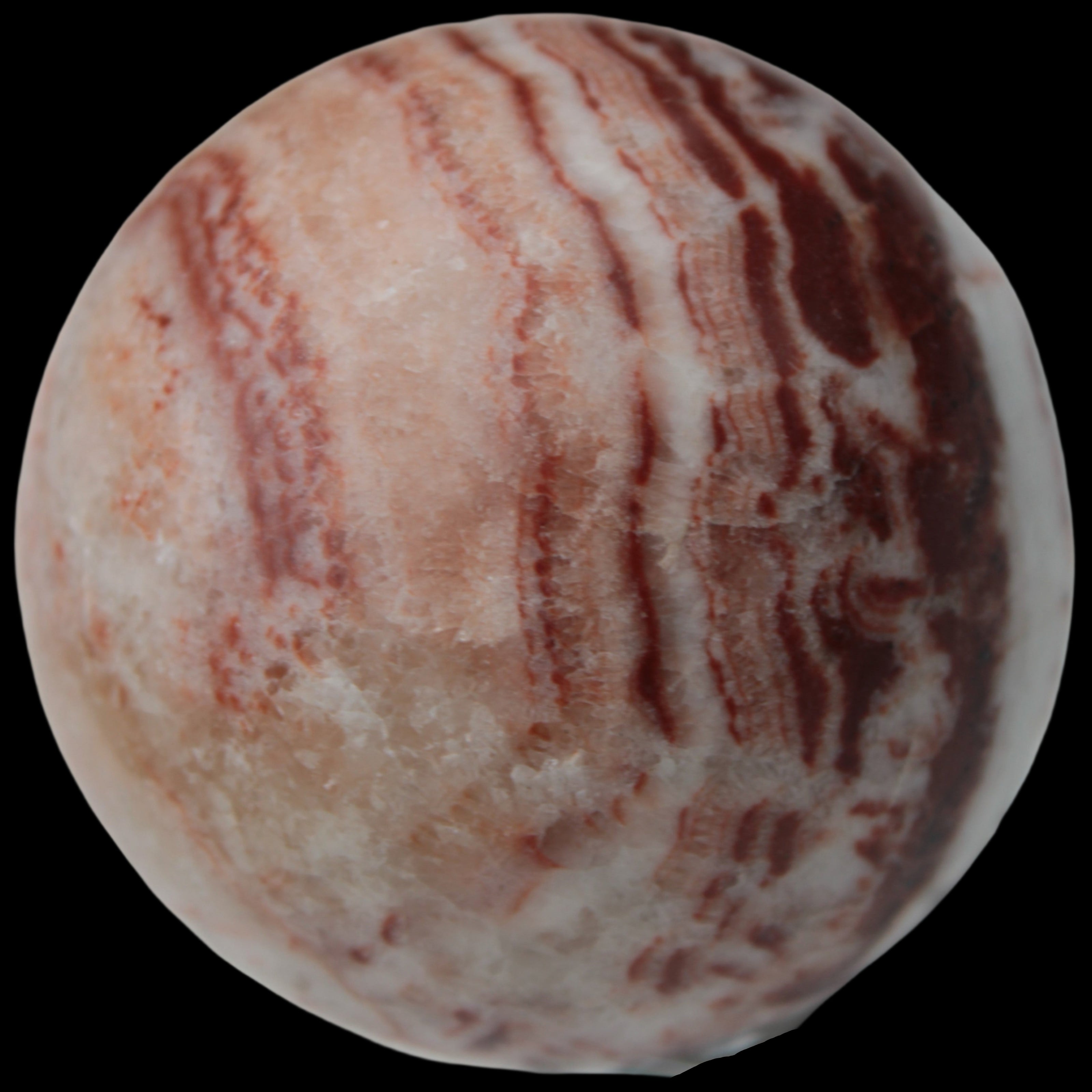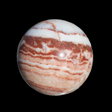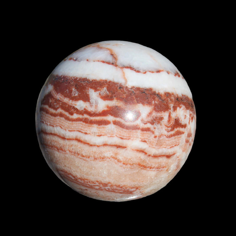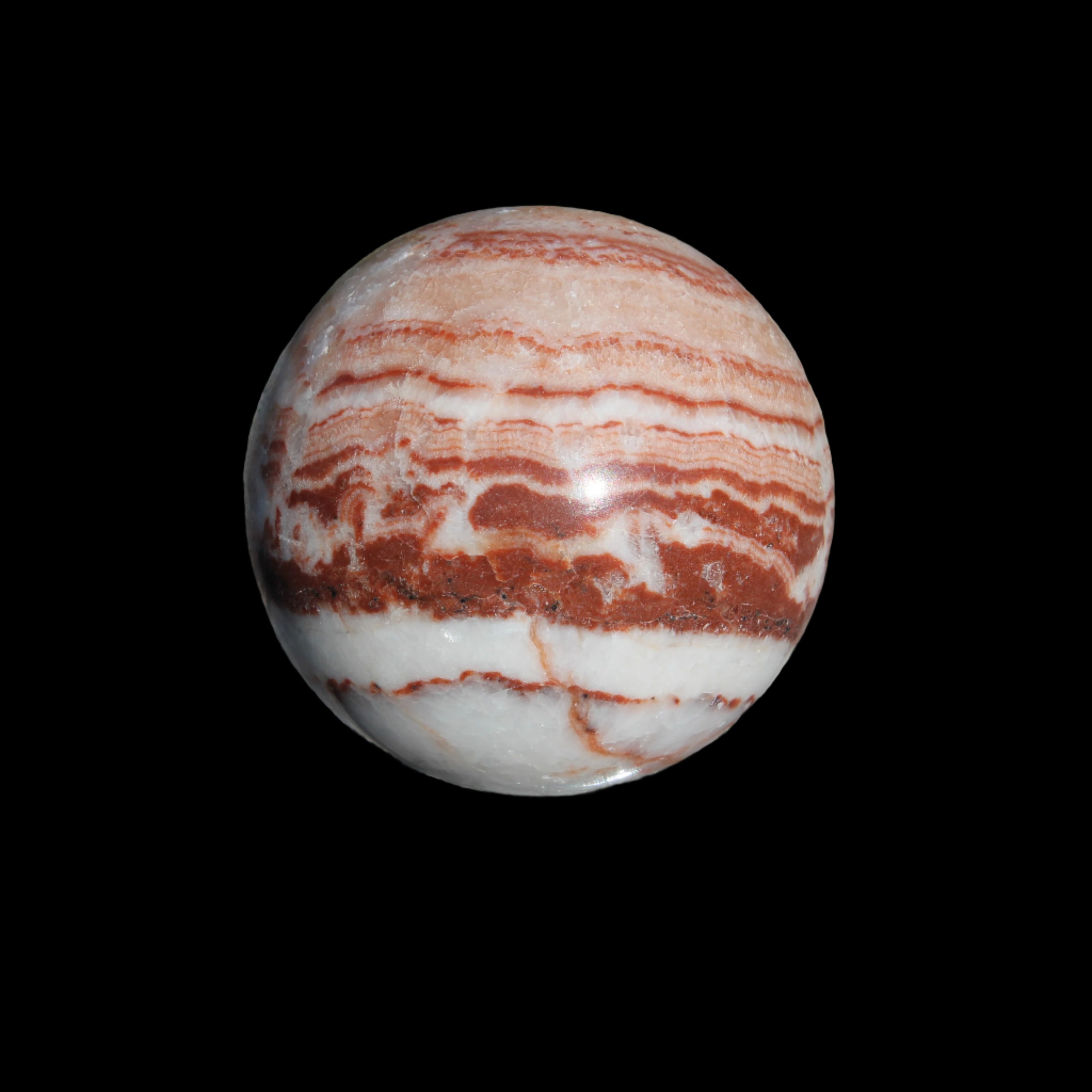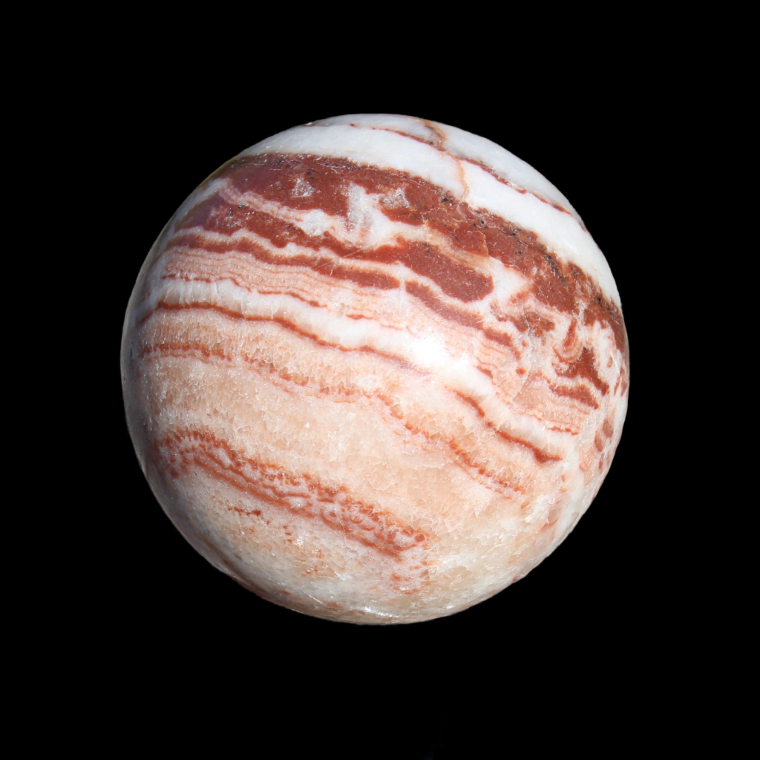 This Rhodochrosite sphere weighs 287g. Rhodochrosite is named for the Greek rhodon, meaning ‘rose’ and chrosis, meaning ‘colouring’. It is mostly formed in hydrothermal vein deposits.