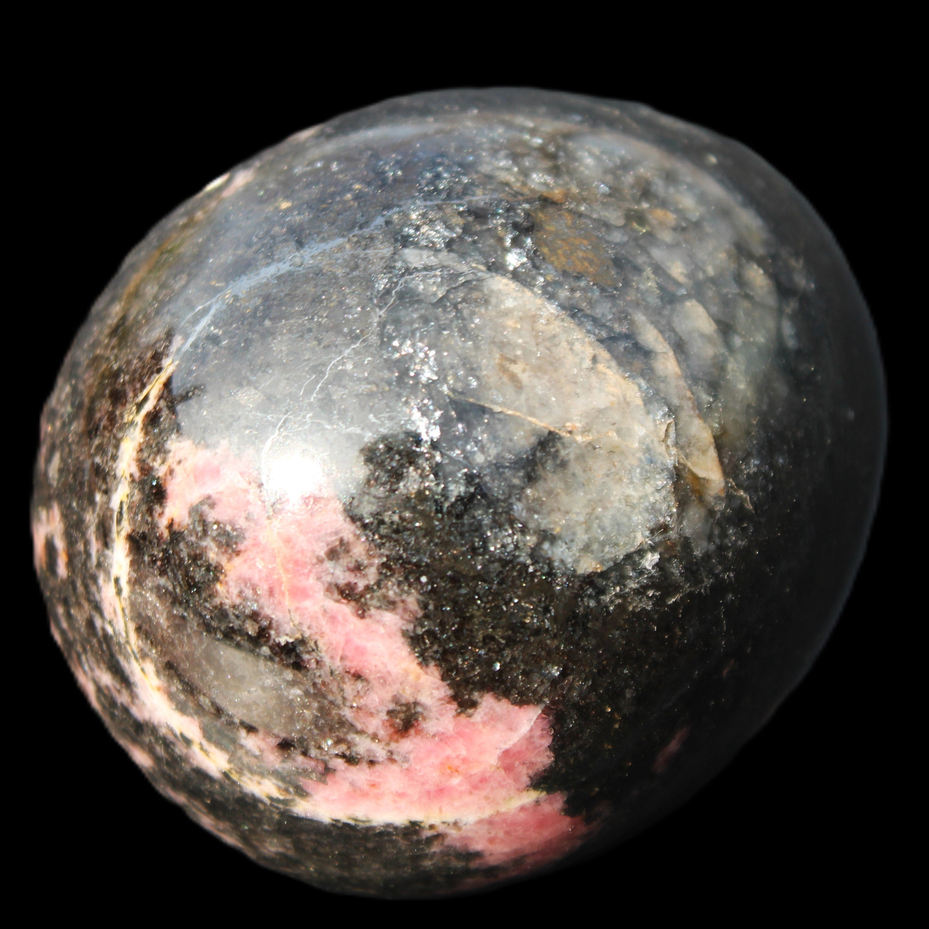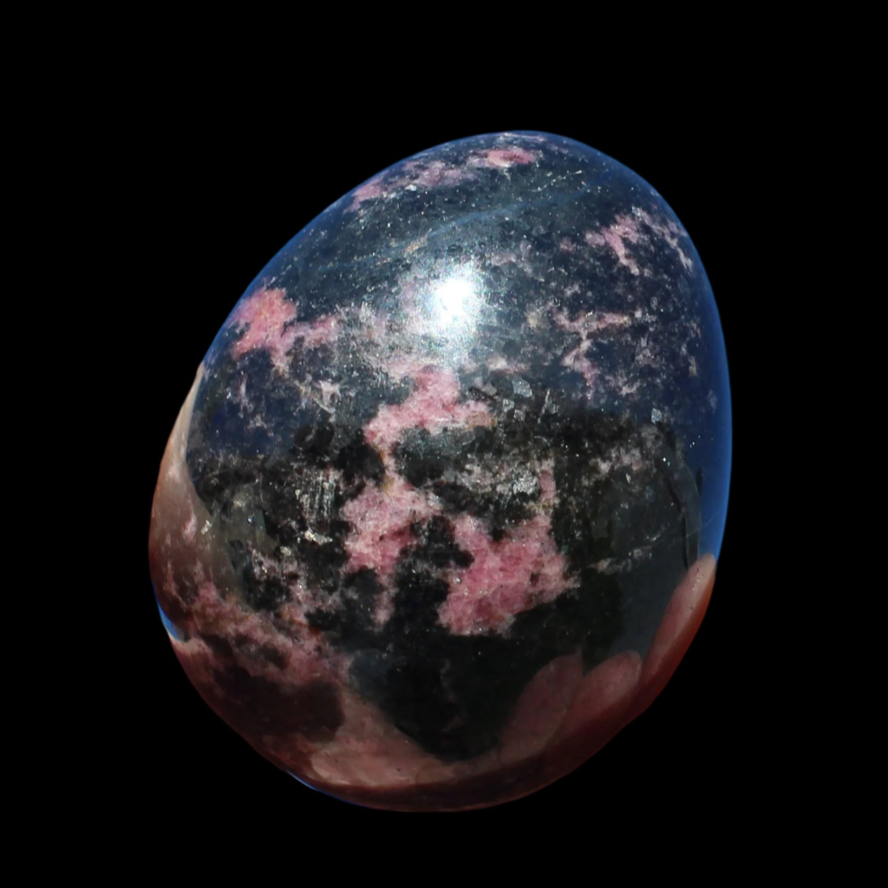 Rhodonite egg 248g in sunlight - Rocks and Things Store