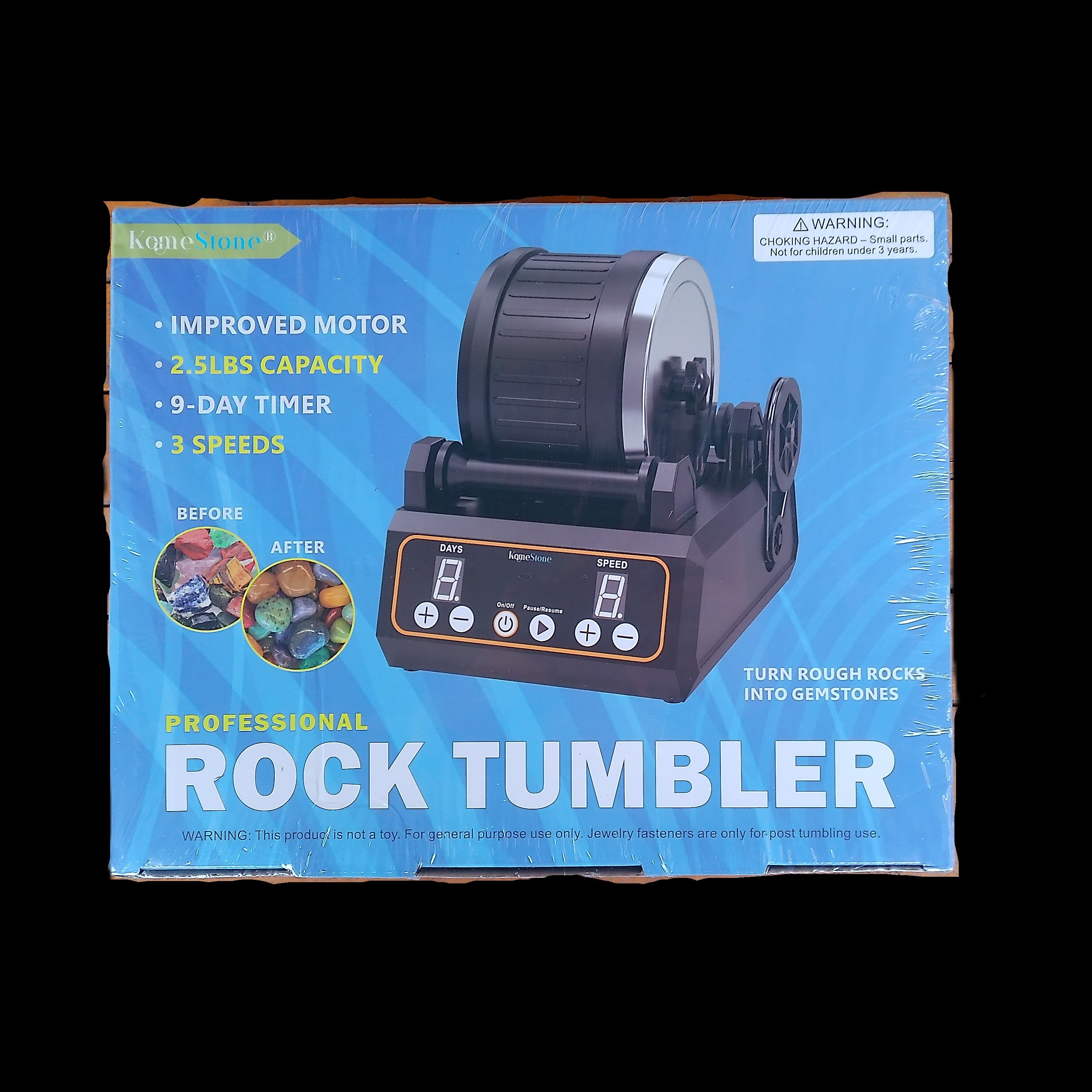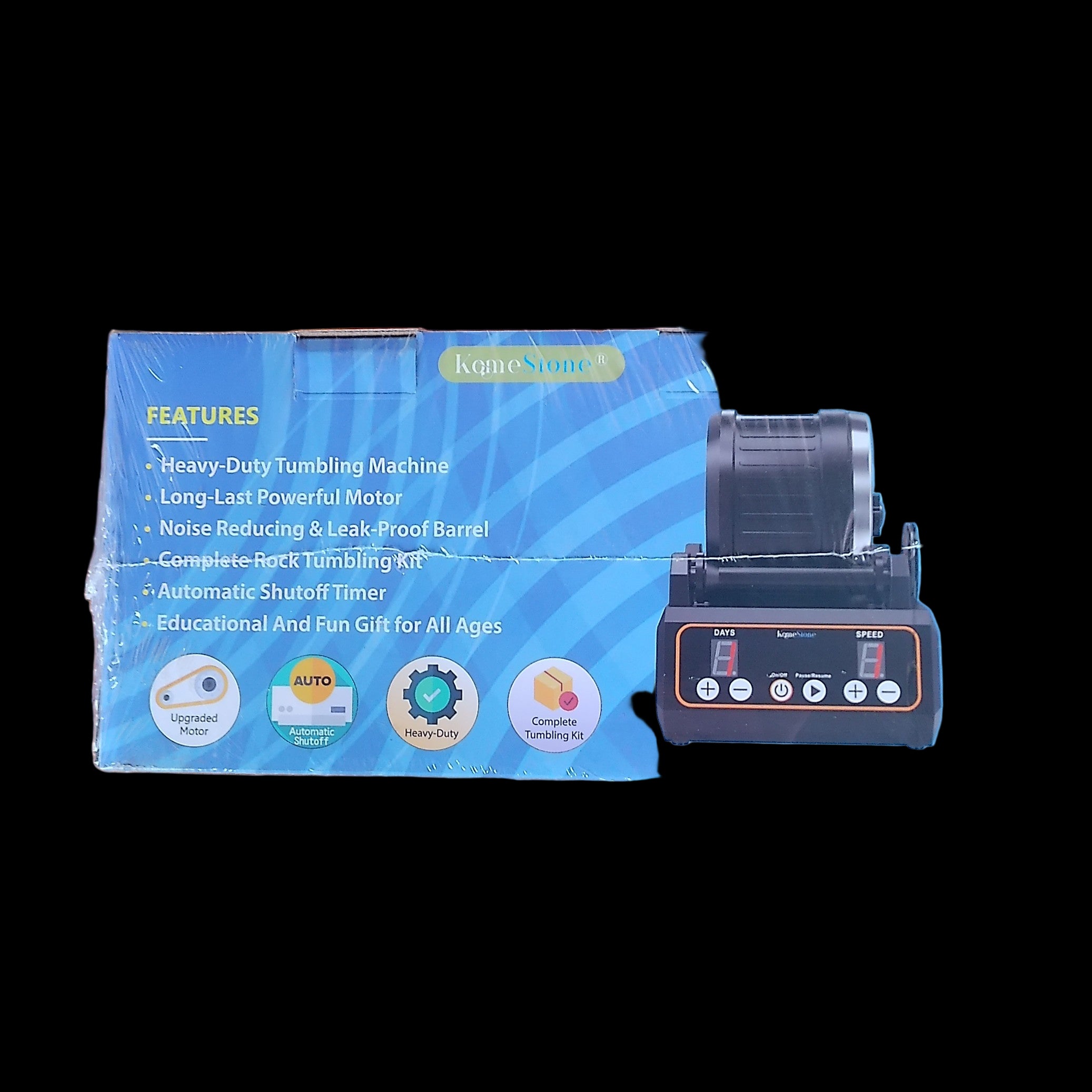 My original tumbler wore out after 5 years of heavy use. I got one of these to replace it as it offered good value. I was struck by the design and features immediately and it has been running since its arrival. I am now offering them for sale because I was so impressed. In the box is everything you need to get started.