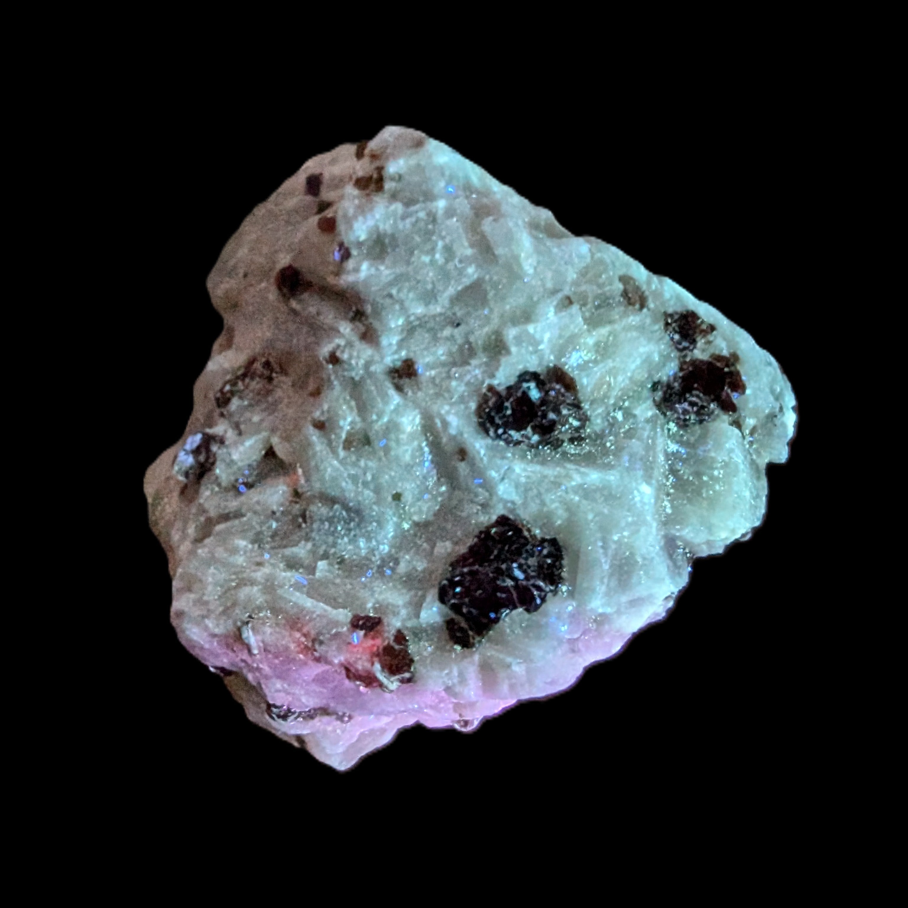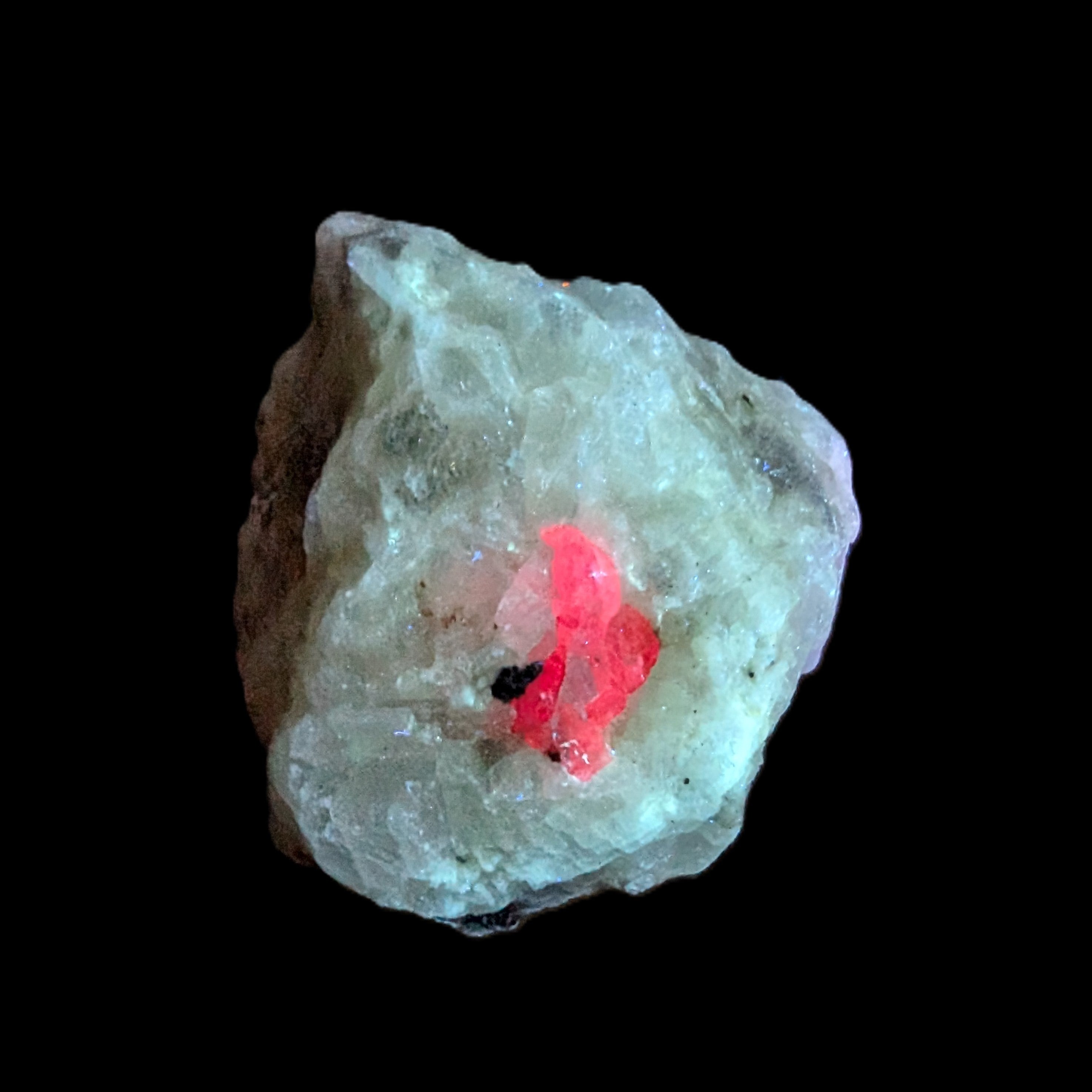 This specimen is a Ruby UV reactive with Phlogopite in Marble/Dolomite matrix weighing 398.9ct or 79.8g.
