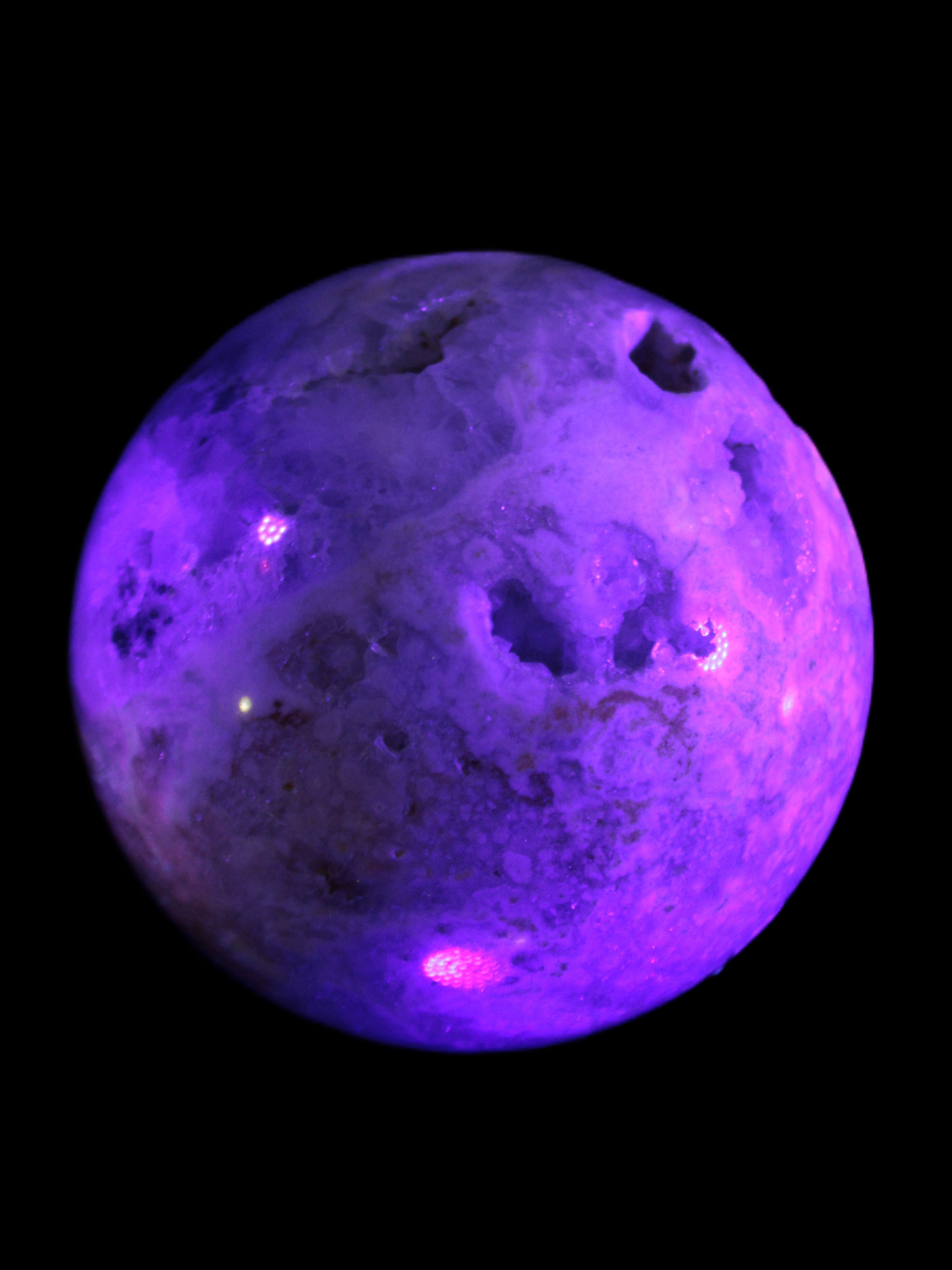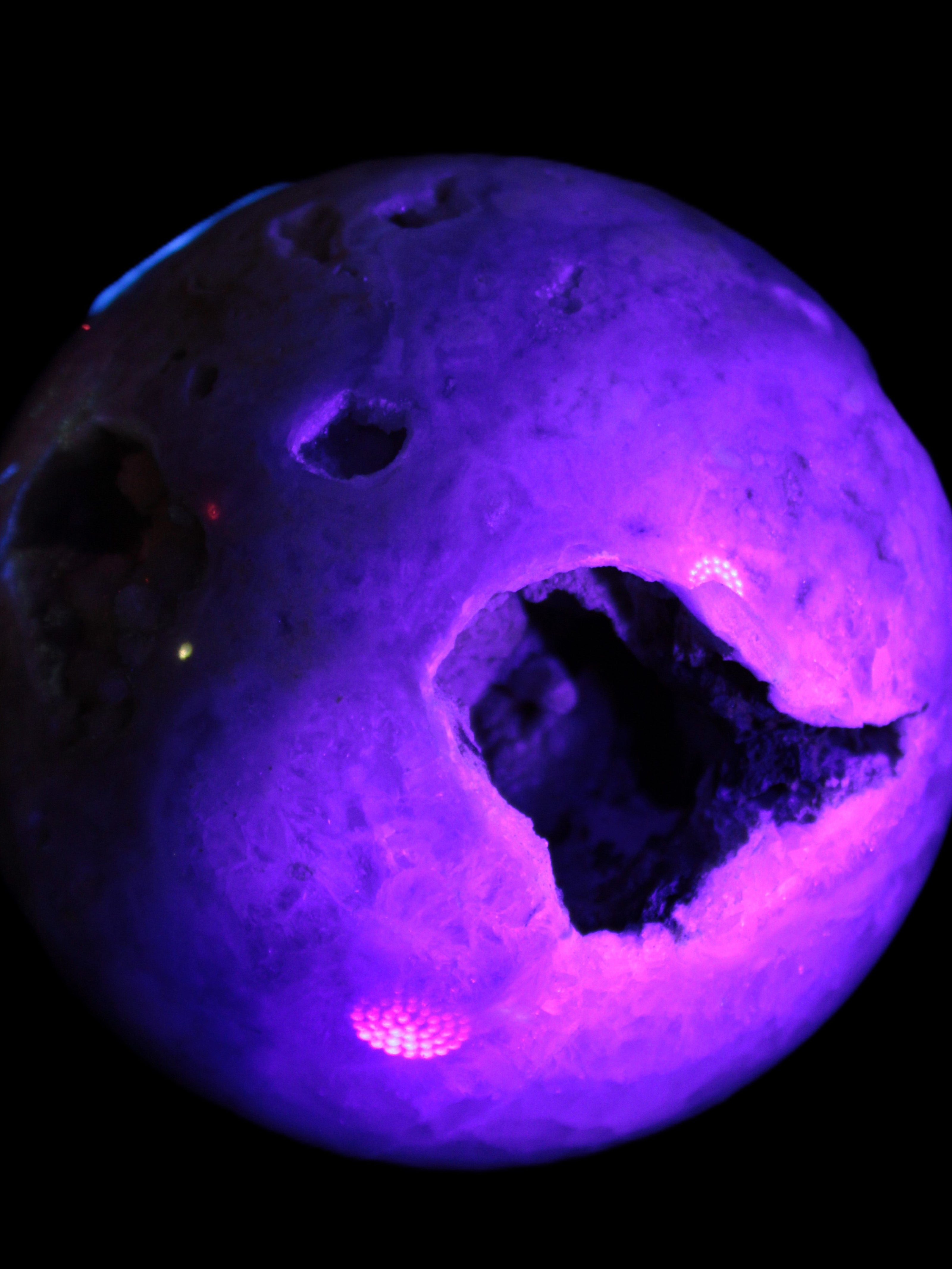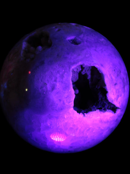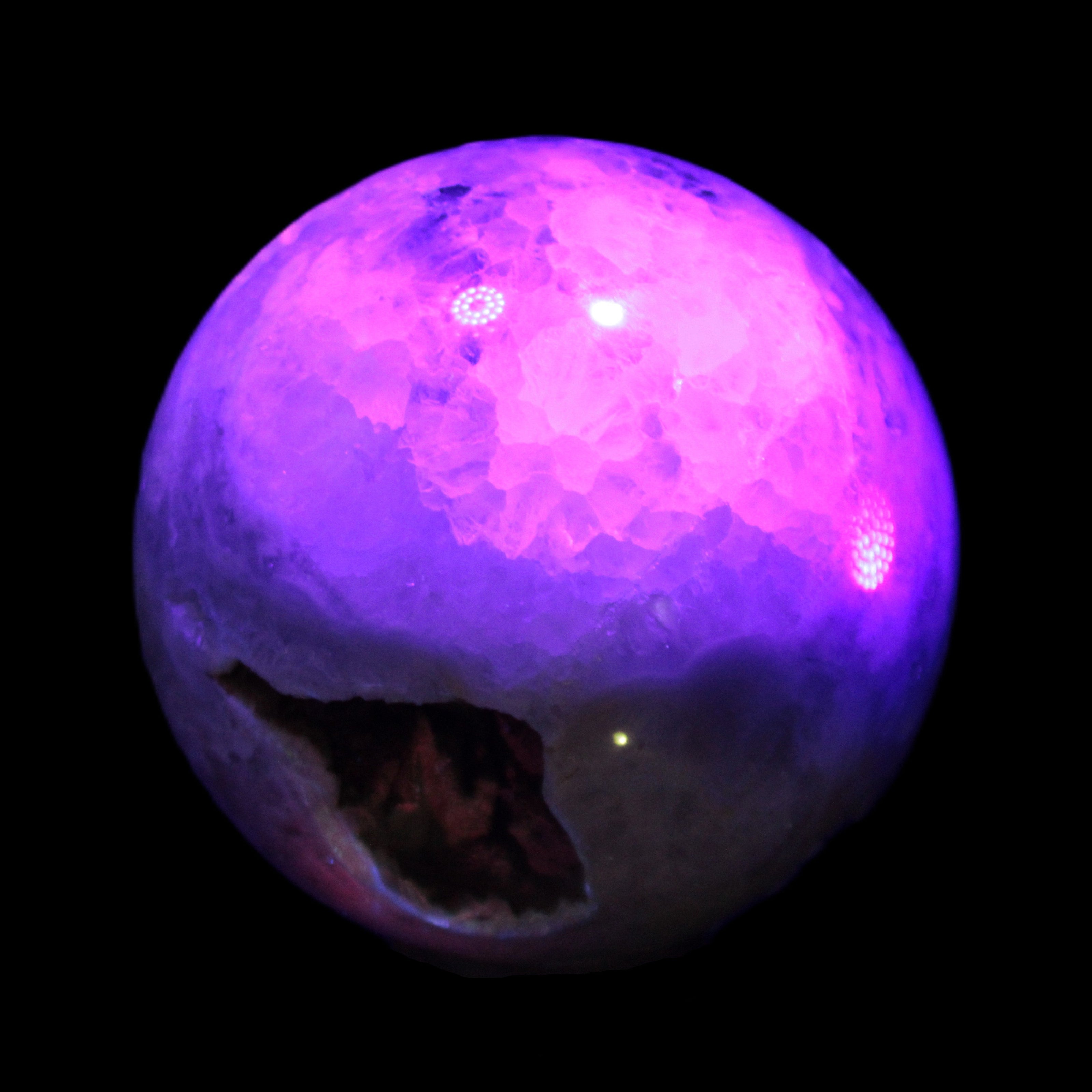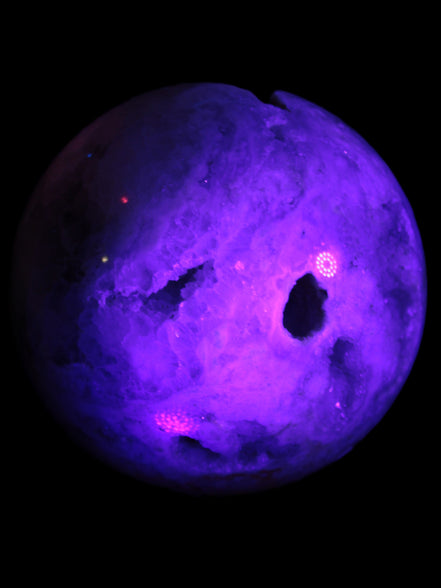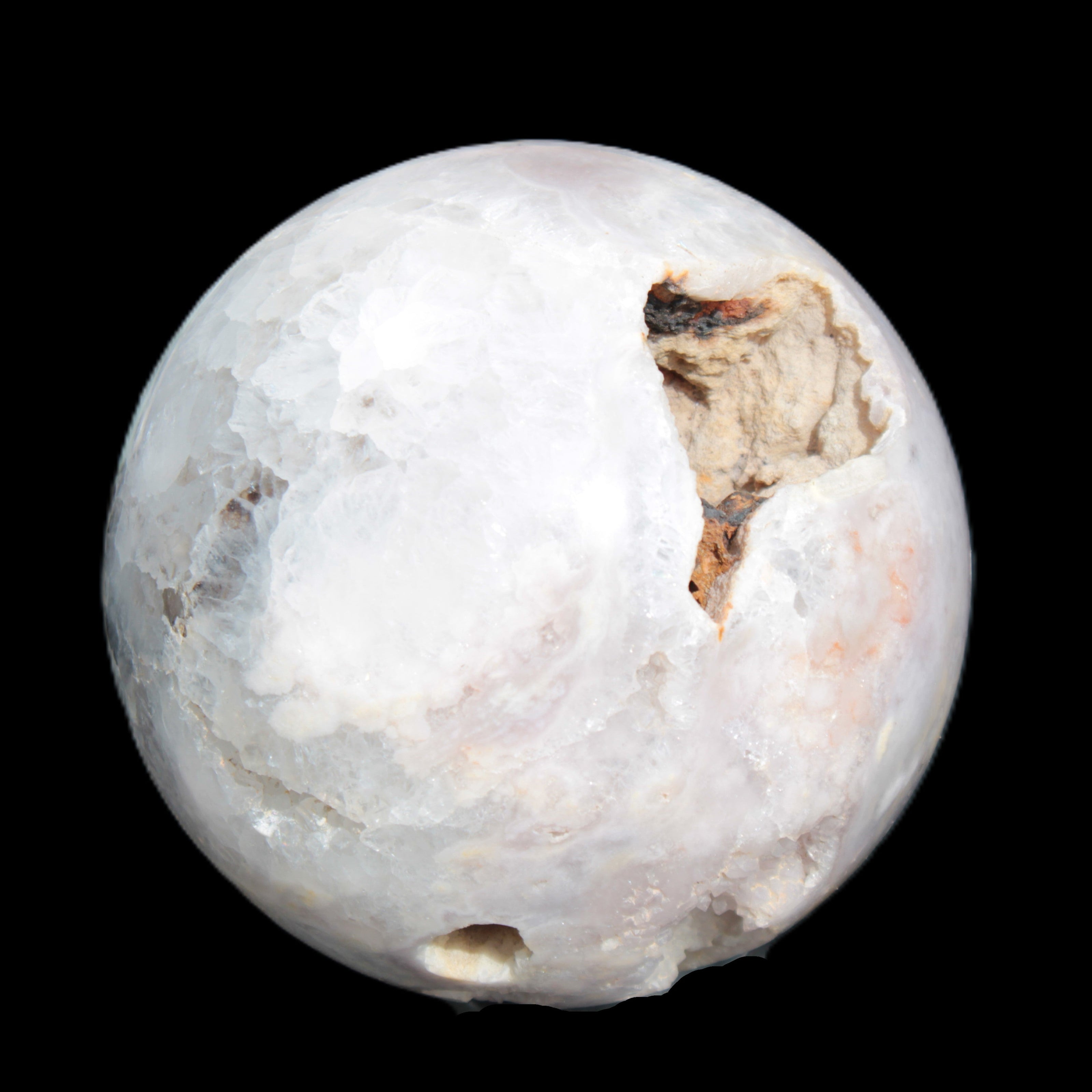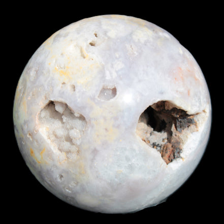 This Sakura Agate sphere 97mm weighs 1062g. This lovely sphere has many drusy and larger crystal geode caves. It also features soft pastel colors and the suggestion of crystal flowers. This look, reminiscent of cherry blossoms, gives this beautiful stone its name. When fully developed into these petal shapes this stone is known as Cherry Blossom Agate. The word Sakura is derived from the Japanese word for cherry blossoms, celebrated in Japanese culture for their beauty and symbolism.