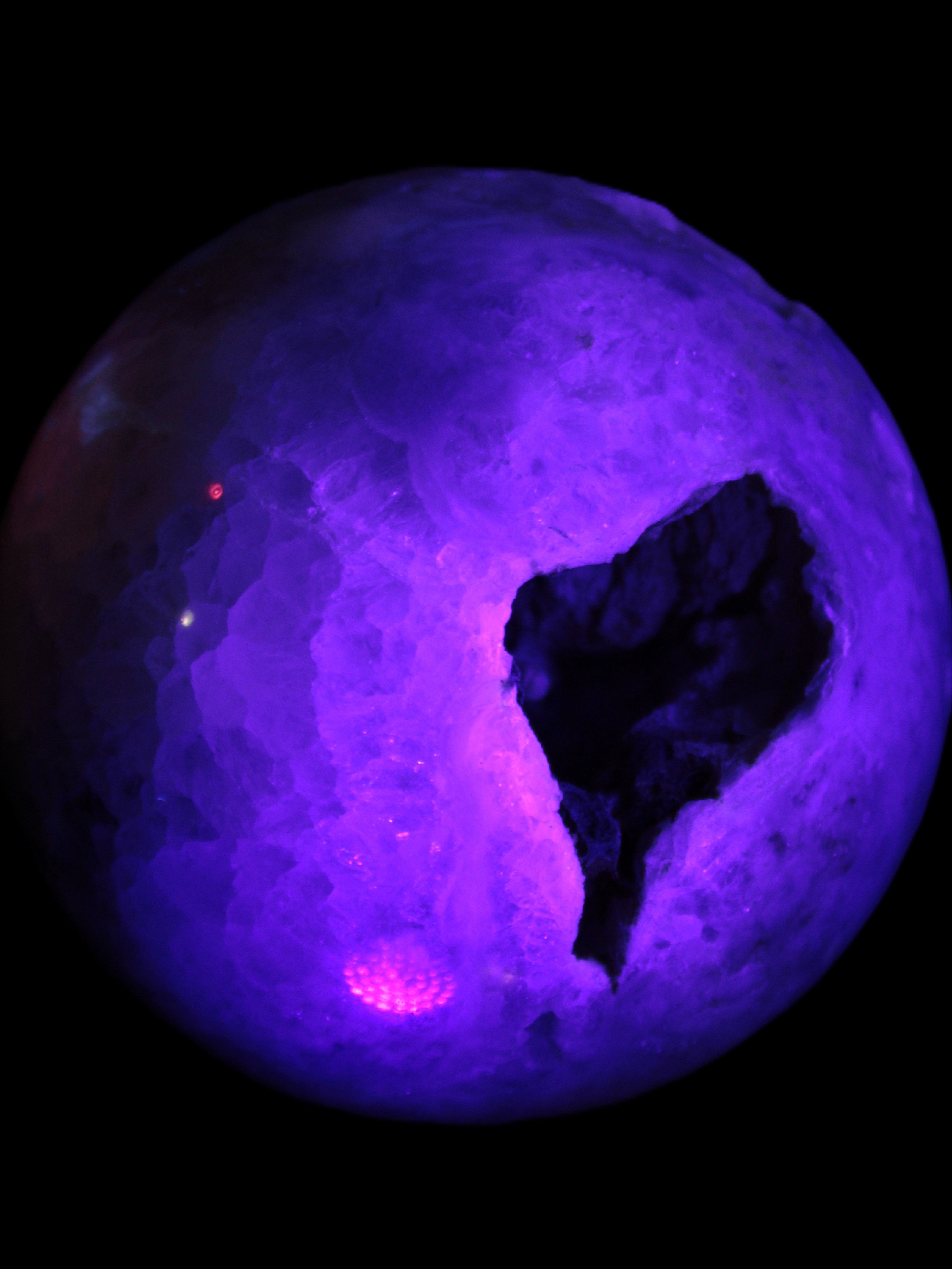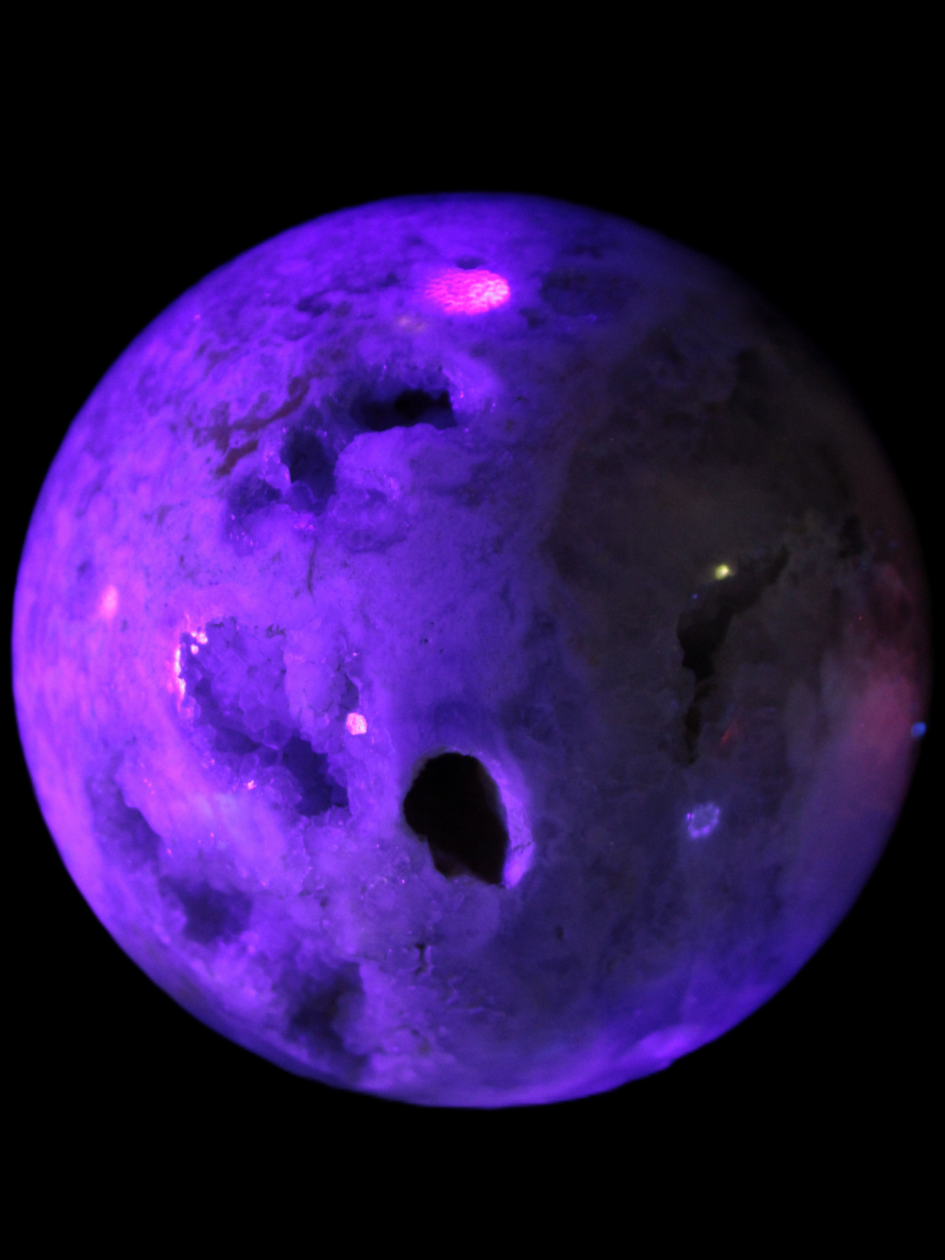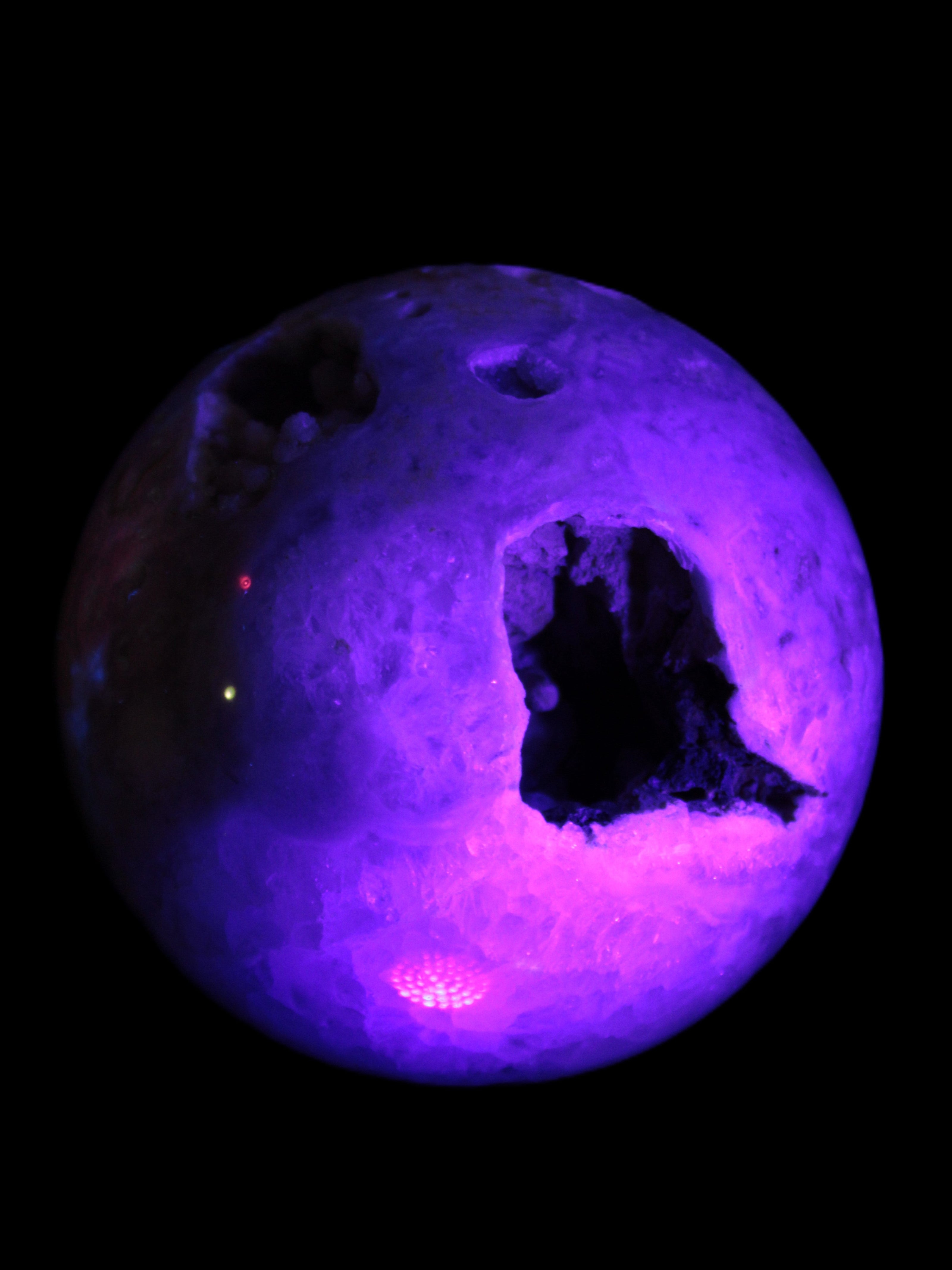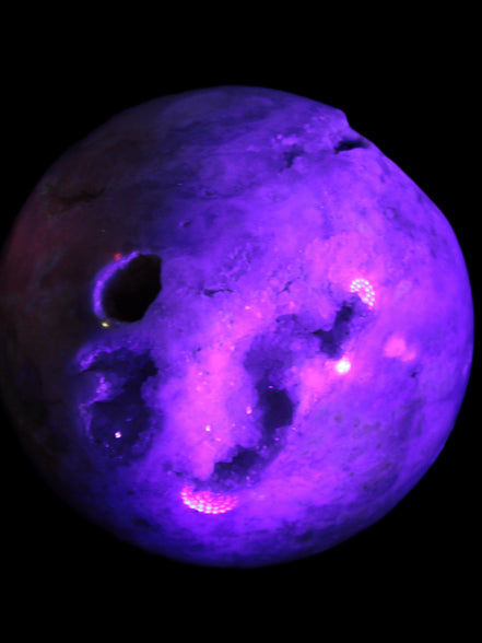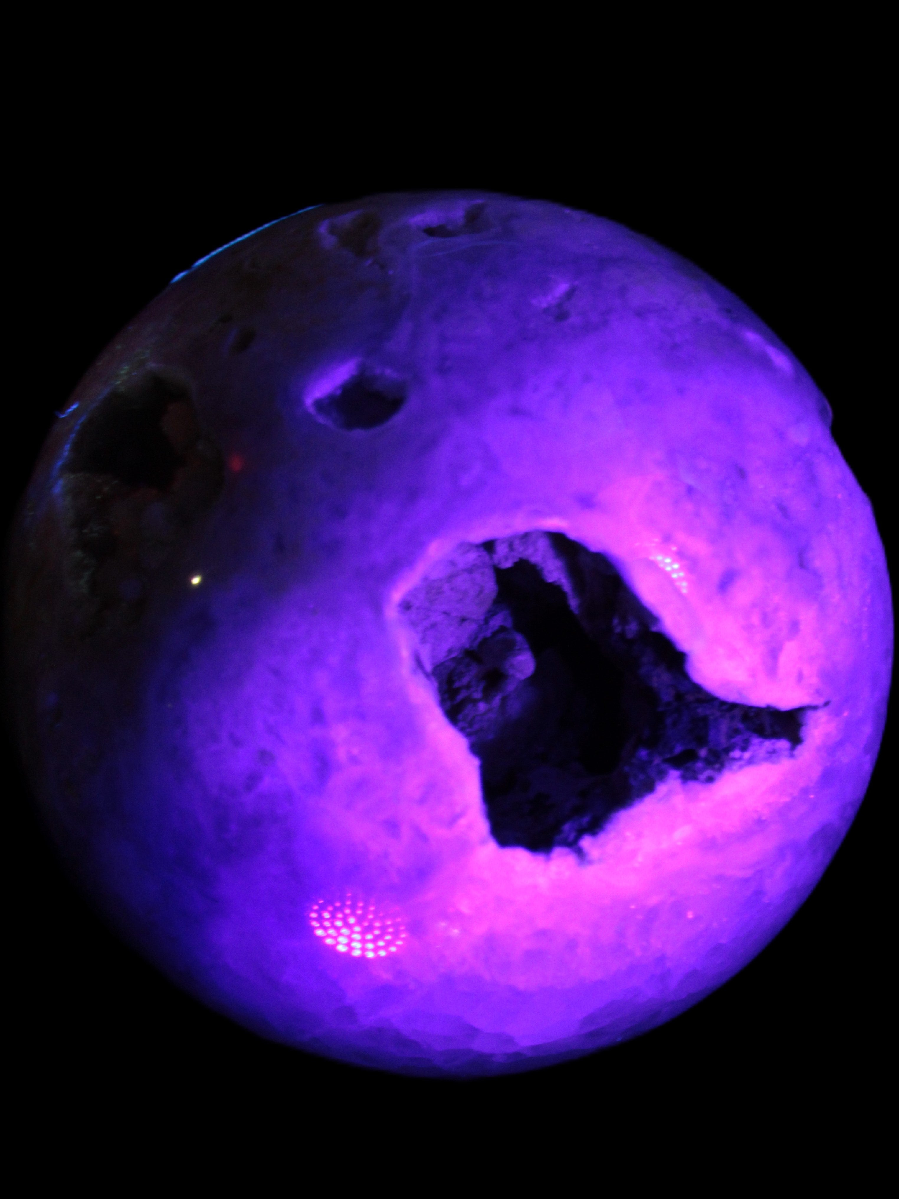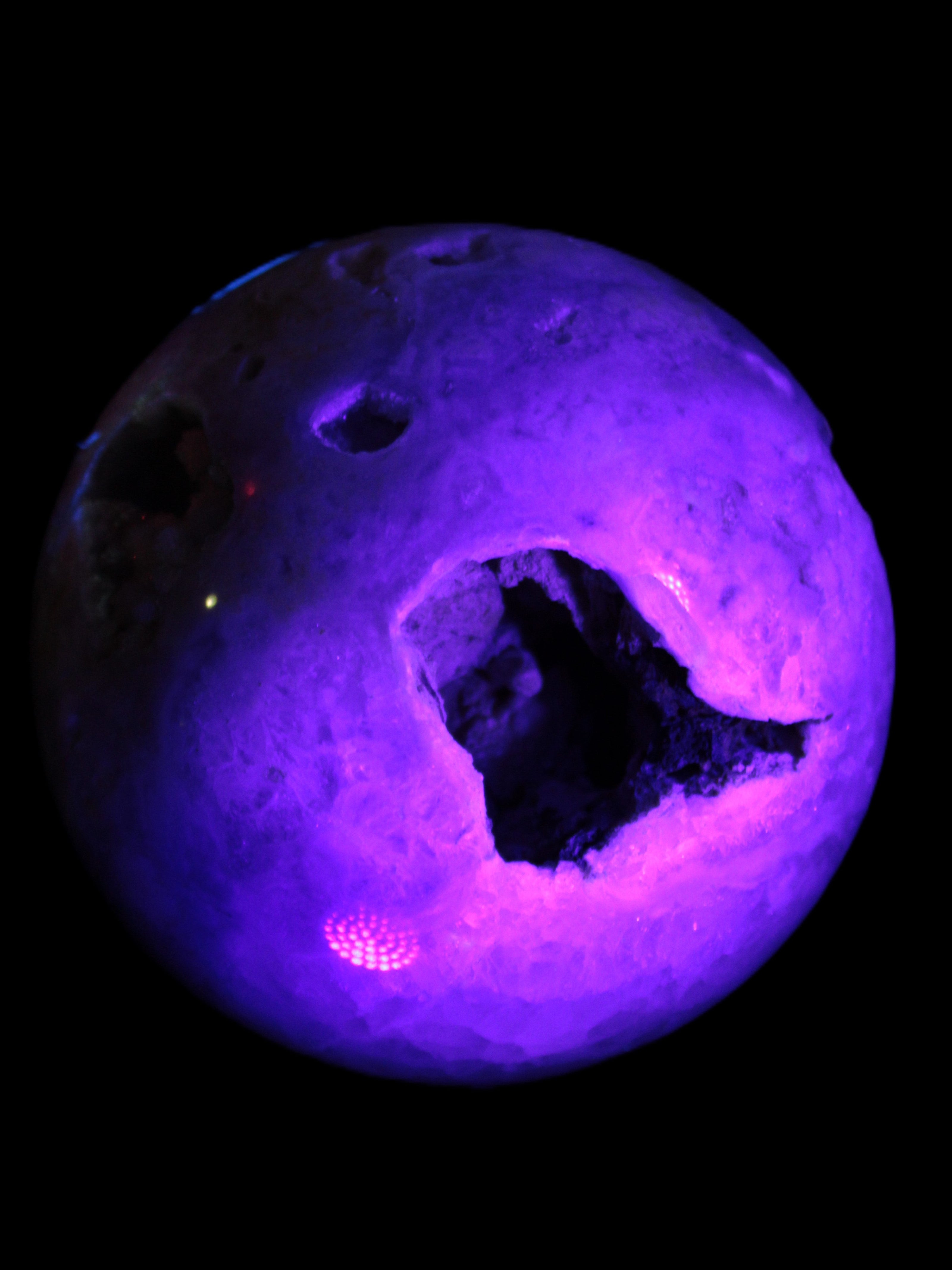 This Sakura Agate sphere 97mm weighs 1062g. This lovely sphere has many drusy and larger crystal geode caves. It also features soft pastel colors and the suggestion of crystal flowers. This look, reminiscent of cherry blossoms, gives this beautiful stone its name. When fully developed into these petal shapes this stone is known as Cherry Blossom Agate. The word Sakura is derived from the Japanese word for cherry blossoms, celebrated in Japanese culture for their beauty and symbolism.