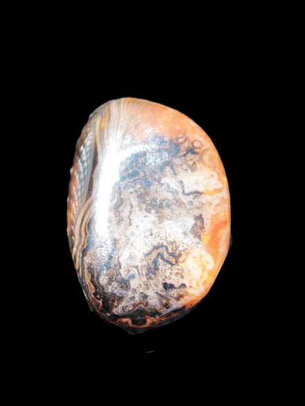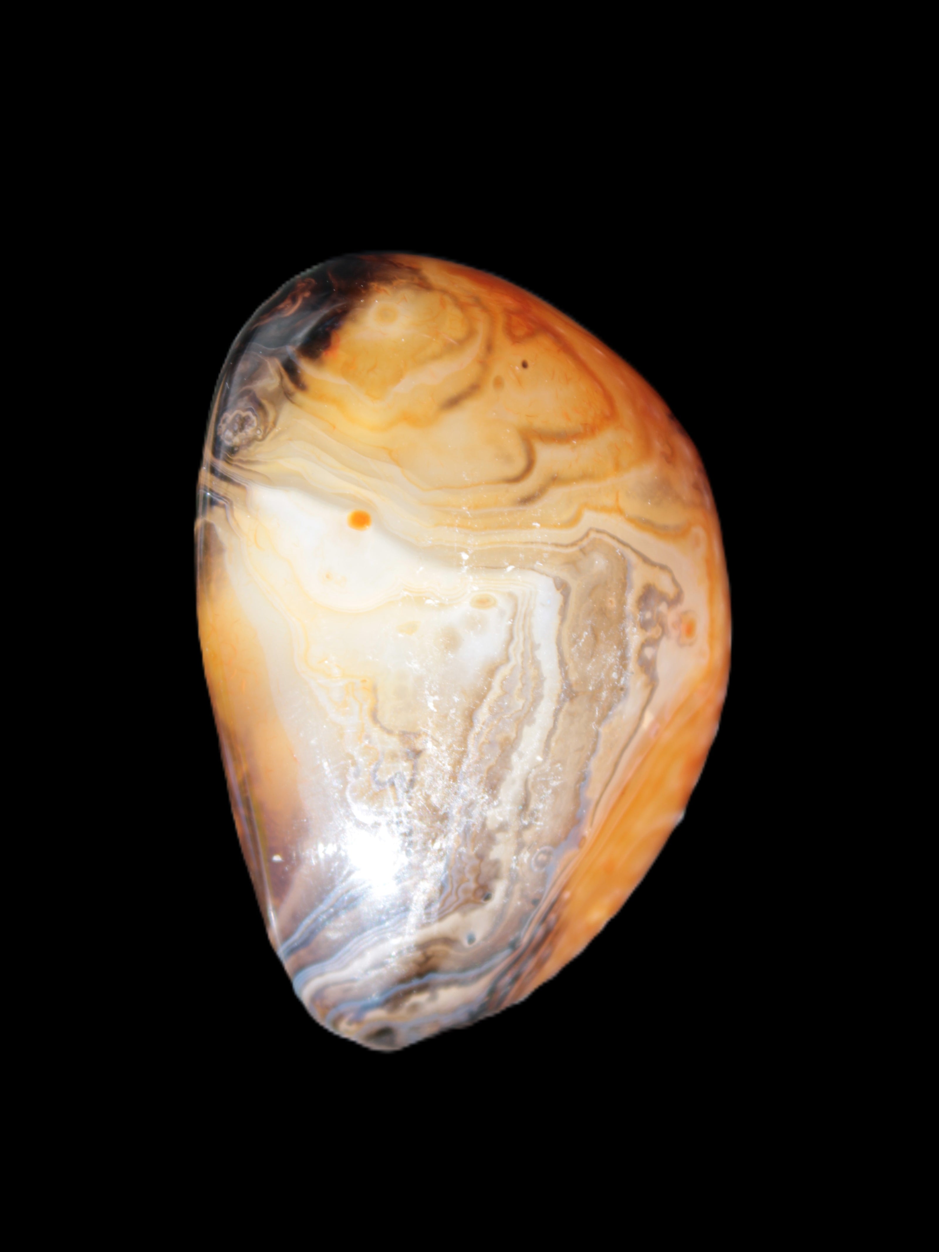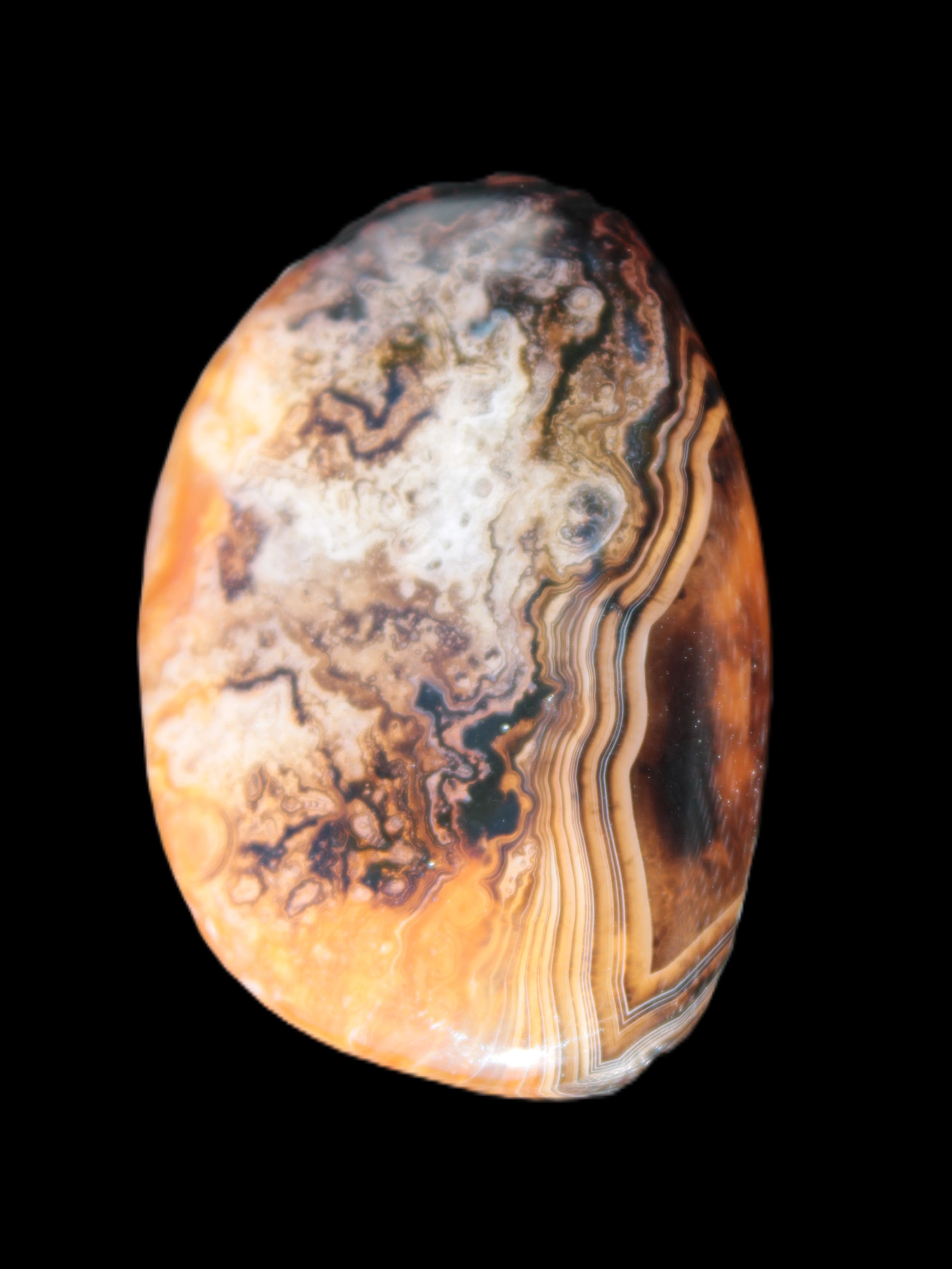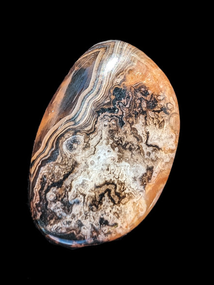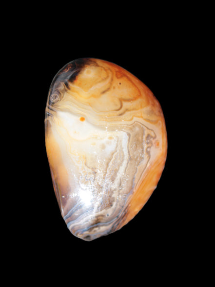 This Sardonyx agate selection is palm-sized, weighing 35-45g. This item is an example of the popular Crazy Lace Agate from Madagascar. Sardonyx is a variety of Onyx containing Carnelian red bands. Naturally occurring Sardonyx is uncommon and much is dyed. Sardonyx combines the grounding and protecting energies of Onyx, with the strength and courage energies of Carnelian. Sardonyx brings out your inner strength, helping you to strive towards your dreams and goals.