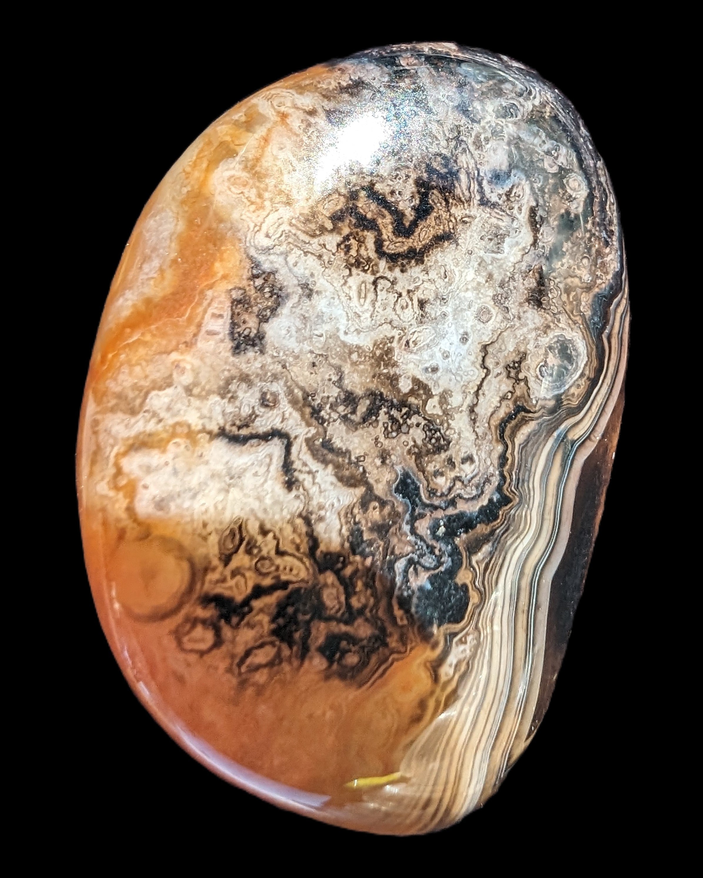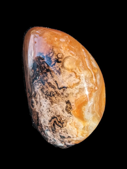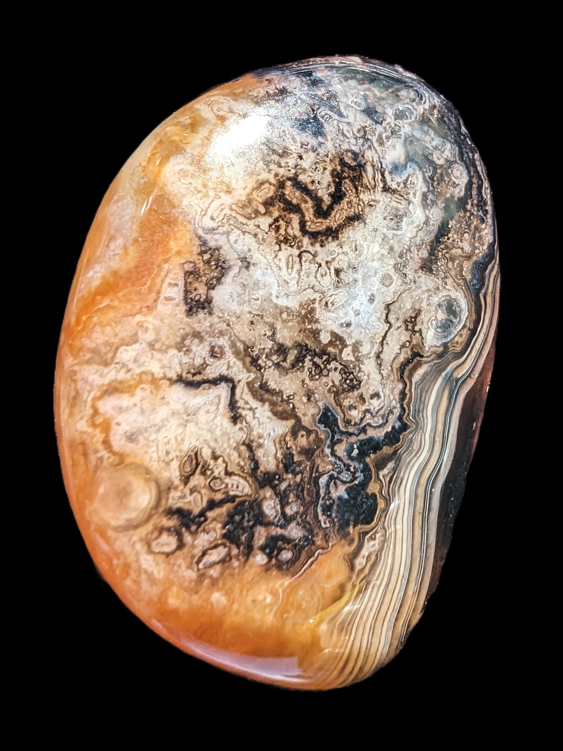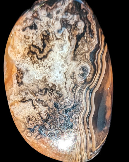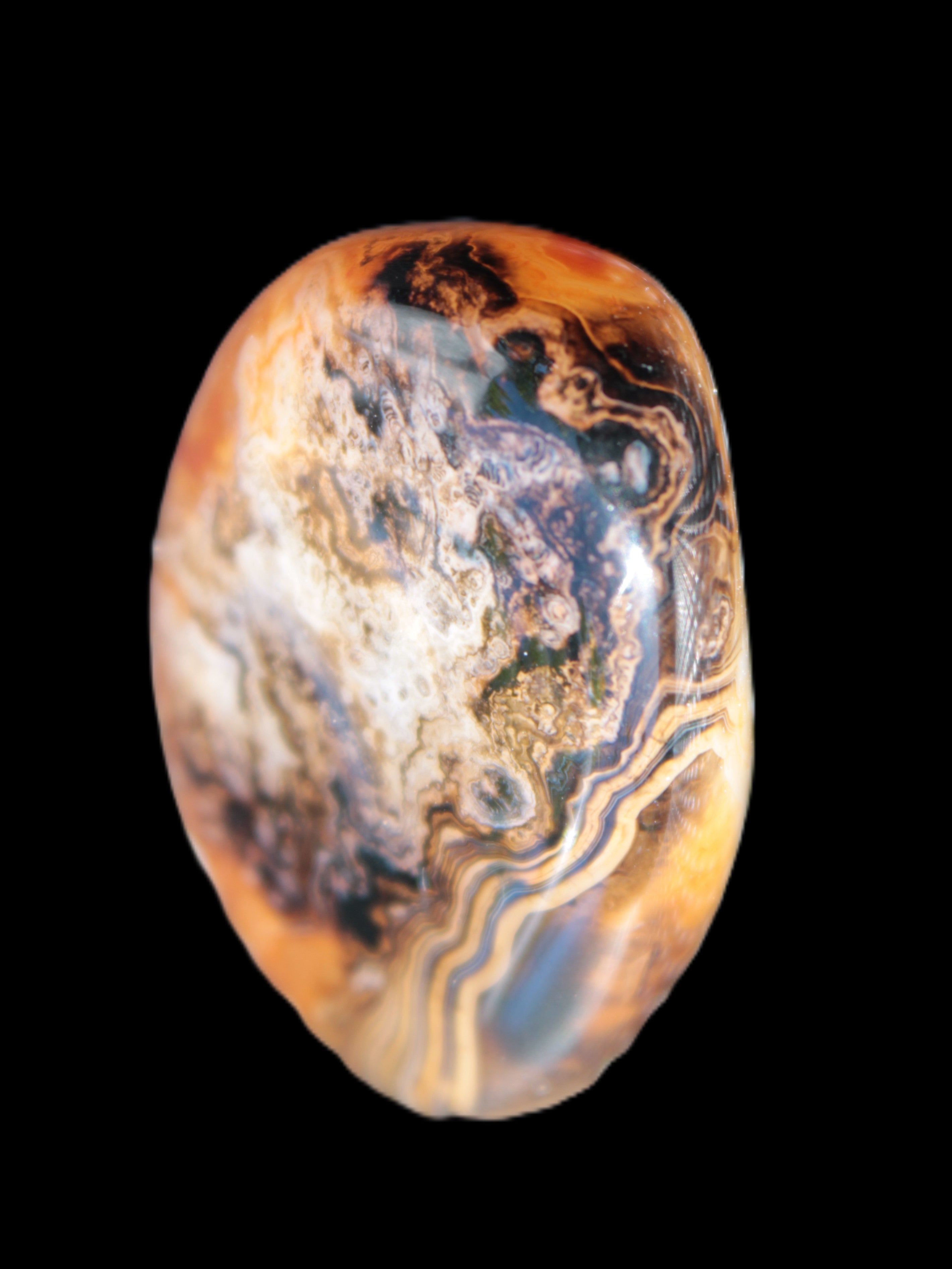 This Sardonyx agate selection is palm-sized, weighing 35-45g. This item is an example of the popular Crazy Lace Agate from Madagascar. Sardonyx is a variety of Onyx containing Carnelian red bands. Naturally occurring Sardonyx is uncommon and much is dyed. Sardonyx combines the grounding and protecting energies of Onyx, with the strength and courage energies of Carnelian. Sardonyx brings out your inner strength, helping you to strive towards your dreams and goals.