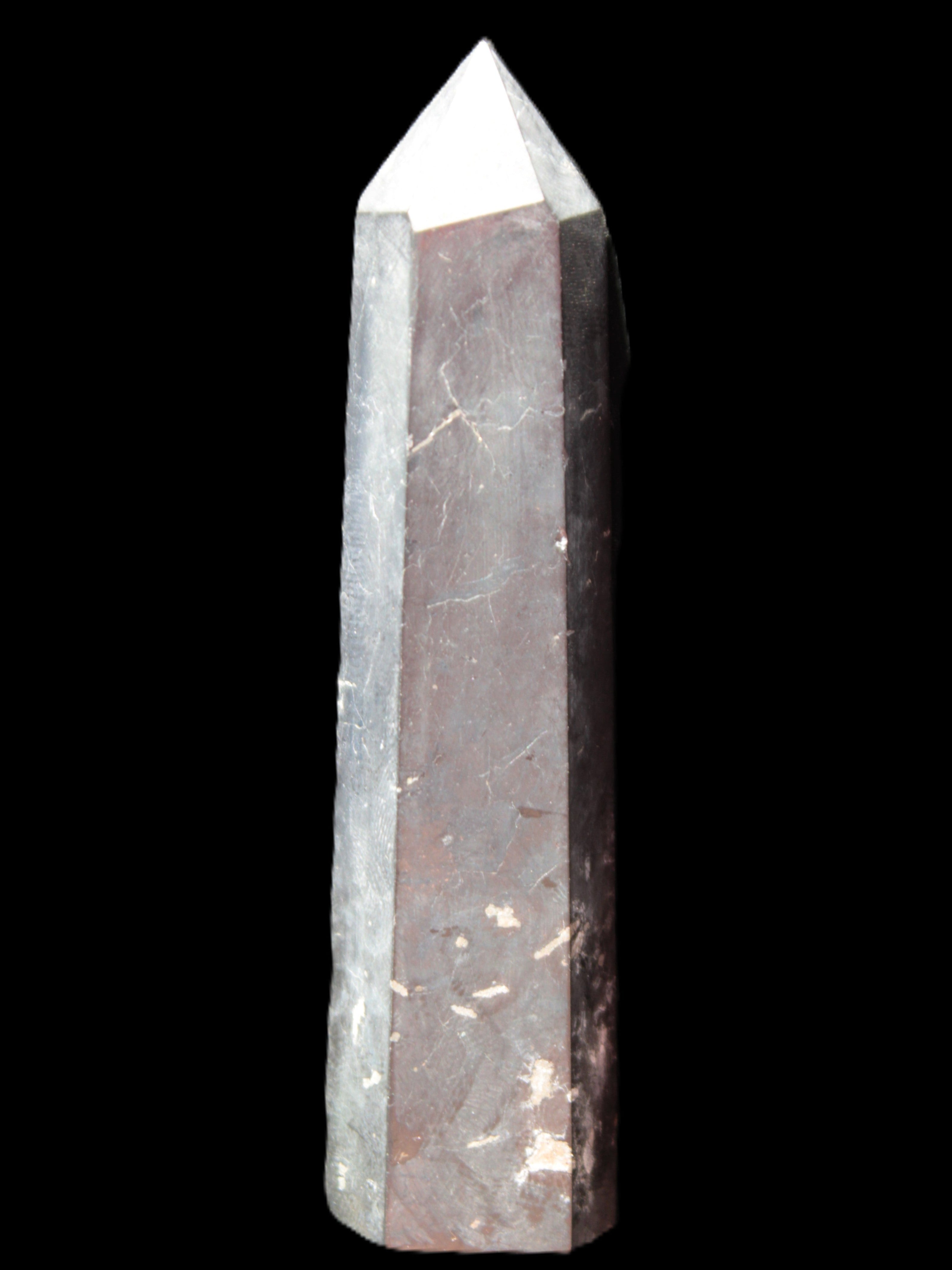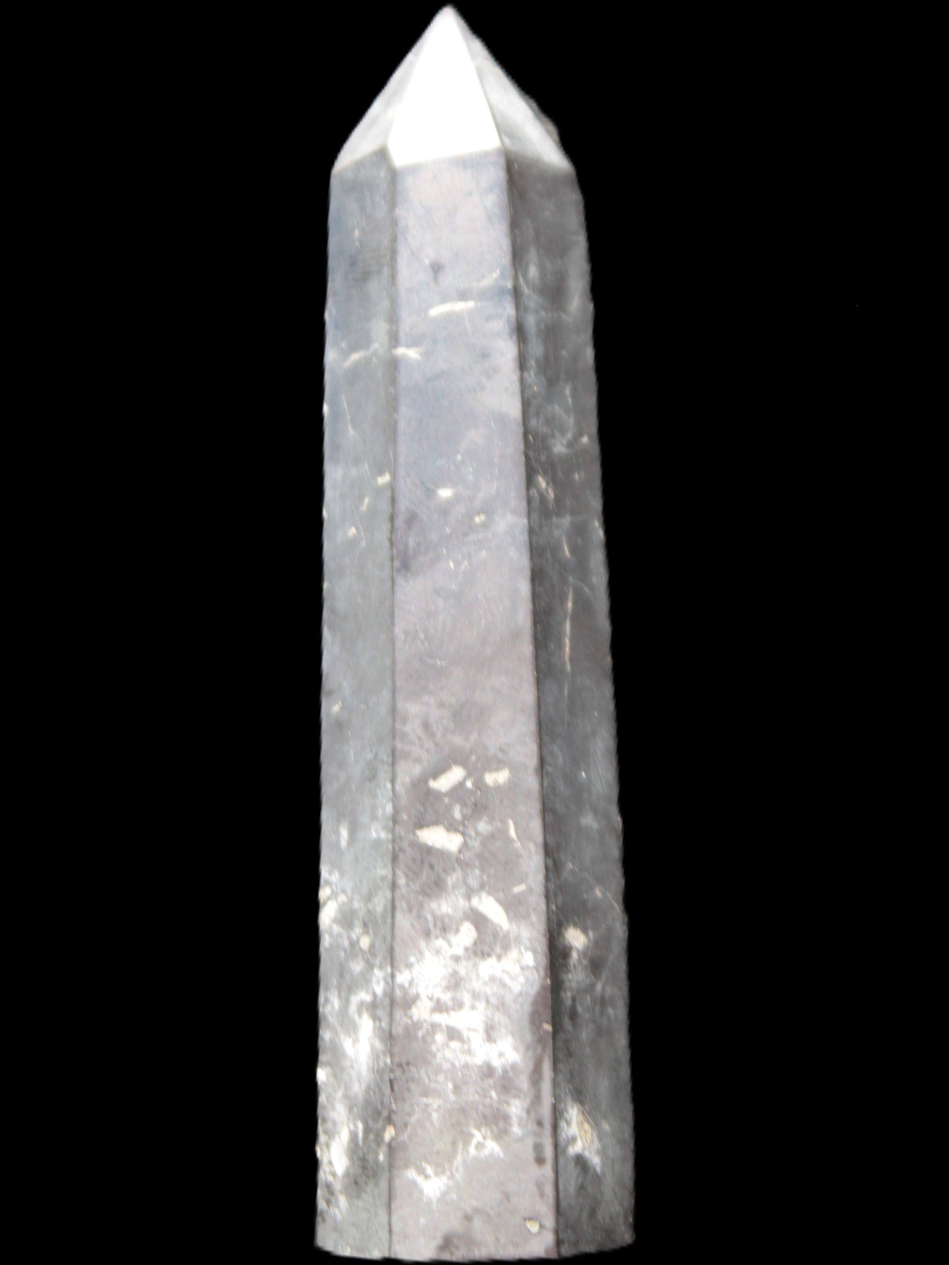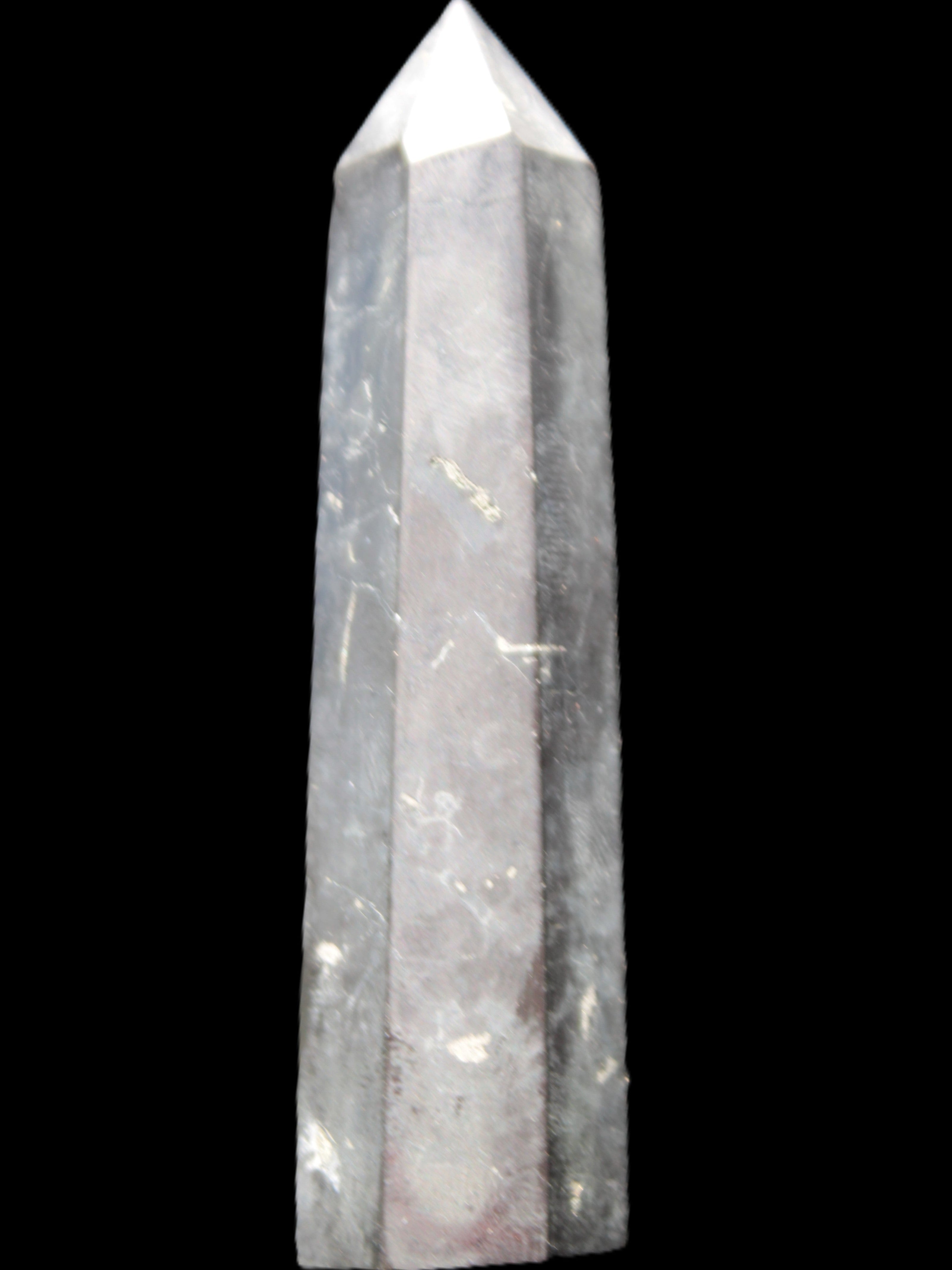 This Noble Shungite wand 57g provides this stone's remarkable properties. It is perfect for a desk or workstation surrounded by negative energies. This hexagonal wand is 93mm tall and 18mm wide at its base.