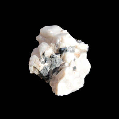 There is a tiny dark Green Tourmaline Elbaite crystal in this matrix, along with some other crystals. One is possibly a very small peach Topaz. The matrix is Feldspar with Mica It was sourced in Afghanistan for Rocks and Things by our partner, Lawrence Riaz.
