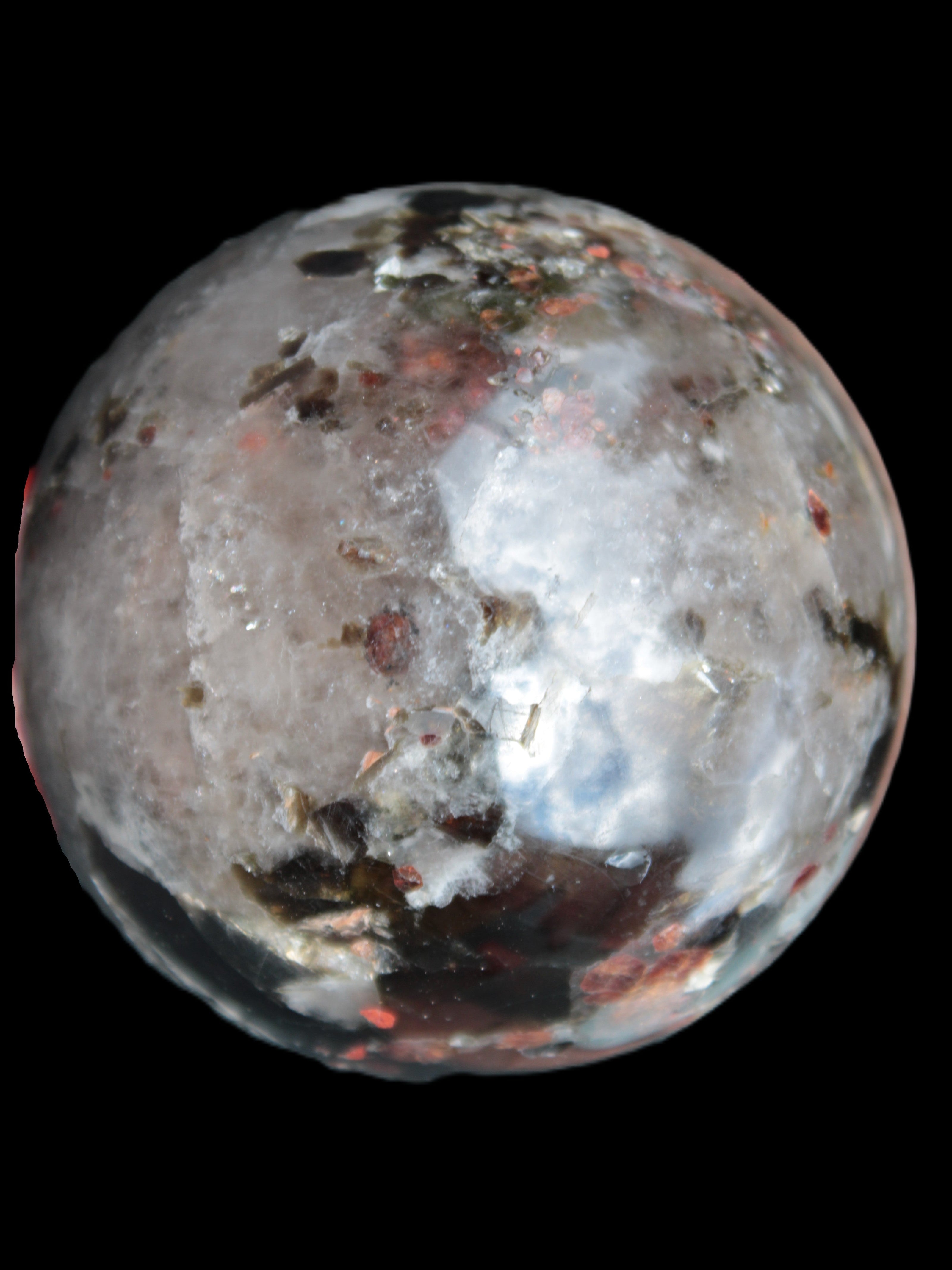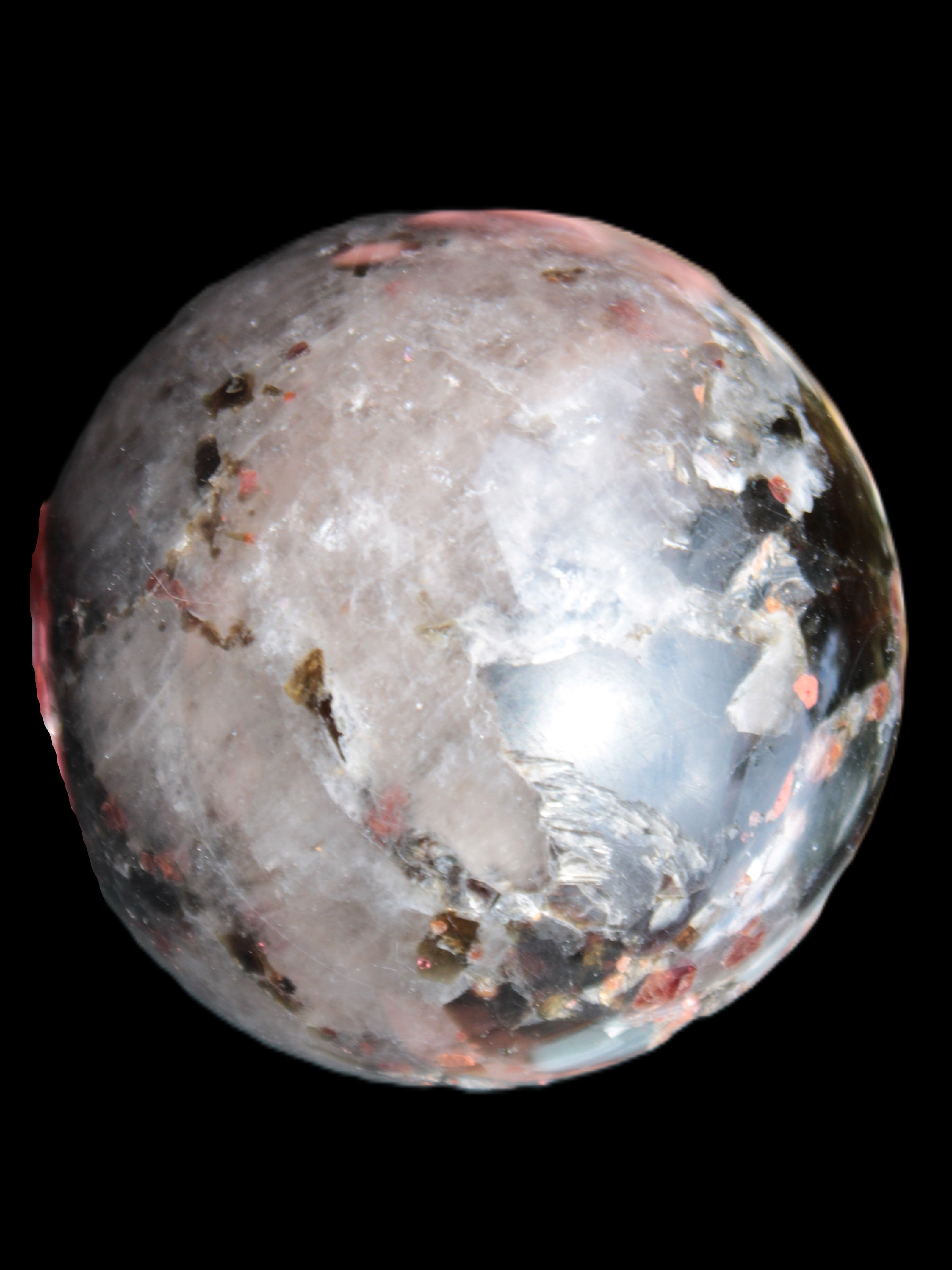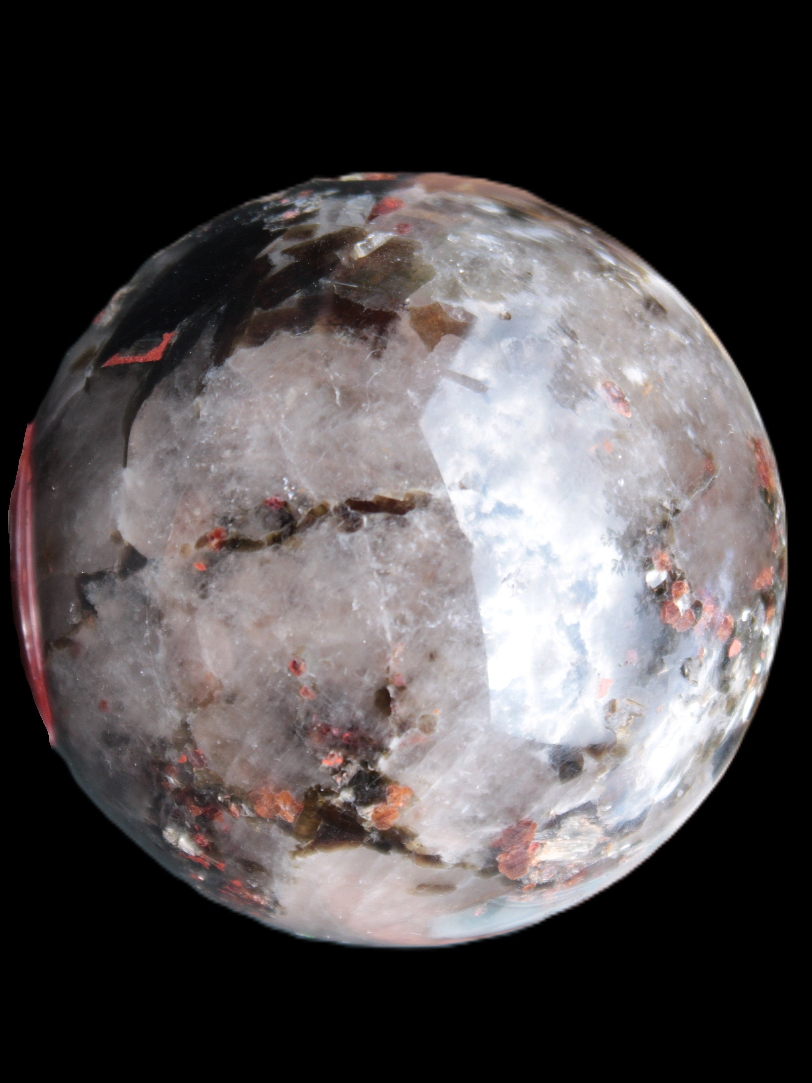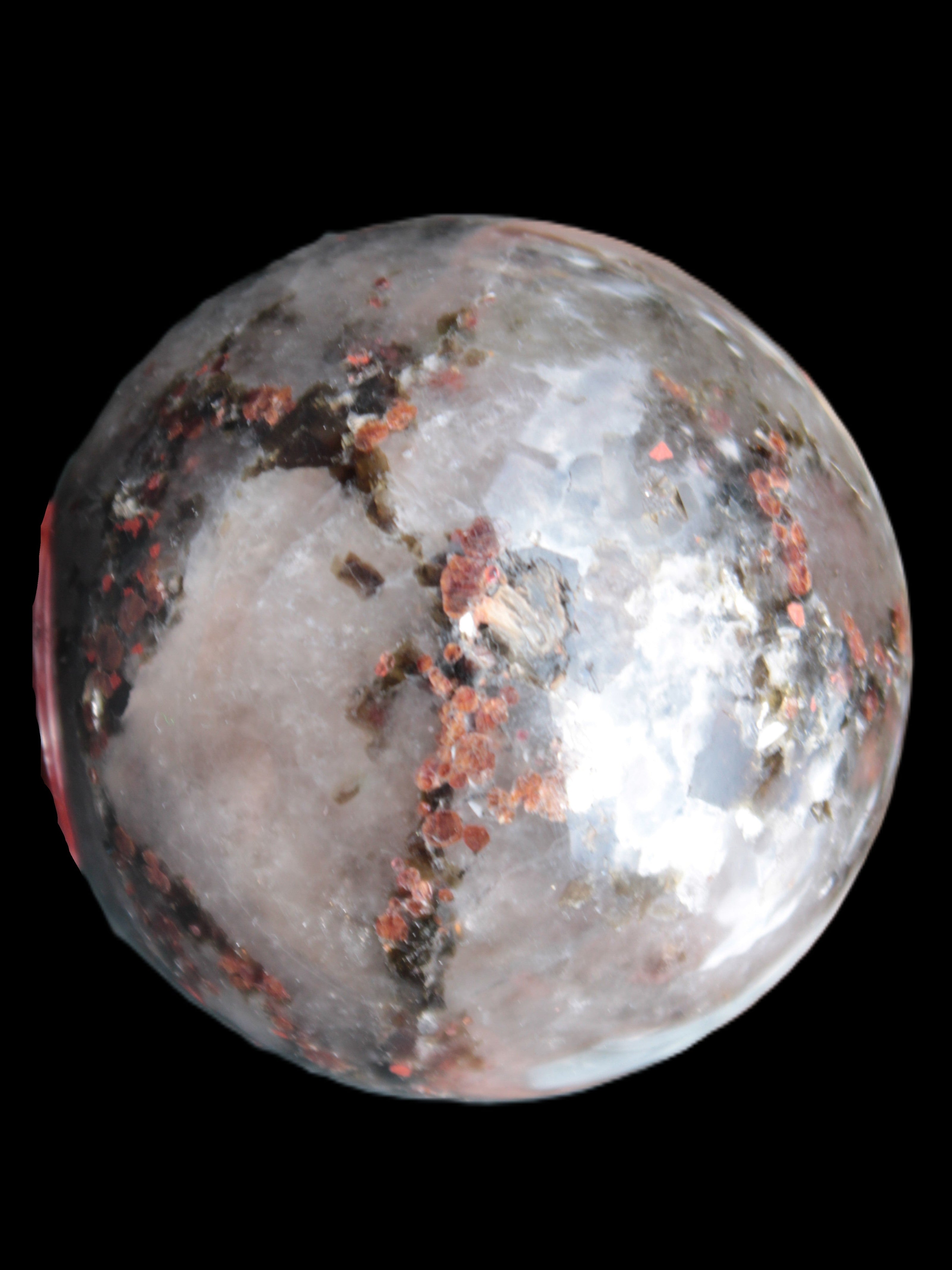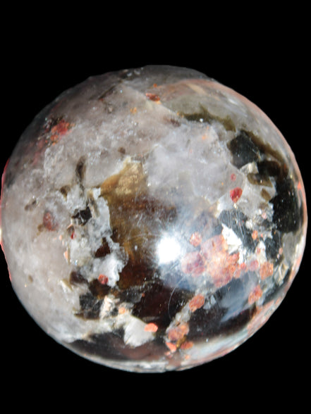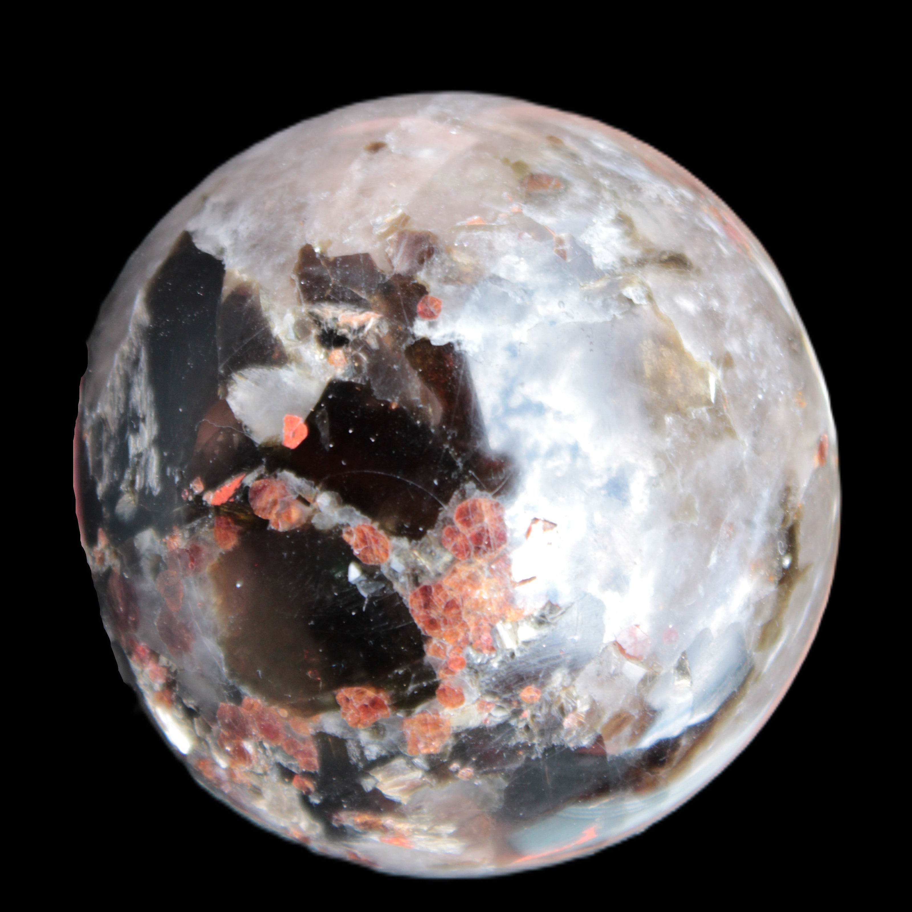 This Smoky Quartz with Garnet sphere 78mm weighs 681g. Smoky Quartz is a centering, grounding and protective crystal. It is an immensely powerful metaphysical stone. Smoky Quartz emits an elevated level of energy. This makes it an excellent crystal for protection from negative energy. Smoky Quartz enhances survival instincts. It assists with prioritising needs and wants.