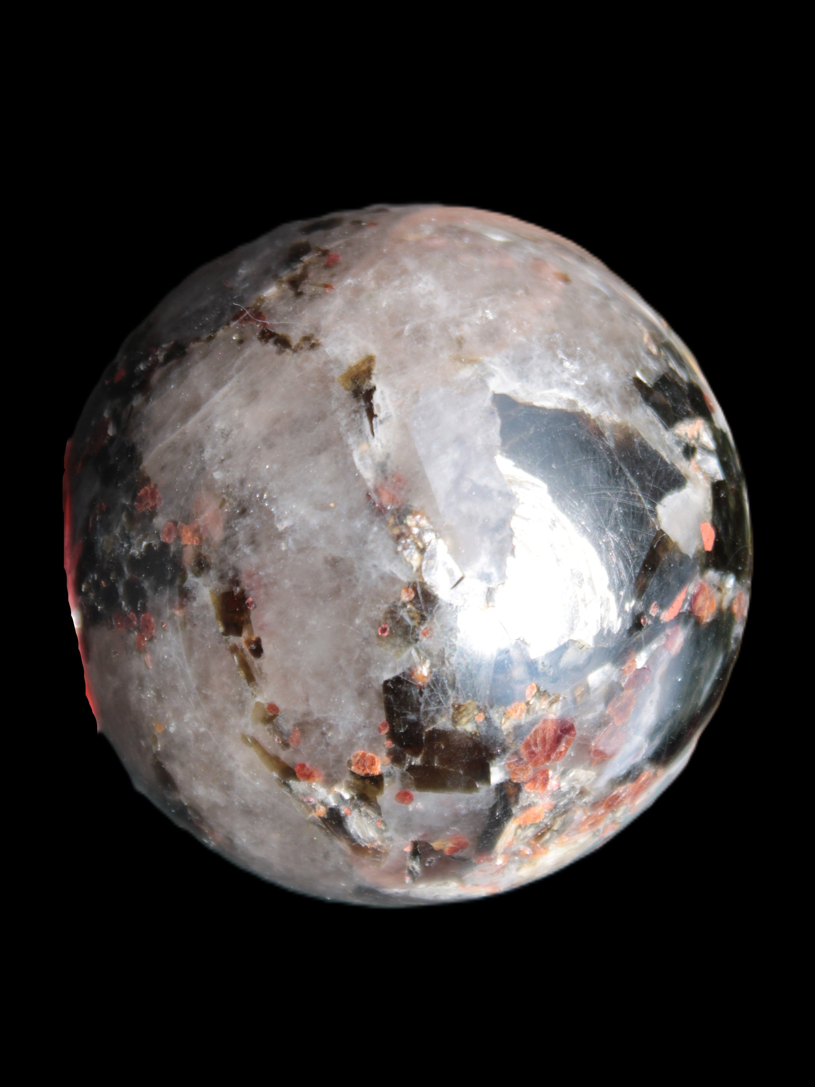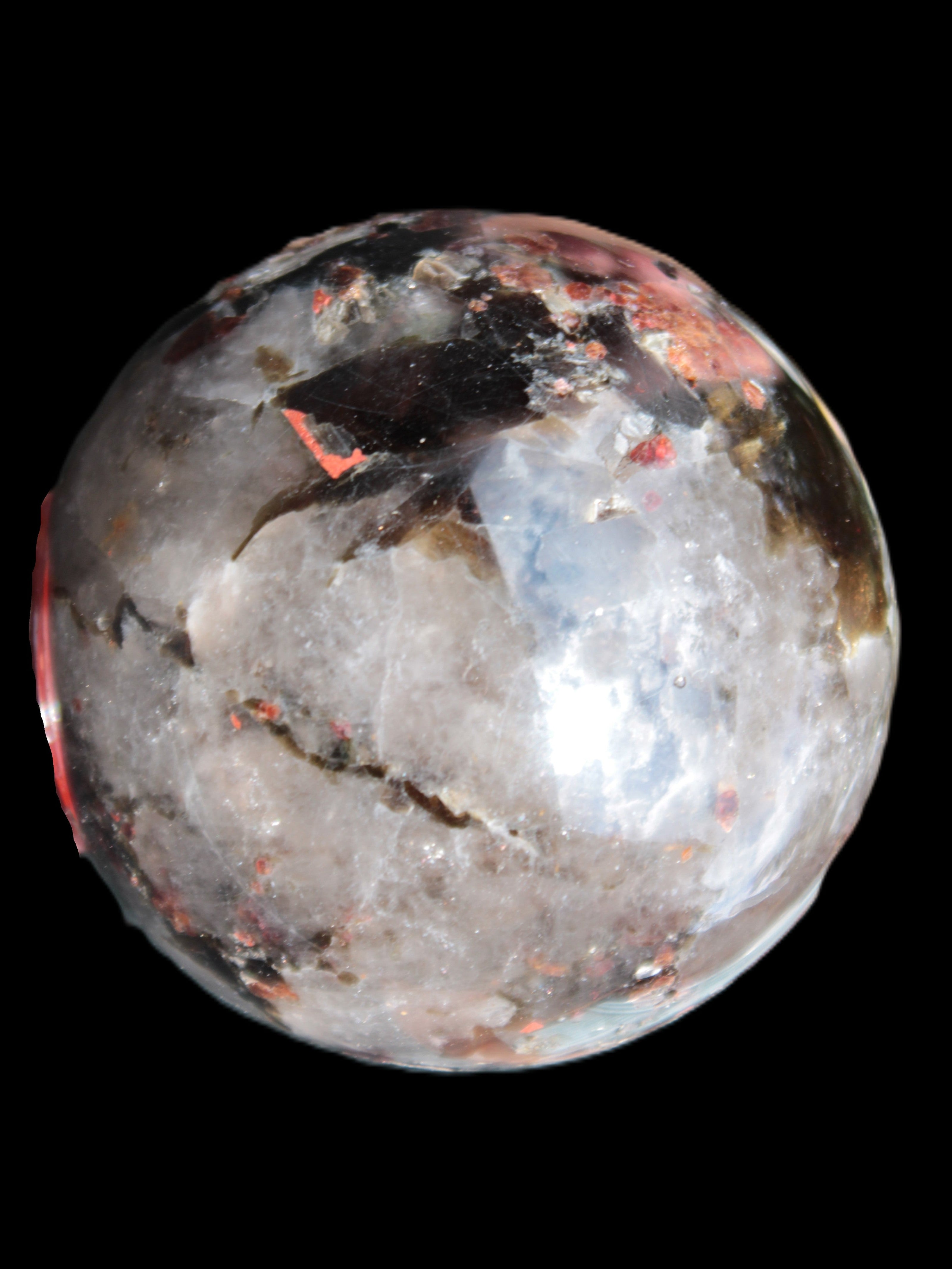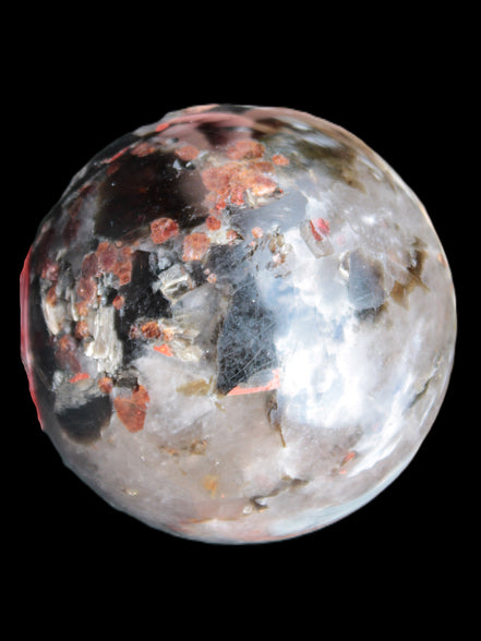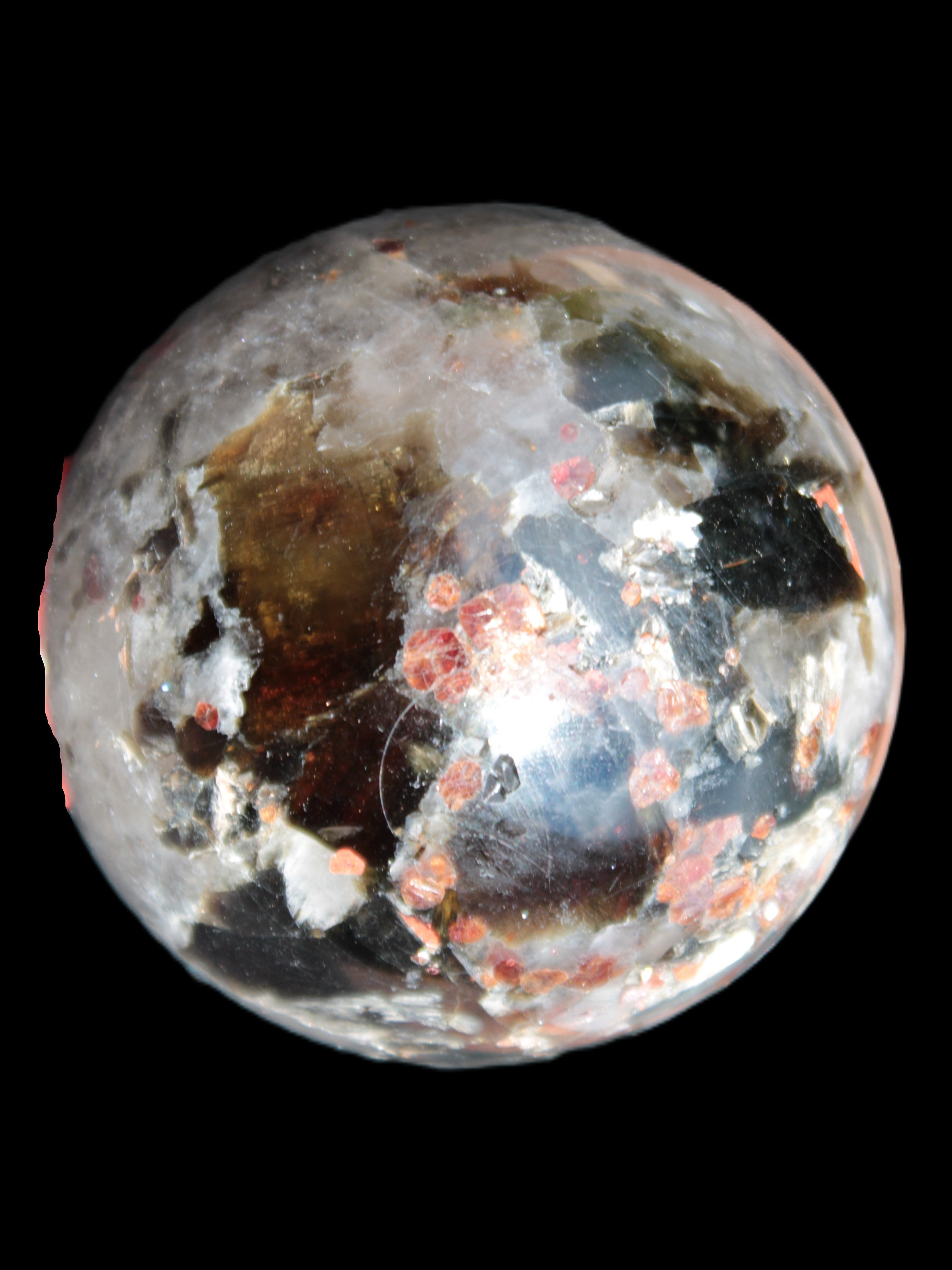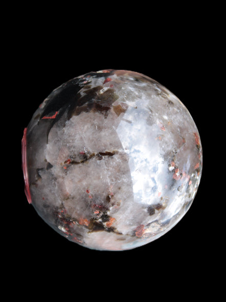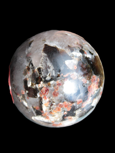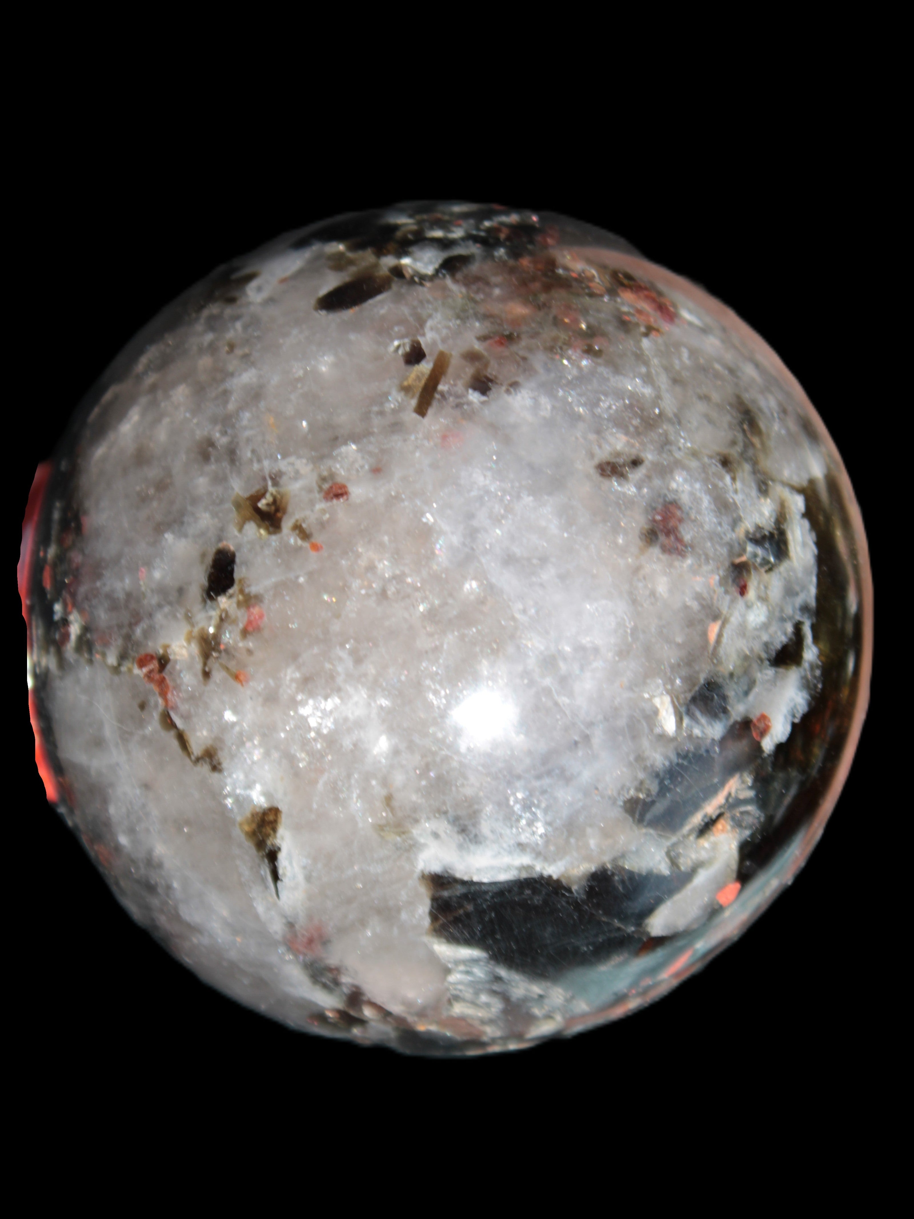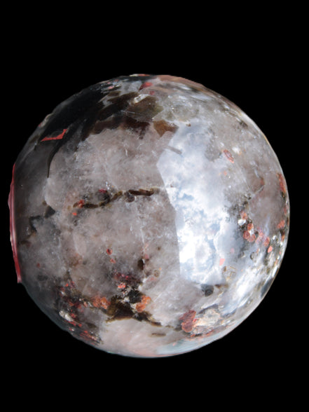 This Smoky Quartz with Garnet sphere 78mm weighs 681g. Smoky Quartz is a centering, grounding and protective crystal. It is an immensely powerful metaphysical stone. Smoky Quartz emits an elevated level of energy. This makes it an excellent crystal for protection from negative energy. Smoky Quartz enhances survival instincts. It assists with prioritising needs and wants.