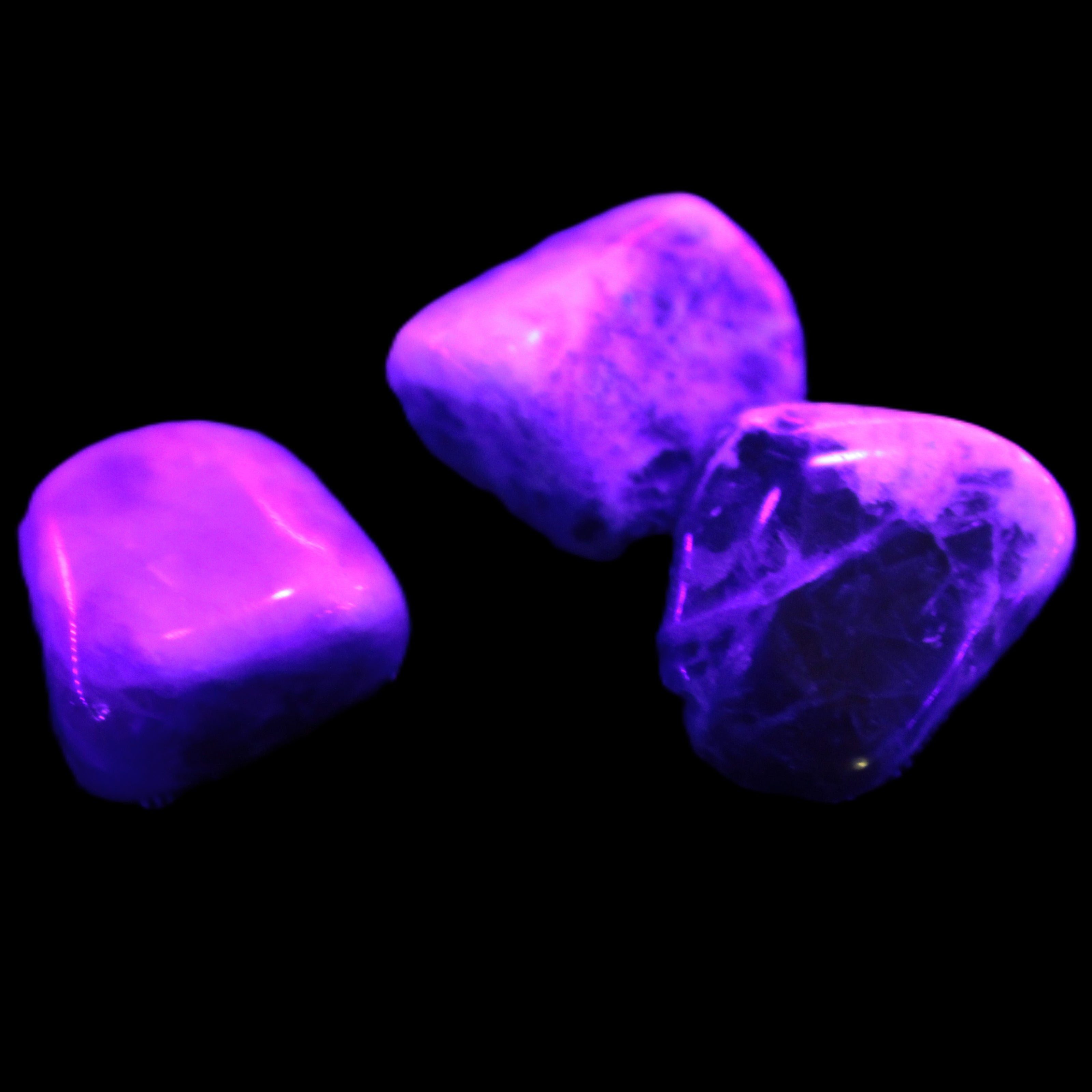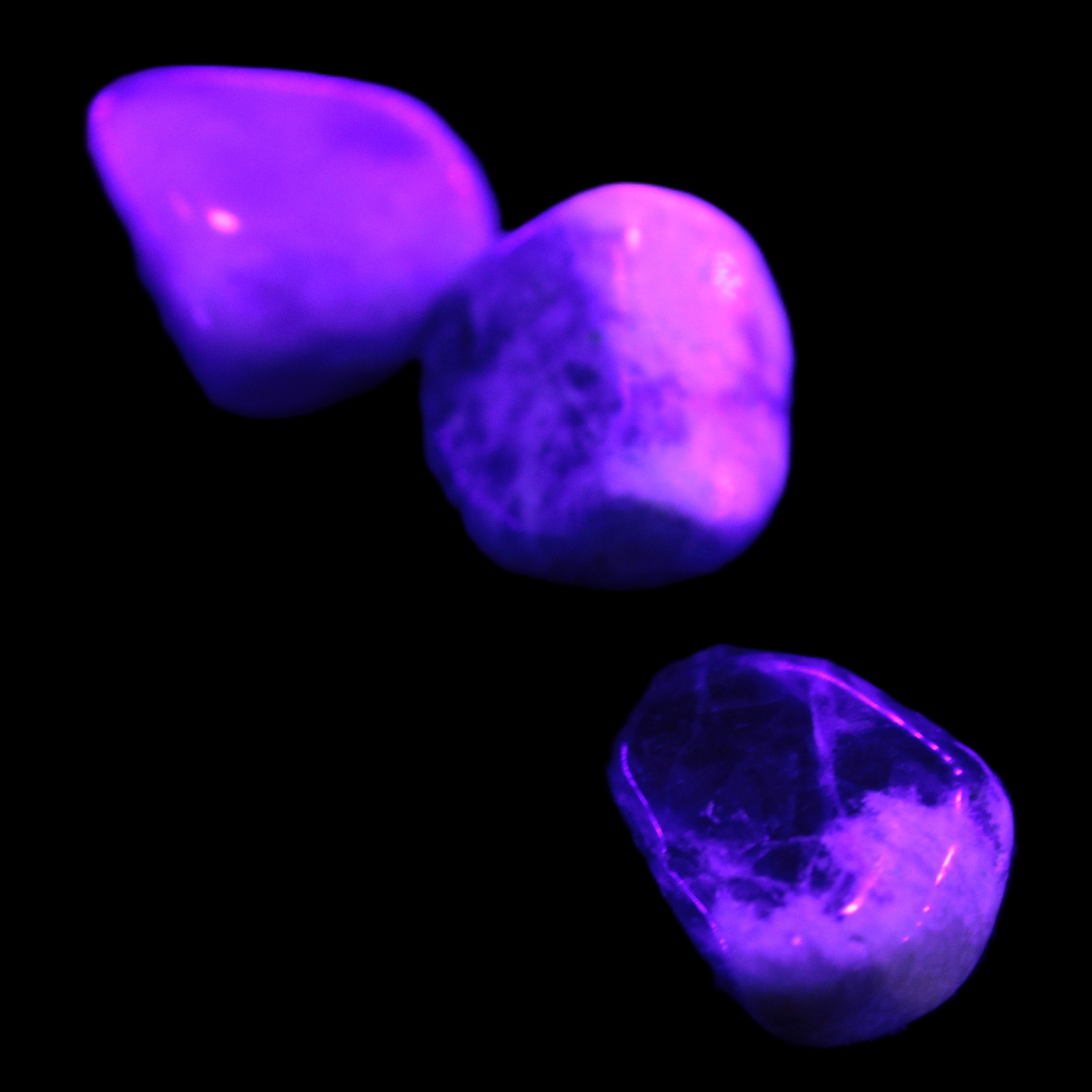 This Sodalite 2/3 small polished stones selection weighs 11-12g. Its name refers to the sodium content in the mineral. Sodalite is found as vein fillings in igneous rocks that formed deep in the Earth’s crust. Sodalite is opaque with a vitreous or greasy lustre. It is UV reactive.