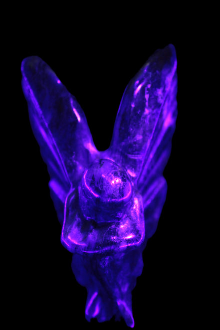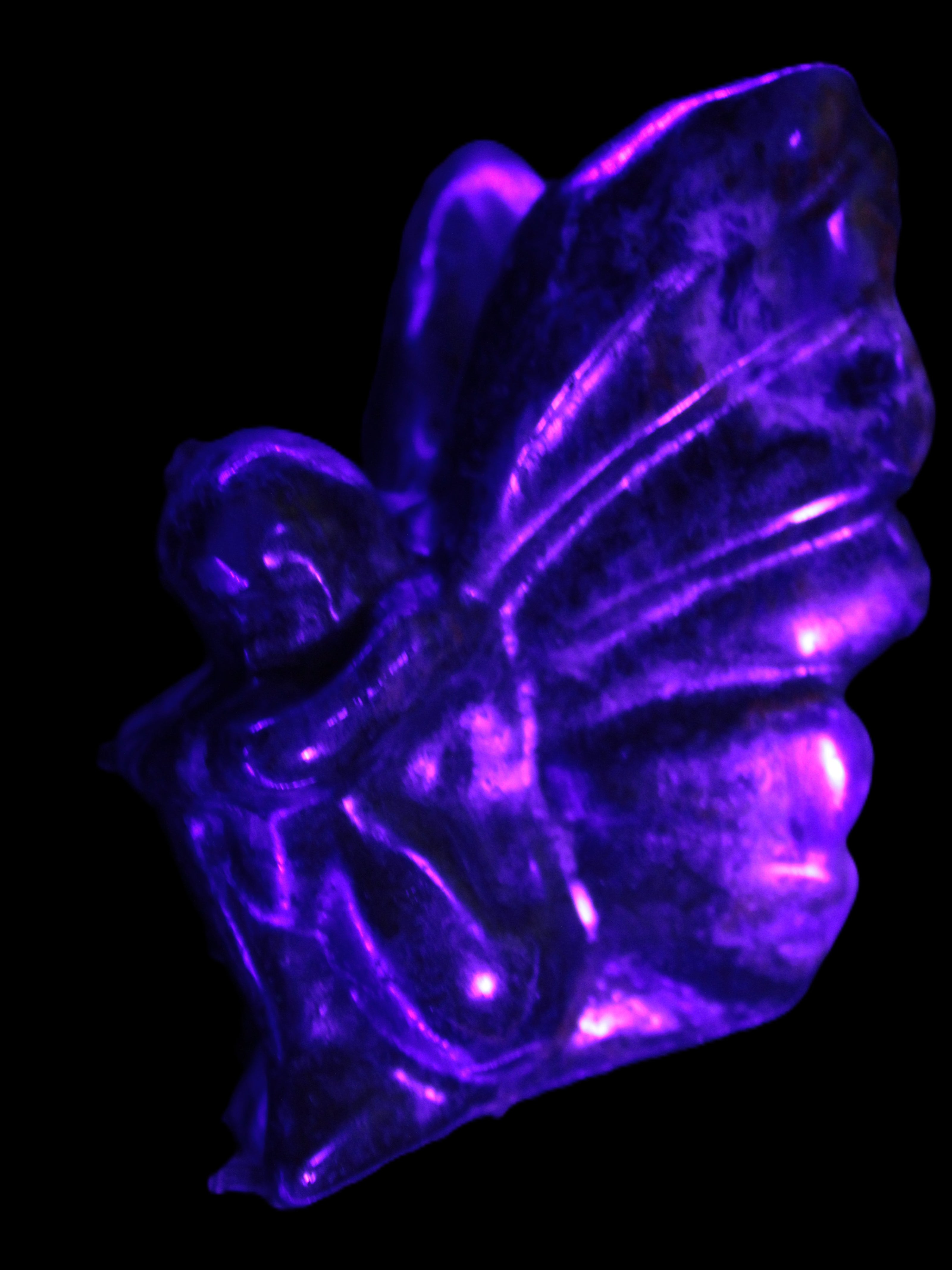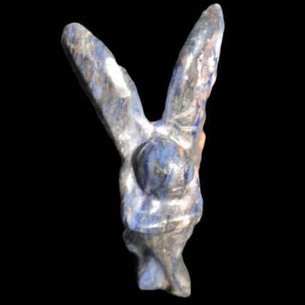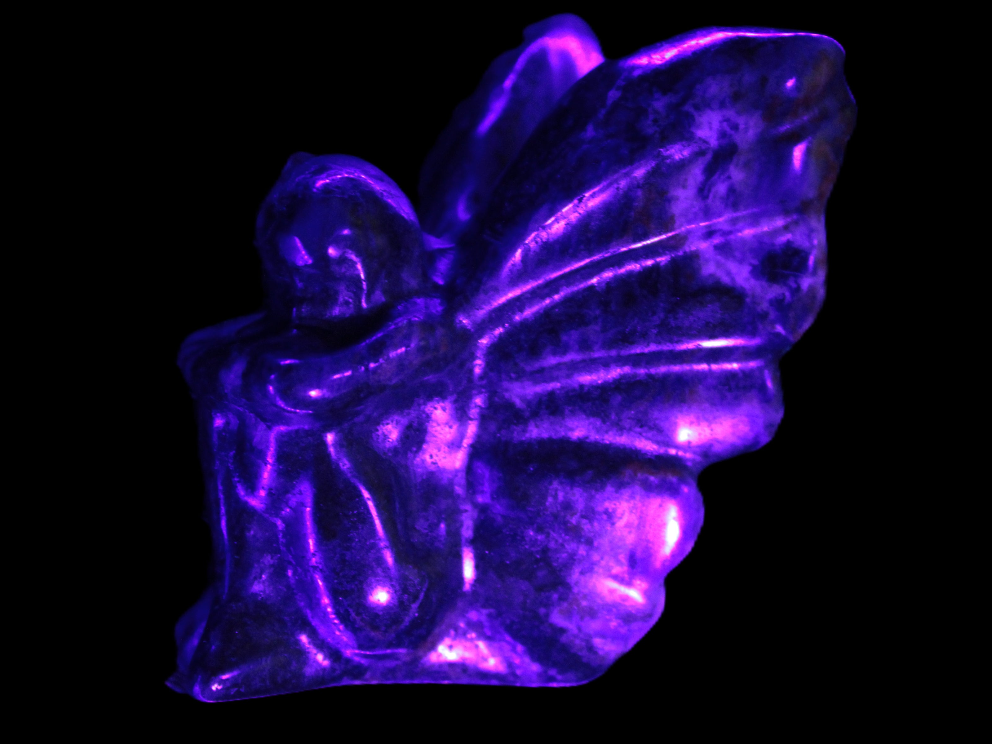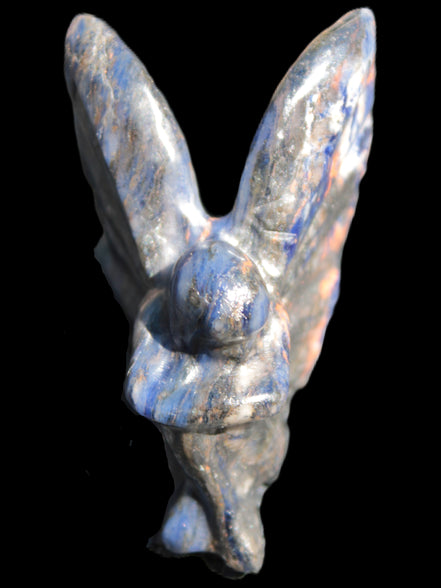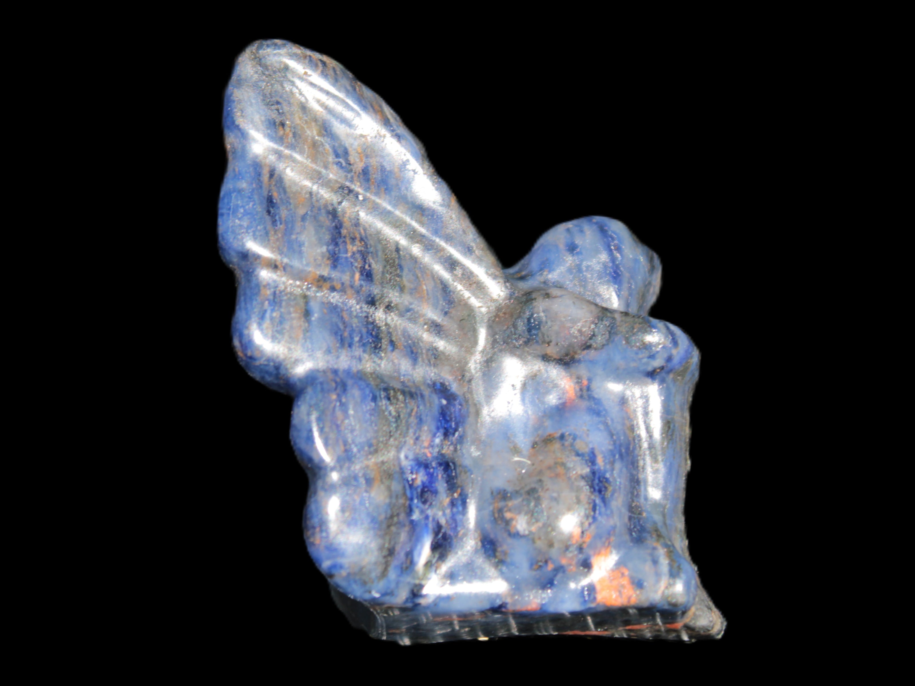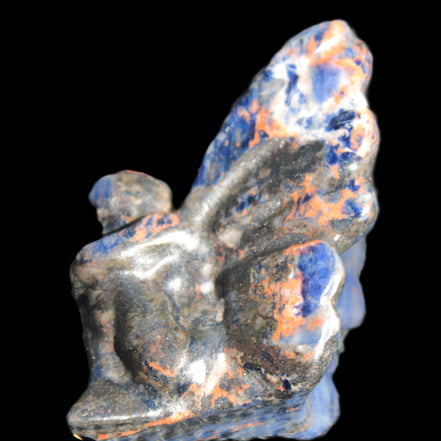This Sodalite hand-carved faerie weighs 99g. Sodalite has a calming energy. Its name refers to the sodium content in the mineral. Sodalite is found as vein fillings in igneous rocks that formed deep in the Earth’s crust. Sodalite is opaque with a vitreous or greasy lustre. Sodalite is a stone of insight and mental enhancement, stimulating thought and communication. It is a stone of truth, bringing this to all communications. Sodalite is UV reactive