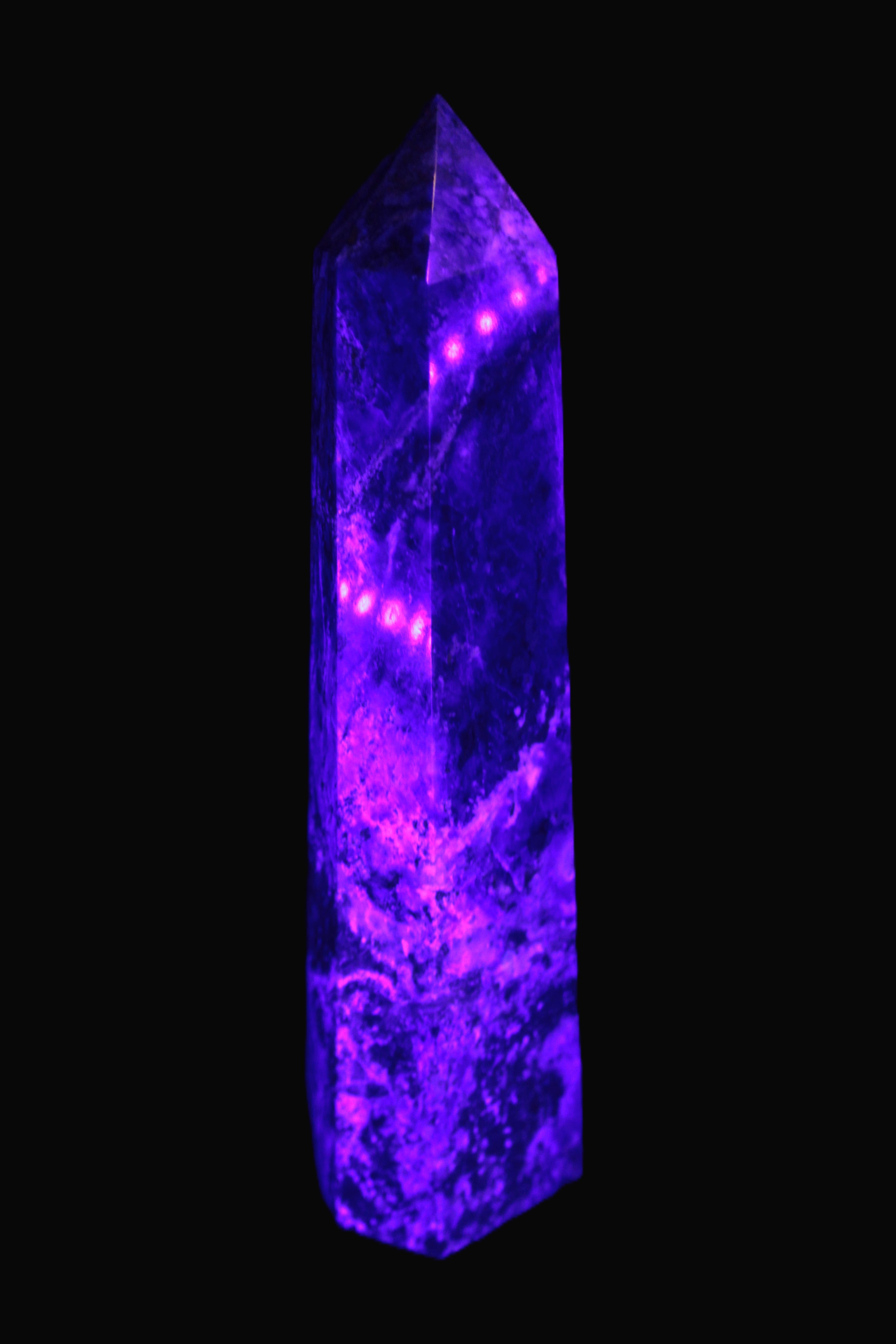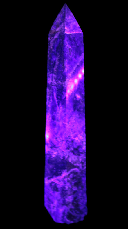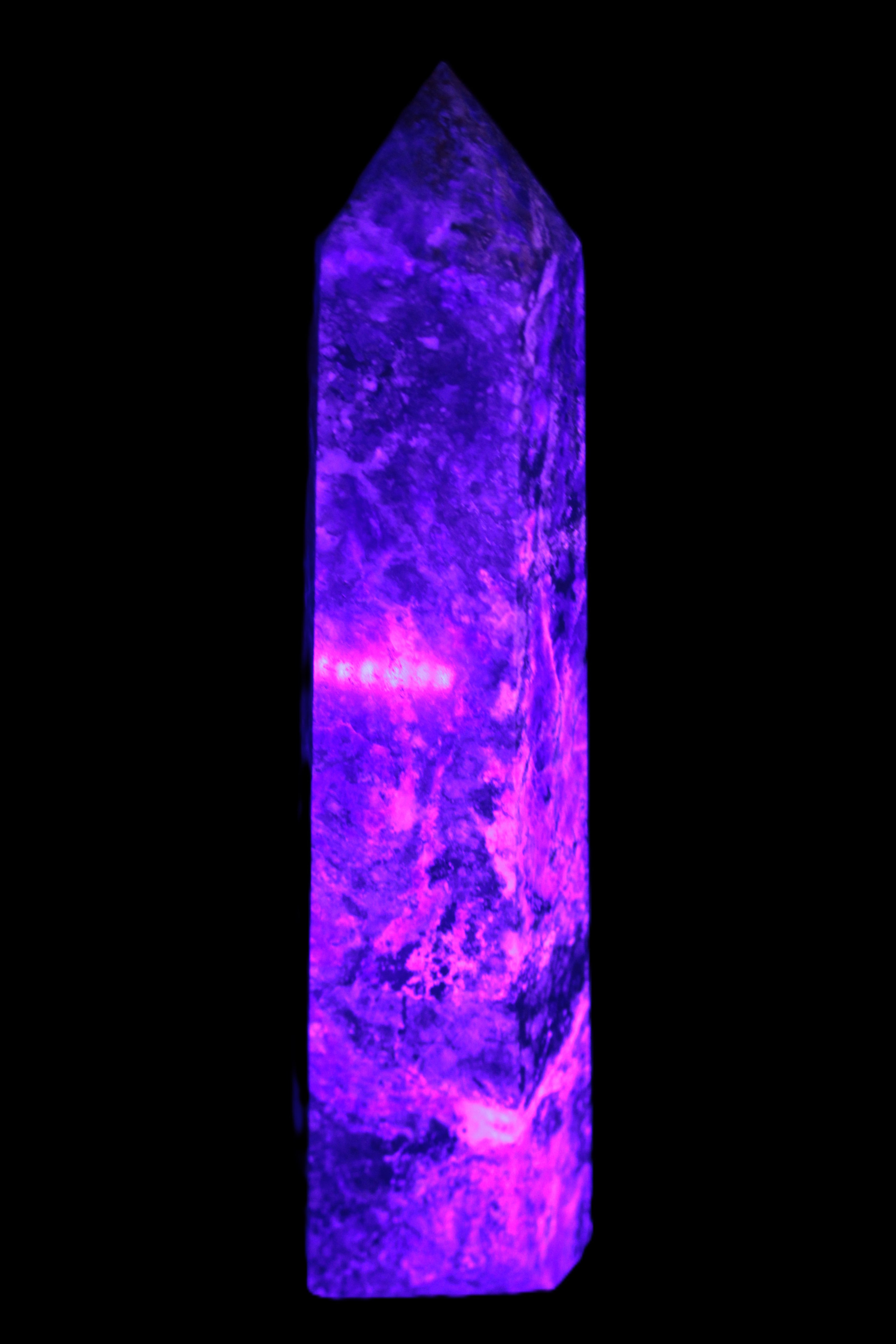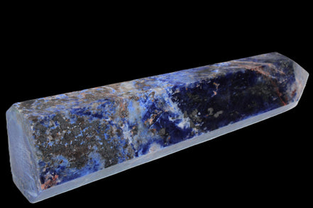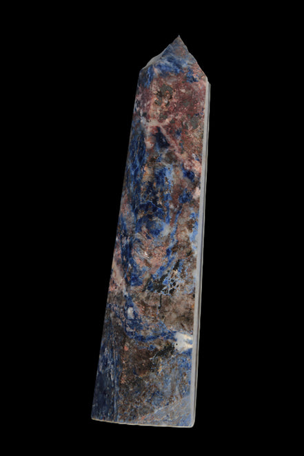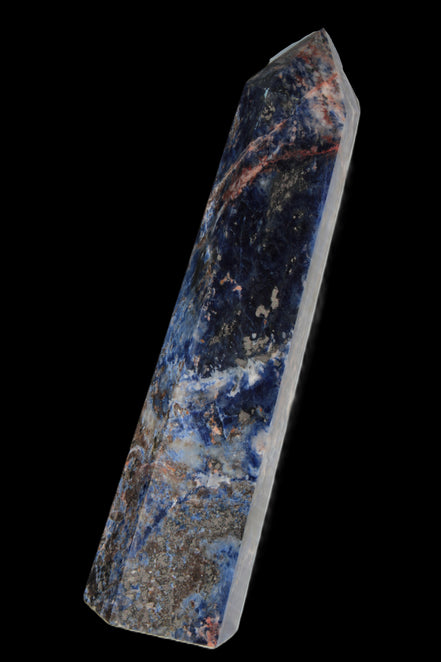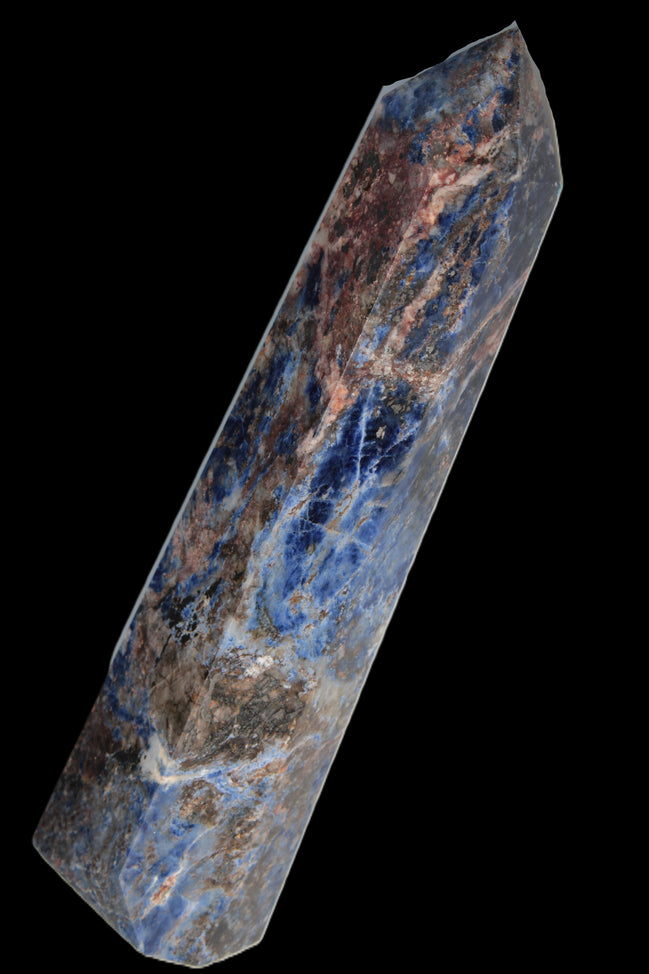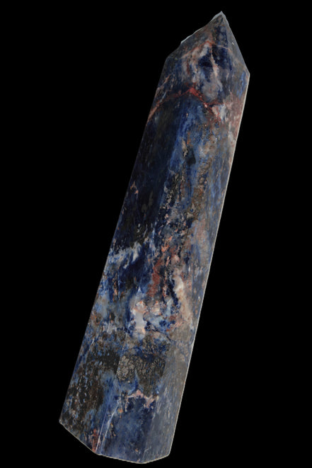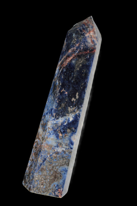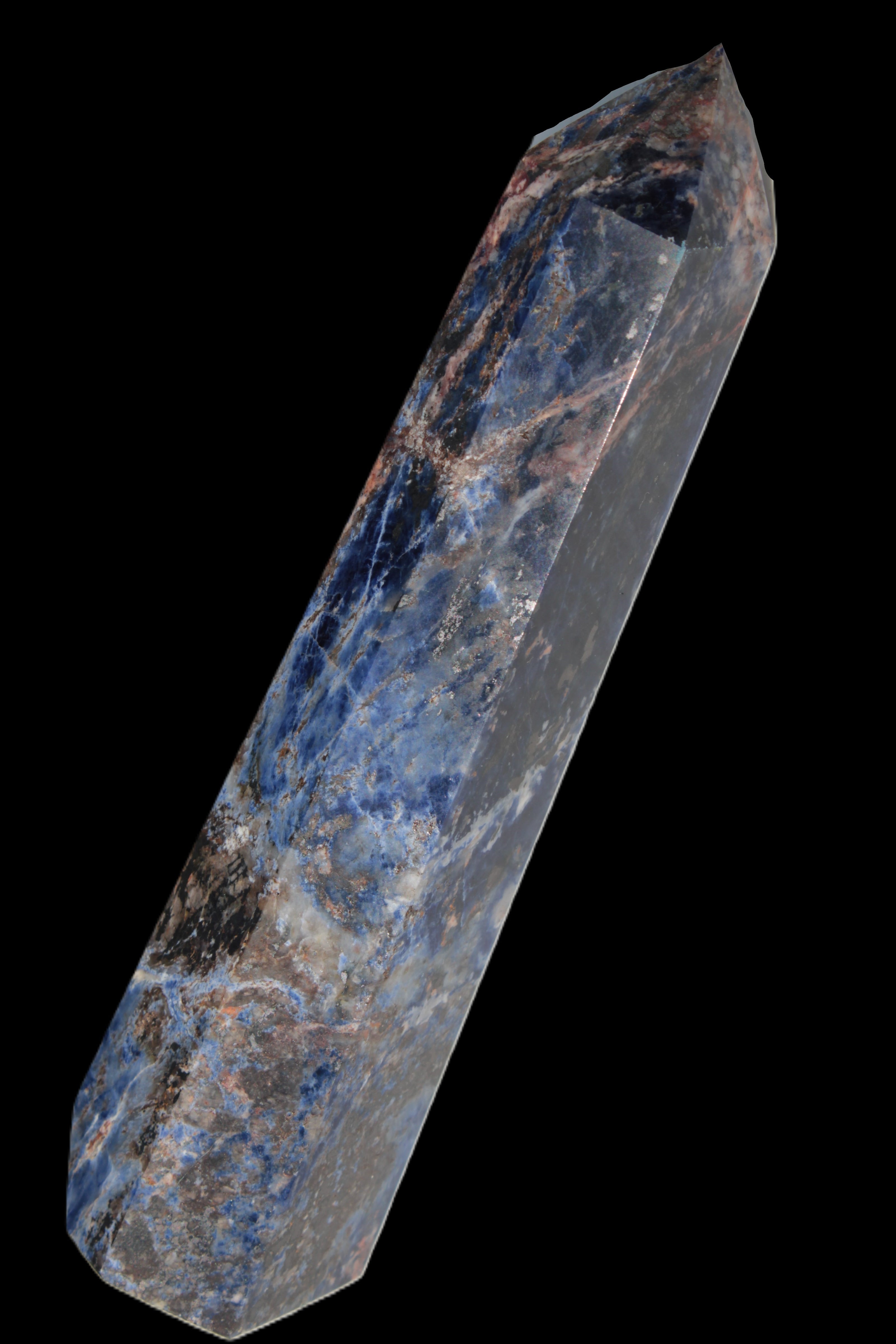 This item is a Sodalite obelisk that weighs 723g. Sodalite has a calming energy. Its name refers to the sodium content in the mineral. Sodalite is found as vein fillings in igneous rocks that formed deep in the Earth’s crust. Sodalite is opaque with a vitreous or greasy lustre. It is UV reactive. The best blue shades of Sodalite are found in deposits alongside white Calcite. Sodalite is a stone of insight and mental enhancement, stimulating thought and communication. It is a stone of truth, bringing this to all communications.