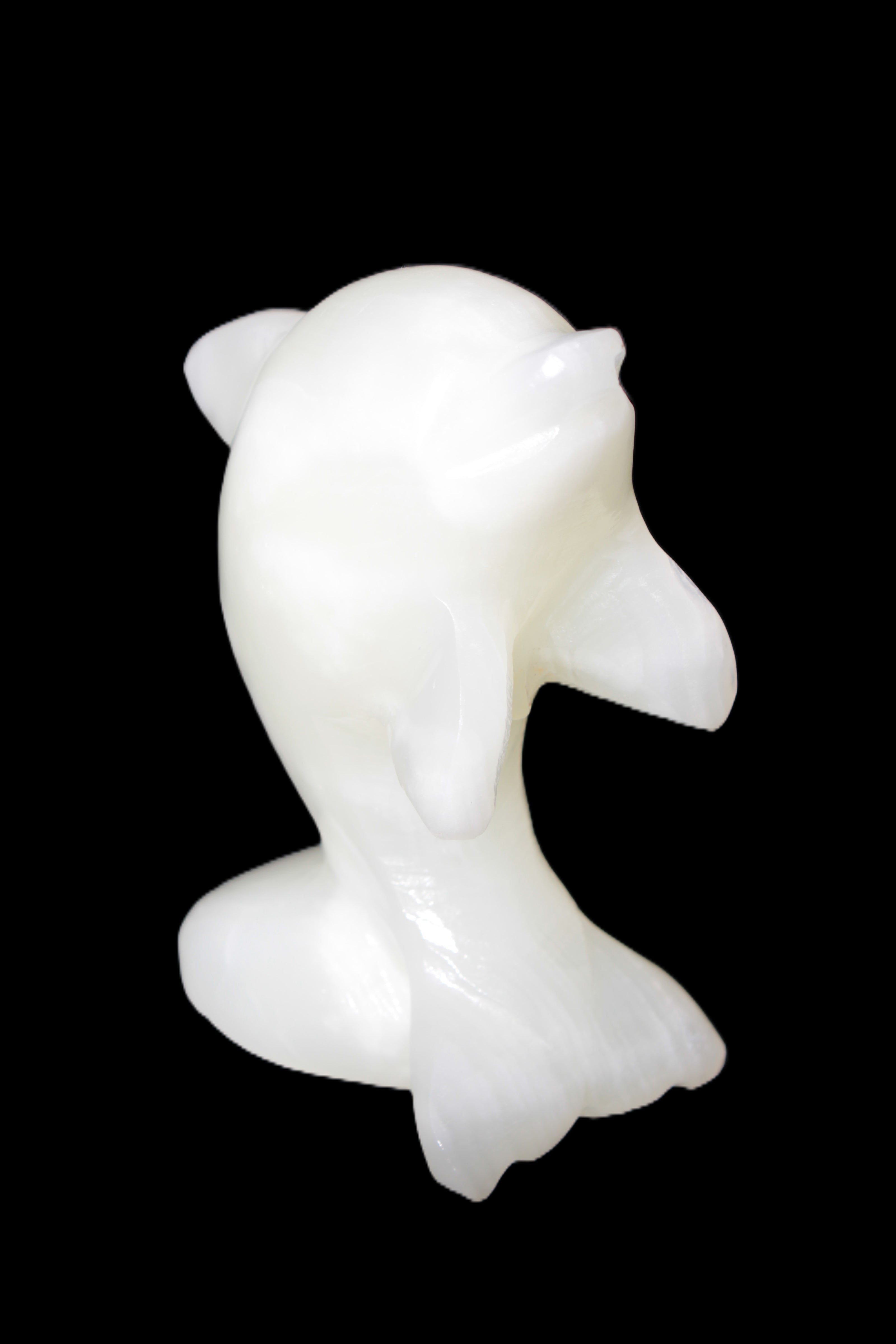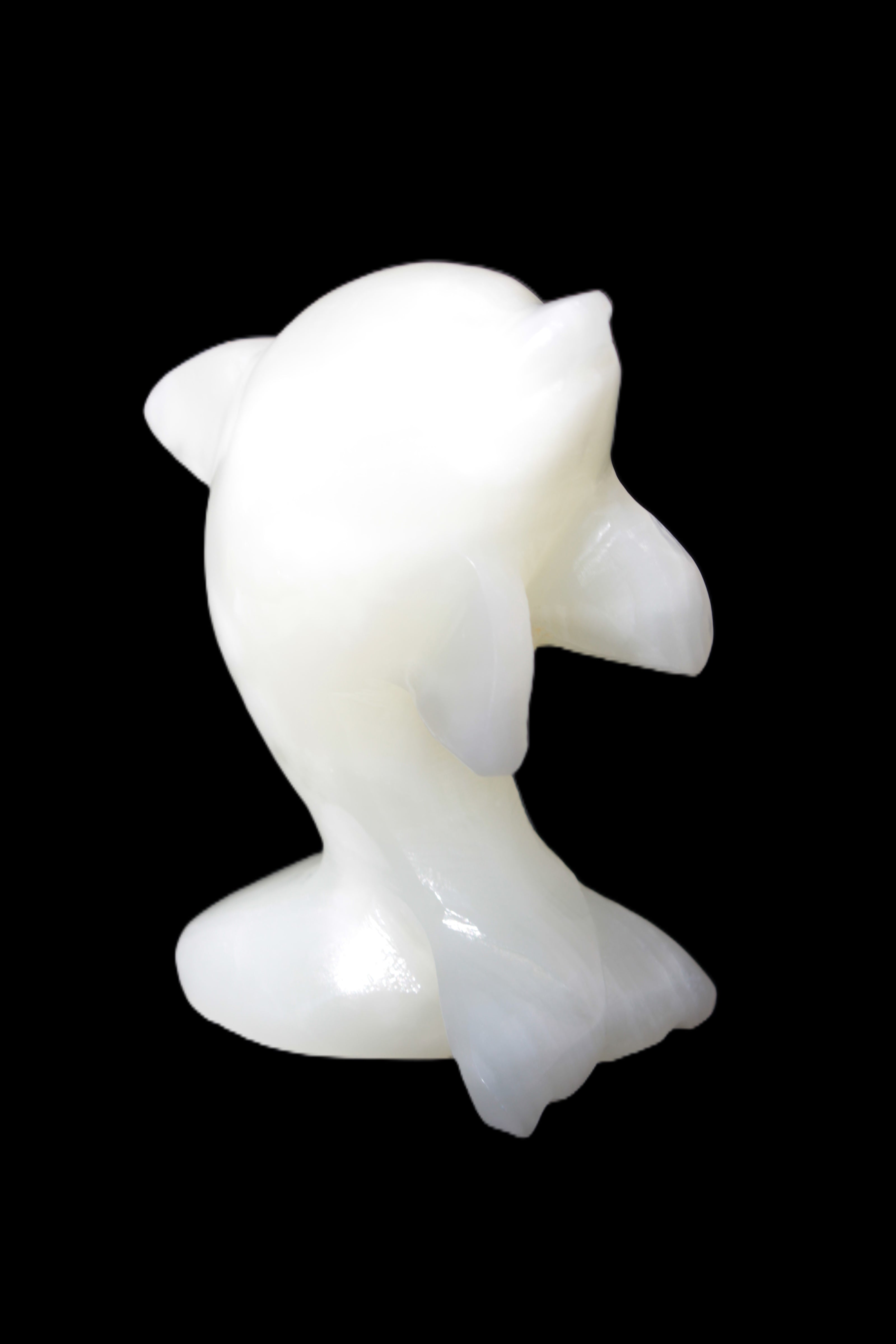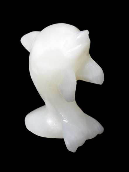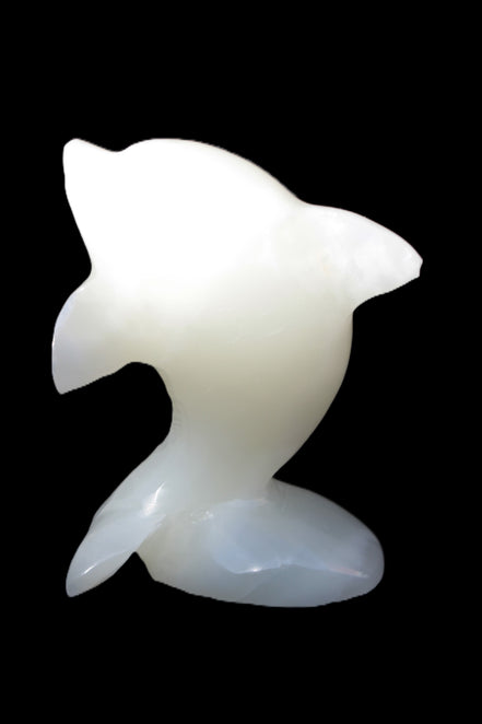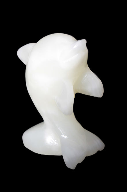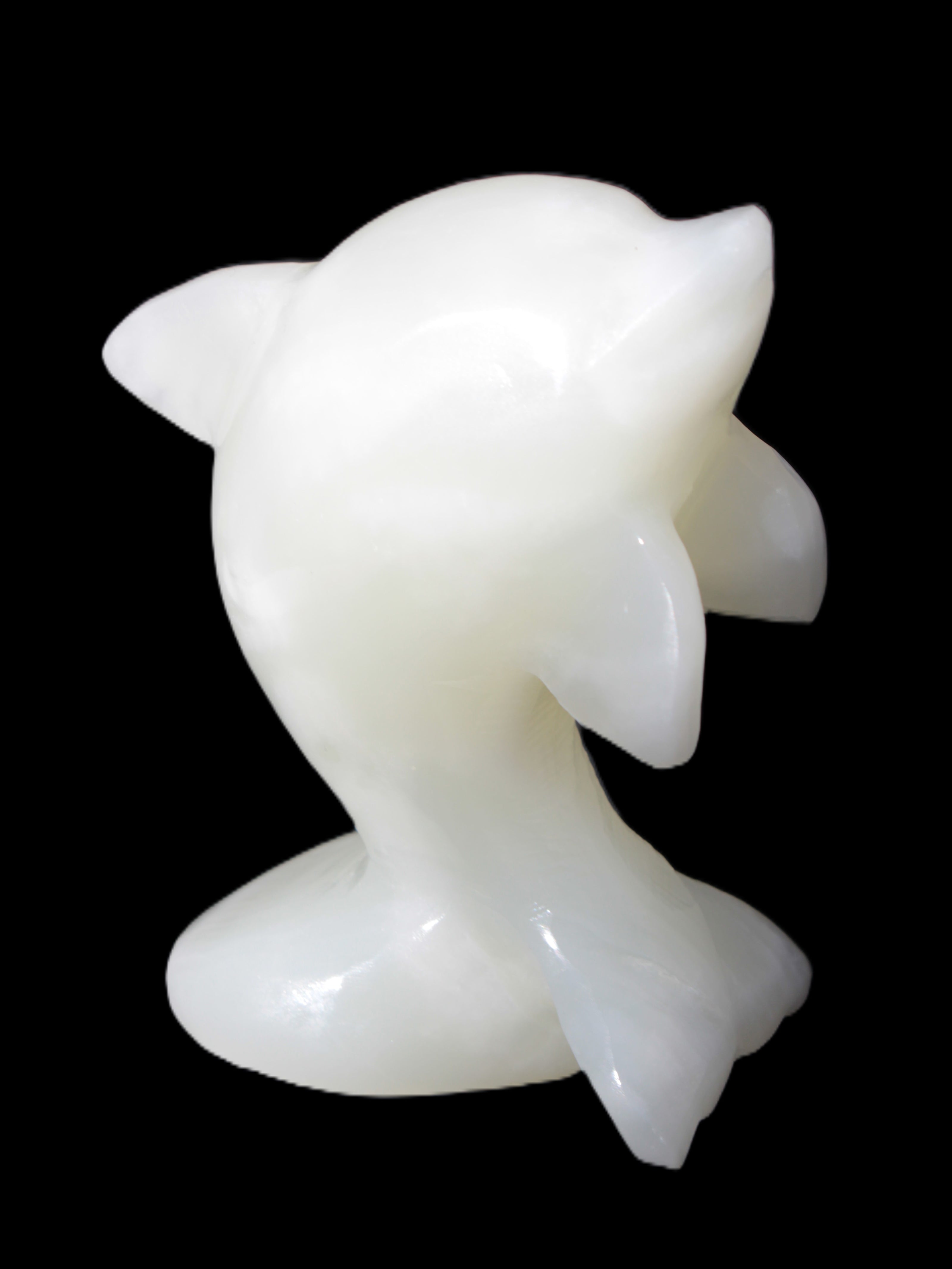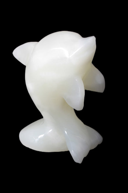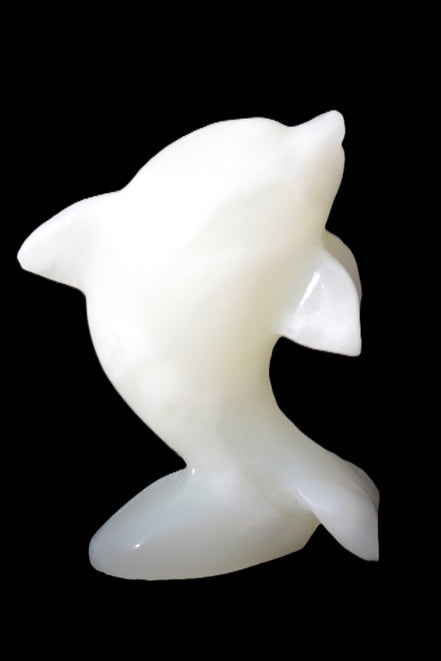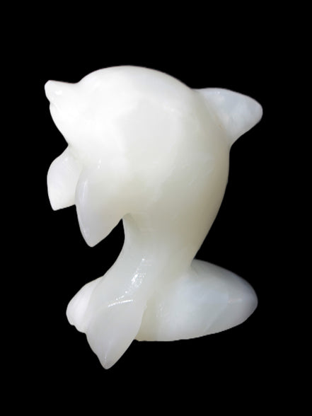 This graceful leaping dolphin was created by Lawrence Handicrafts exclusively for Rocks and Things. It has been carefully shaped out of the translucent Afghan Jade found in Pakistan.  Afghan Jade is a form of Serpentine (Bowenite) named after the neighbouring country where it is also found. It is translucent to opaque, varying in colour from white, light to dark green and can also occur with yellow, black or pink. Serpentine is the name given to a group of magnesium-based asbestos and silicate minerals found in the larger Serpentinite family of minerals. It is formed through plate tectonics and is found on every continent. This stone is all about Kundalini awakening. Serpentine means ‘stone snake’. Serpentine provides powerful healing energy and is linked to our Kundalini energy. When dormant, Kundalini energy lies coiled at the base of the spine. Its release is transformative.