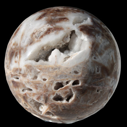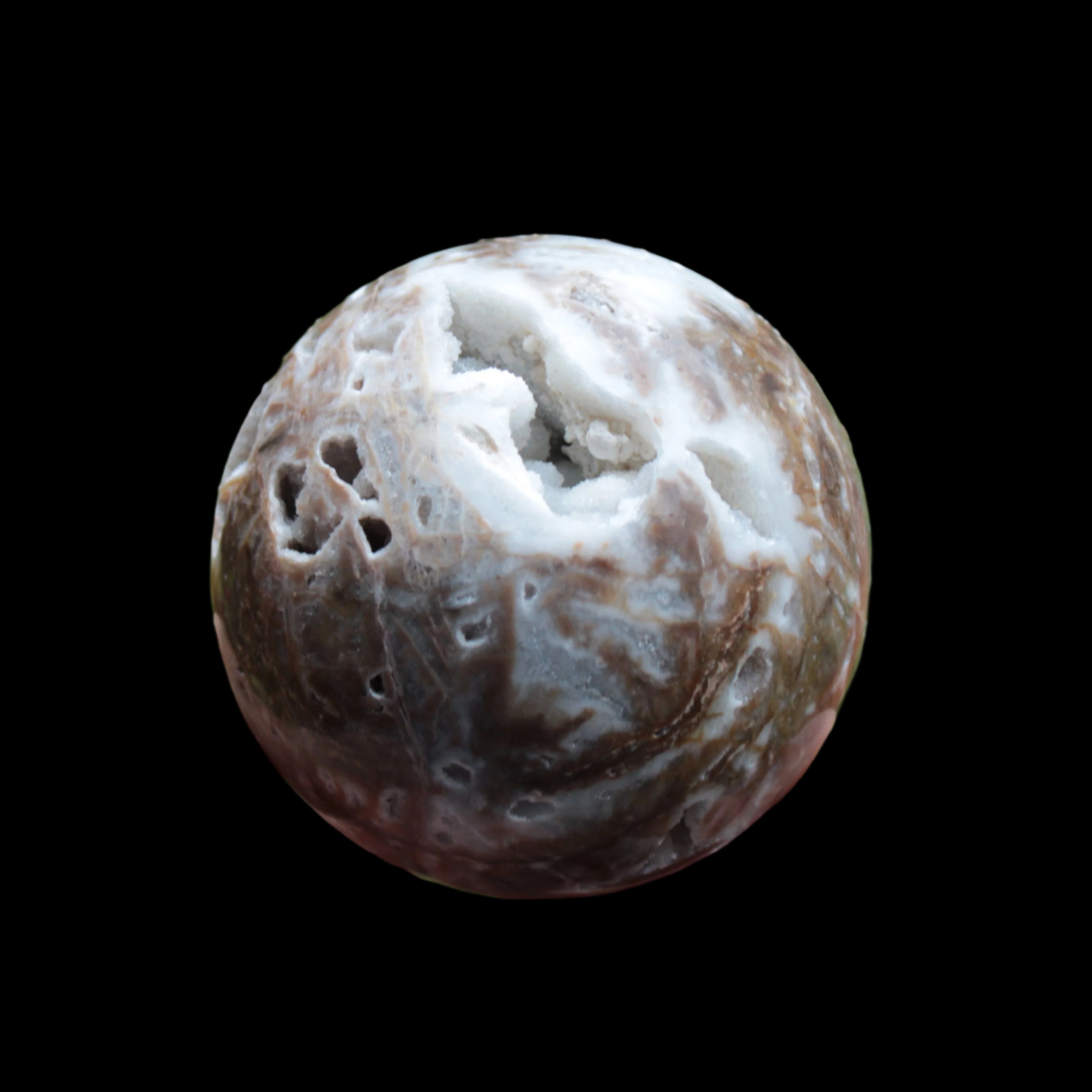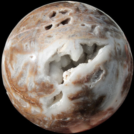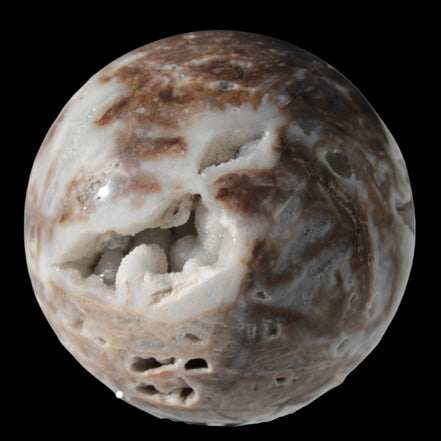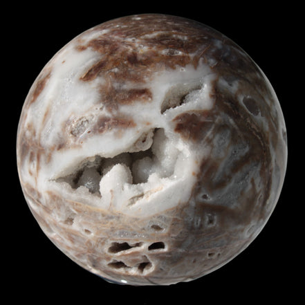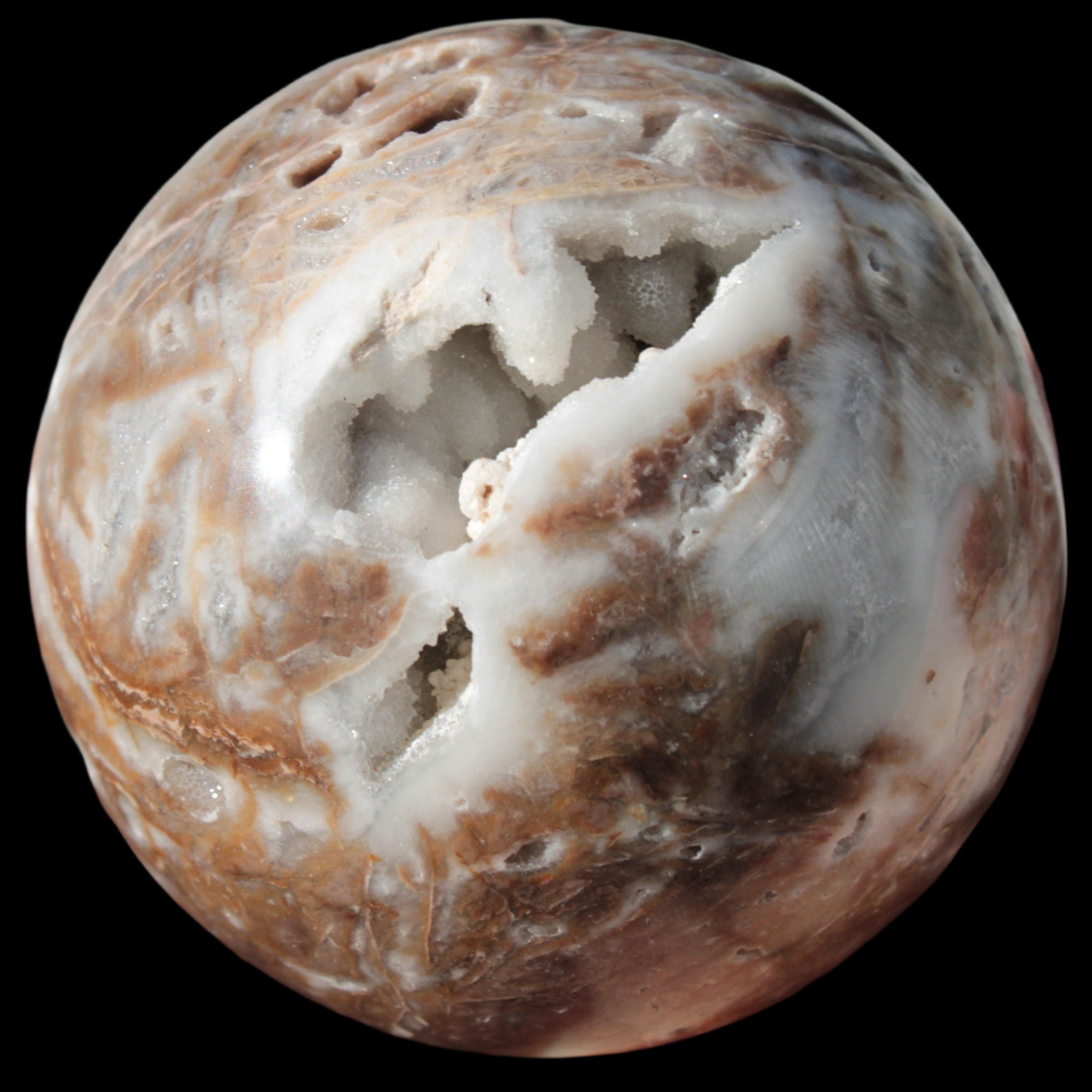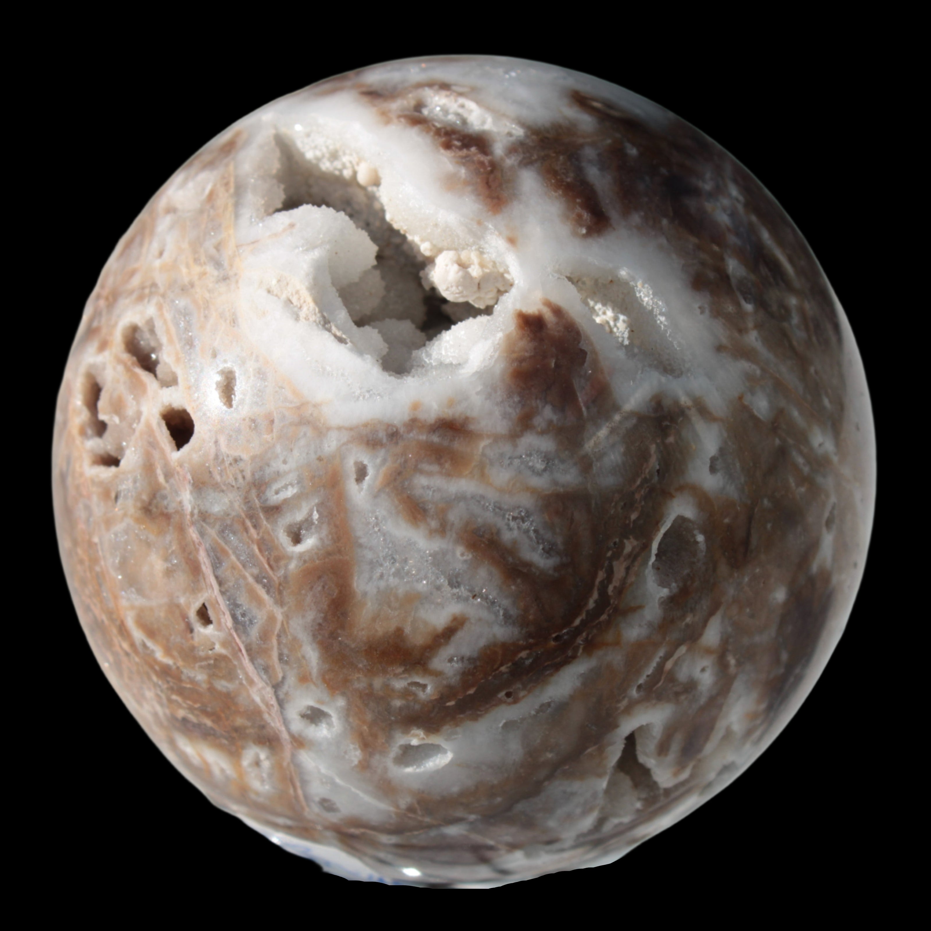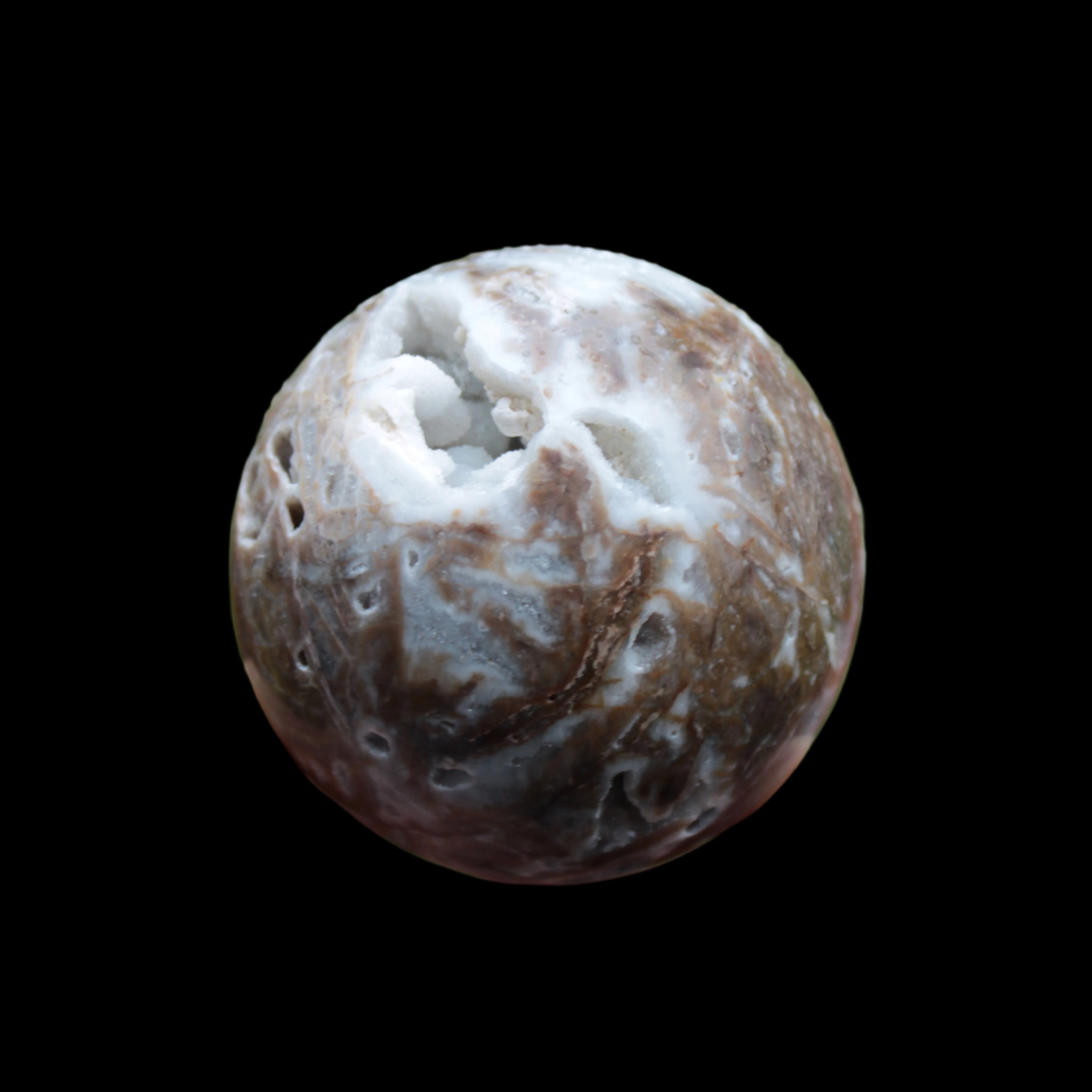 This Sphalerite drusy geode crystal sphere weighs 392g. Sphalerite is a zinc sulphide mineral that commonly forms with other minerals including Calcite, Dolomite, Fluorite, Galena Pyrite and Quartz. It has a range of crystal forms including botryoidal, cubic, tetrahedral and dodecahedral. It is found all over the world and is the most common ore for the extraction of Zinc.