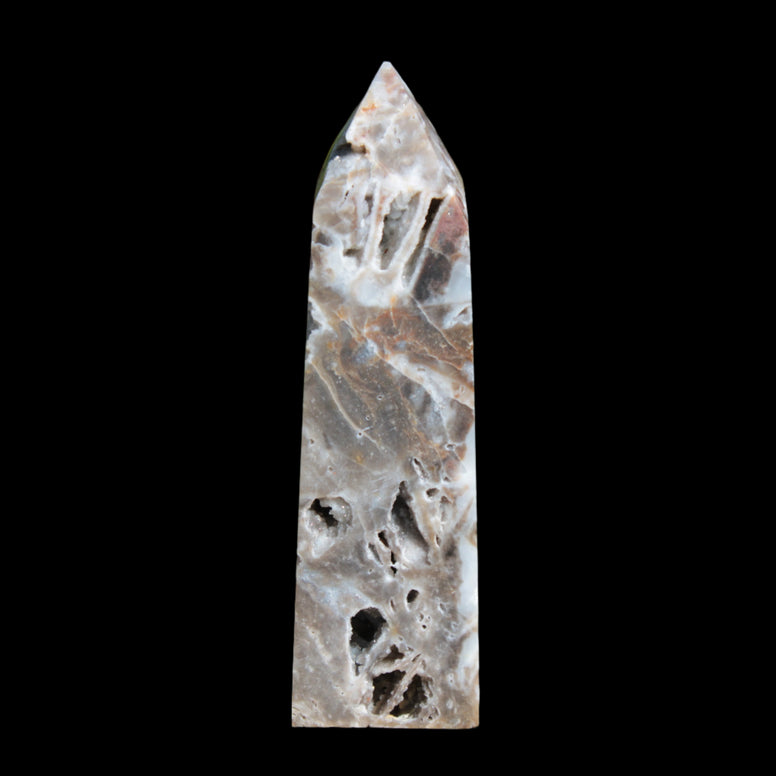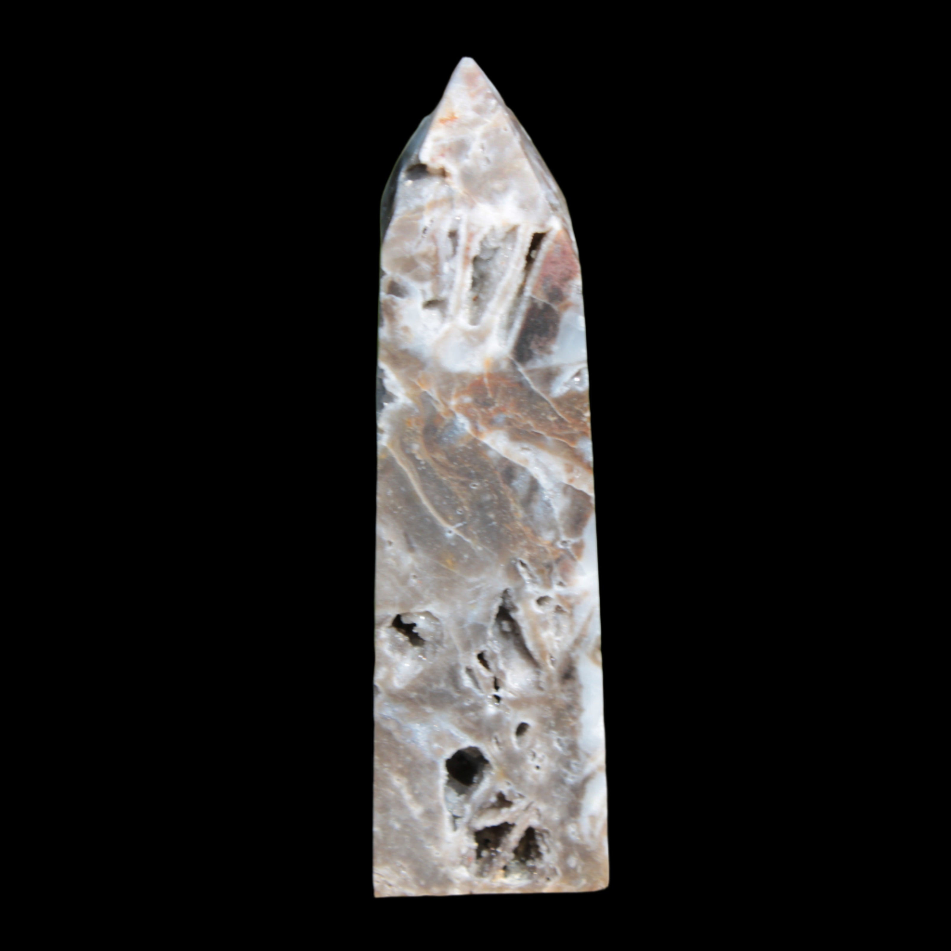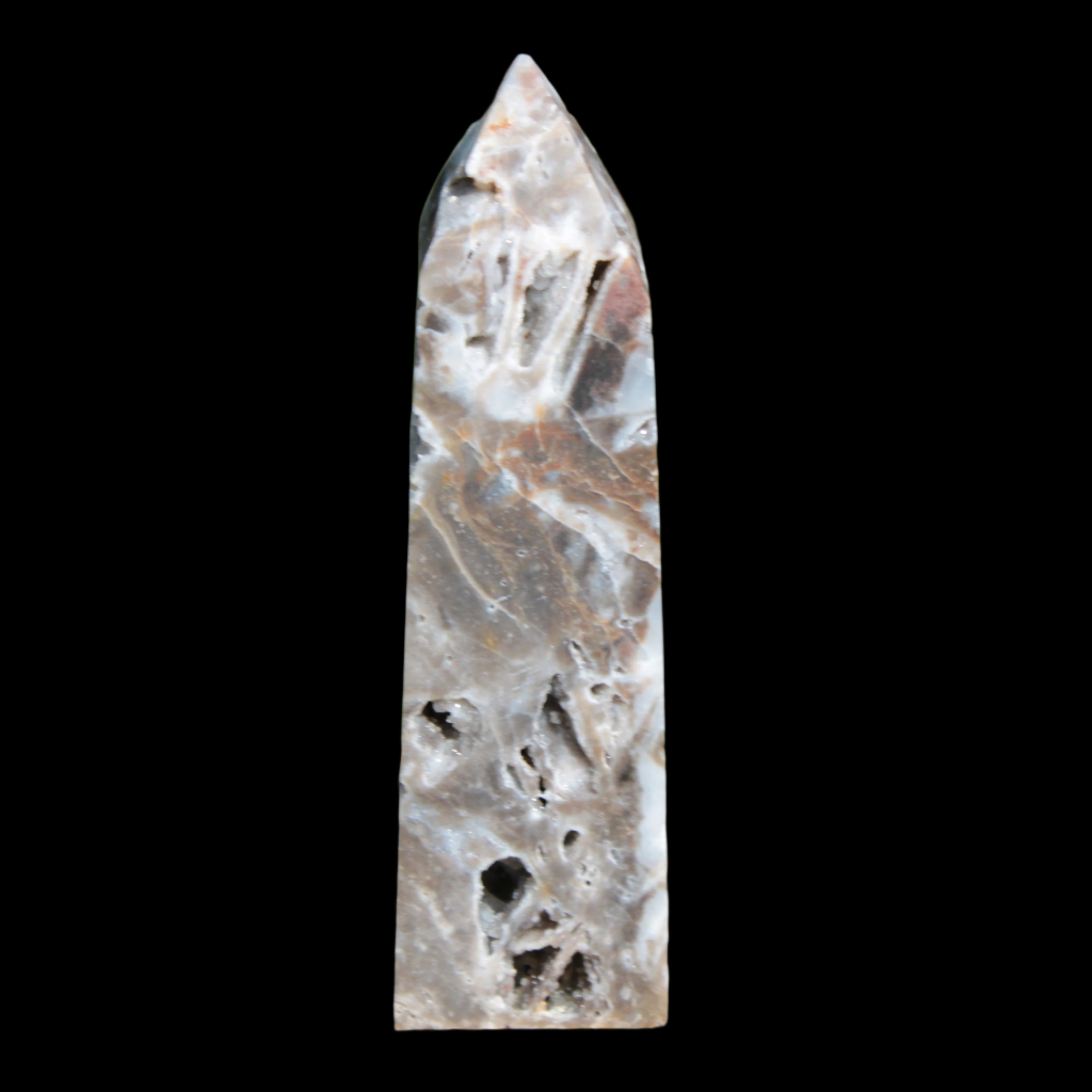 This Sphalerite geode obelisk weighs 92mm 105g. Sphalerite is a zinc sulphide mineral that commonly forms with other minerals including Calcite, Dolomite, Fluorite, Galena Pyrite and Quartz. It has a range of crystal forms including botryoidal, cubic, tetrahedral and dodecahedral. It is found all over the world and is the most common ore for the extraction of Zinc.