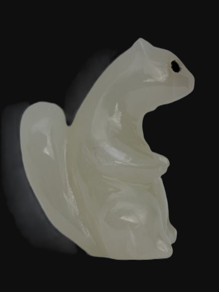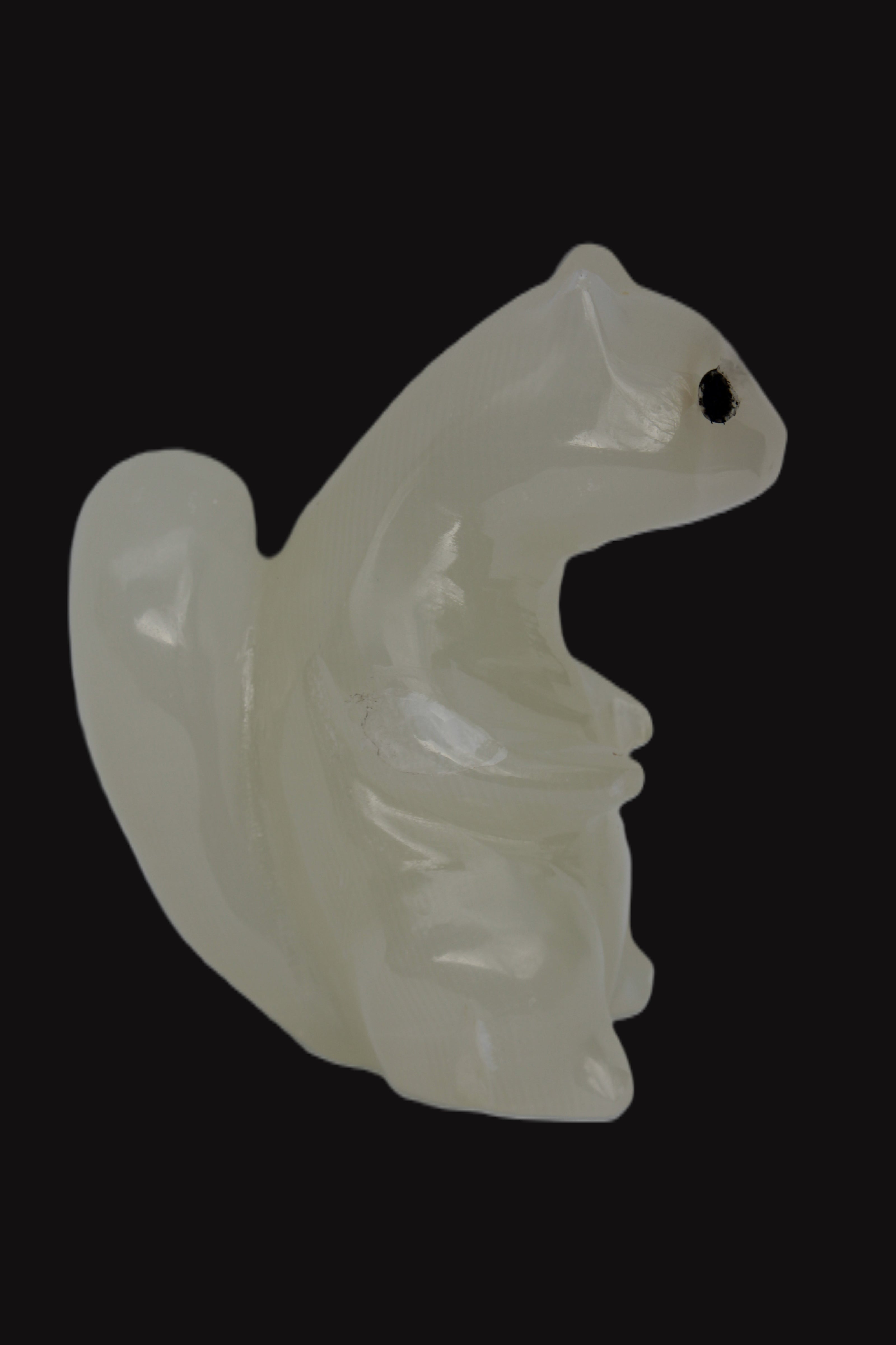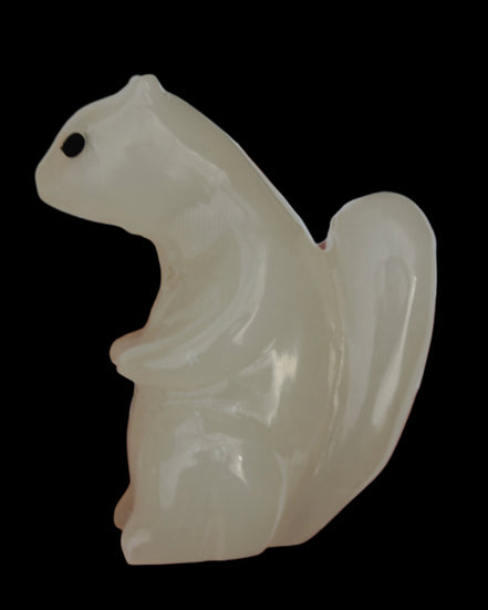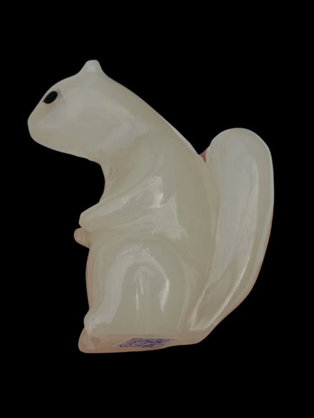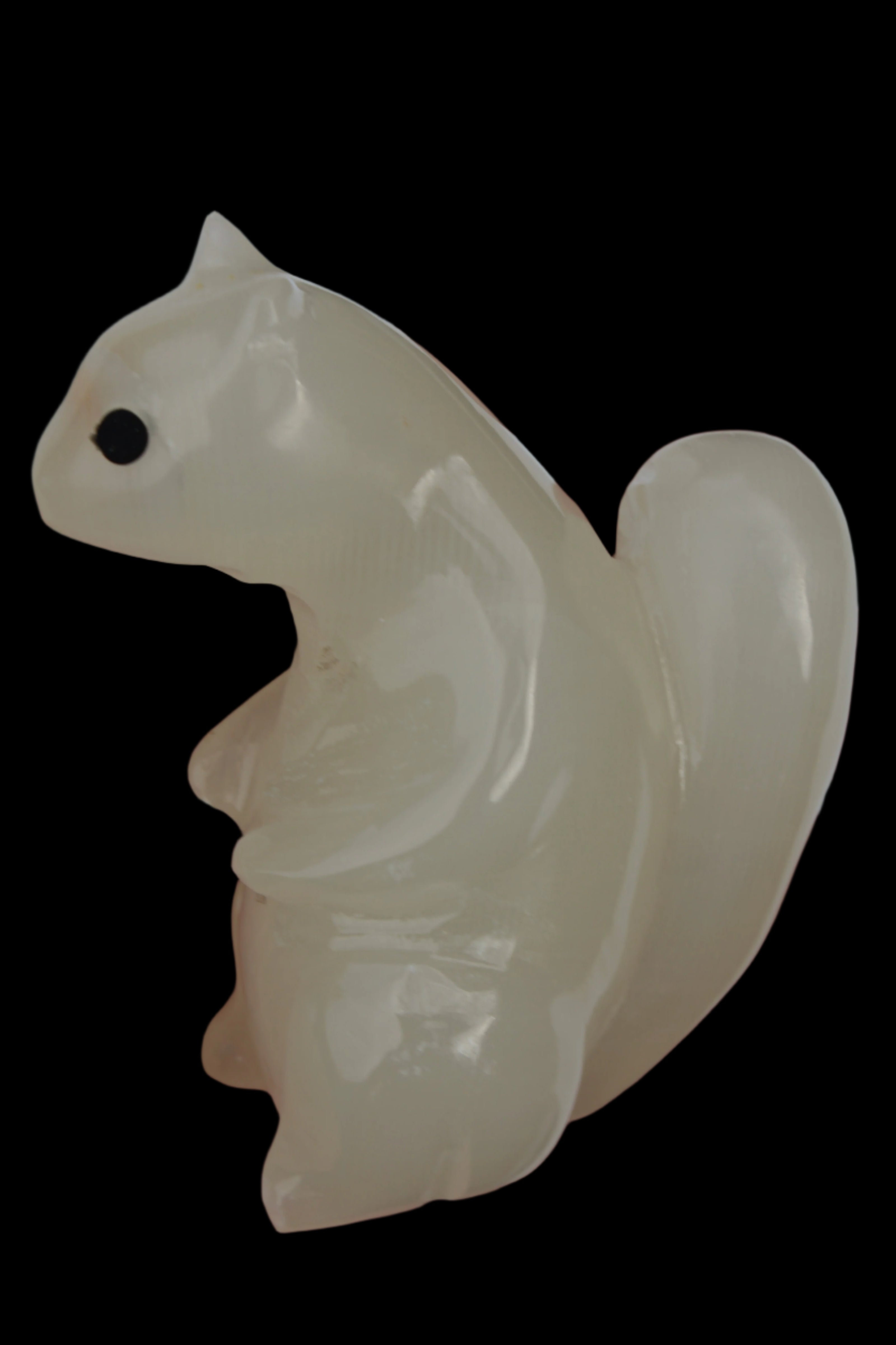 This Squirrel hand carved in Calcite weighs 352.7g.  This stylised figure was hand carved by Lawrence Riaz from Calcite found locally in Pakistan.