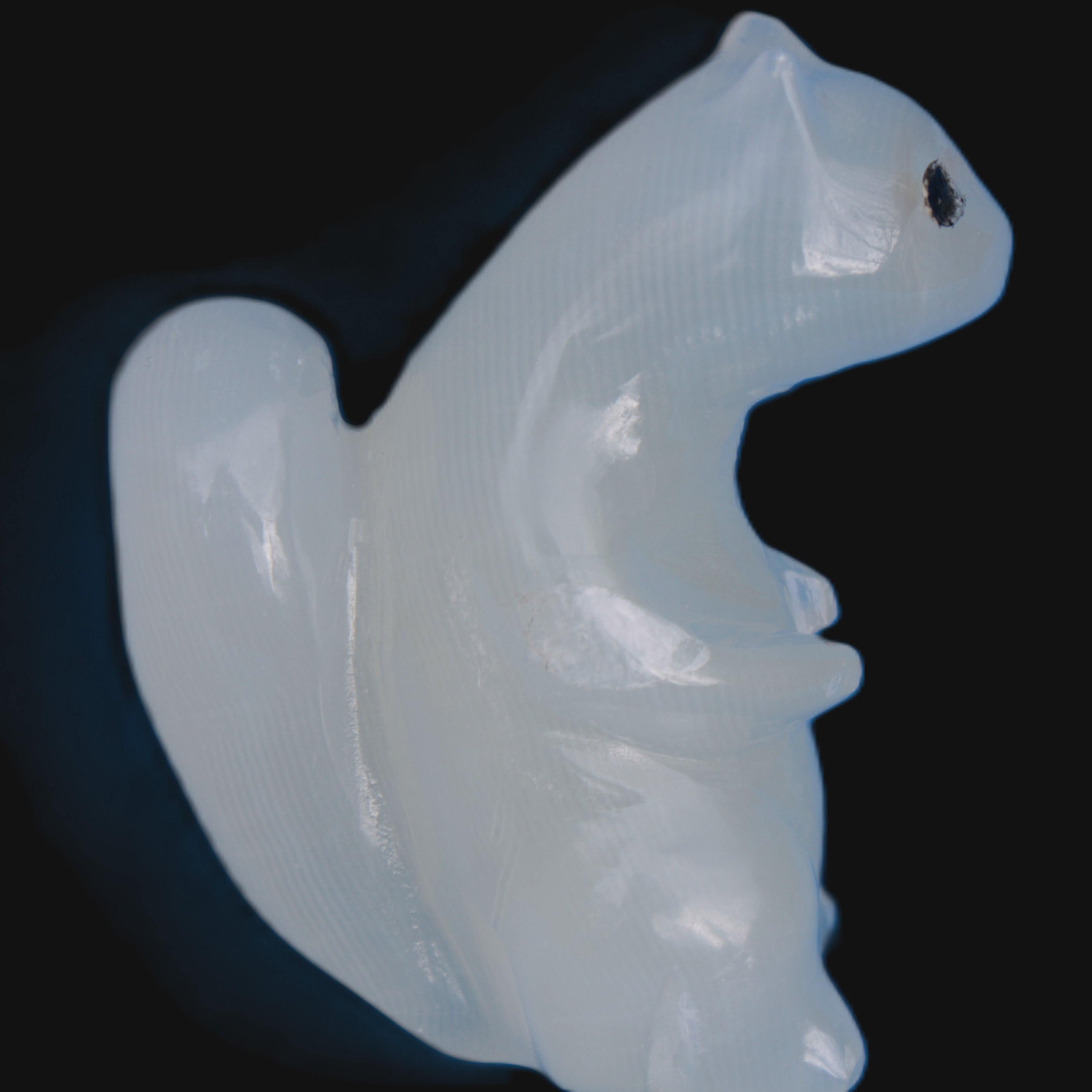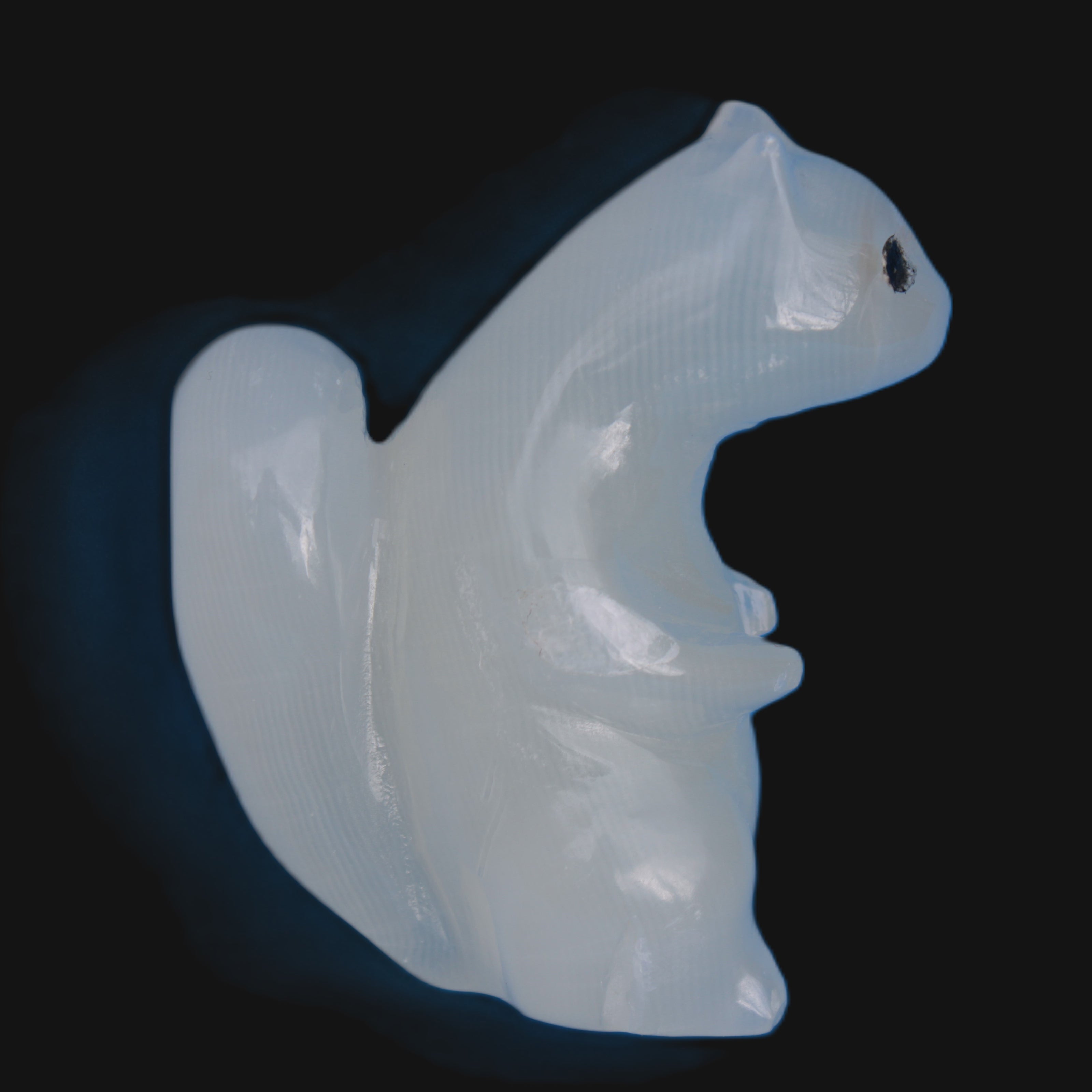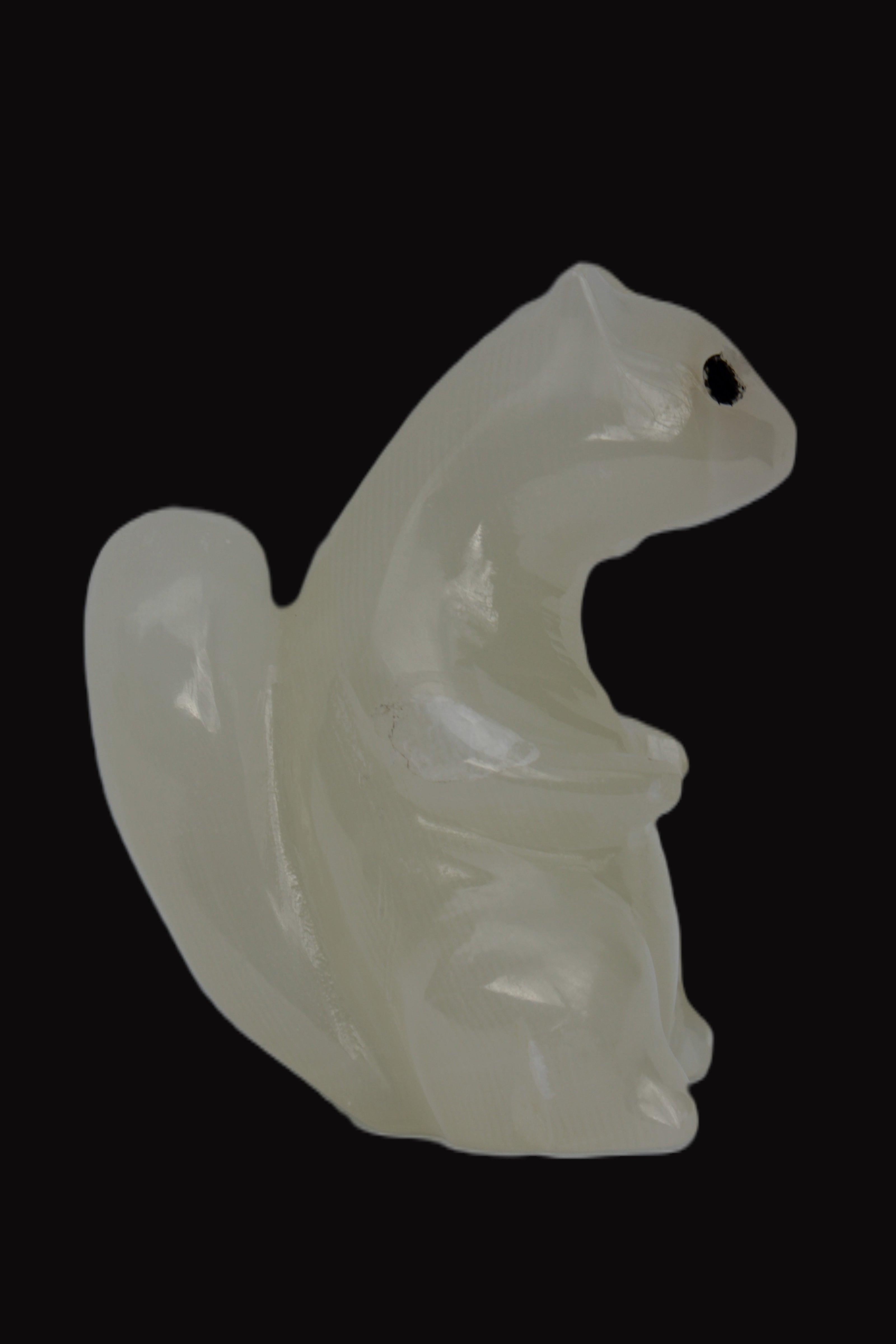 This Squirrel hand carved in Calcite weighs 352.7g.  This stylised figure was hand carved by Lawrence Riaz from Calcite found locally in Pakistan.