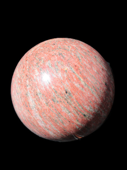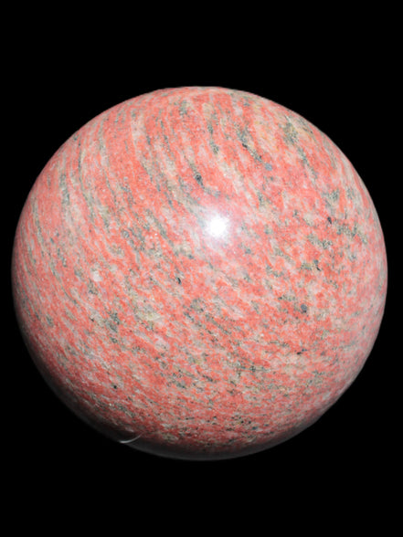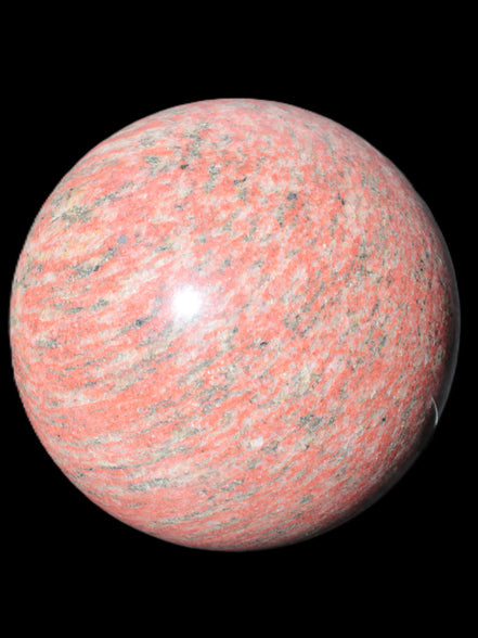 This Strawberry Quartz sphere 145mm is a large 4220g. This unusual Strawberry Quartz comes from mines in the Arusha region of Tanzania.  It is recommended for keeping an open mind.
