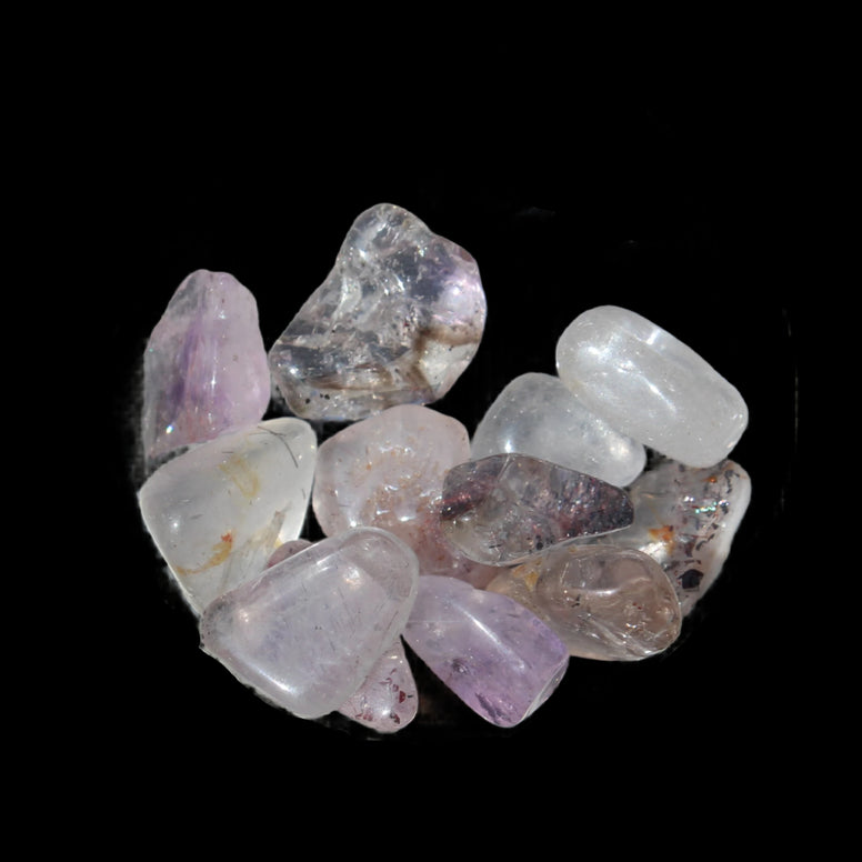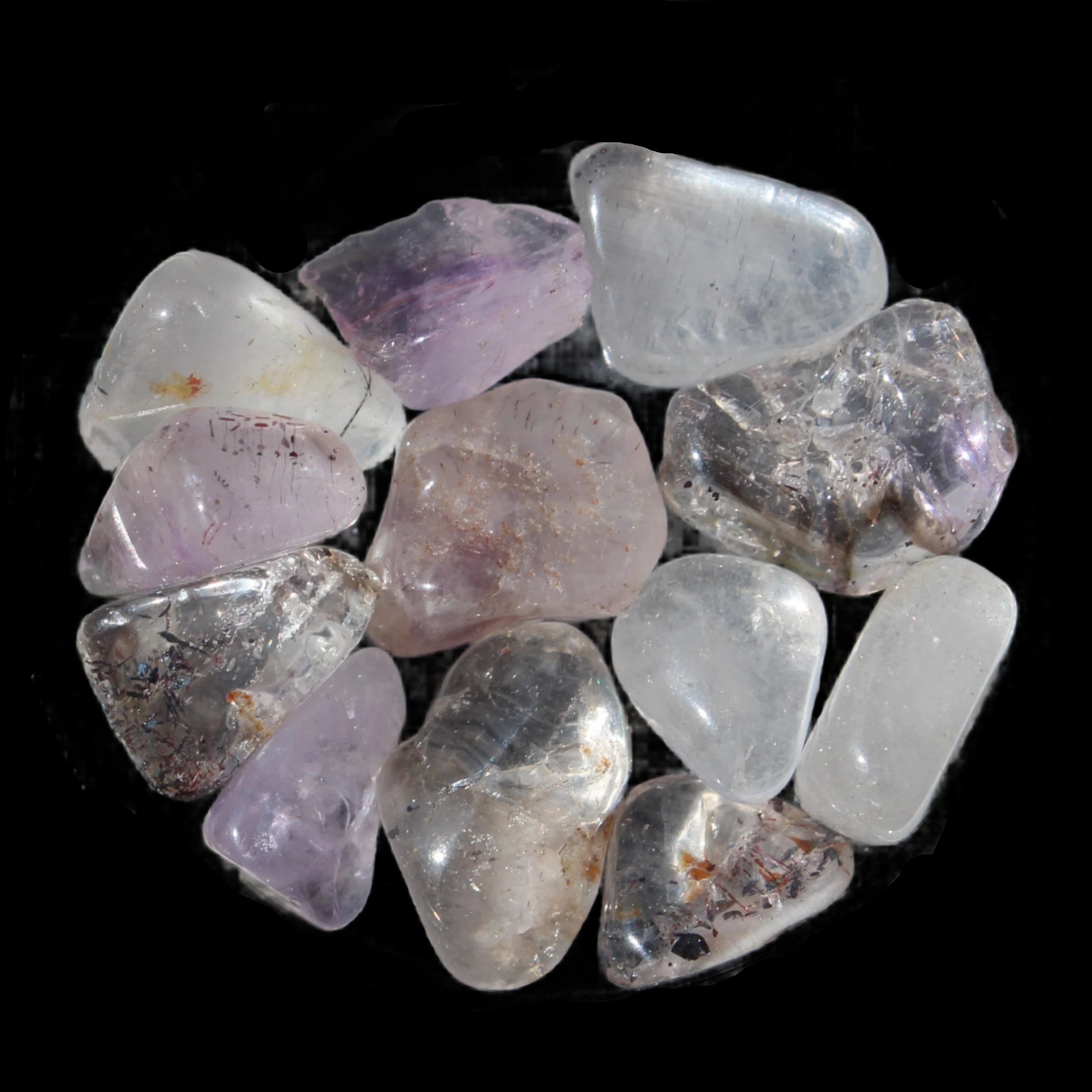 This Super Seven Amethyst polished tiny crystals weigh 12g. The original Super Seven Amethyst is an extremely rare mineral that combines seven different crystals in one. It was found in one mine in Brazil that has closed. The seven crystals are Amethyst, Cacoxenite, Clear Quartz, Goethite, Lepidocrocite, Rutile and Smoky Quartz.