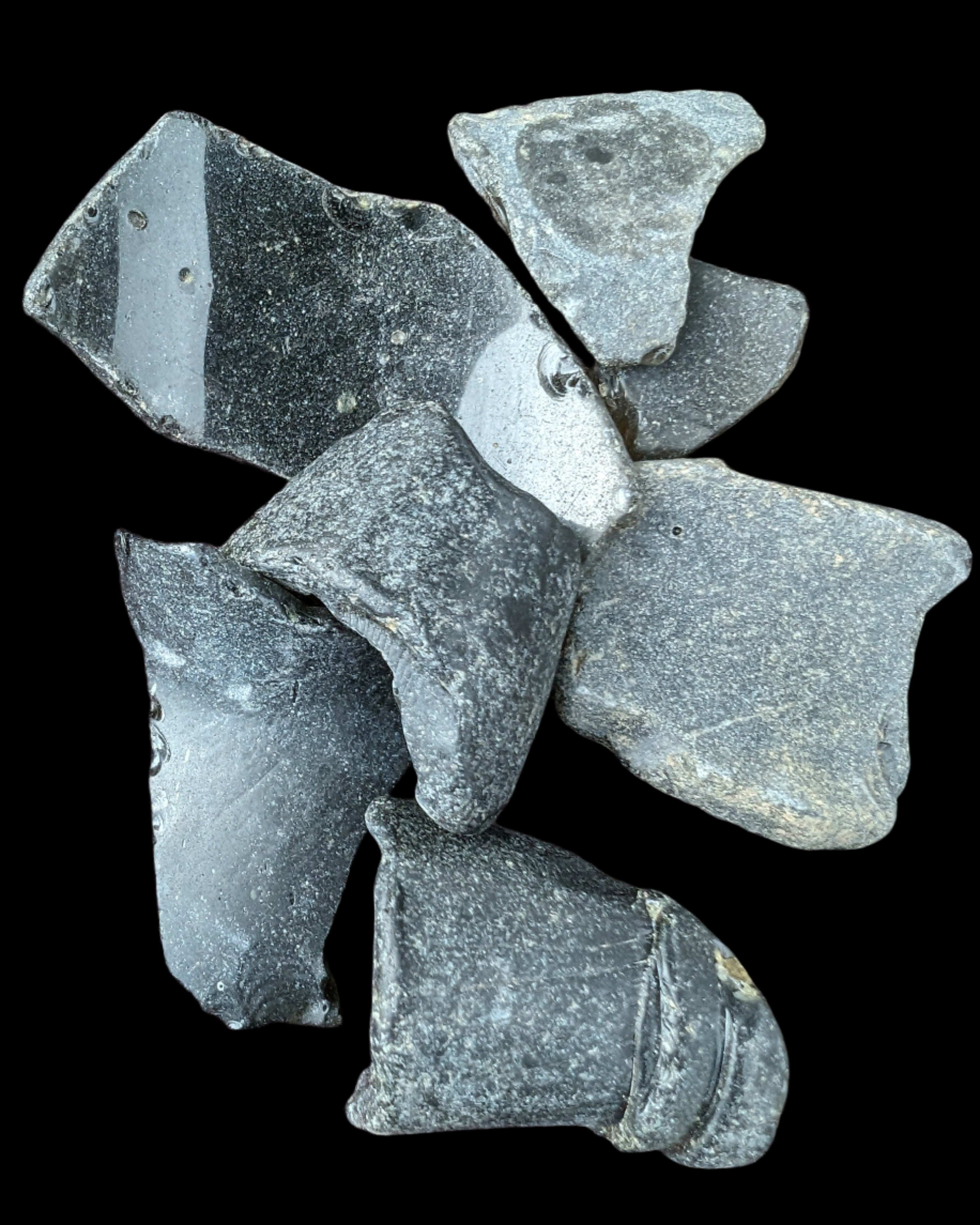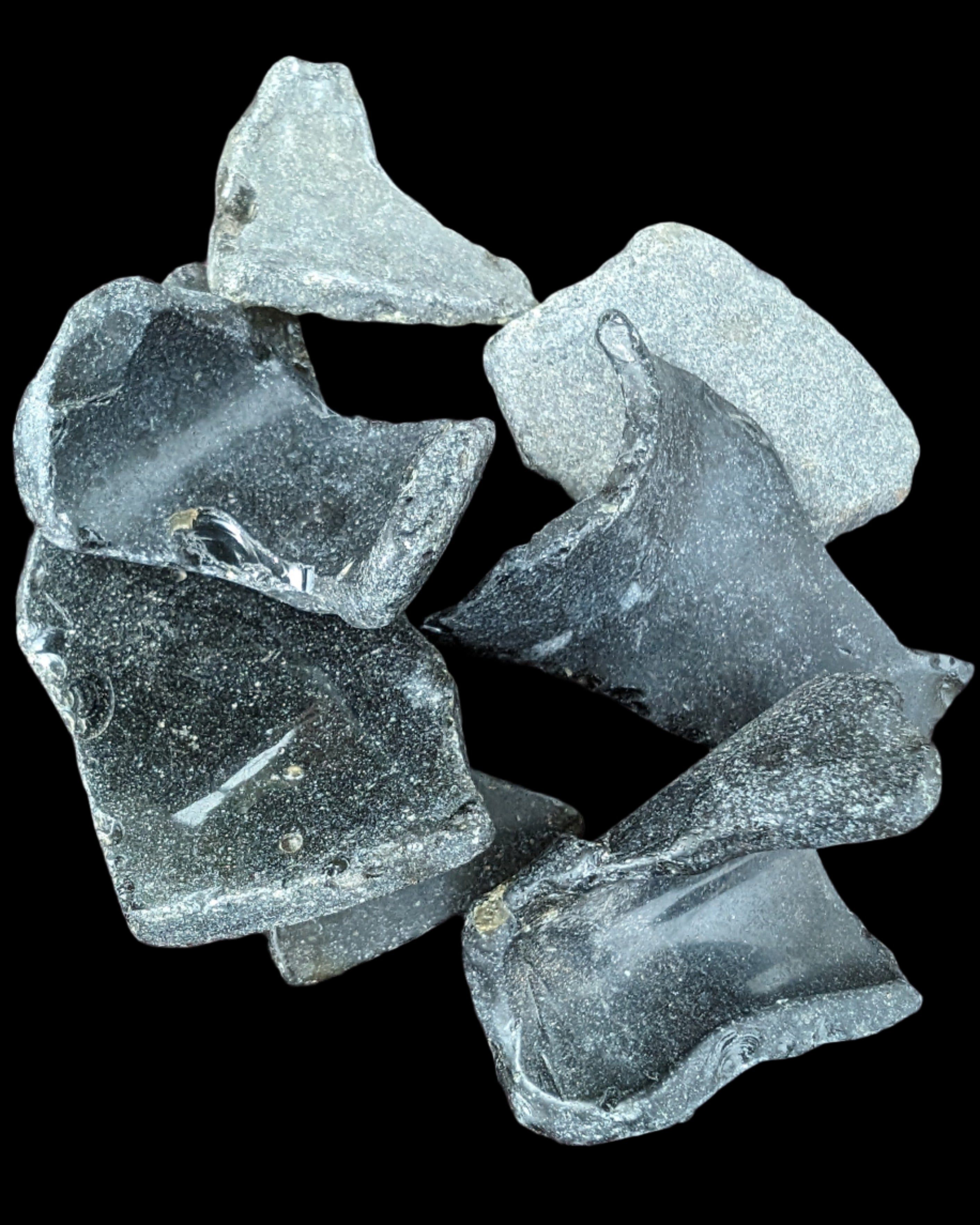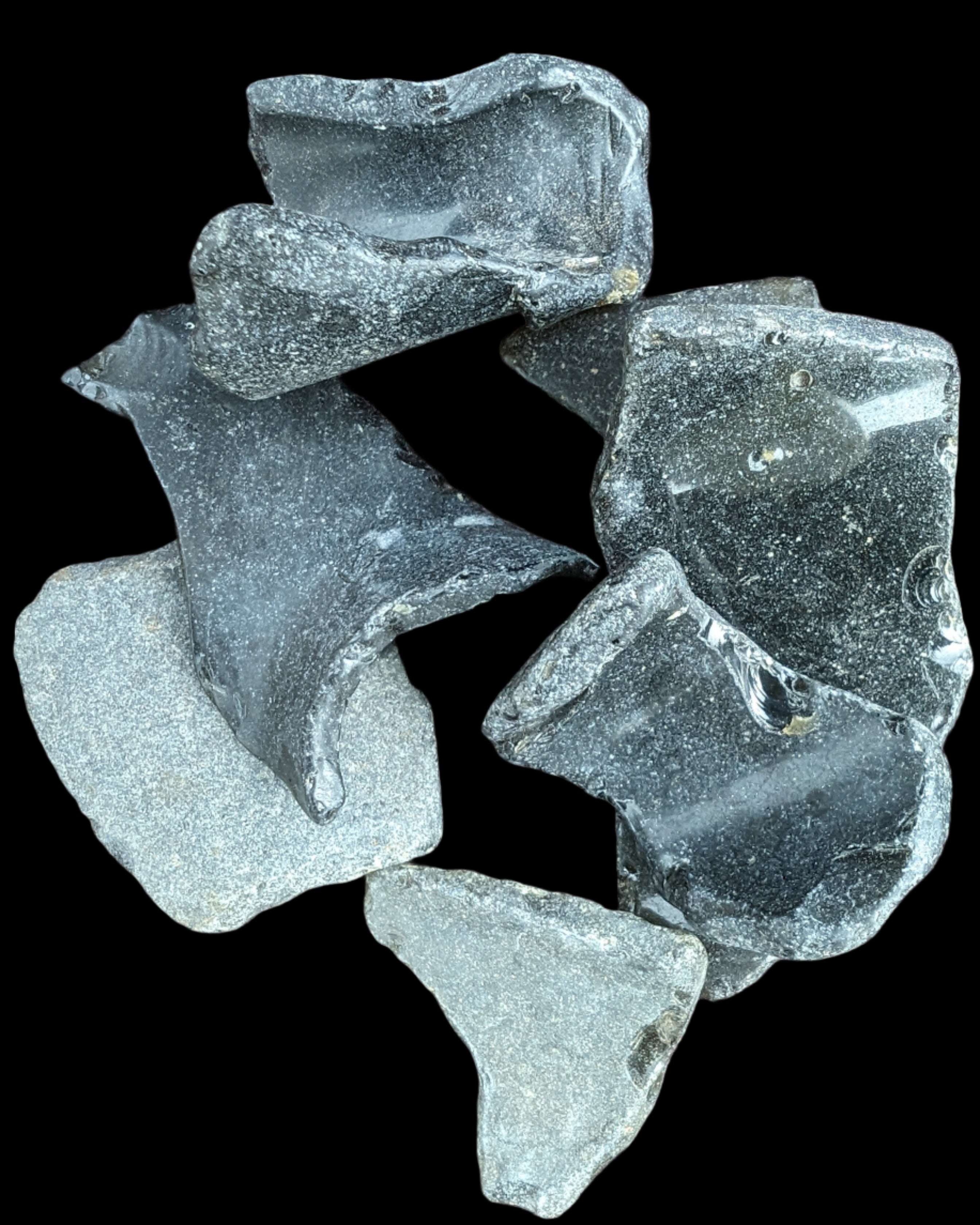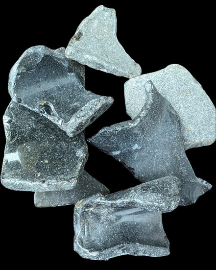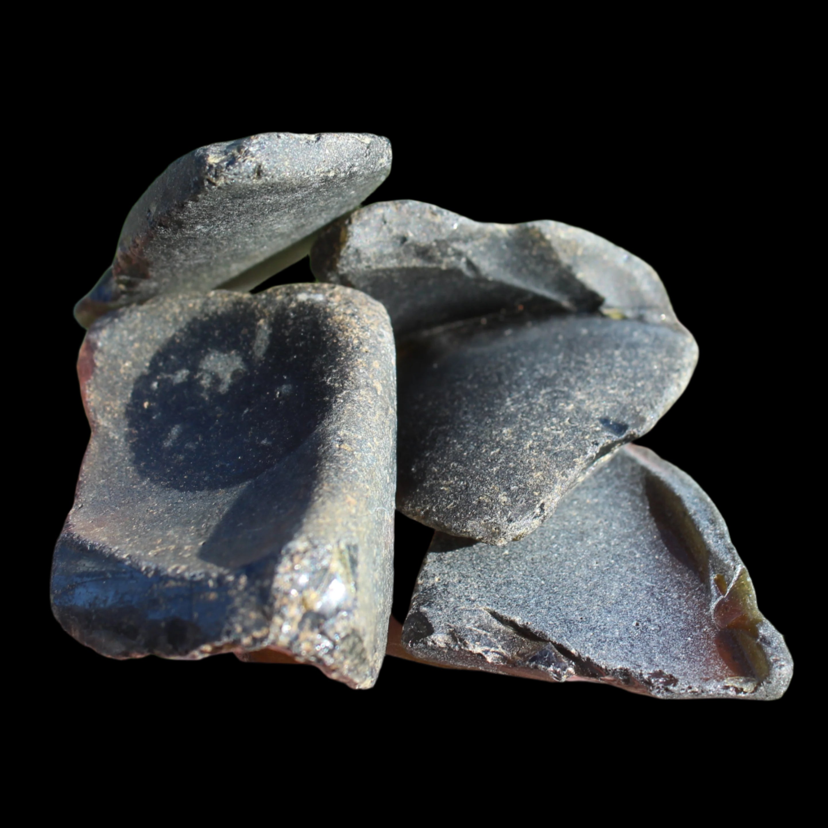 Thick Old River Glass found by Mark of Rocks and Things Store in Reedy Creek, Eldorado Victoria. He was there fossicking for Agate, Clear Quartz, Gold, Rose Quartz, Smoky Quartz and Topaz during 2019 and 2020. Eldorado was a gold rush town in the 1850s. The gold miners threw their rubbish into the creek.